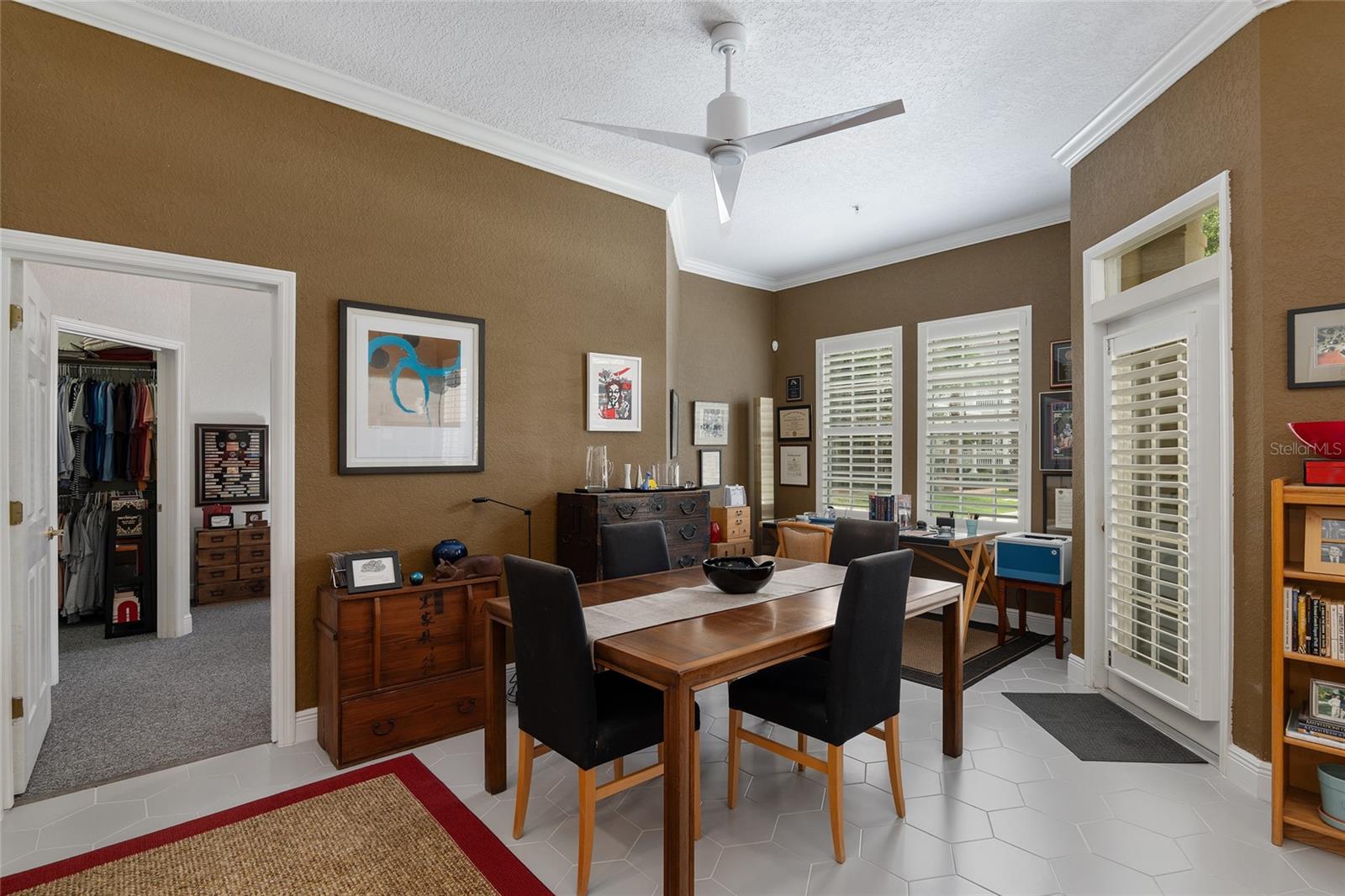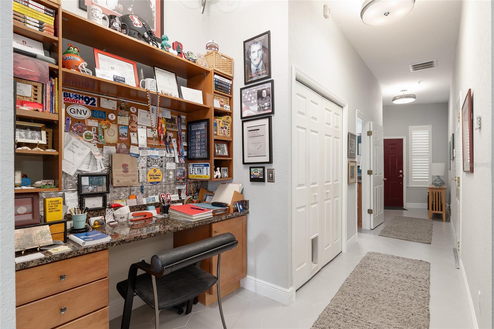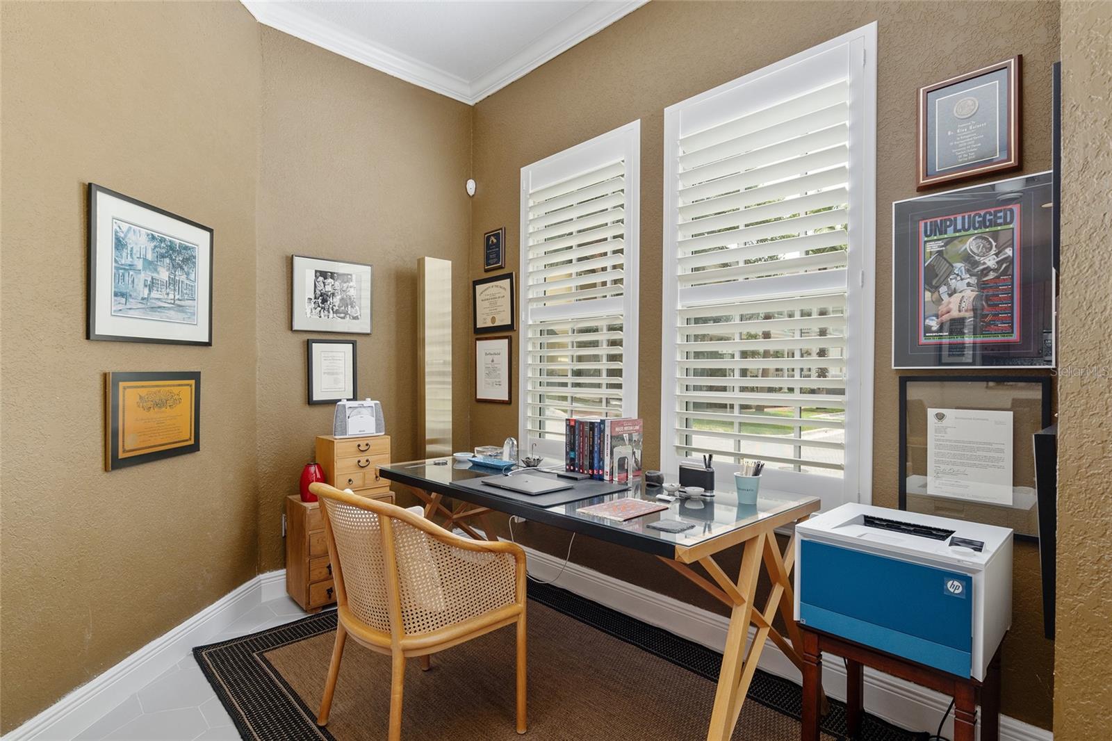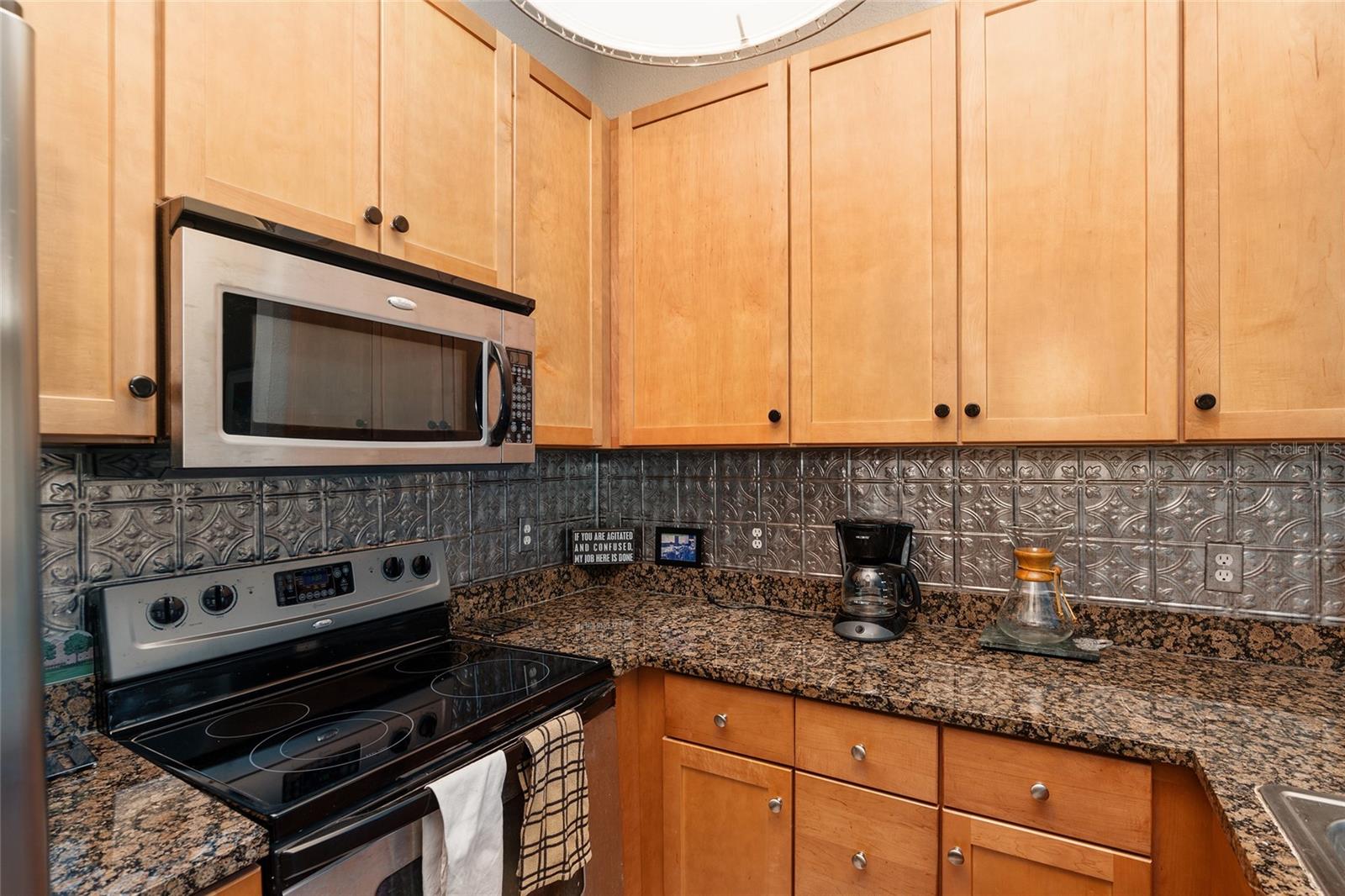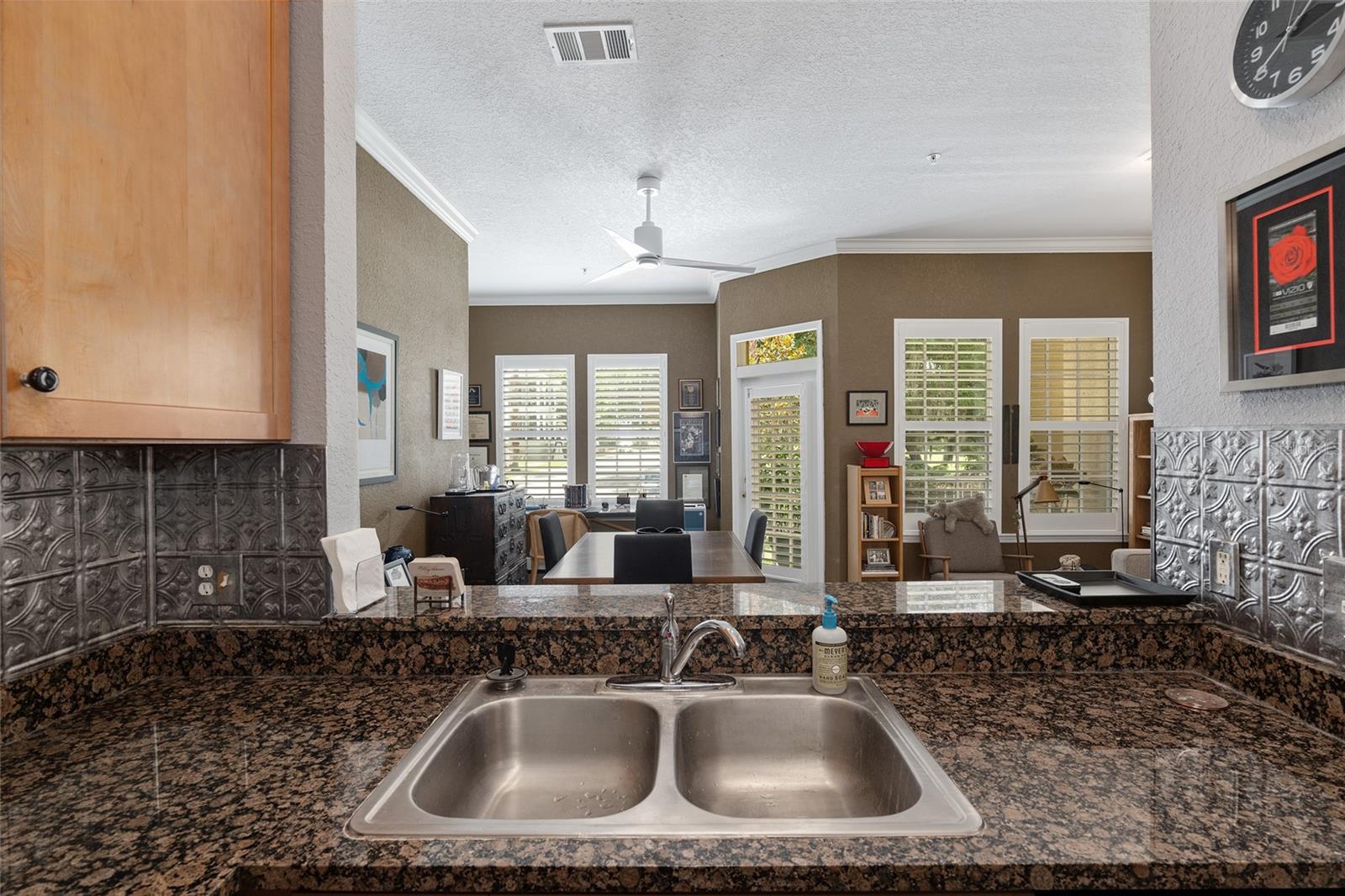 What a perfect view from this beautiful 1st floor luxury condo on the 12th green of the Hawkstone Golf Course. The covered balcony is a relaxing place for morning coffee or a glass of wine at sunset! The owner has recently added tasteful upgrades showing pride of ownership such as stylish hexagon tile floors throughout, specialty paint, new shower tile in the bathroom, beautiful light fixtures, and plantation shutters. Additional features include granite kitchen counter, wood cabinets, a washer and dryer, 1/2 bathroom in the hallway, carpet in bedrooms, California closet in owners walk in closet, and direct access to the garage, spacious bedroom with dual vanities, built in desk and storage for a personal office, high ceilings, spacious great room, dining room and extra nook overlooking the window for outdoor views. The location is a short walk to the Village Center with restaurants, businesses and the Saturday Farmers Market. Enjoy the abundant walking rails throughout the area. Visit Hawkstone Golf and Country Club for a tour of the golf course and facilities and information to join this fun and active club at an additional fee. Close to shopping with two Publix stores, restaurants, shops, health facilities and I-75. NEW ROOF 2024!