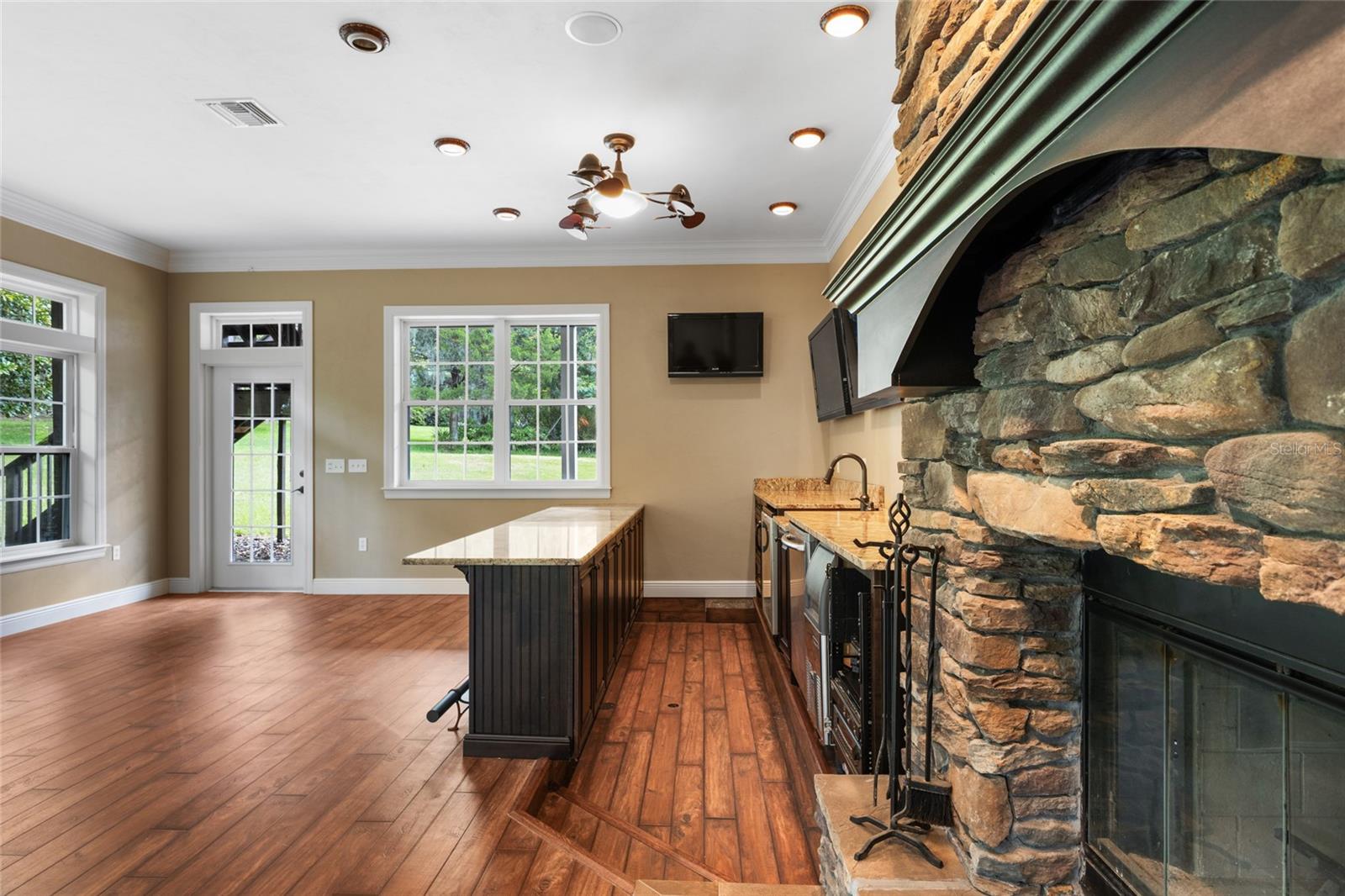 Welcome to your ultimate entertainment oasis nestled in the perfect blend of rural tranquility and urban convenience with No HOA. This sprawling 4,279 sqft estate on just over 5 acres offers everything you need for luxurious living and seamless entertaining. Rest easy knowing that all A/C units were replaced recently. Step into the heart of this home and discover a chef's dream kitchen boasting not one, but two expansive islands, adorned with sleek stainless steel appliances including a Viking Gas Range and Oven. Imagine gazing out at deer and wild turkeys from the second-floor balcony, the perfect spot for your morning coffee. For movie nights or game days, retreat to the dedicated theater room equipped with plush, individual recliners for cinematic comfort. Adjacent, a custom wine storage awaits, showcasing your collection beautifully. An indoor bar beckons with ice machines and multiple beverage refrigerators, ideal for hosting gatherings large and small. Venture outside to your private haven, complete with a custom-built brick outdoor kitchen. Whether grilling on the LP gas-equipped grill, savoring flavors from the wood fire grill, or crafting homemade pizzas in the wood fire pizza oven, every culinary desire is met. Additional amenities include two paddocks for your furry companions, two pole barns with concrete pads for ample storage, and parking for all your recreational vehicles. Located just 5 minutes from Publix and I-75, and a short 15-minute drive from Archer Road's vibrant dining and shopping scene, this property offers the best of both worlds. Seize this rare opportunity to live in a home where every detail is designed for comfort, luxury, and unforgettable entertaining experiences. Schedule your private tour today and make this exceptional property your own.