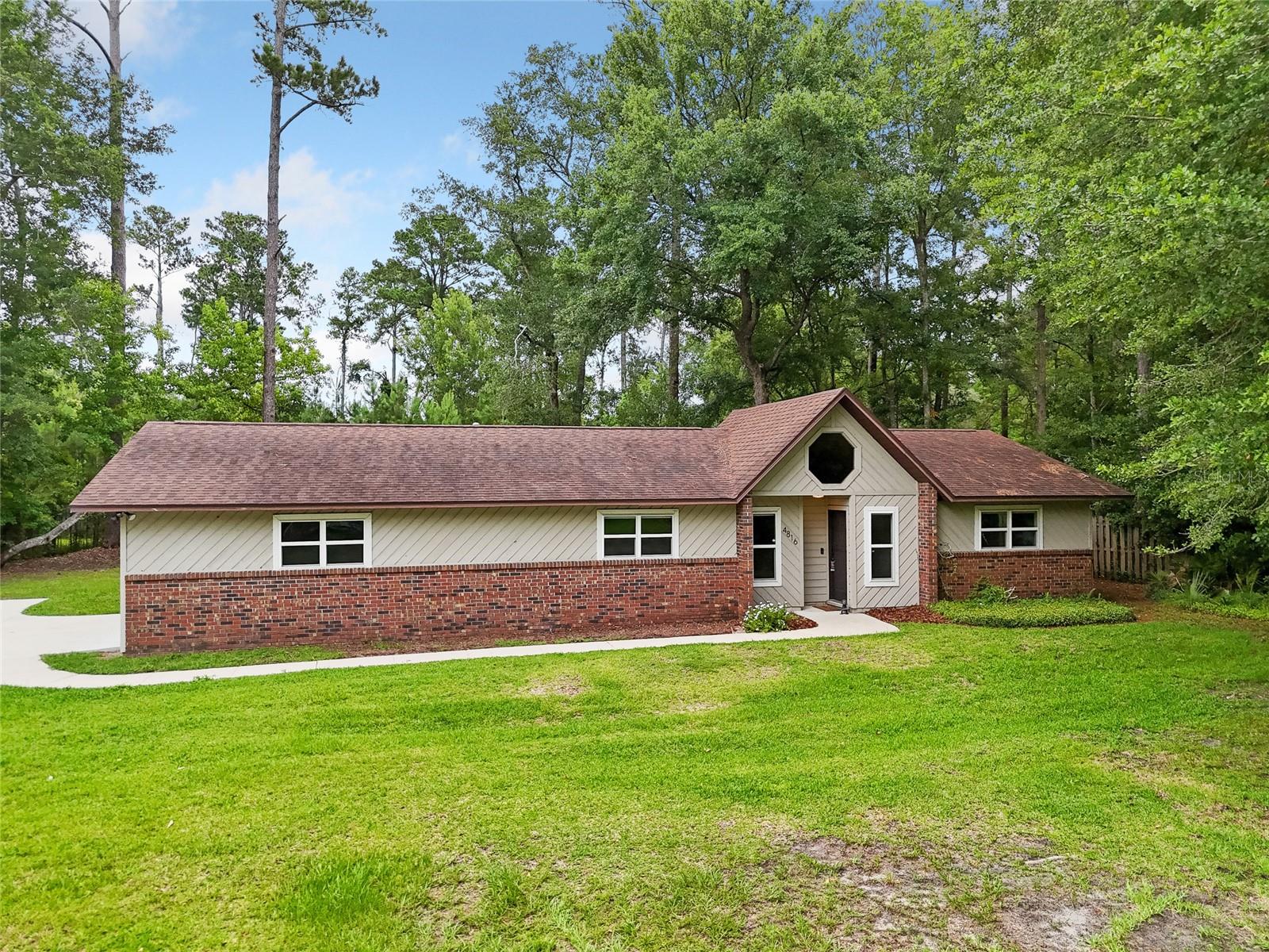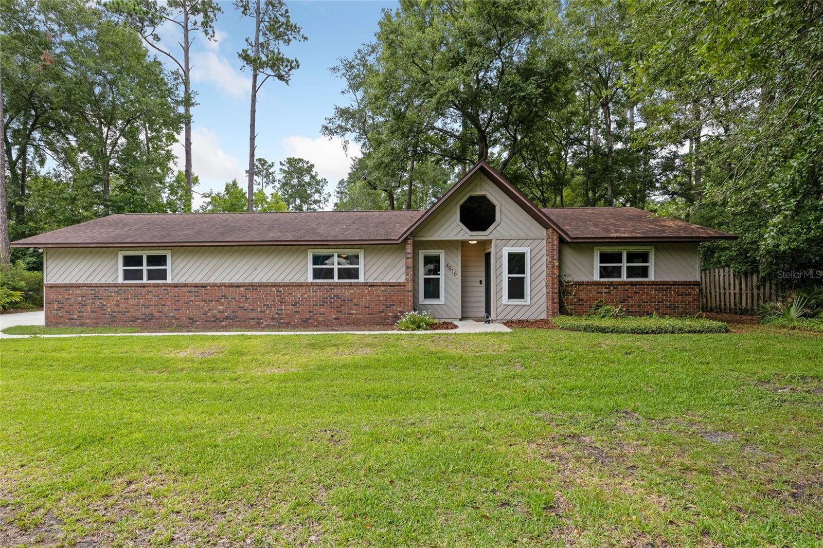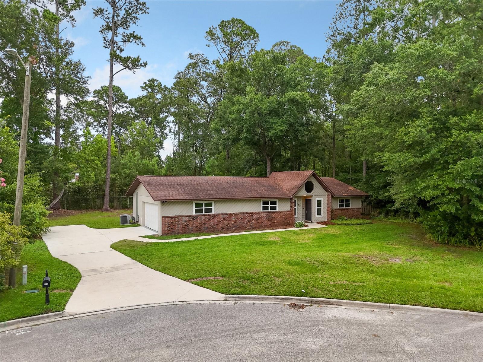 Welcome home to this adorable 3 bedroom / 2 bath home situated on a cul-de-sac in Kimberly Woods. Conveniently located within walking distance to Buchholz High School and some of Gainesville's most popular dining establishments and businesses, you can't go wrong with this home! You'll walk enter into your combo living and dining area with cathedral ceilings and brand new carpet and notice an abundance of natural light from the front and back of the home. Through the french doors you'll thoroughly enjoy the sprawling wooded back yard with so much potential. Add a fire pit or even a playground! The kitchen is perfect for entertaining as it looks out into the dining and living area. This home also has a bonus indoor space off of the garage that could be converted into an office space or even a play room. So much potential! **Buyer to verify all details.**