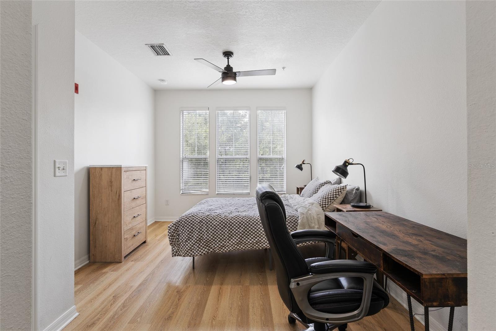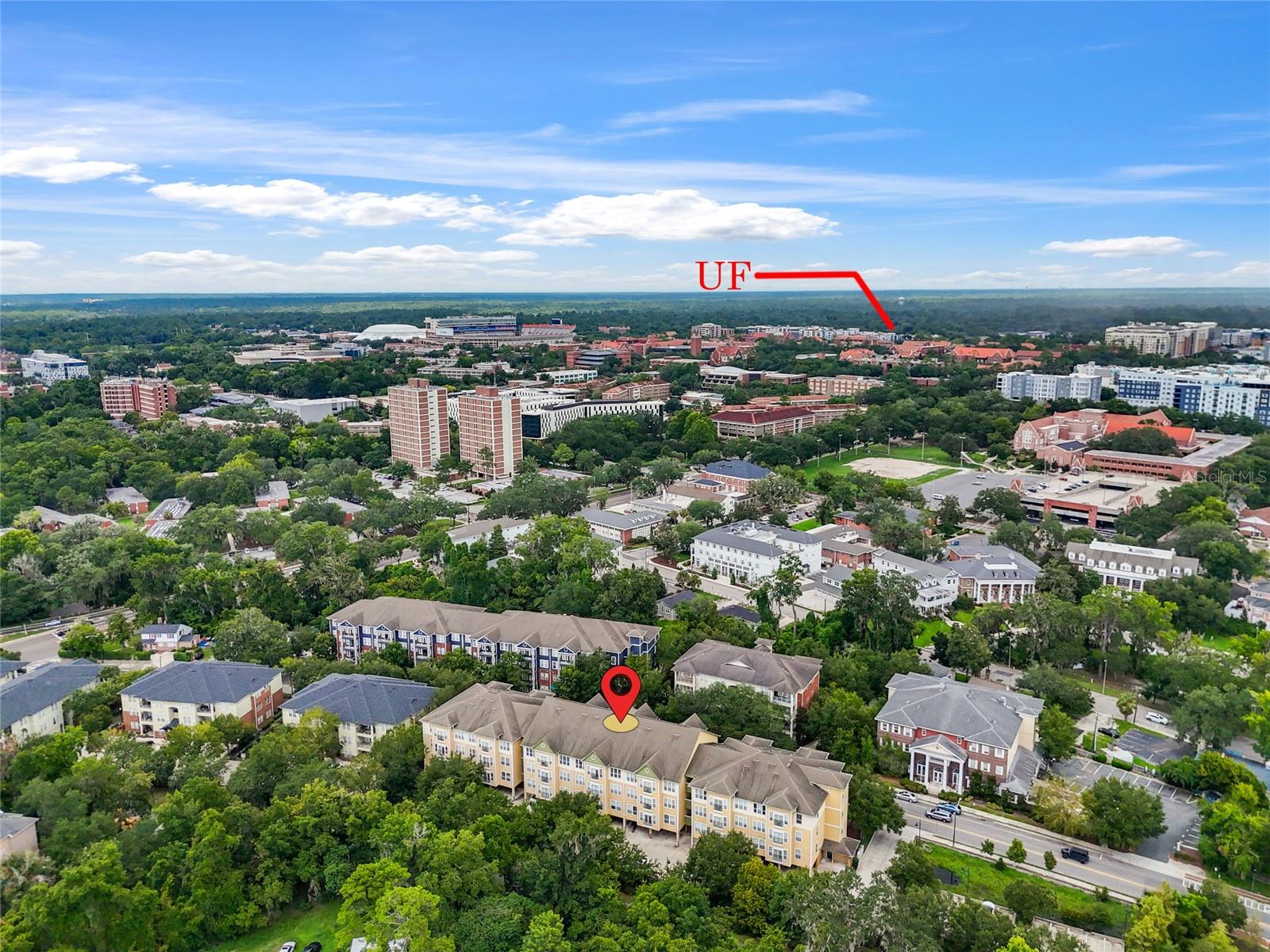 WALK TO THE UNIVERSITY OF FLORIDA, UF HEALTH SHANDS HOSPITAL, AND SORORITY ROW! This third floor 2 bed/2 bath condo comes with TWO ASSIGNED PARKING SPACES! Inside, you'll find a spacious living room, upgraded kitchen, and two large bedrooms, each with its own bathroom and two roomy closets. Say goodbye to carpet - enjoy tile throughout the common areas and NEW LVP flooring (2023) in the Bedrooms! Take the elevator or stairs up to this 3rd floor unit! The association fee covers internet, water, sewer, elevator maintenance, trash collection, exterior building insurance, and grounds maintenance. The building doors have entry code or key fob access. Walking distance to UF Campus, UF Health Shands Hospital, and Sorority Row! Fully Repainted in 2023, AC & Water Heater both less than 7 years old, new dishwasher less than a year old!