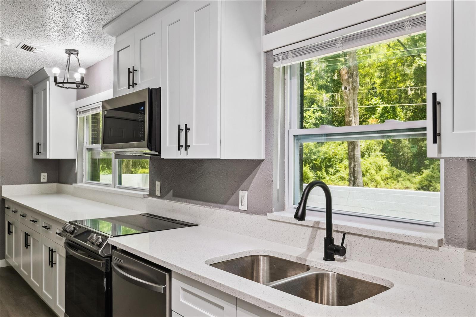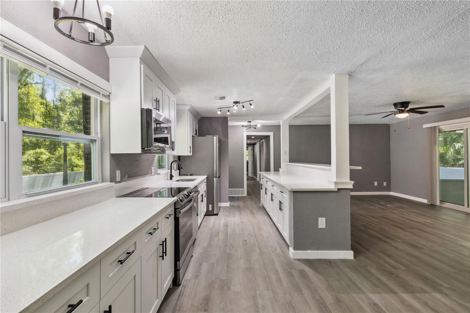 One or more photo(s) has been virtually staged. Wow! Totally renovated home on over an acre located at the end of Clear Lake Road, right in the middle of town! This completely remodeled home features new flooring, kitchen, bathrooms, paint, roof and more! This solid CB home sits on 1.35 acres in the heart of Gainesville, although loaded with privacy and seclusion. Additional detached garage/workshop for your boat or camper. The home is also surrounded by city of Gainesville conservation land for even more privacy! All of this minutes to I-75, NFRMC, Uf, GHFC and more! Call today!