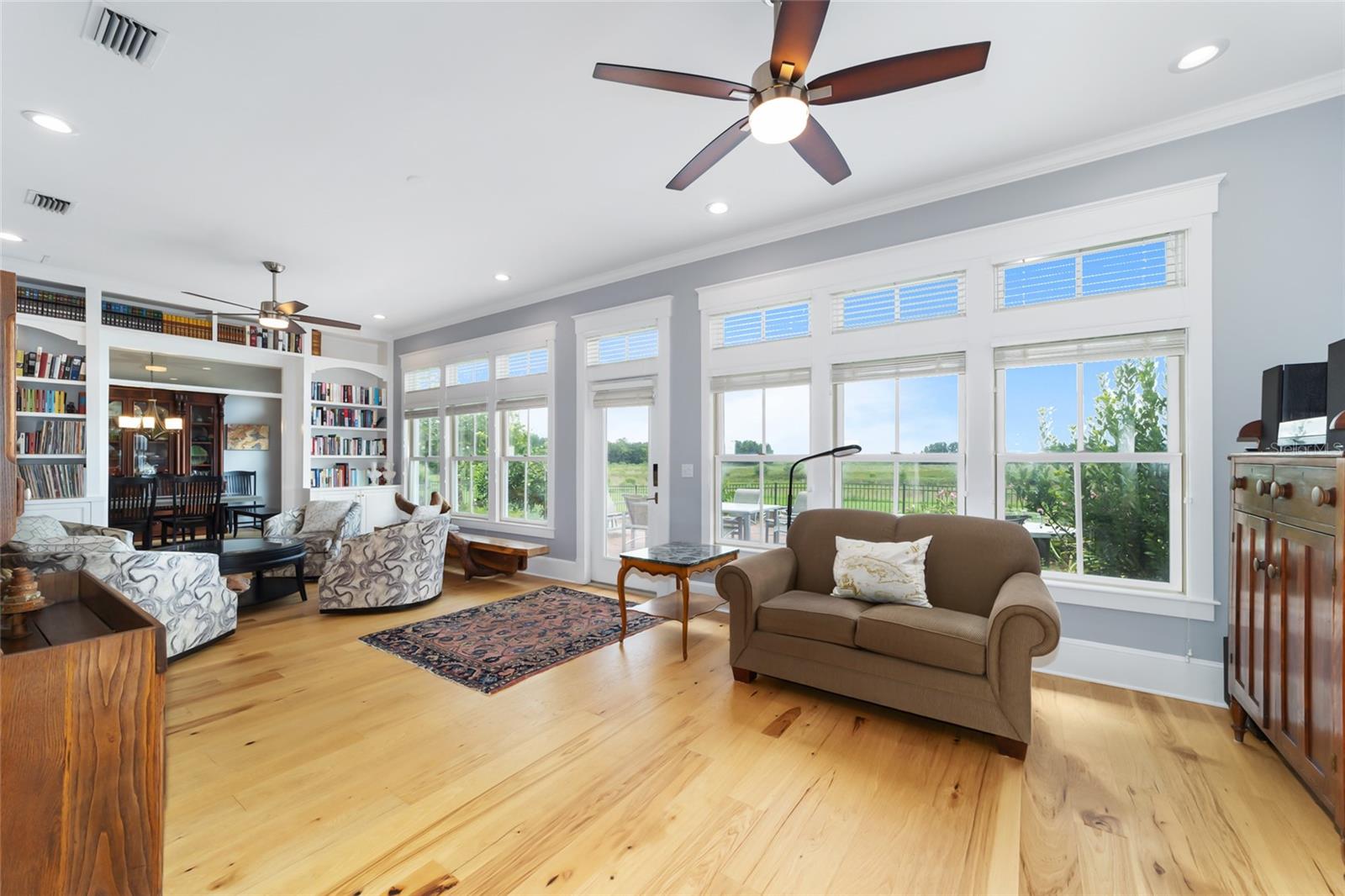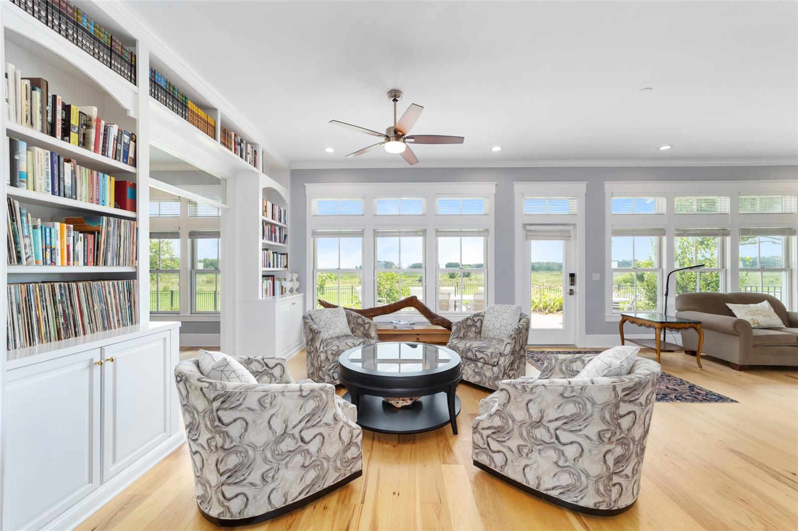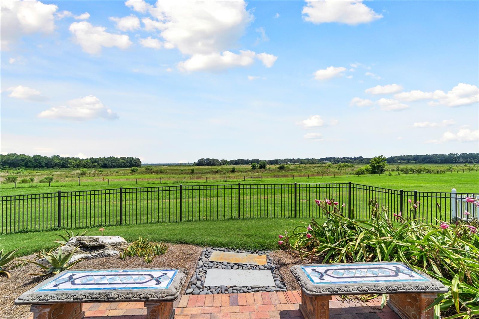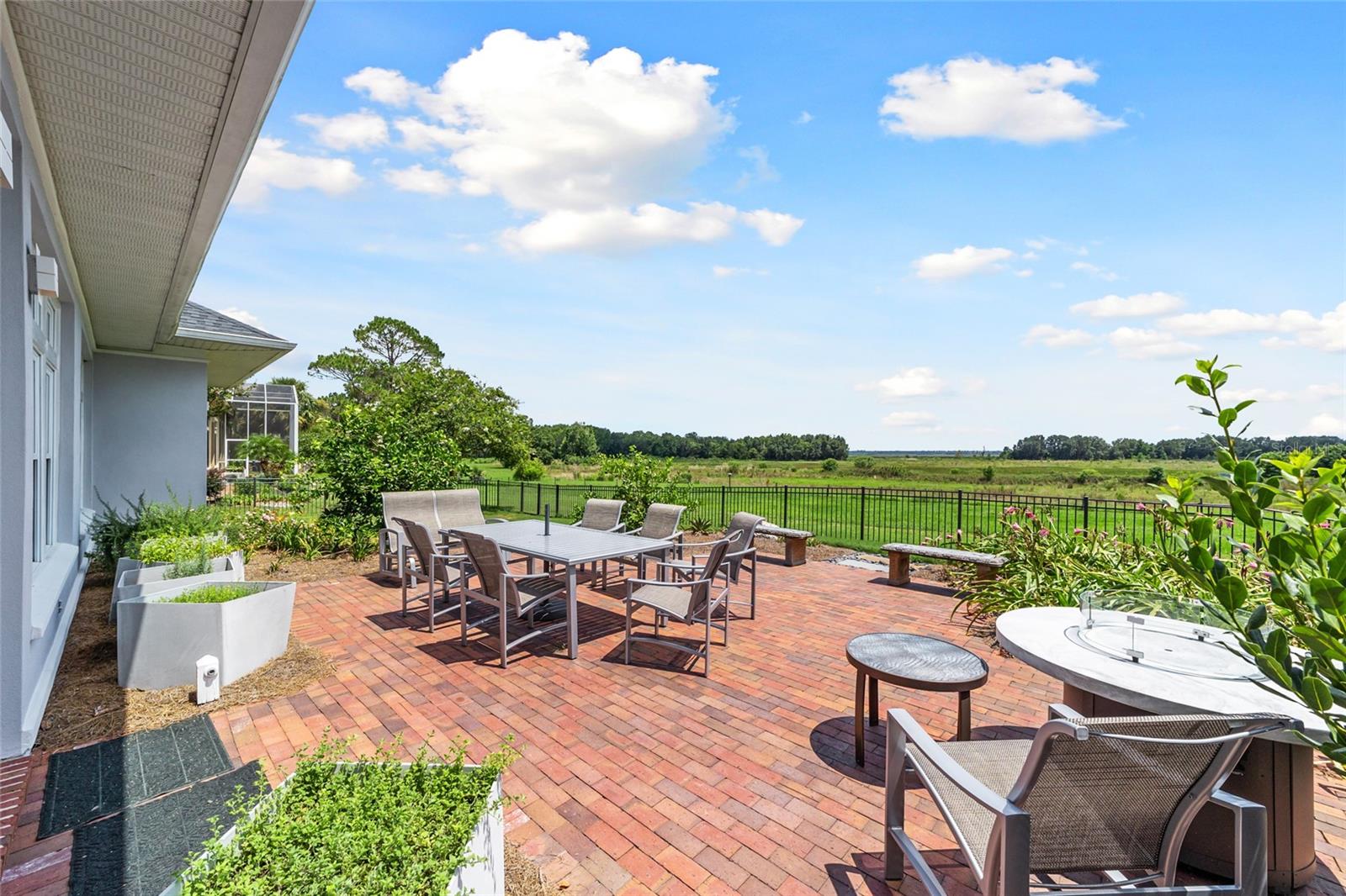 One or more photo(s) has been virtually staged. Understated elegance captures the feel of walking through the double front doors into this custom built, well-maintained, and beautifully updated Executive Home in the gated community of Savanna Pointe. Be one of the few who can daily enjoy nature’s ever changing panoramic beauty while looking across the expansive Payne’s Prairie at the misty mornings, rolling afternoon thunderclouds, and spectacular evening sunsets each shifting in color and splendor through the seasons. Conveniently located on Williston Rd, just west of I-75, you are surrounded by nature’s beauty but also 15 minutes from most locations in Gainesville. This spacious residence, meticulously updated in 2018-19, has hickory wood flooring and crown molding throughout, offers 3 bedrooms, living room with gas fireplace, Florida room with library seating area, large kitchen with breakfast nook and wet bar, laundry room with custom cedar closet, and two full bathrooms. Built for entertaining, this residence features a home chef’s dream kitchen, updated in 2018, with granite countertops & island, Viking stainless steel gas cooktop, Thermidor hood, and a Viking double French-door oven. The kitchen also includes a stainless steel French door refrigerator with pull out drink/cheese/fruit drawers and bottom freezer, walk-in pantry, and built-in shelved pantry for serving/table ware. The wet bar opens to the spacious living room featuring a gas fireplace with wall mounted Smart TV and sound system, remaining in the home, and allows one to imagine the lively conversations and relaxing movie nights ready to be had. The open floor plan provides a view into the Florida room with its wall of windows overlooking the serenity of Payne’s Prairie. Opening the door to the back patio, one is attuned to the symphony of the calls of finches, swallow tailed kites, hawks, and sandhill cranes. All backyard and front yard hardscaping was reset in 2022 along with extensive landscaping renovations, including imported beach pebble beds and specimen plantings, providing mature garden beds and flowering perennials year-round for your enjoyment. Additionally, imported designer planters are filled with a variety of herbs ready to be cut and dried for your favorite dishes. Moving back indoors, enter the separate dining room which also offers views of the prairie and is large enough to easily seat a table of 10. The split floor plan provides for a primary suite with large windows overlooking the prairie, and includes an amply sized bedroom, spacious open closet, and fully renovated bathroom (2019) with custom cabinetry and spa sized shower. The laundry room is connected to the primary bathroom and has a custom cedar closet and ample storage for necessities. The second and third bedrooms can be accessed through the living room, one of which is currently being used as a temporary home office. The second bathroom, also fully renovated in 2019, is well appointed for its function. The home’s interior was updated and renovated in 2018-19 and the exterior in 2022 to include hickory wood floorings, bathrooms, kitchen, laundry room, tankless water heater, new ceiling fans, installed canned lighting, new fixtures and dimmable switches, whole home generator (2017), electrical, plumbing, new roof, & landscaping (2022). Items remaining in the home include bookshelves in the third bedroom, smart tv and associated sound system, armoire in the master bedroom, microwave and shelving in the two-car garage.