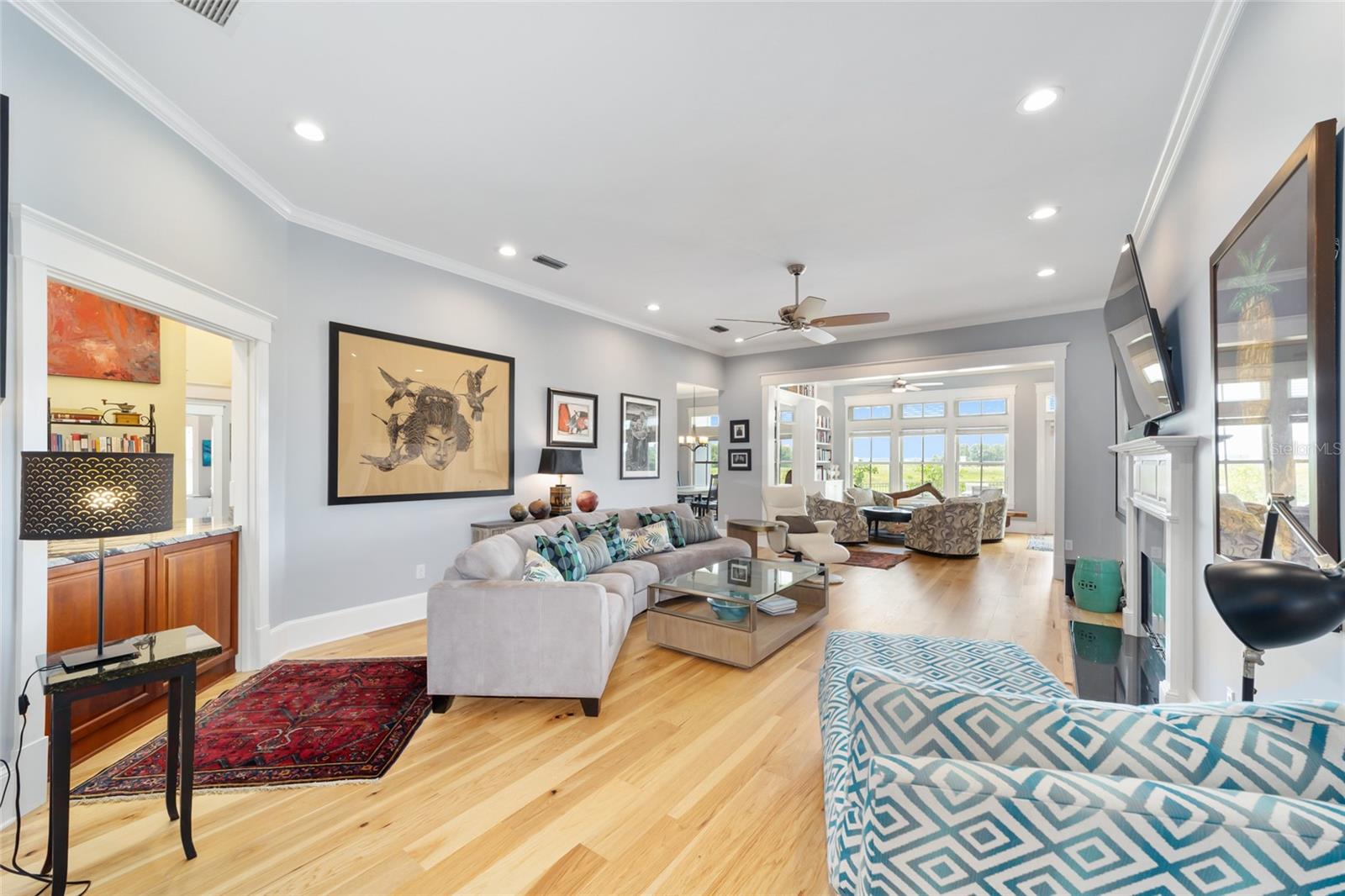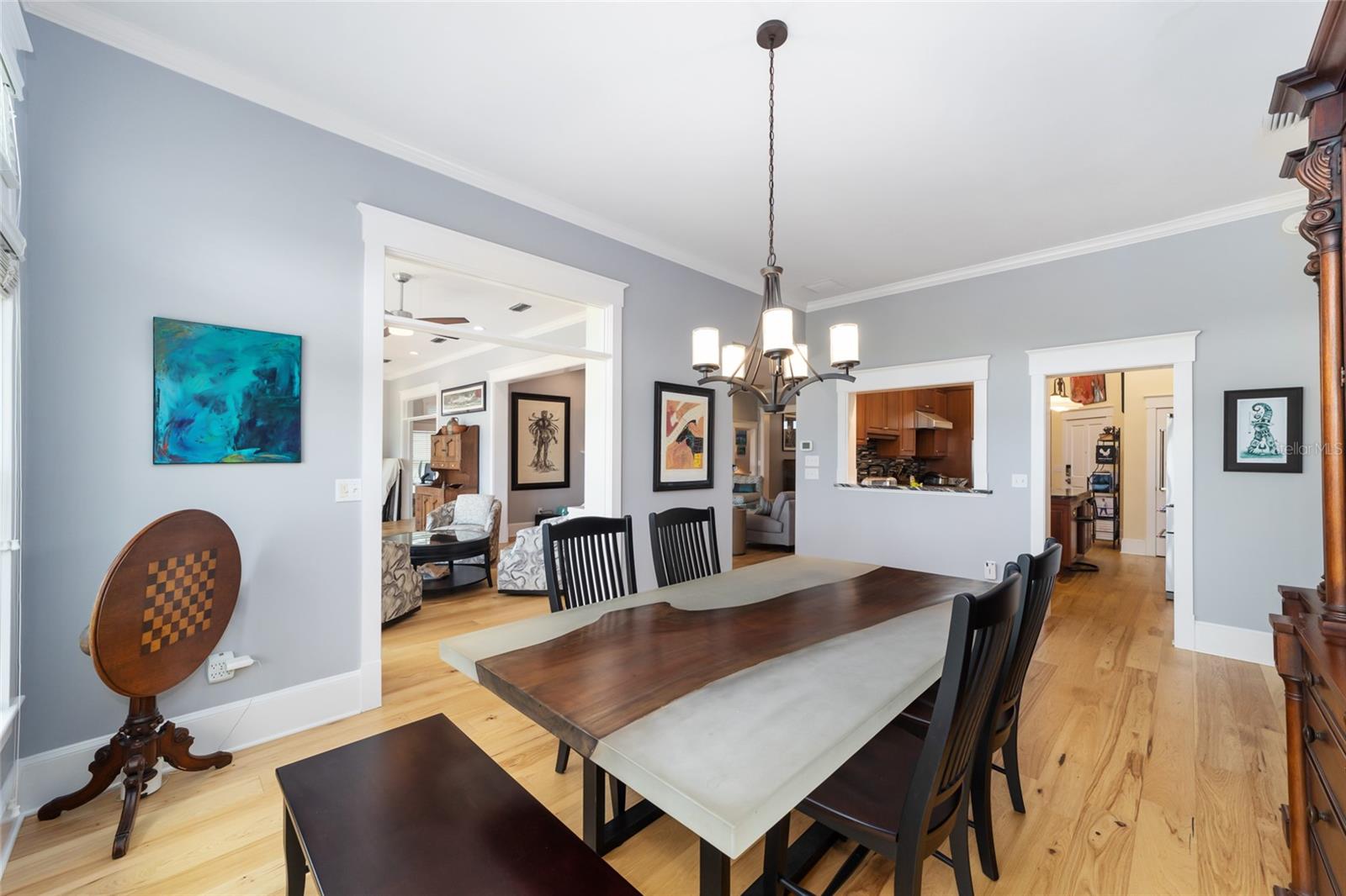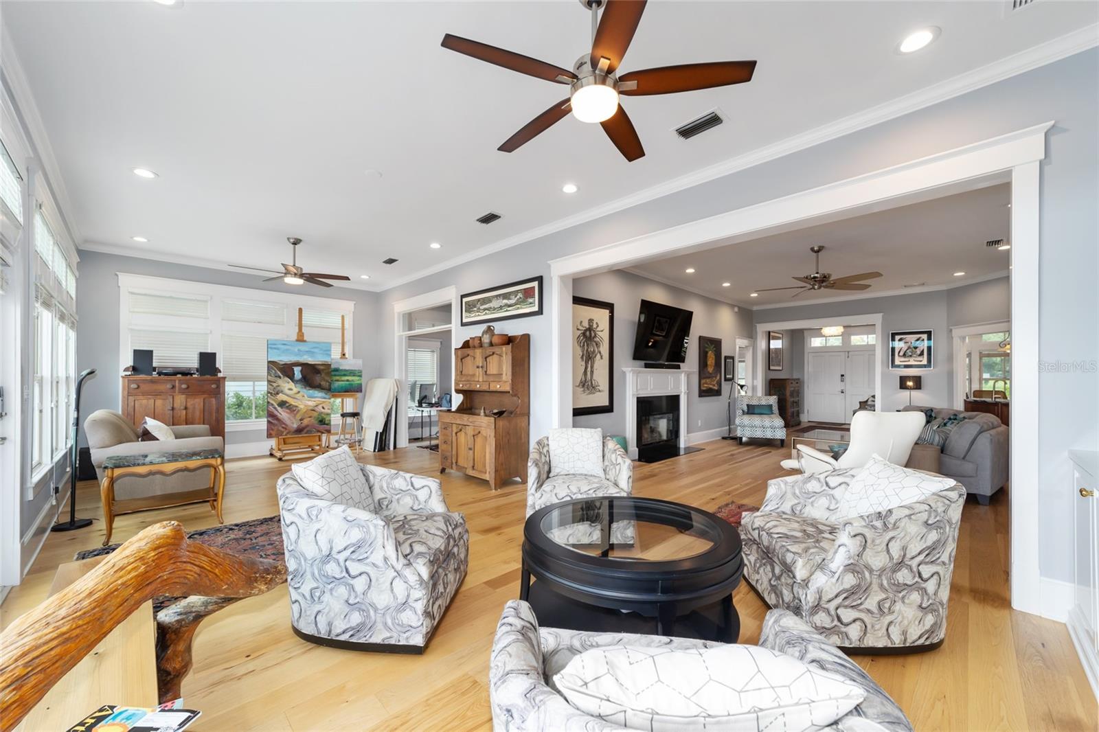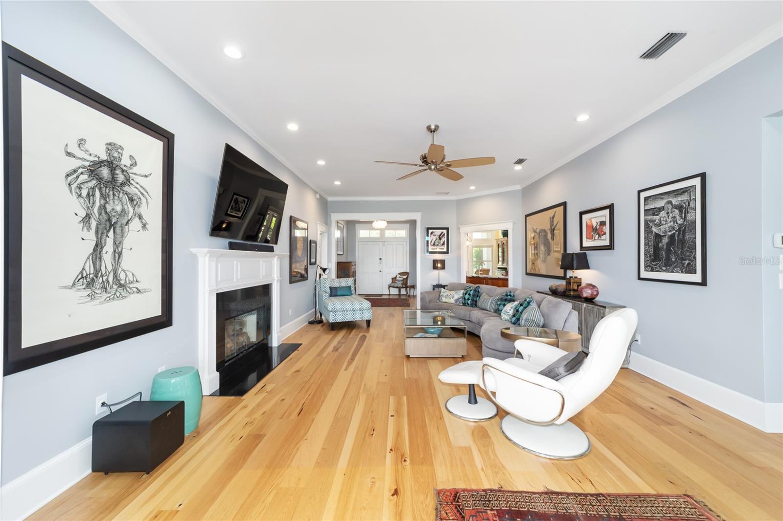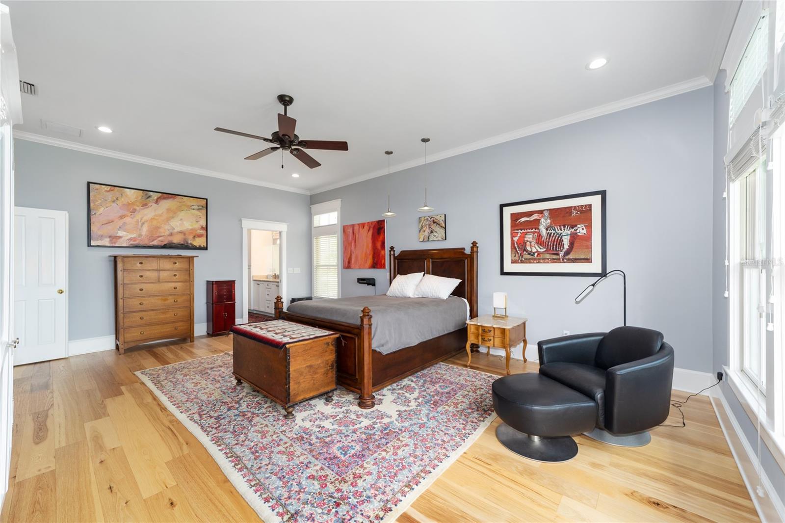 One or more photo(s) has been virtually staged. Understated elegance captures the feel of walking through the double front doors into this custom built, well-maintained, and beautifully updated Executive Home in the gated community of Savanna Pointe. Be one of the few who can daily enjoy nature’s ever changing panoramic beauty while looking across the expansive Payne’s Prairie at the misty mornings, rolling afternoon thunderclouds, and spectacular evening sunsets each shifting in color and splendor through the seasons. Conveniently located on Williston Rd, just west of I-75, you are surrounded by nature’s beauty but also 15 minutes from most locations in Gainesville. This spacious residence, meticulously updated in 2018-19, has hickory wood flooring and crown molding throughout, offers 3 bedrooms, living room with gas fireplace, Florida room with library seating area, large kitchen with breakfast nook and wet bar, laundry room with custom cedar closet, and two full bathrooms. Built for entertaining, this residence features a home chef’s dream kitchen, updated in 2018, with granite countertops & island, Viking stainless steel gas cooktop, Thermidor hood, and a Viking double French-door oven. The kitchen also includes a stainless steel French door refrigerator with pull out drink/cheese/fruit drawers and bottom freezer, walk-in pantry, and built-in shelved pantry for serving/table ware. The wet bar opens to the spacious living room featuring a gas fireplace with wall mounted Smart TV and sound system, remaining in the home, and allows one to imagine the lively conversations and relaxing movie nights ready to be had. The open floor plan provides a view into the Florida room with its wall of windows overlooking the serenity of Payne’s Prairie. Opening the door to the back patio, one is attuned to the symphony of the calls of finches, swallow tailed kites, hawks, and sandhill cranes. All backyard and front yard hardscaping was reset in 2022 along with extensive landscaping renovations, including imported beach pebble beds and specimen plantings, providing mature garden beds and flowering perennials year-round for your enjoyment. Additionally, imported designer planters are filled with a variety of herbs ready to be cut and dried for your favorite dishes. Moving back indoors, enter the separate dining room which also offers views of the prairie and is large enough to easily seat a table of 10. The split floor plan provides for a primary suite with large windows overlooking the prairie, and includes an amply sized bedroom, spacious open closet, and fully renovated bathroom (2019) with custom cabinetry and spa sized shower. The laundry room is connected to the primary bathroom and has a custom cedar closet and ample storage for necessities. The second and third bedrooms can be accessed through the living room, one of which is currently being used as a temporary home office. The second bathroom, also fully renovated in 2019, is well appointed for its function. The home’s interior was updated and renovated in 2018-19 and the exterior in 2022 to include hickory wood floorings, bathrooms, kitchen, laundry room, tankless water heater, new ceiling fans, installed canned lighting, new fixtures and dimmable switches, whole home generator (2017), electrical, plumbing, new roof, & landscaping (2022). Items remaining in the home include bookshelves in the third bedroom, smart tv and associated sound system, armoire in the master bedroom, microwave and shelving in the two-car garage.