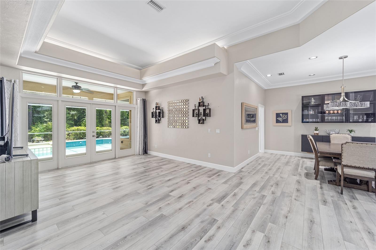 You don't want to miss this gem! The property has been tastefully modernized and updated, featuring contemporary finishes and fixtures that enhance its appeal, luxury vinyl flooring throughout. Featuring 3 bedrooms, two full bathrooms, a half bath in the hall for guests, and a bon-a-fide office that could be converted to a bedroom by adding a closet. Step inside to discover an inviting and spacious living room bathed in natural light. The open floor plan seamlessly connects the living room to the dining area, creating an ideal space for entertaining guests or enjoying cozy family evenings. The well-appointed kitchen boasts modern appliances, a double oven, ample counter space, and stylish cabinetry. Whether you're a culinary enthusiast or simply enjoy preparing meals, this kitchen is sure to inspire your inner chef. The owners suite includes an en-suite bathroom with a luxurious soaking tub, a separate shower, and tons of storage space in three closets The backyard is a true oasis, perfect for outdoor gatherings and relaxation. Enjoy your morning coffee on the covered patio, host BBQs with friends, or unwind in the beautifully landscaped garden. Oh! Did I forget to mention the Large Salt Water Pool that is fully enclosed and solar heated? The pool and patio are perfect setting for year-round enjoyment. Dive into the crystal-clear waters or lounge by the poolside in your private, sun-soaked paradise. This home is equipped with all the modern amenities you desire, including central air conditioning, a dedicated laundry room, and a two-car garage for your convenience. Situated in the coveted neighborhood of The Preserve in Haile Plantation, this home is just a few steps to the Haile Village and minutes away from top-rated schools, shopping centers, dining options, and recreational facilities. Enjoy easy access to major highways, making your daily commute a breeze. This home is meticulously maintained and move-in ready, and offers the perfect opportunity to settle into a vibrant community and enjoy the best that Gainesville has to offer. Don't miss out on the chance to make this your new home! Schedule a viewing today and experience the charm, comfort, and modern luxury of this wonderful property.