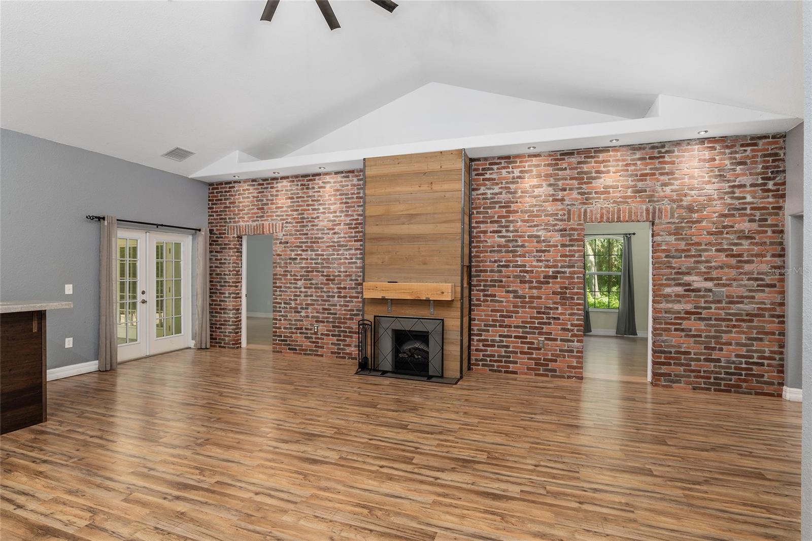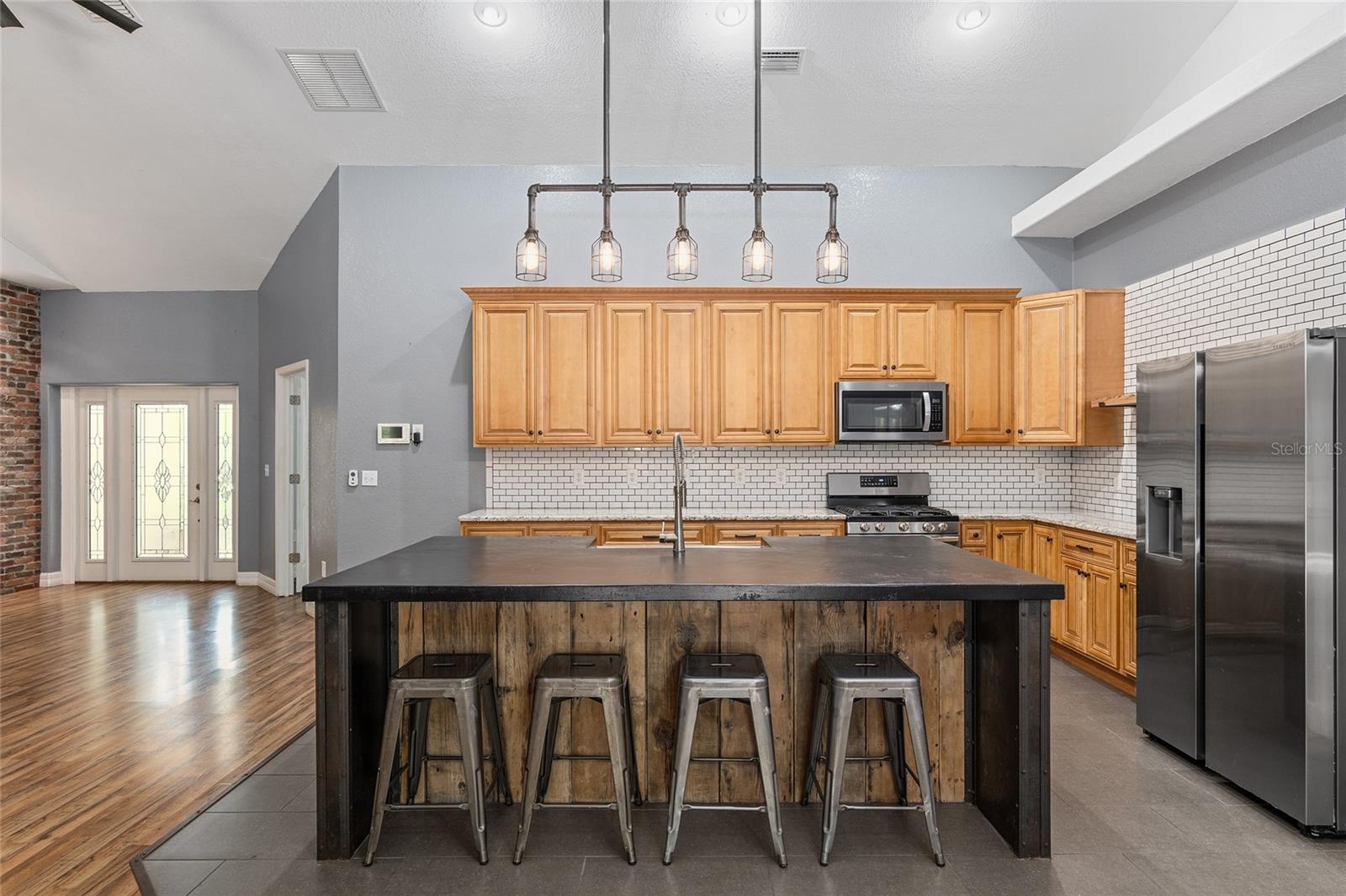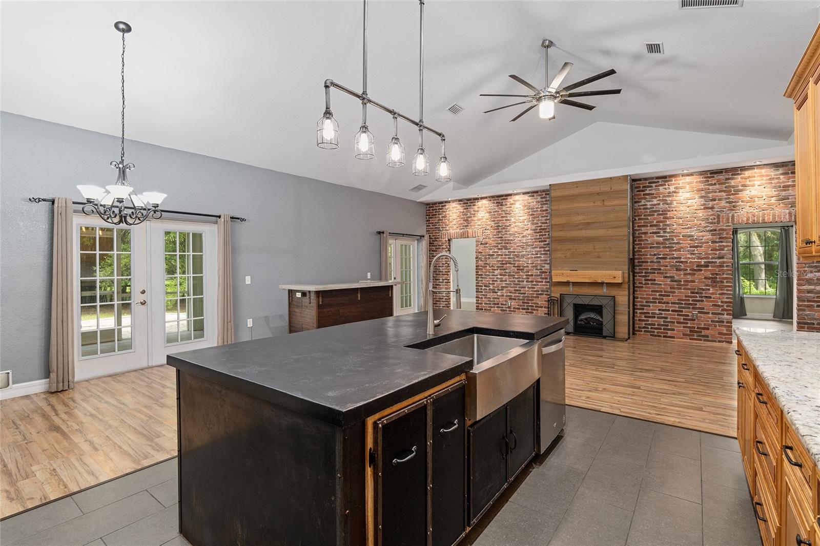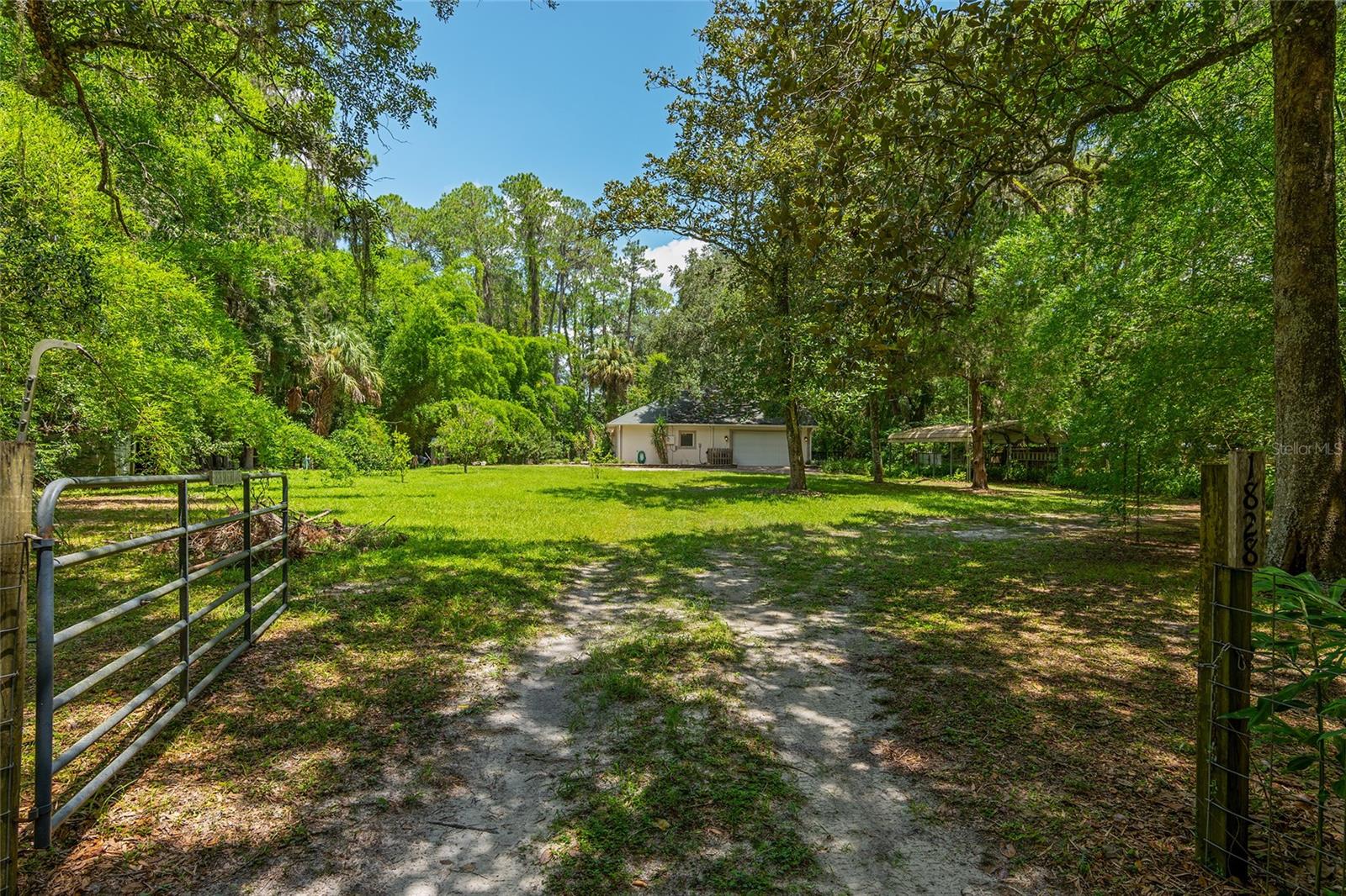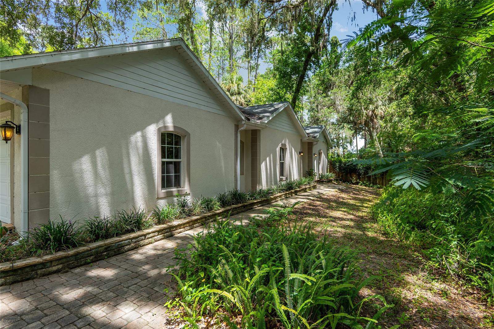 Explore this unique, custom-built 4-bedroom, 4-bathroom home that offers a mix of style, comfort, and practicality. Featuring a thoughtful split floor plan, this residence provides ample privacy and space for everyone. Designed with no carpet, the home features ceramic tile and laminate flooring throughout, making it both sophisticated and easy to maintain. The kitchen stands out with its concrete island, offering plenty of room for cooking and entertaining. Additionally, the kitchen has ample storage space, making it as functional as it is stylish. The living area includes a cozy fireplace and a brick accent wall, creating a warm atmosphere for quiet evenings. Adjacent to the kitchen, a Florida room opens to a private, equestrian-style yard. This landscaped space, complete with citrus and banana trees, offers a secluded, country feel while still being conveniently close to downtown. Located just minutes from Paynes Prairie and a short drive to the University of Florida, Shands Hospital, and the VA, this home is well-situated. It is also near the UF Horse Training Unit and offers easy access to I-75. Experience a blend of country tranquility and city convenience in this home. Schedule your private showing today.