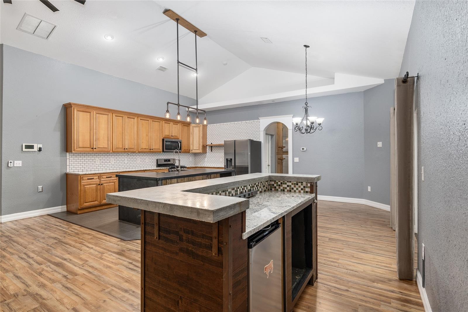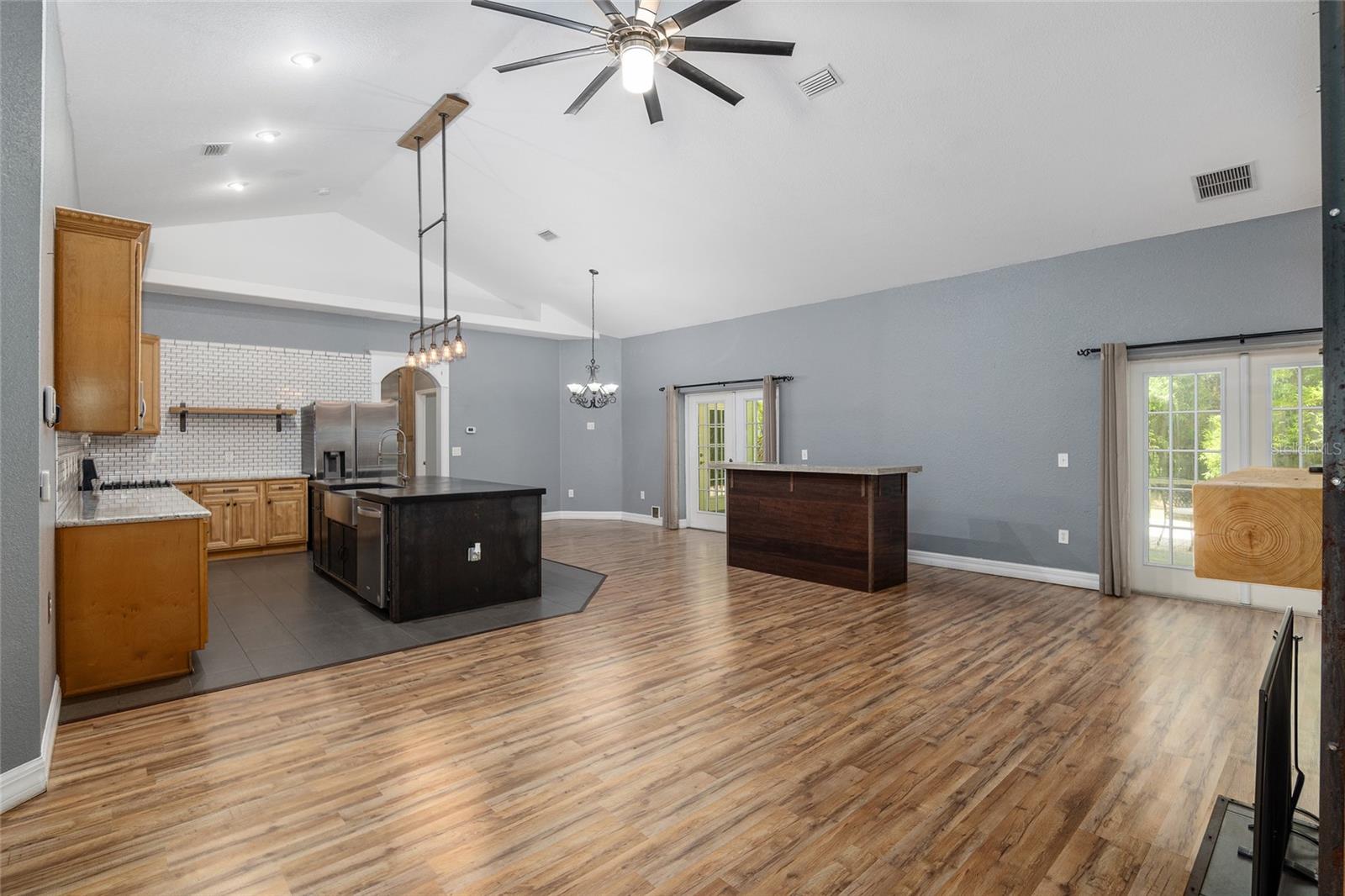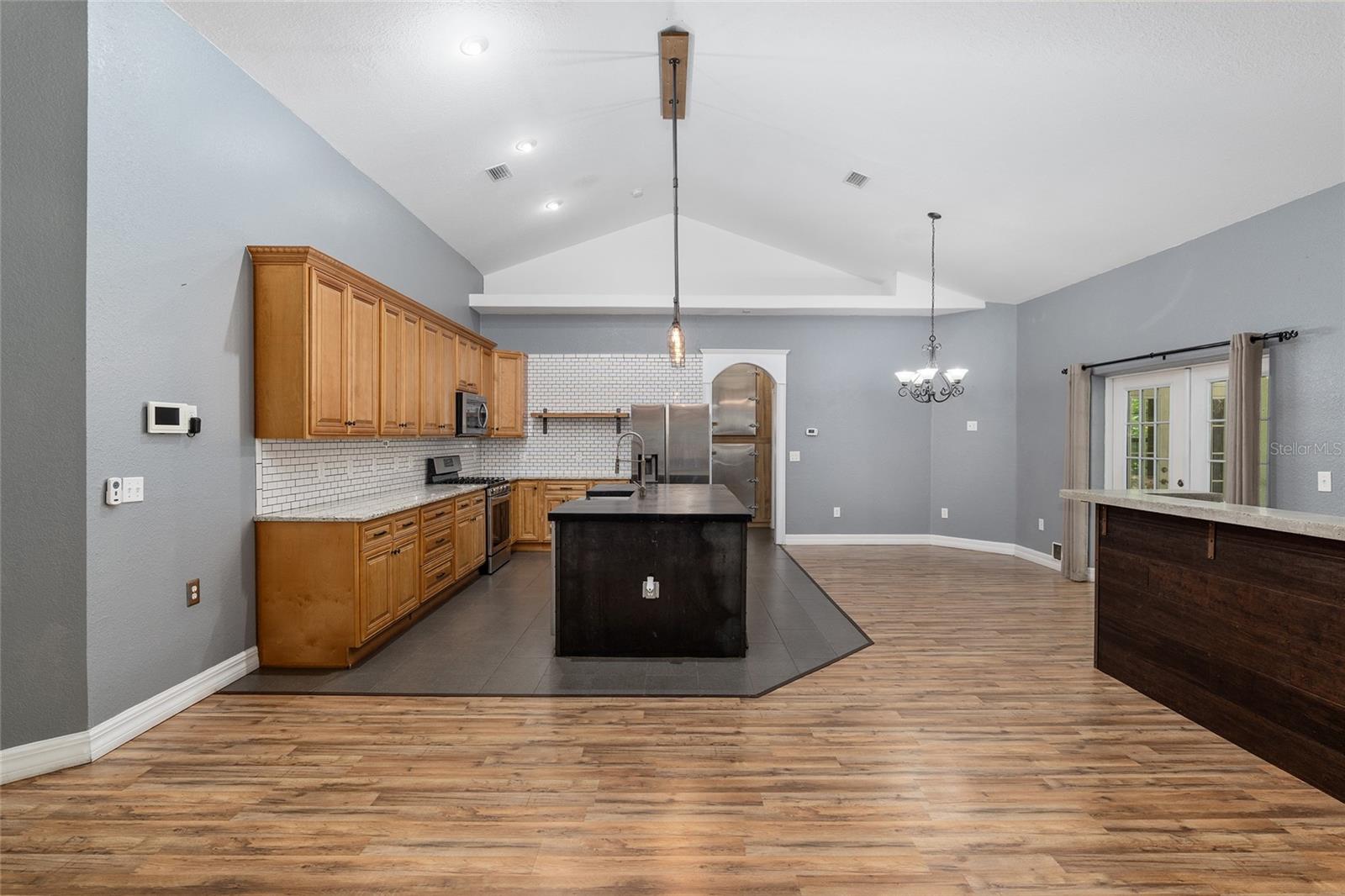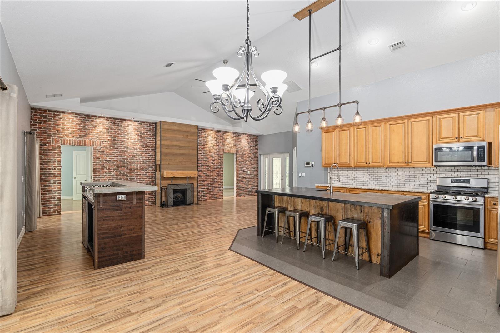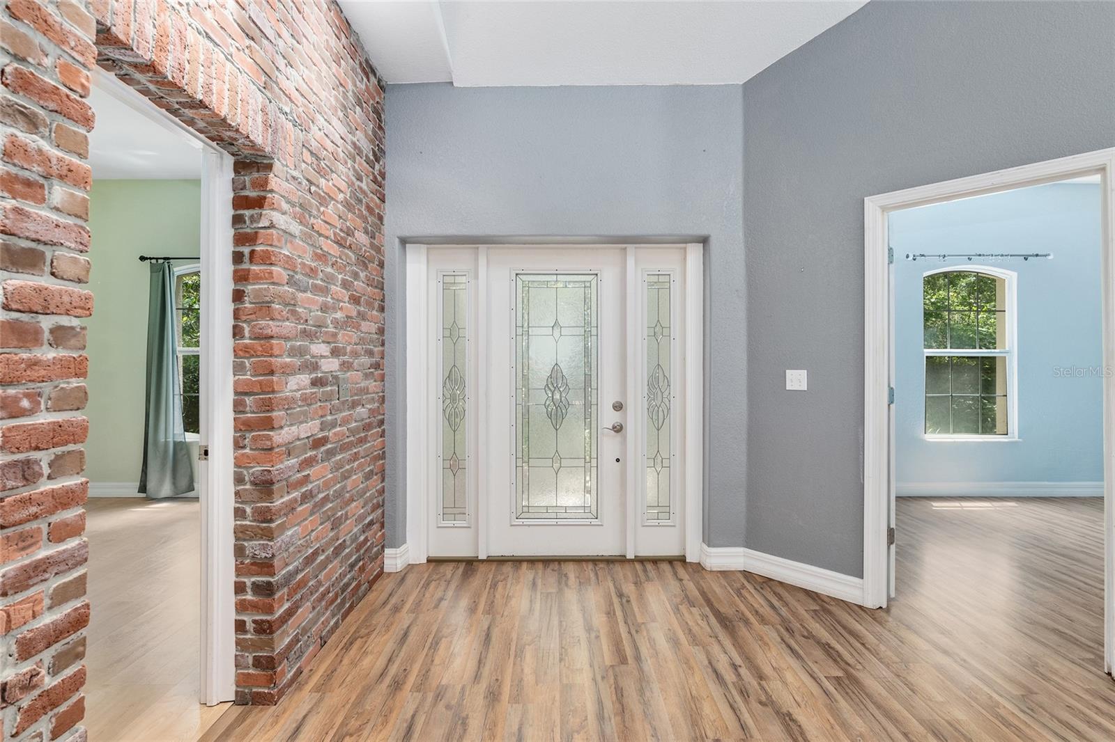 Explore this unique, custom-built 4-bedroom, 4-bathroom home that offers a mix of style, comfort, and practicality. Featuring a thoughtful split floor plan, this residence provides ample privacy and space for everyone. Designed with no carpet, the home features ceramic tile and laminate flooring throughout, making it both sophisticated and easy to maintain. The kitchen stands out with its concrete island, offering plenty of room for cooking and entertaining. Additionally, the kitchen has ample storage space, making it as functional as it is stylish. The living area includes a cozy fireplace and a brick accent wall, creating a warm atmosphere for quiet evenings. Adjacent to the kitchen, a Florida room opens to a private, equestrian-style yard. This landscaped space, complete with citrus and banana trees, offers a secluded, country feel while still being conveniently close to downtown. Located just minutes from Paynes Prairie and a short drive to the University of Florida, Shands Hospital, and the VA, this home is well-situated. It is also near the UF Horse Training Unit and offers easy access to I-75. Experience a blend of country tranquility and city convenience in this home. Schedule your private showing today.