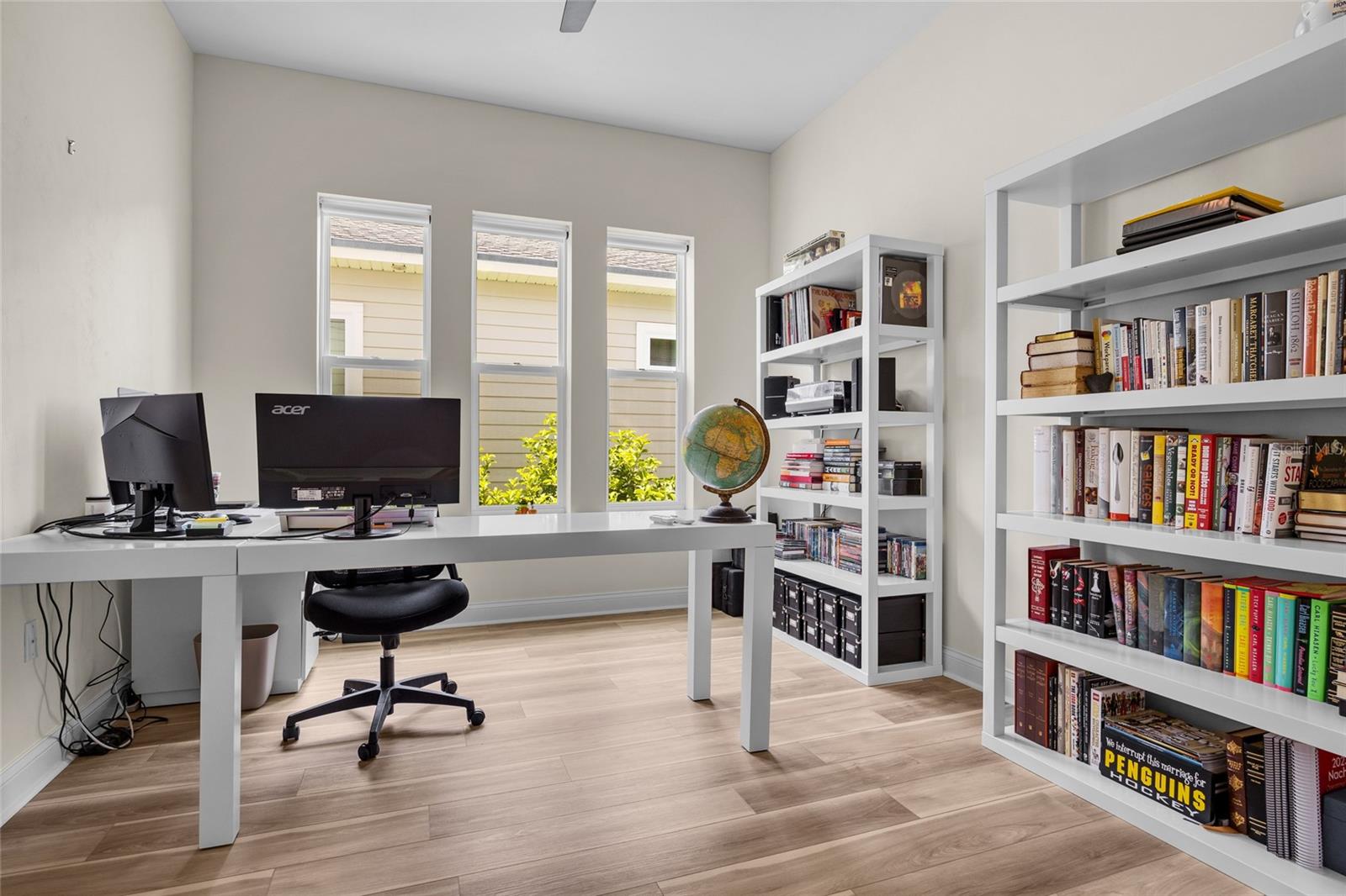 Welcome to your dream home in the beautiful Oakmont community! This stunning 3-bedroom plus office, 2.5-bath residence features a spacious three-car tandem garage and is loaded with premium upgrades. Inside, you'll find upgraded carpet, custom closet and pantry shelving, a camera system, window shades, and a luxurious primary shower with three shower heads to name a few. A functional utility/laundry room and a convenient half bath are located off the garage for added convenience. Situated close to Downtown and the picturesque countryside, this home offers unparalleled accessibility, being less than 15 minutes from the University of Florida and just 10 minutes from I-75. Major shopping centers, parks, and recreational areas are all nearby. Oakmont offers stylish, resort-style living in Gainesville, with 550 acres of natural beauty featuring playground areas, walking paths, a turtle reservation, and majestic live oak trees. The impressive Resident Club houses a state-of-the-art fitness center and a grand gathering room. Additional amenities include tennis courts, an amphitheater, a basketball court, a resort-style swimming pool with lap lanes, and a multi-purpose activity field. Experience the perfect blend of luxury and nature in this exceptional Oakmont home. Schedule your tour today! 9.2 miles from Shands Hospital. 6.7 miles from North Florida Hospital. 9.6 miles from Gator Football Ben Hill Griffin Stadium. 8.2 miles from UF.