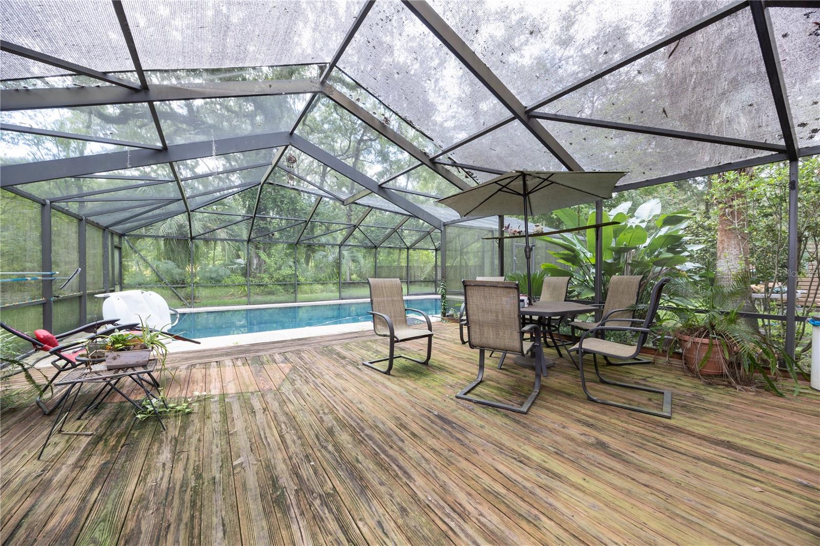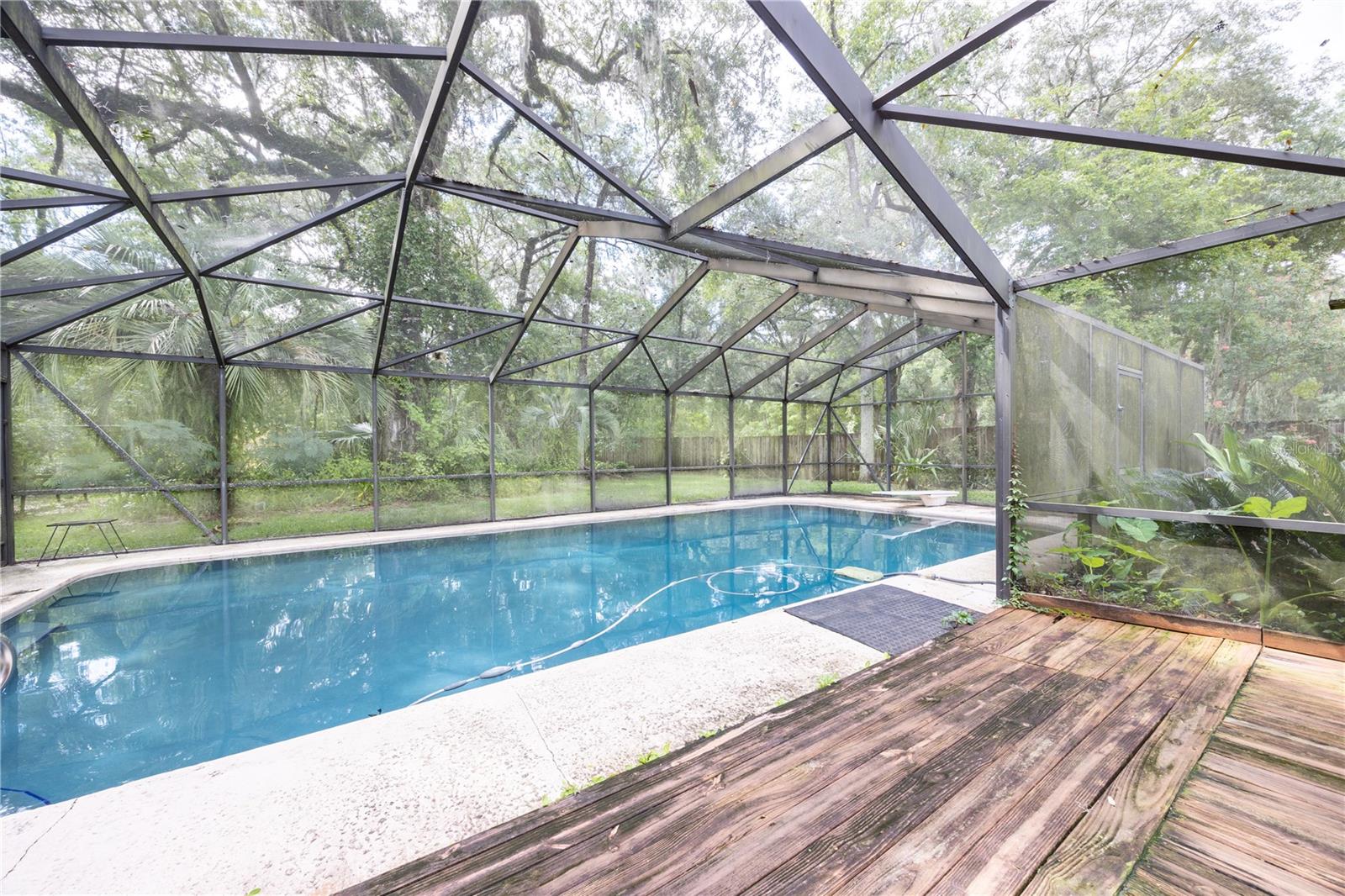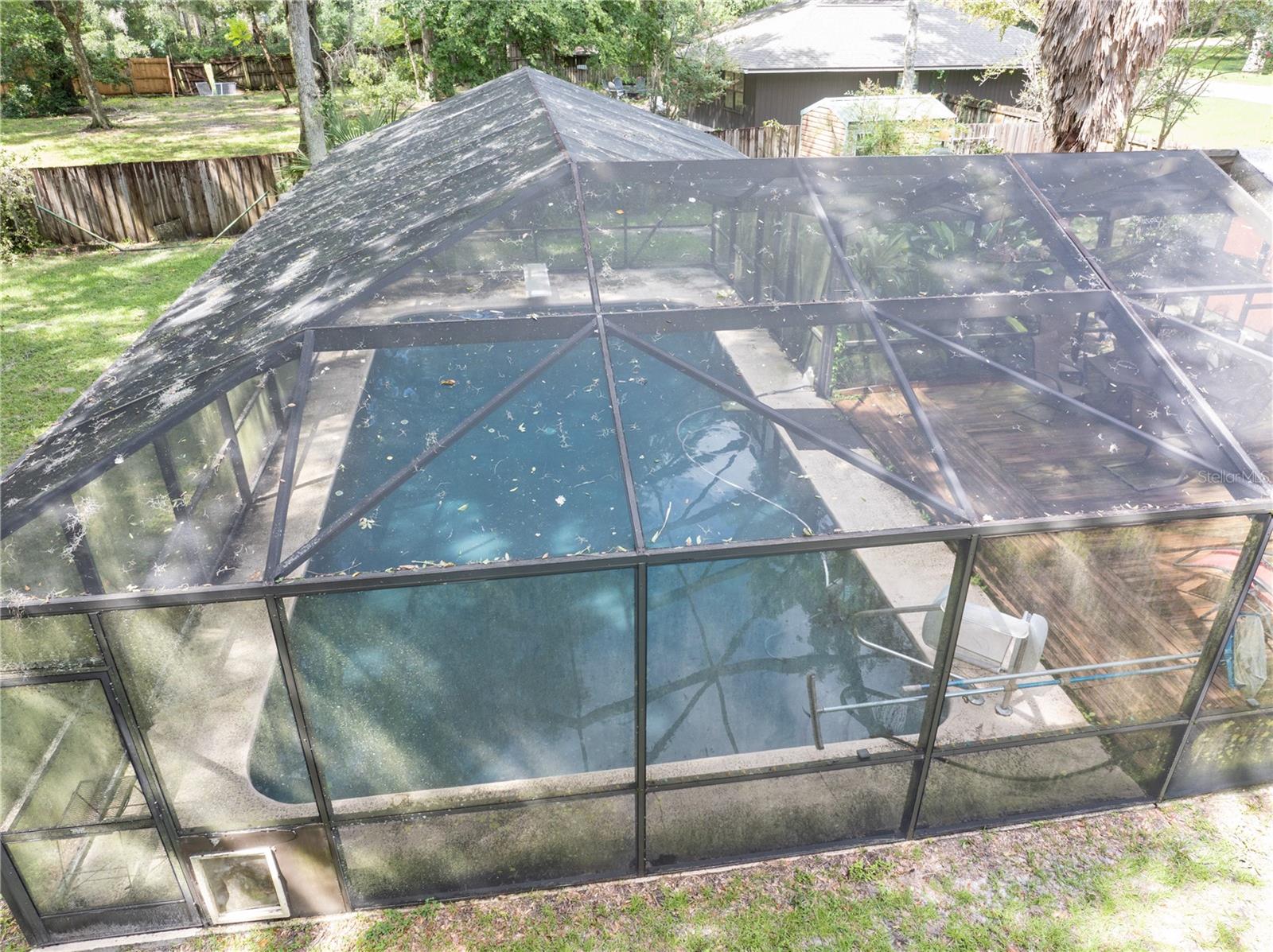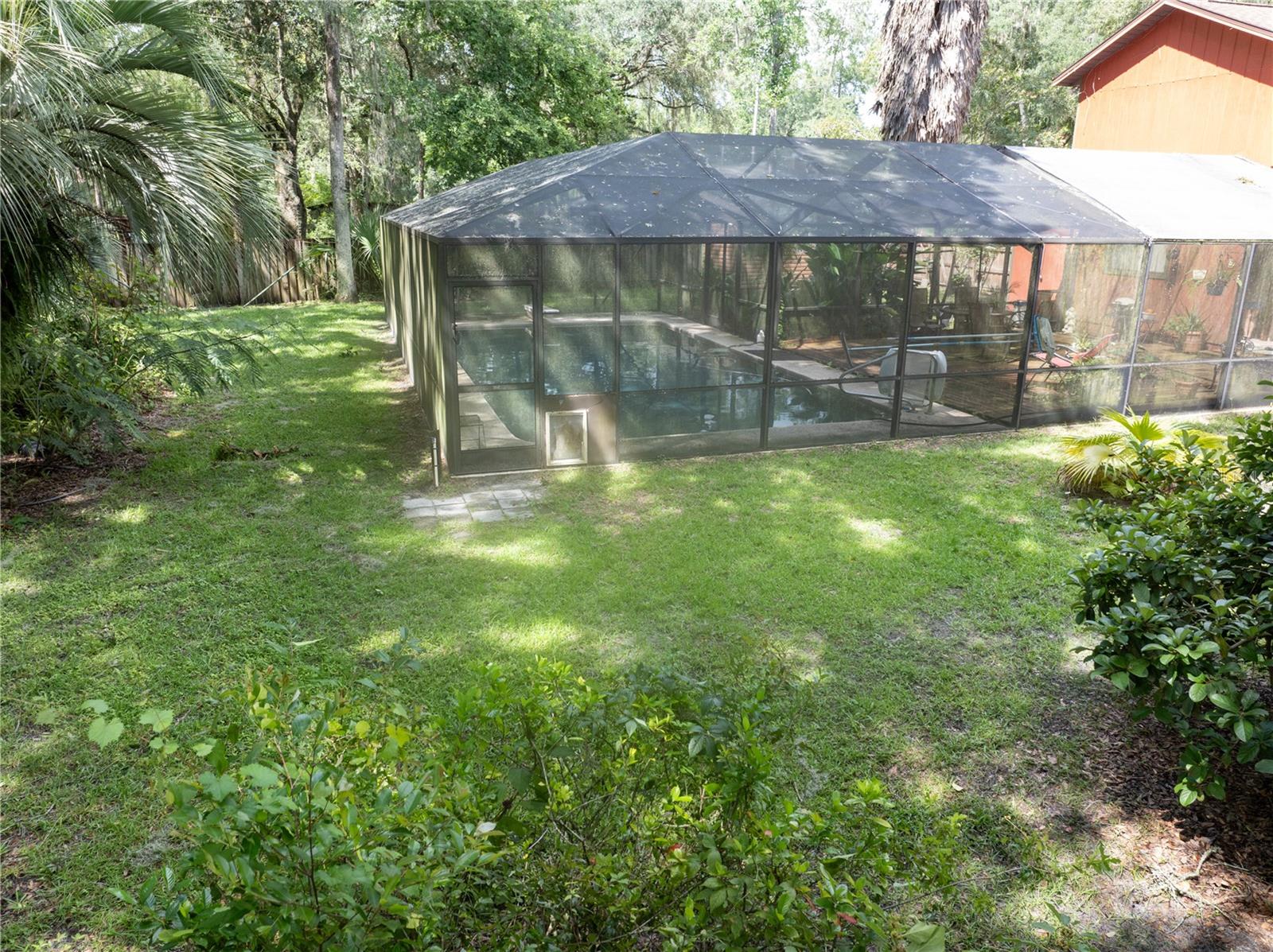 SELLER IS MOTIVATED!!!!! BRING OFFERS!!!!! Charming home in SW Gainesville. This 3 bedroom, 2 bath POOL home is looking for a new owner! Vaulted ceilings in living area with fireplace, Primary downstairs with 2 bedrooms and shared bath upstairs. Large screened in pool with deck area extends your living area. Pool bath outside with storage room. Storage shed stays with house. House is on a large lot that backs to wooded area so you have privacy. Roof 2018. Beautiful large trees grace your lot with numerous fruit trees. Great location to schools, shopping and easy access to I75. Call to see today!