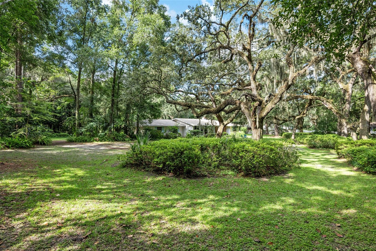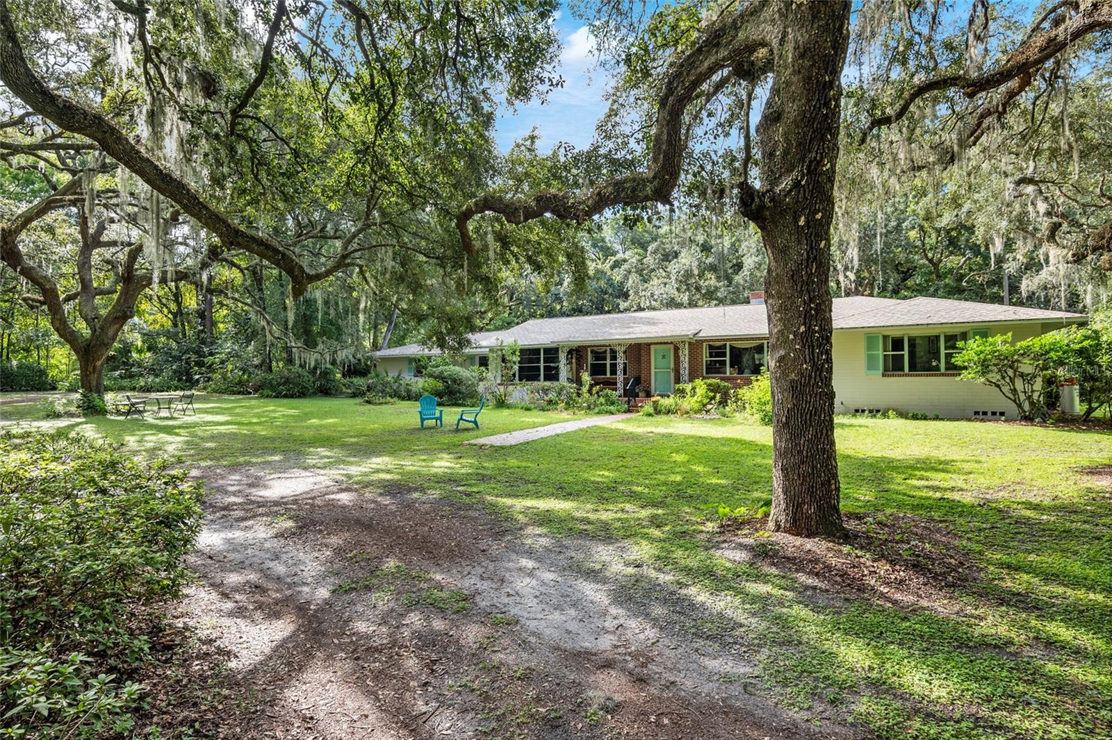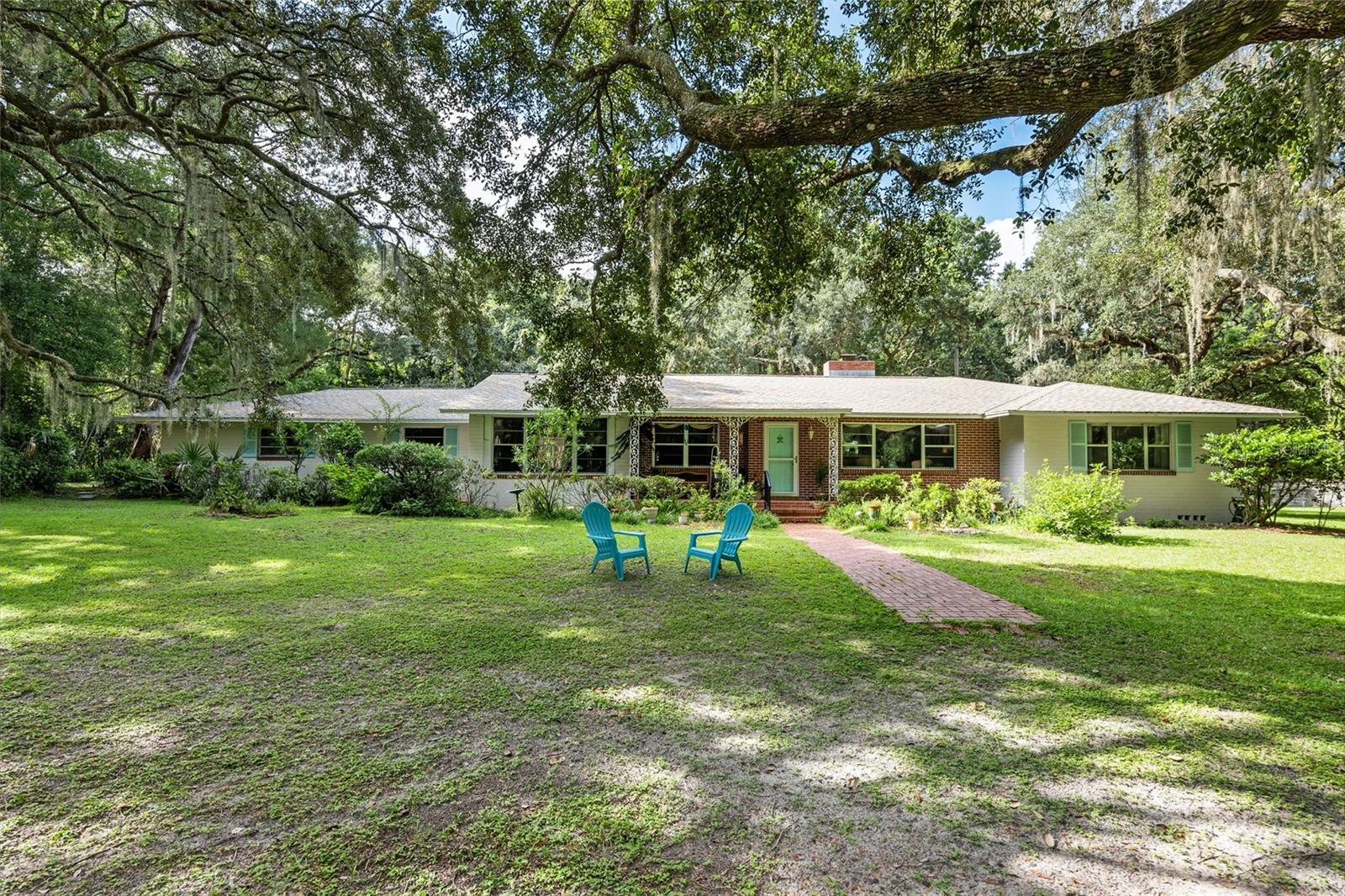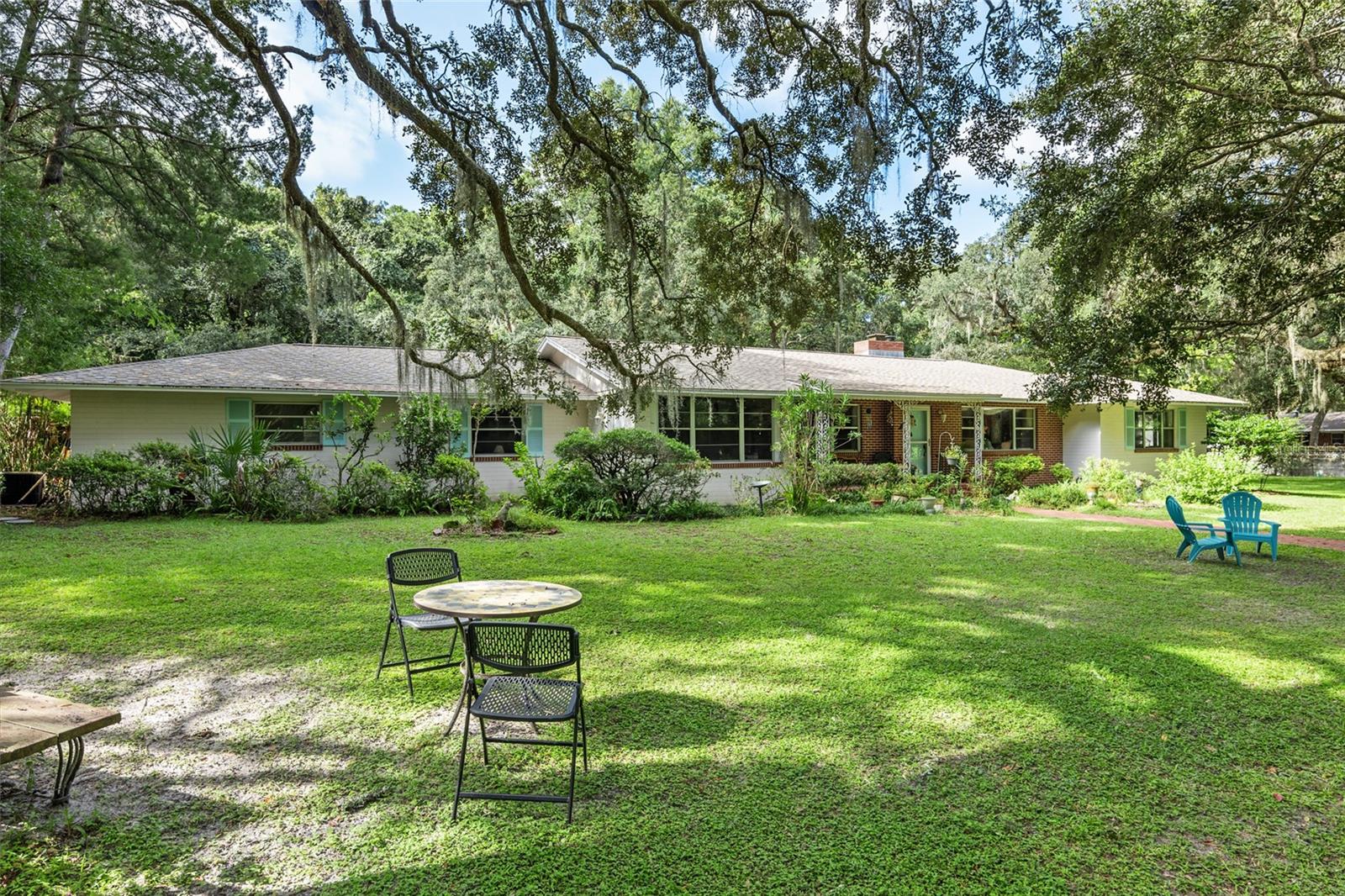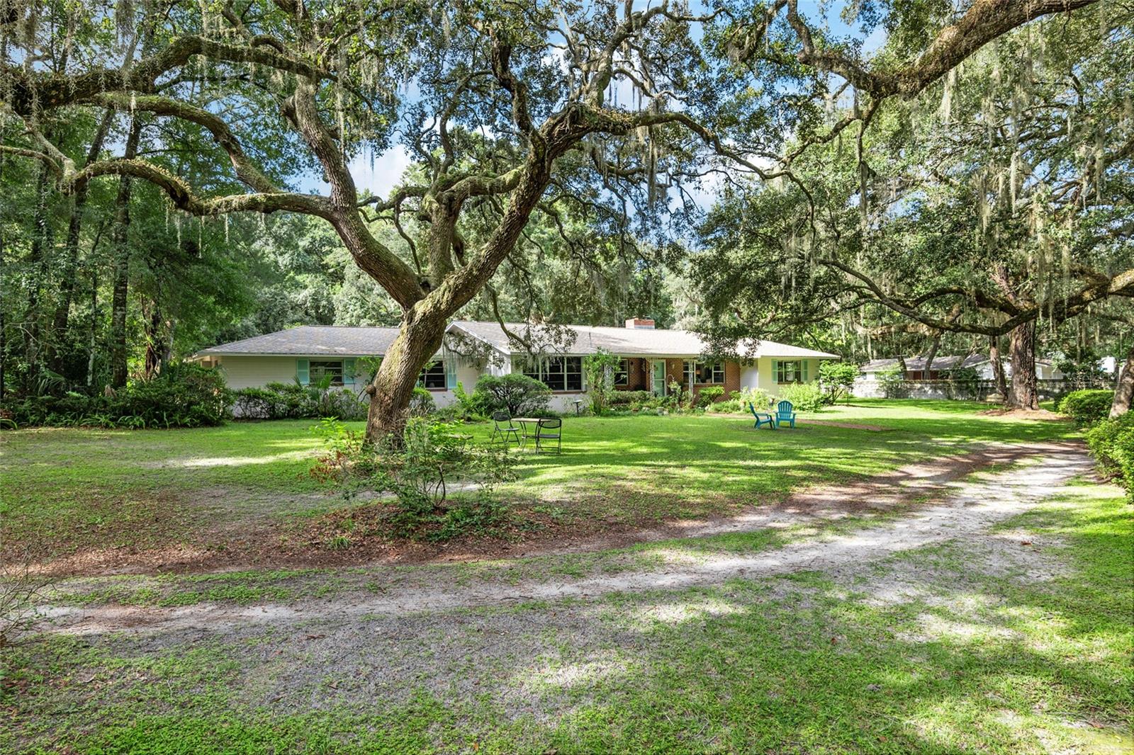 Experience the charm of this sprawling Mid-Century property! Located at the entrance of the Anglewood/Sugarfoot neighborhood, this one of a kind 2.11-acre oasis offers the perfect blend of space, privacy, and convenience right in the heart of town. This spacious concrete block home boasts 4 bedrooms, 3 bathrooms, an office, and a bonus room, providing ample space for living, working, and entertaining. The expansive rooms offer abundant storage, with solid wood floors throughout the main living areas and a cozy fireplace in the living room. The home is bathed in natural light, surrounded by stunning mature oak trees, fruit trees, and vibrant azaleas that enhance the serene atmosphere. Enjoy the peace of mind of a fully fenced yard with a gated entrance. Just a 5-minute drive to the University of Florida campus, right across the street from restaurants, shops and entertainment, this property offers the best of both worlds—a spacious retreat without sacrificing proximity to UF and your every day essentials. Don’t compromise on location or lifestyle—discover your piece of paradise today!