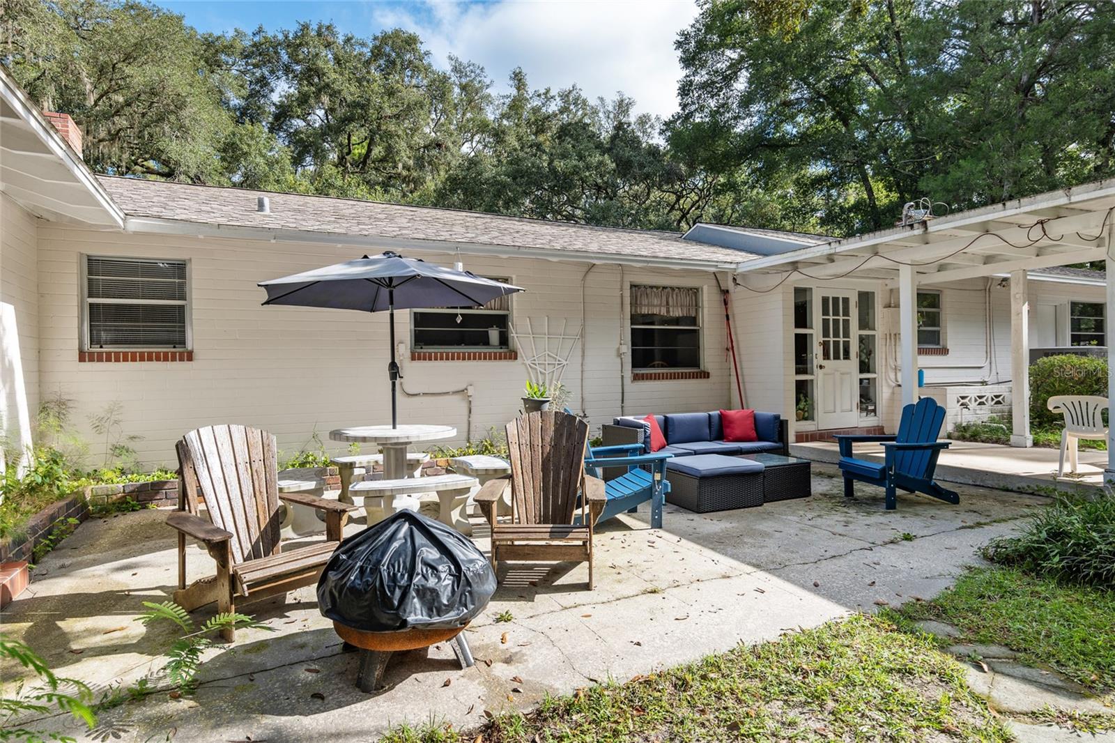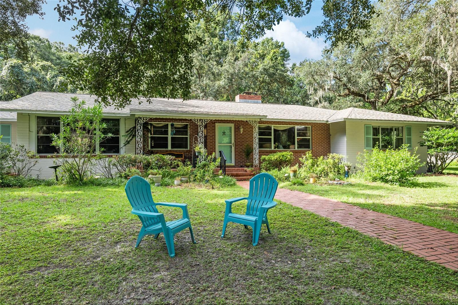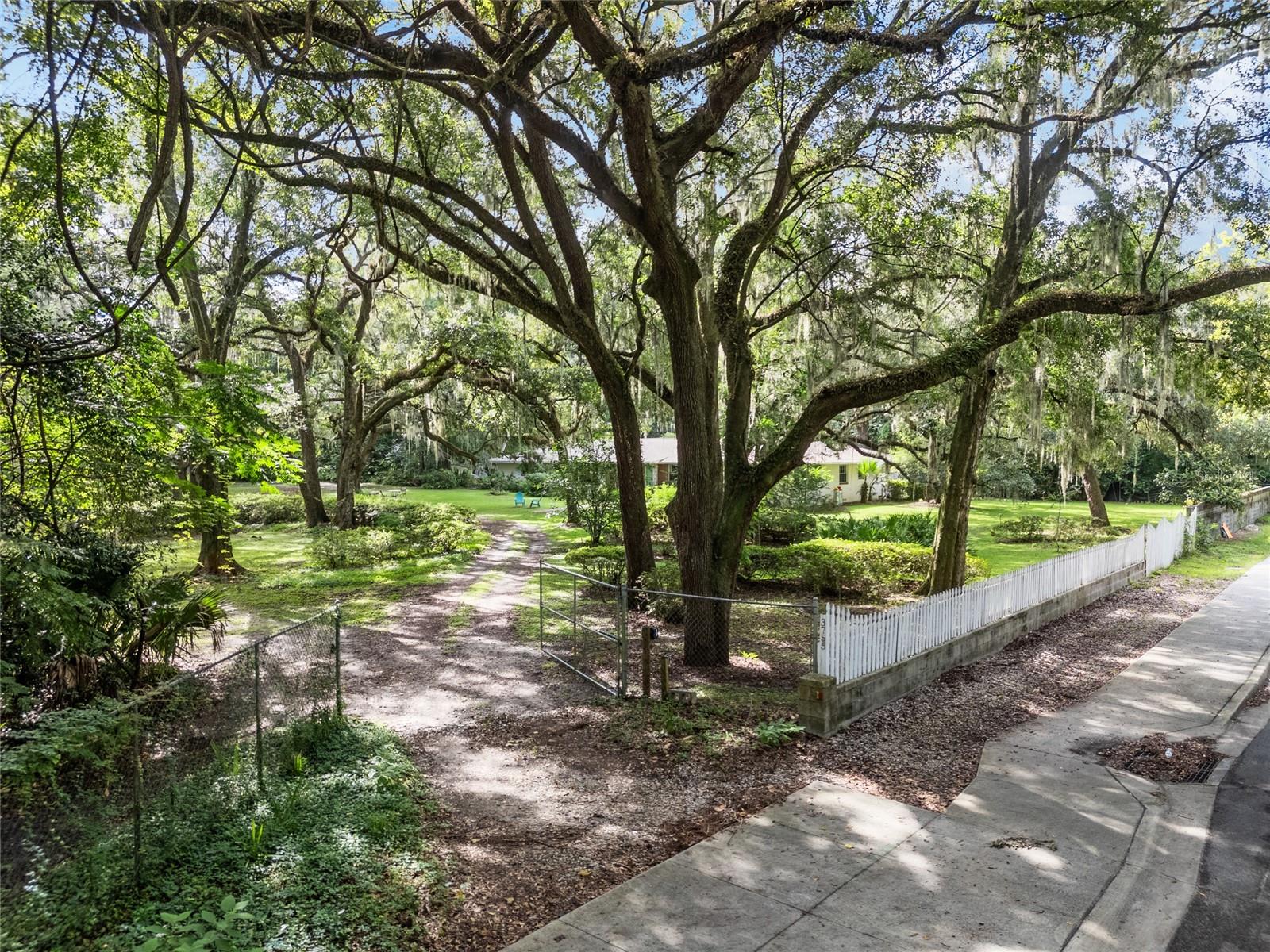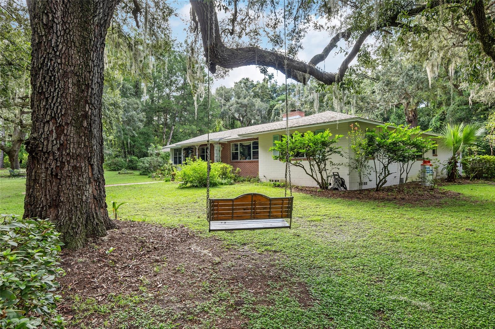 Experience the charm of this sprawling Mid-Century property! Located at the entrance of the Anglewood/Sugarfoot neighborhood, this one of a kind 2.11-acre oasis offers the perfect blend of space, privacy, and convenience right in the heart of town. This spacious concrete block home boasts 4 bedrooms, 3 bathrooms, an office, and a bonus room, providing ample space for living, working, and entertaining. The expansive rooms offer abundant storage, with solid wood floors throughout the main living areas and a cozy fireplace in the living room. The home is bathed in natural light, surrounded by stunning mature oak trees, fruit trees, and vibrant azaleas that enhance the serene atmosphere. Enjoy the peace of mind of a fully fenced yard with a gated entrance. Just a 5-minute drive to the University of Florida campus, right across the street from restaurants, shops and entertainment, this property offers the best of both worlds—a spacious retreat without sacrificing proximity to UF and your every day essentials. Don’t compromise on location or lifestyle—discover your piece of paradise today!