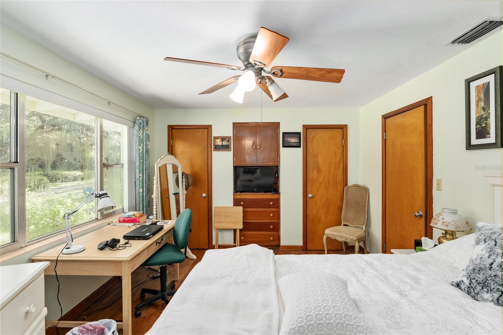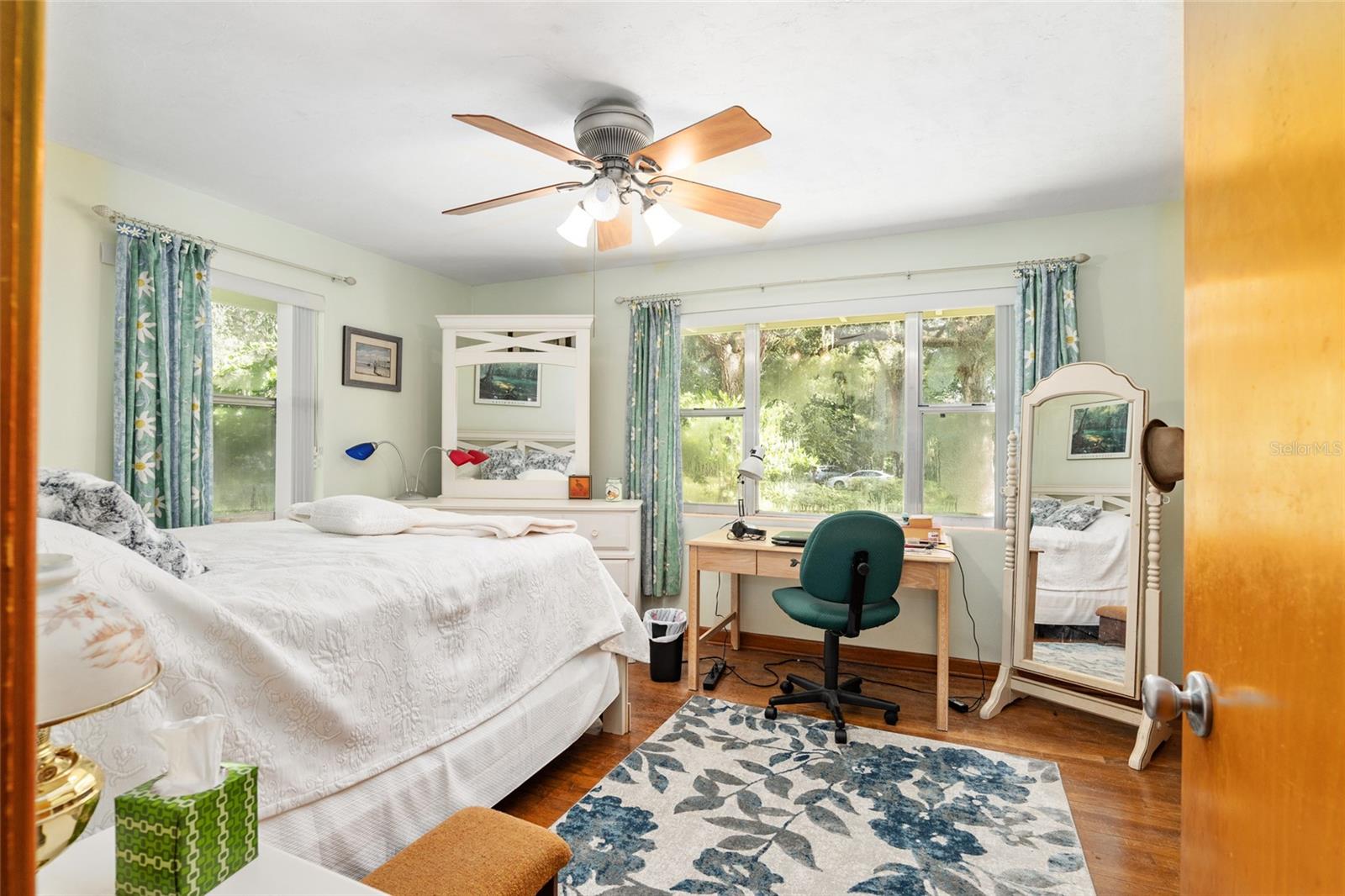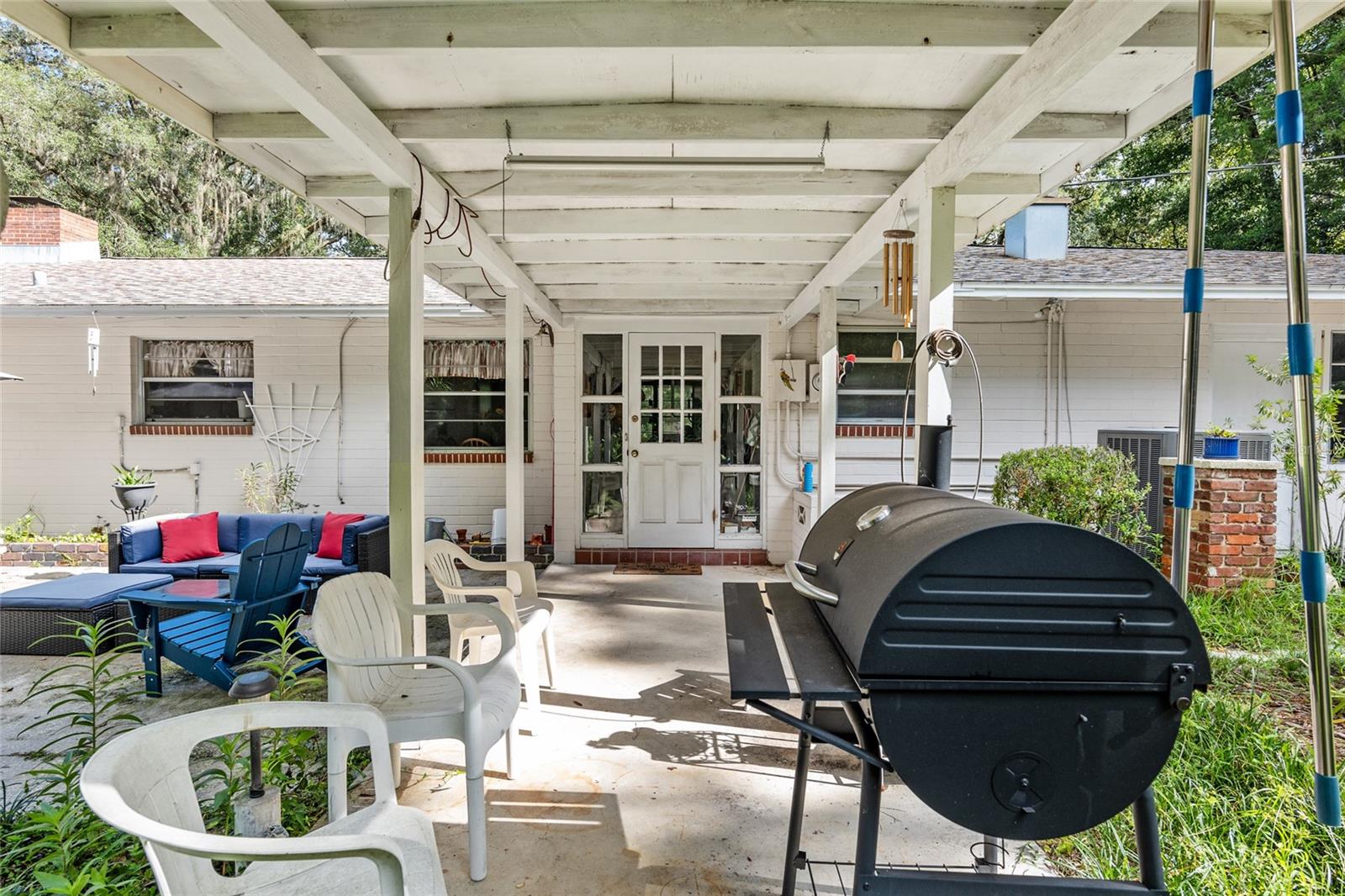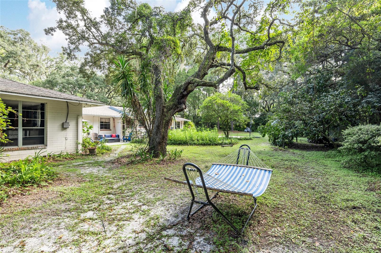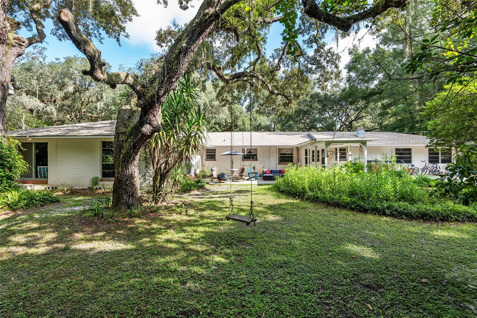 Experience the charm of this sprawling Mid-Century property! Located at the entrance of the Anglewood/Sugarfoot neighborhood, this one of a kind 2.11-acre oasis offers the perfect blend of space, privacy, and convenience right in the heart of town. This spacious concrete block home boasts 4 bedrooms, 3 bathrooms, an office, and a bonus room, providing ample space for living, working, and entertaining. The expansive rooms offer abundant storage, with solid wood floors throughout the main living areas and a cozy fireplace in the living room. The home is bathed in natural light, surrounded by stunning mature oak trees, fruit trees, and vibrant azaleas that enhance the serene atmosphere. Enjoy the peace of mind of a fully fenced yard with a gated entrance. Just a 5-minute drive to the University of Florida campus, right across the street from restaurants, shops and entertainment, this property offers the best of both worlds—a spacious retreat without sacrificing proximity to UF and your every day essentials. Don’t compromise on location or lifestyle—discover your piece of paradise today!