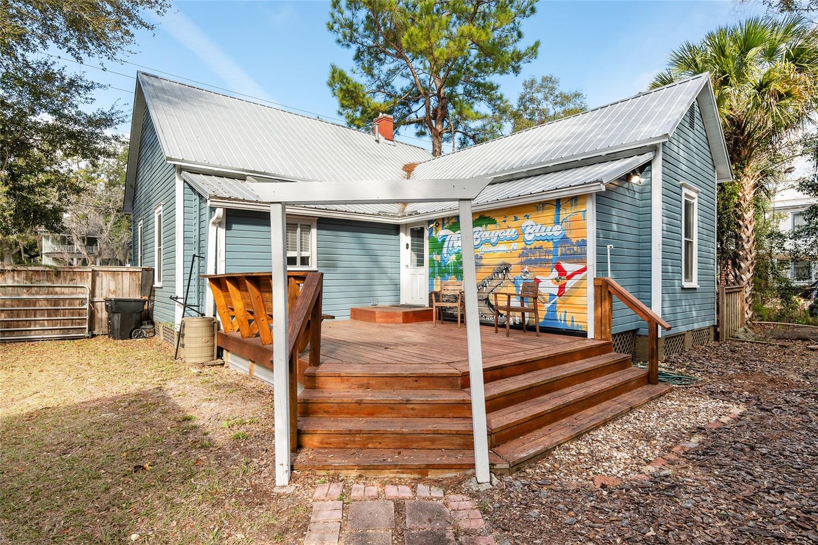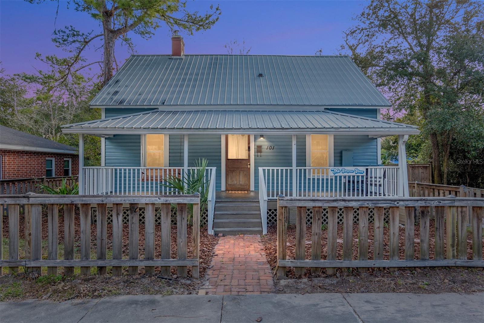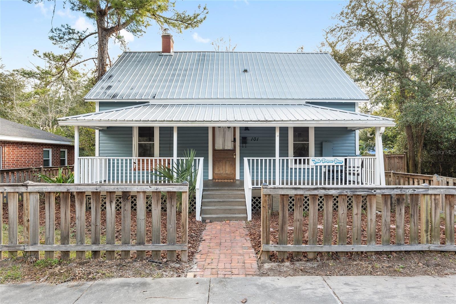 Introducing the newly refreshed “Bayou Blue,” a captivating property now vacant and beautifully staged for an unforgettable showing! Located in the heart of downtown Gainesville, this charming residence seamlessly combines historic character with modern luxury. With the tenants having moved out, it’s easy to envision your dream home here. This spacious four-bedroom, two-bathroom gem has been thoughtfully updated and is priced to sell. It boasts a striking double-sided brick fireplace, impressive 12-foot ceilings, and original wood floors that add to its unique charm. The well-equipped kitchen is ready for your culinary adventures, while the serene backyard, featuring custom art by a local artist, invites you to relax and enjoy outdoor gatherings. Enjoy the convenience of being near the vibrant DuckPond community, downtown Gainesville, and the University of Florida. Whether you’re seeking a solid investment or a future home, “Bayou Blue” is your ideal blend of charm and modern living. Don’t miss out on this amazing opportunity!