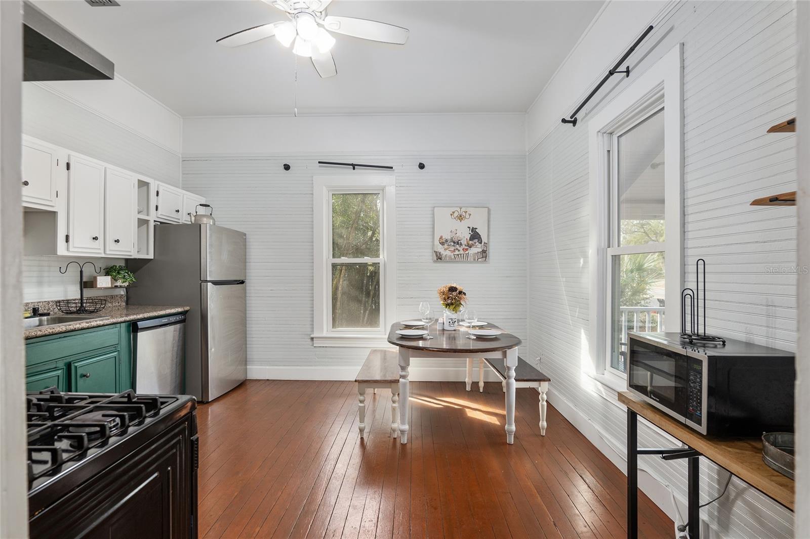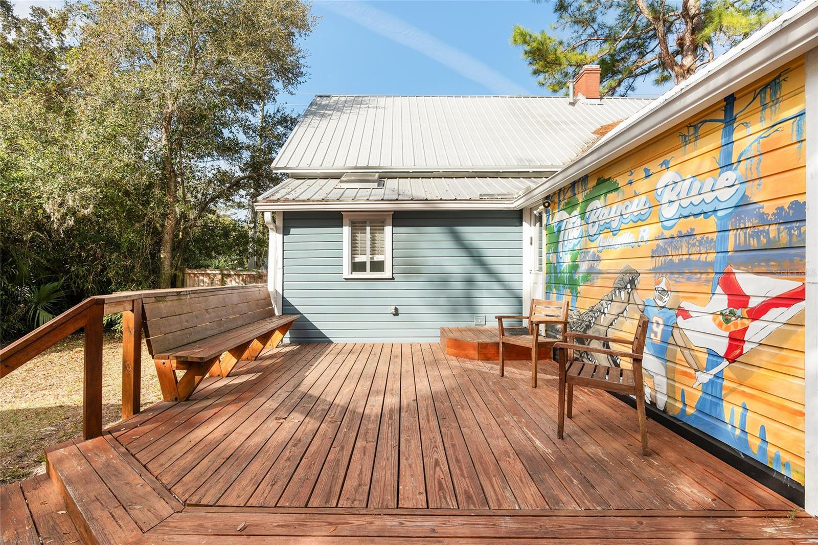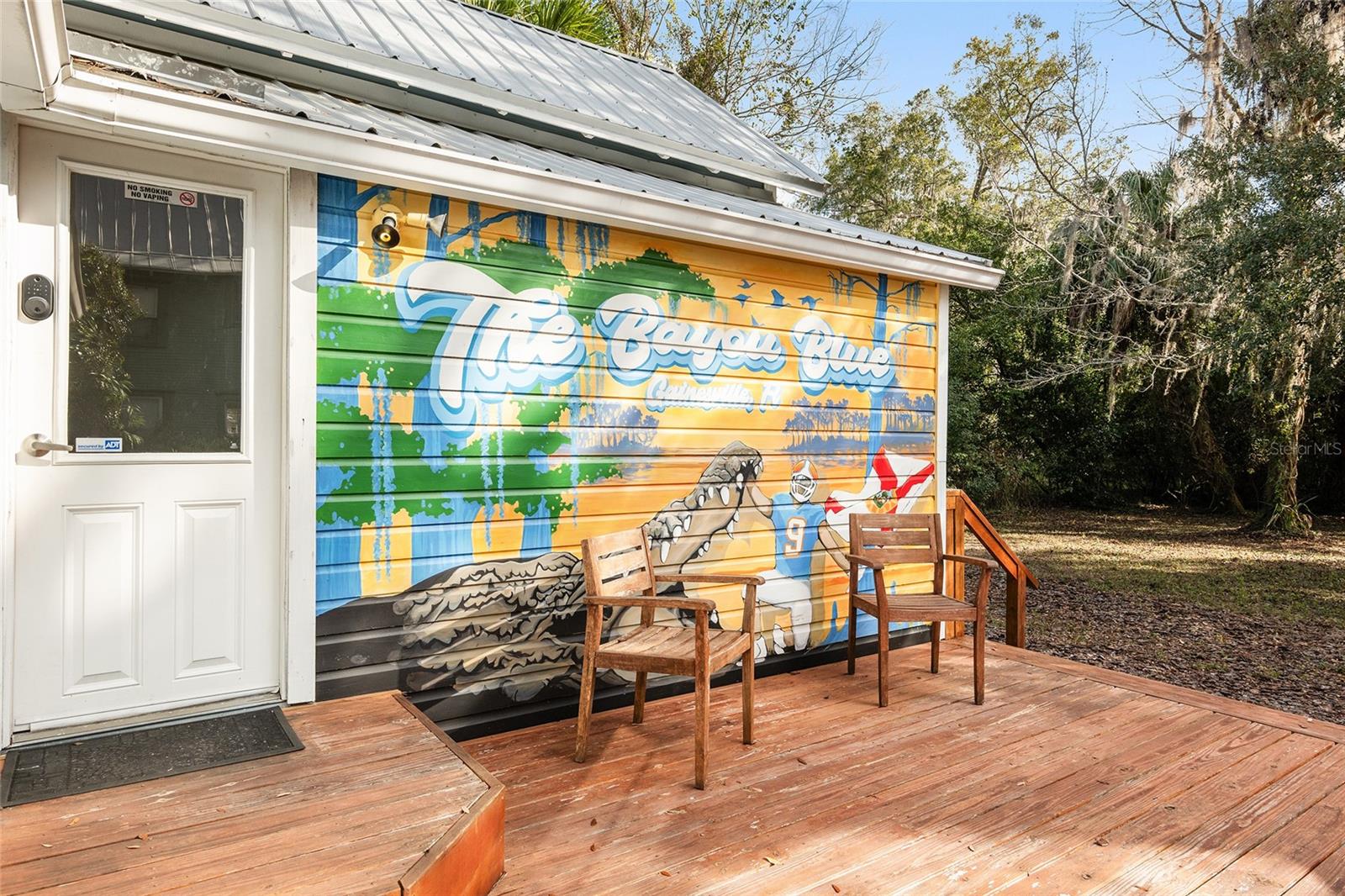 Introducing the newly refreshed “Bayou Blue,” a captivating property now vacant and beautifully staged for an unforgettable showing! Located in the heart of downtown Gainesville, this charming residence seamlessly combines historic character with modern luxury. With the tenants having moved out, it’s easy to envision your dream home here. This spacious four-bedroom, two-bathroom gem has been thoughtfully updated and is priced to sell. It boasts a striking double-sided brick fireplace, impressive 12-foot ceilings, and original wood floors that add to its unique charm. The well-equipped kitchen is ready for your culinary adventures, while the serene backyard, featuring custom art by a local artist, invites you to relax and enjoy outdoor gatherings. Enjoy the convenience of being near the vibrant DuckPond community, downtown Gainesville, and the University of Florida. Whether you’re seeking a solid investment or a future home, “Bayou Blue” is your ideal blend of charm and modern living. Don’t miss out on this amazing opportunity!