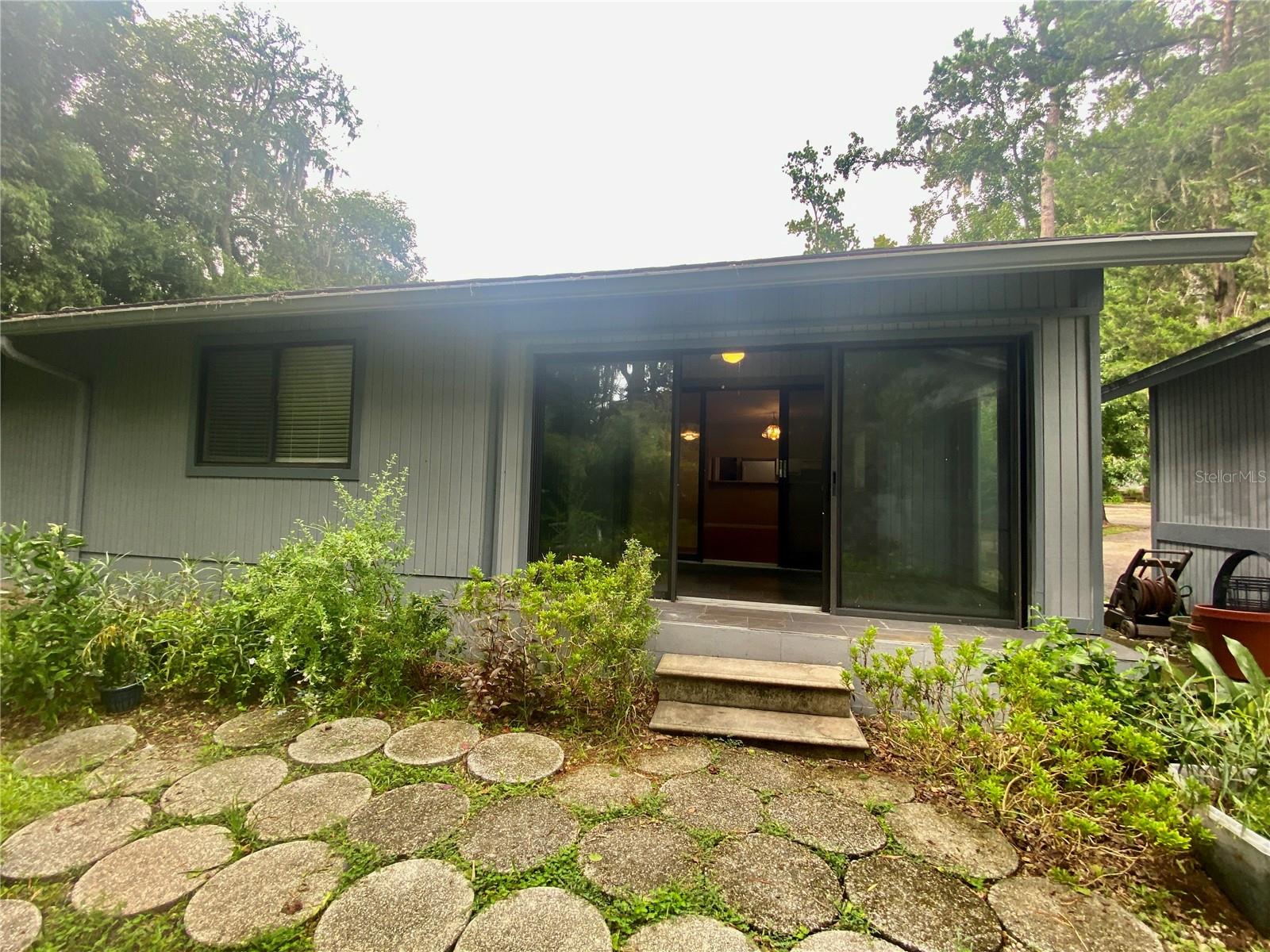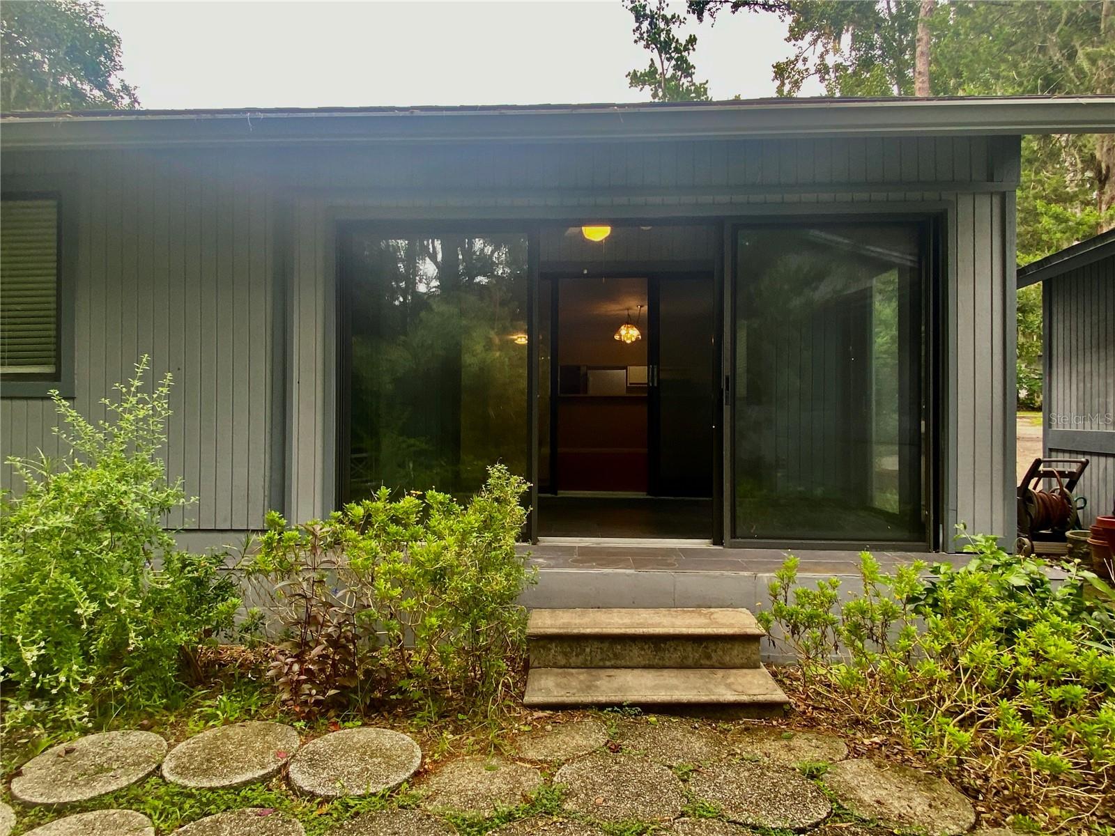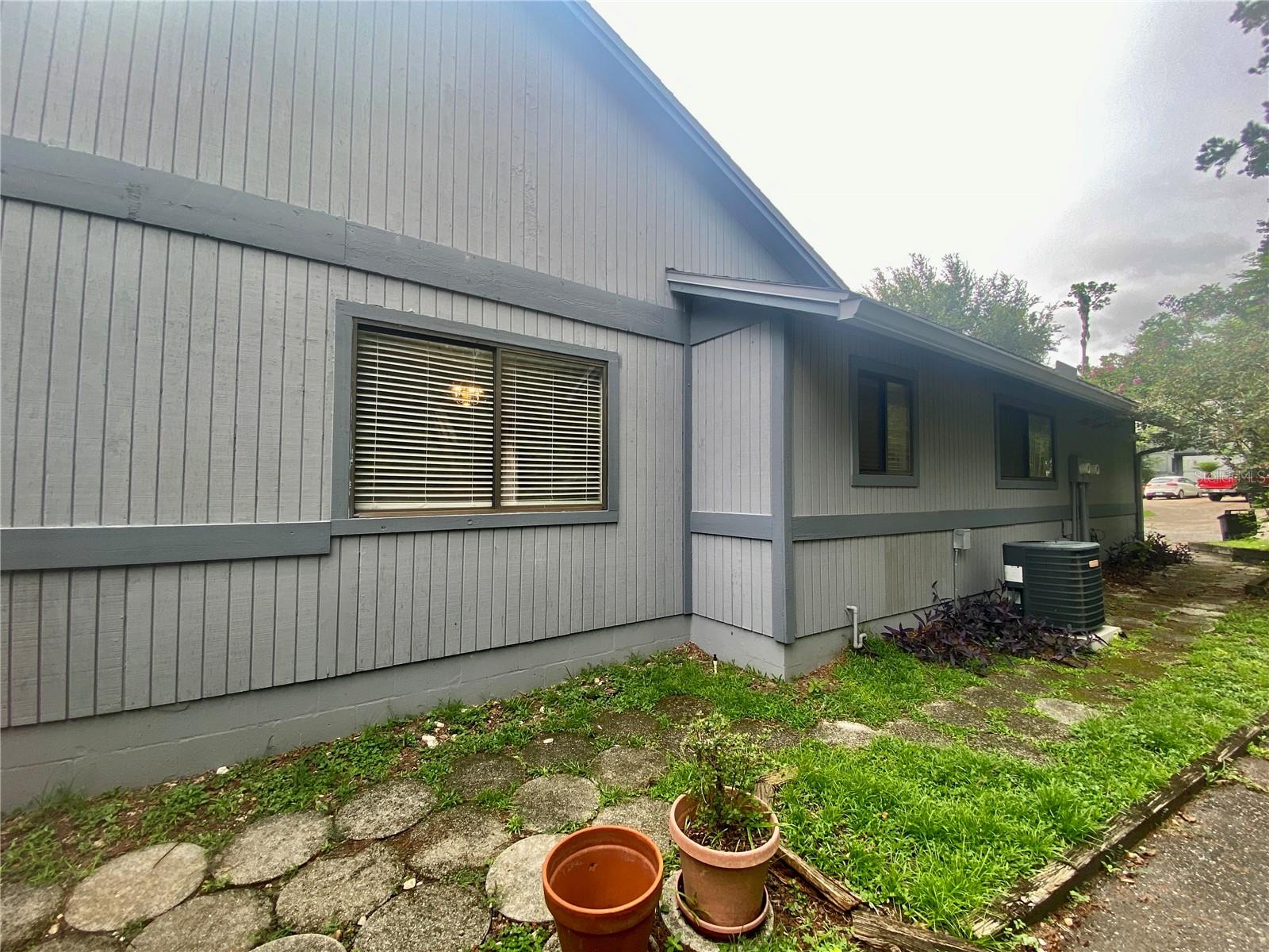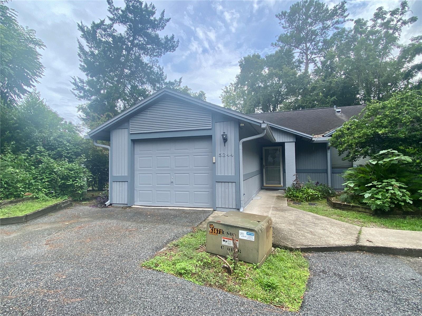 A 2BD/2BA house with an attached garage is located in Kingswood Court off NW 8th Ave and Newberry Rd. The house has wood laminate floors throughout, with tile in the bathrooms. The primary bedroom opens on the glass-enclosed patio, which looks into a small backyard filled with flowers and trees. The HVAC was replaced in 2014, the water heater in 2022, and the roof in 2012. Best of all, get your daily coffee fix at CYM Coffee Co., a short walk from your home. Your next home is waiting for you.