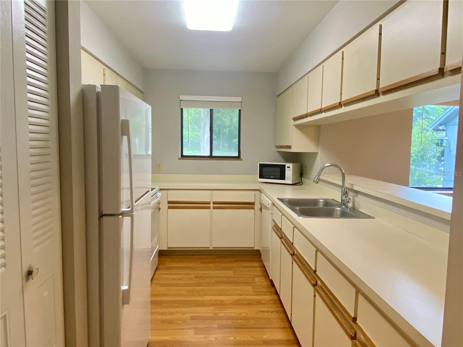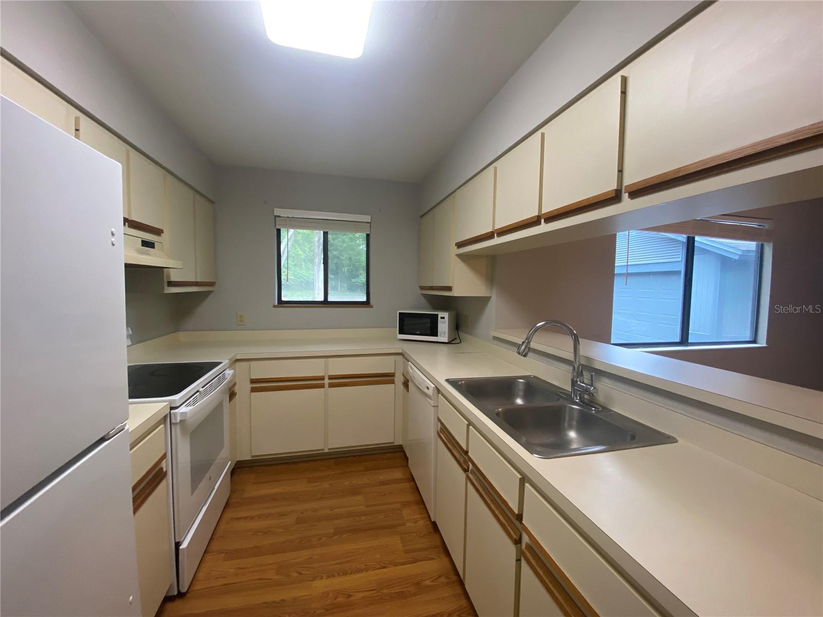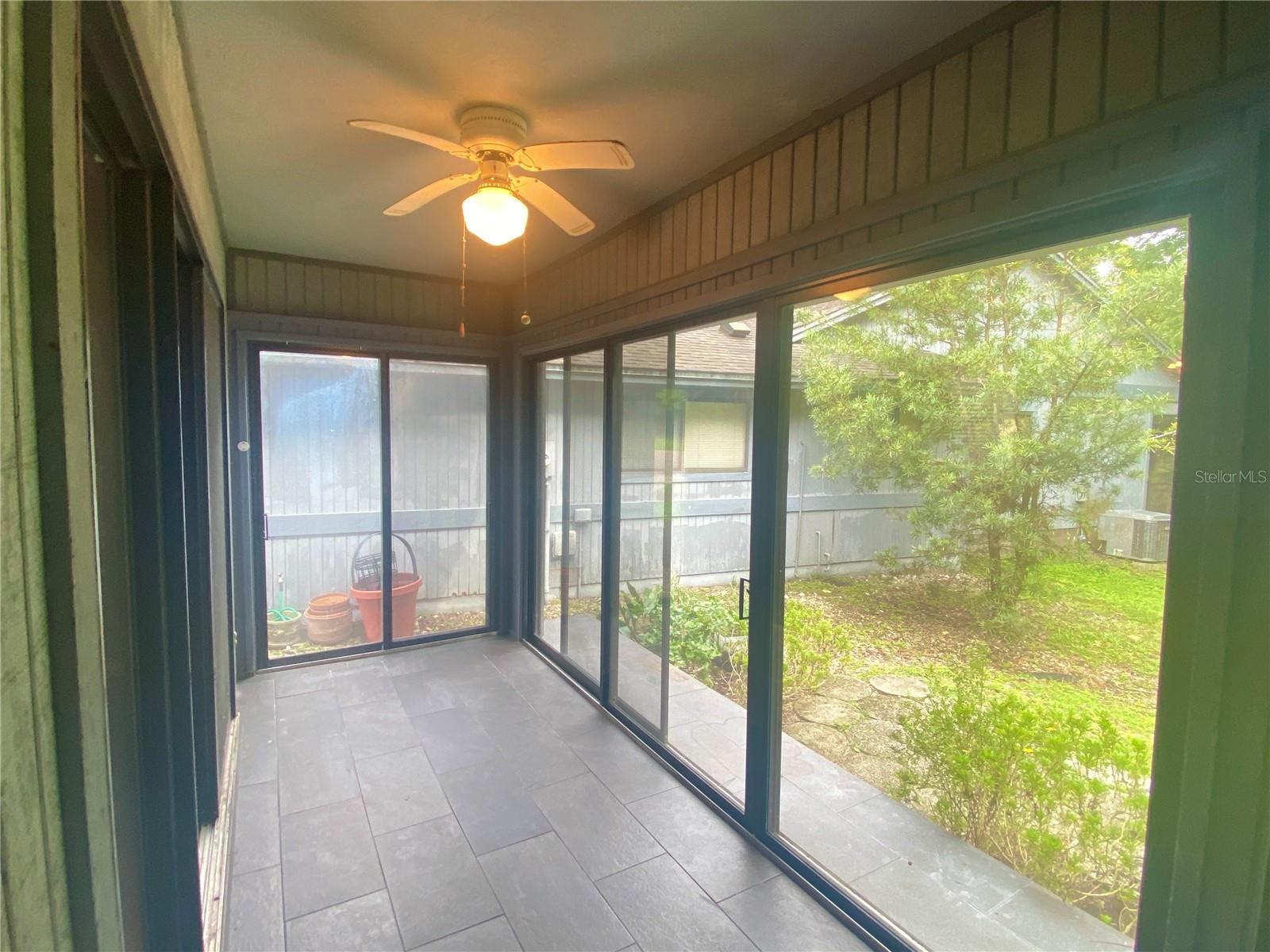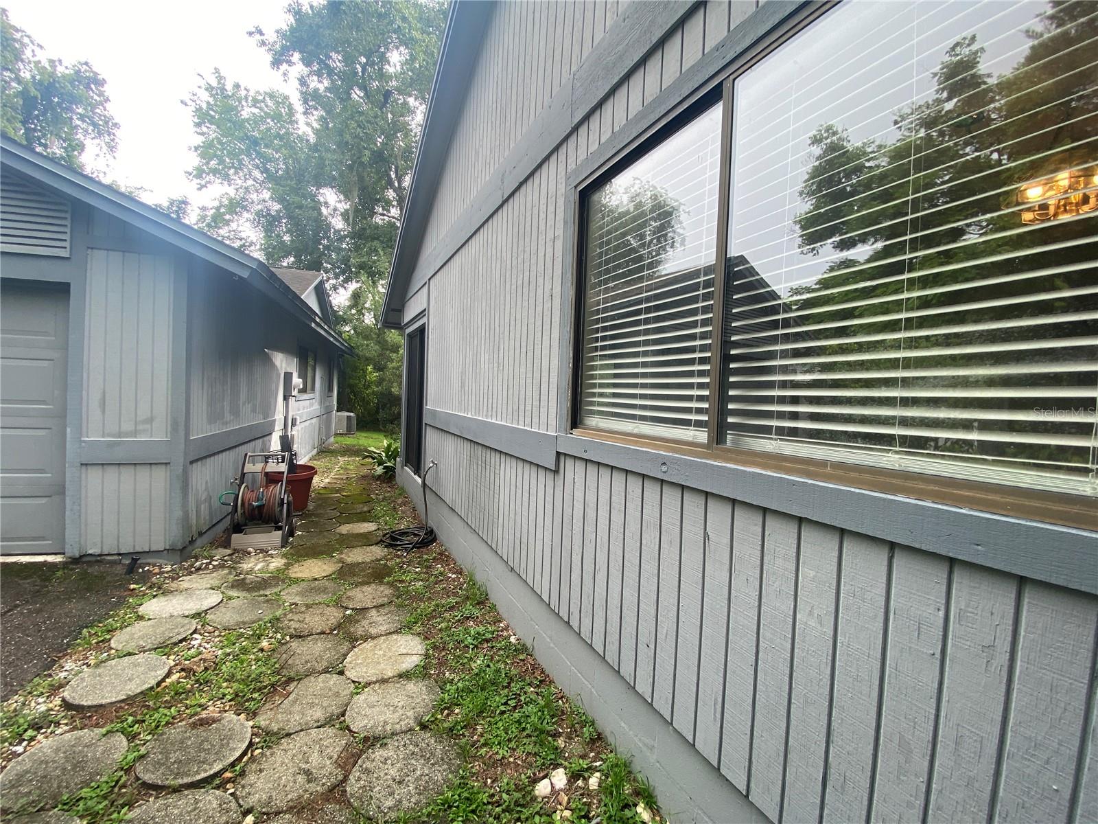 A 2BD/2BA house with an attached garage is located in Kingswood Court off NW 8th Ave and Newberry Rd. The house has wood laminate floors throughout, with tile in the bathrooms. The primary bedroom opens on the glass-enclosed patio, which looks into a small backyard filled with flowers and trees. The HVAC was replaced in 2014, the water heater in 2022, and the roof in 2012. Best of all, get your daily coffee fix at CYM Coffee Co., a short walk from your home. Your next home is waiting for you.