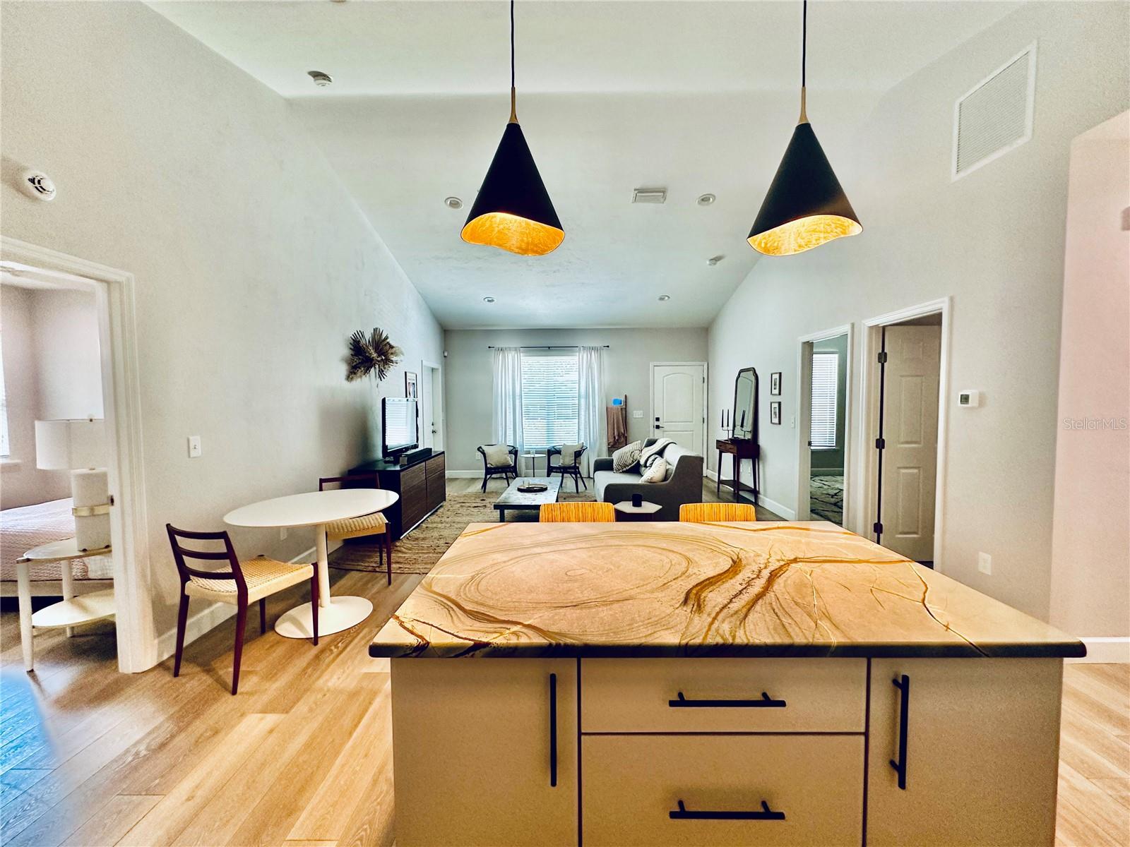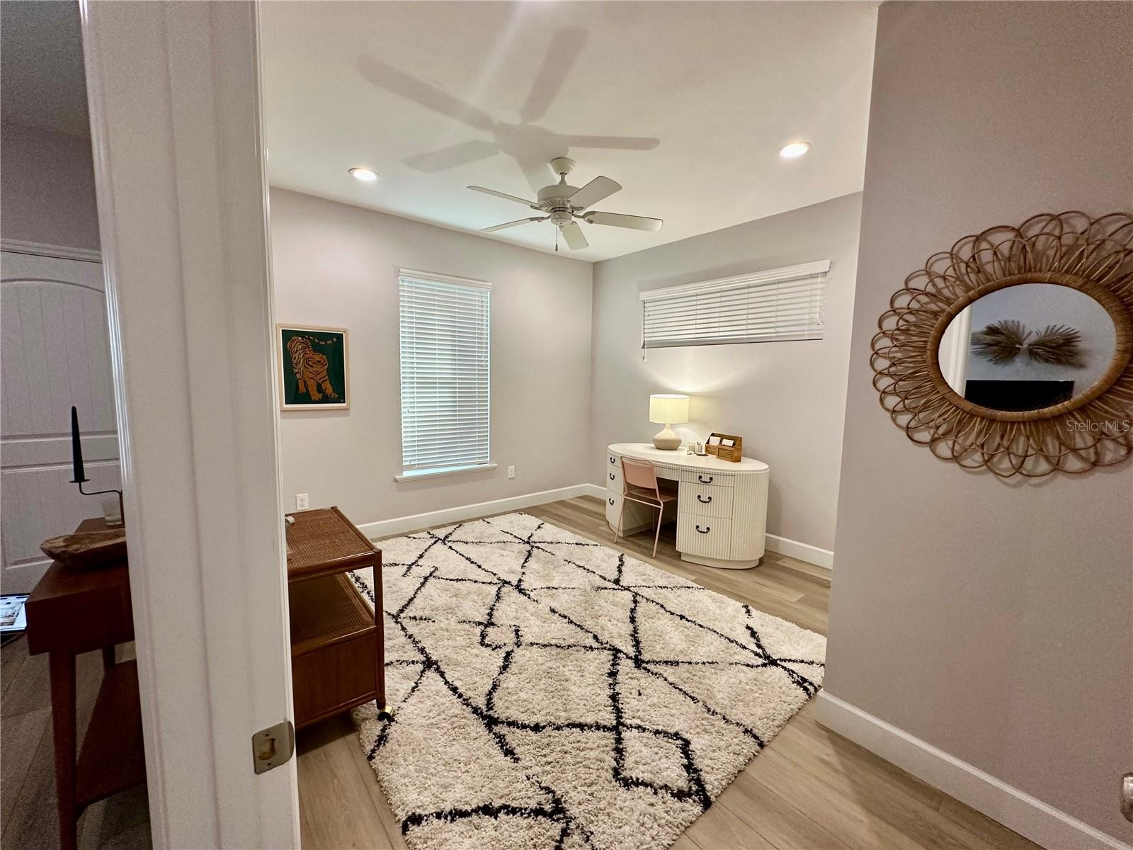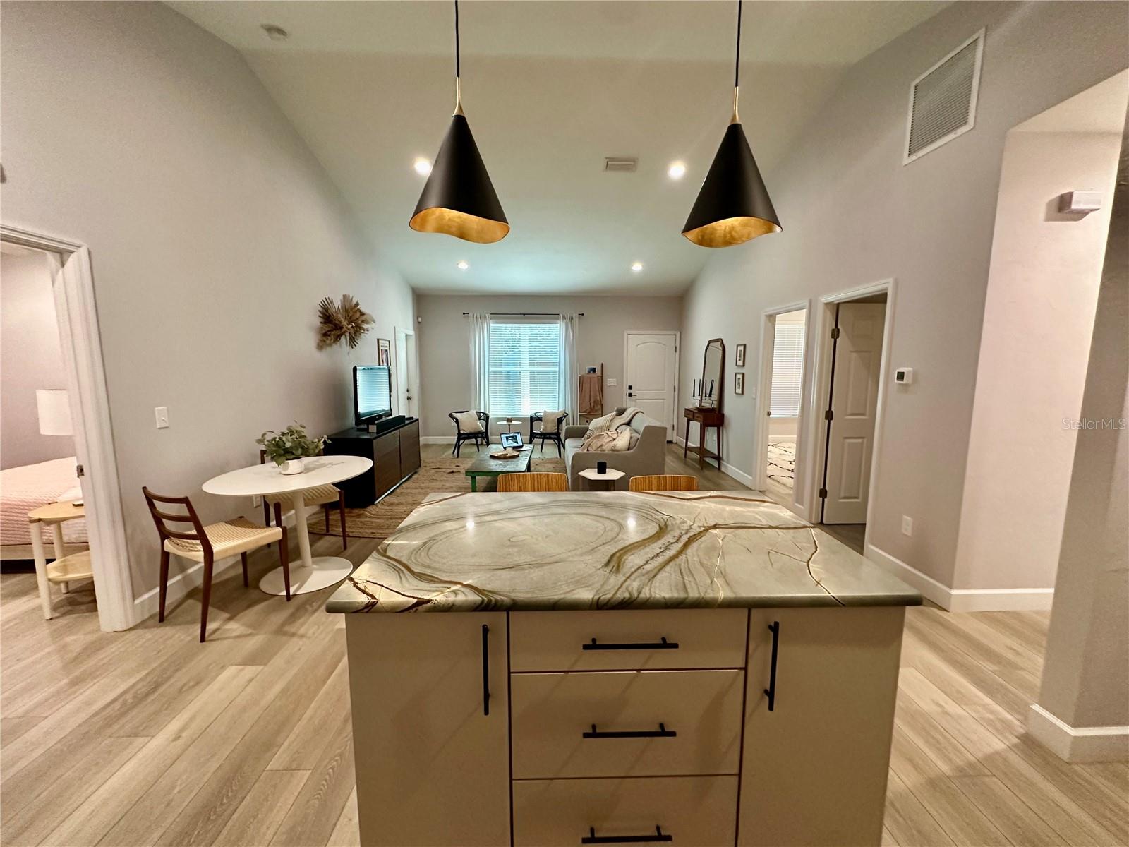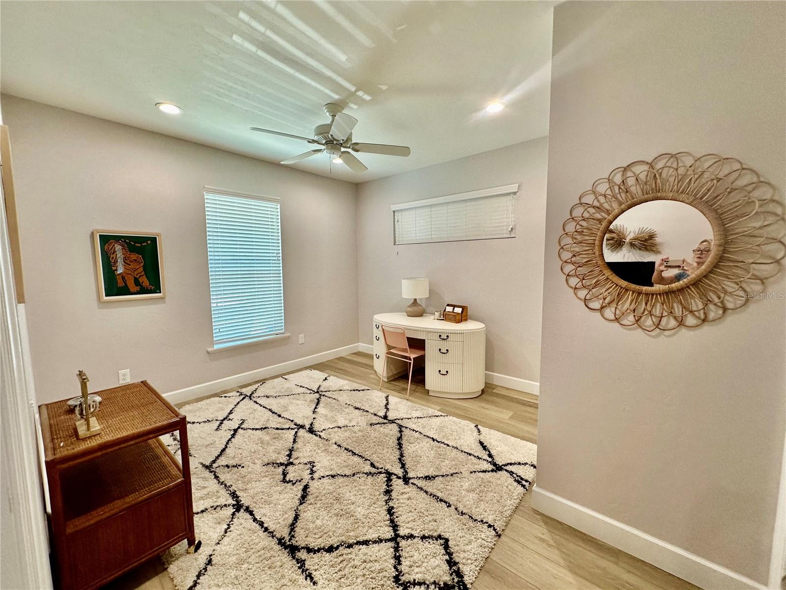This charming two-bedroom, two-bathroom home is located just 10 minutes from the University of Florida and less than five minutes from multiple grocery stores, restaurants, and schools. This home was built in 2021 by an interior designer, and it features modern appliances and luxury hardwares. It has only been lived in by one owner, who has it professionally cleaned every other week, and the price reflects the level of care it has been shown. It would be perfect for an individual who works remotely or even a young family. Primary bedroom has two walk-in closets and an en-suite bathroom with a huge, modern shower and ample storage. The second bedroom has a substantial closet and is attached to a full bath that additionally opens into the common area--it's perfect for a second bedroom, office, or guest room. Open floor plan with a great kitchen island that has electricity. Substantially-sized fenced-in backyard with a recently-built privacy fence fully enclosing the space--great for dogs. Large laundry room with floor-to-ceiling shelving.