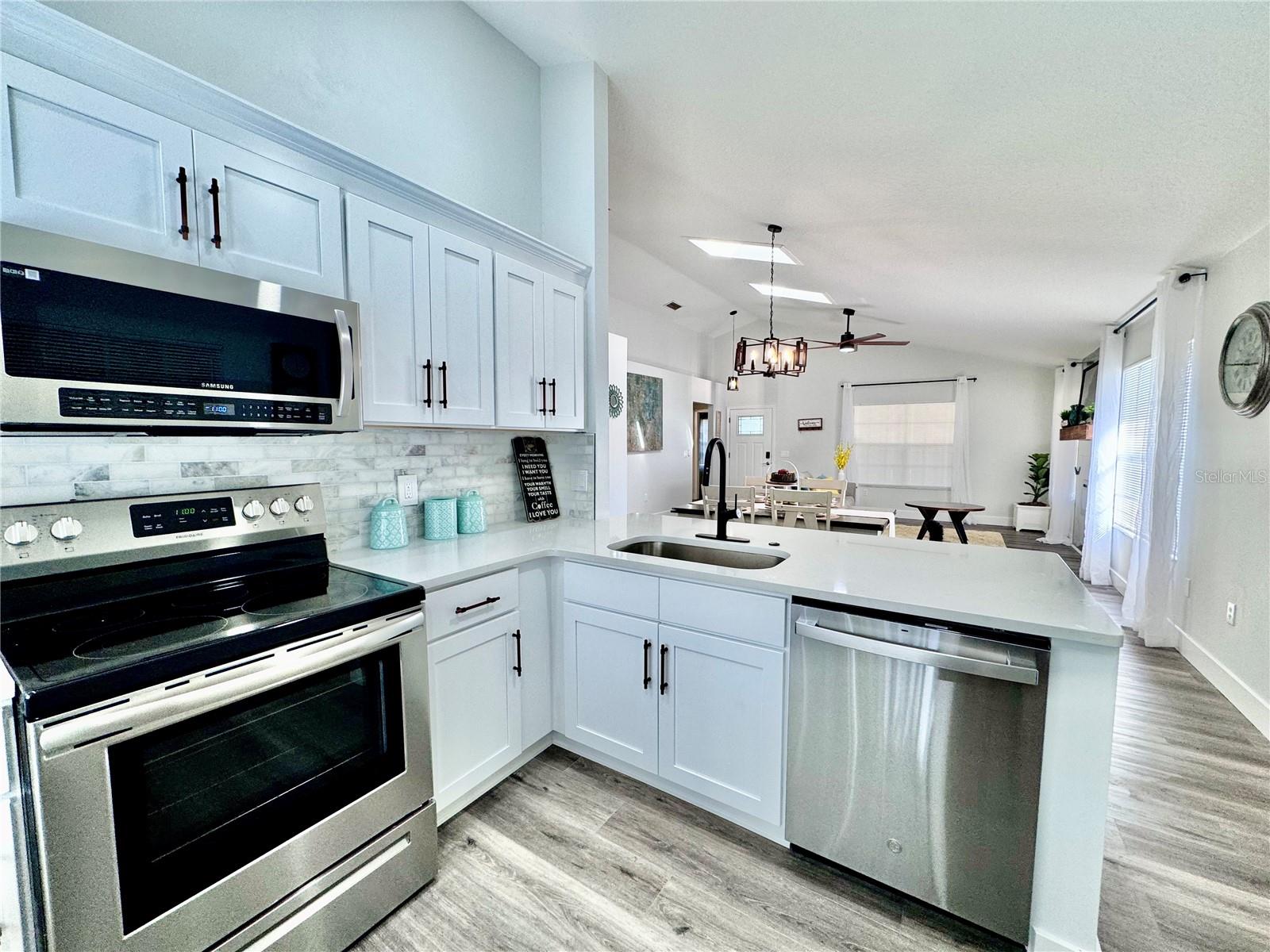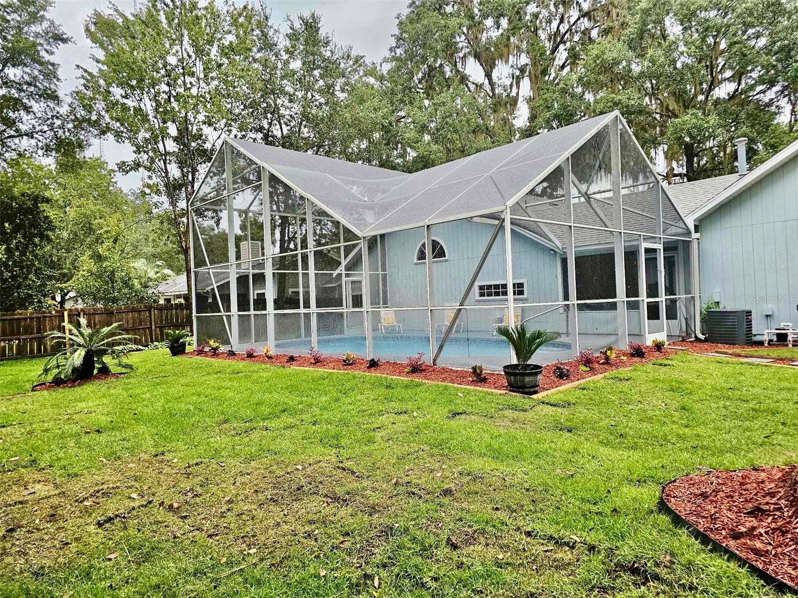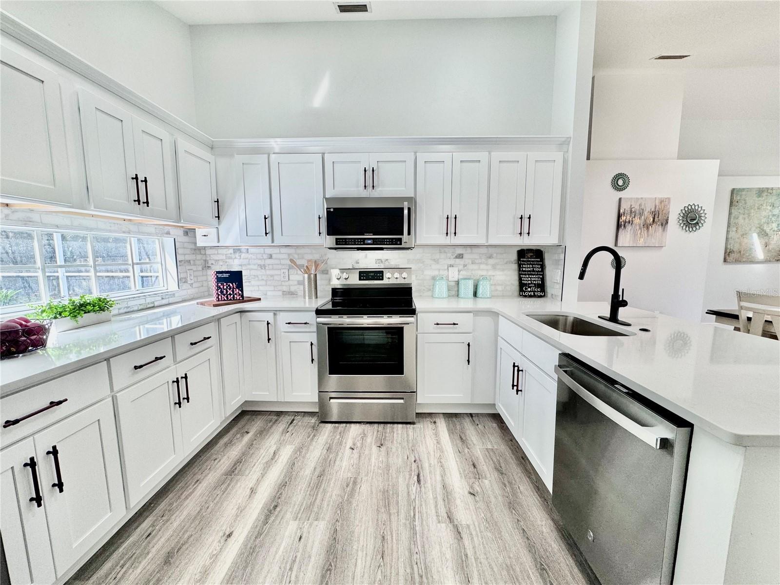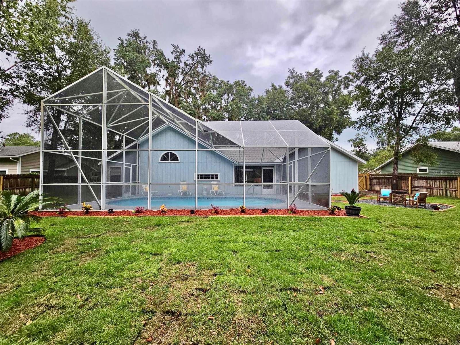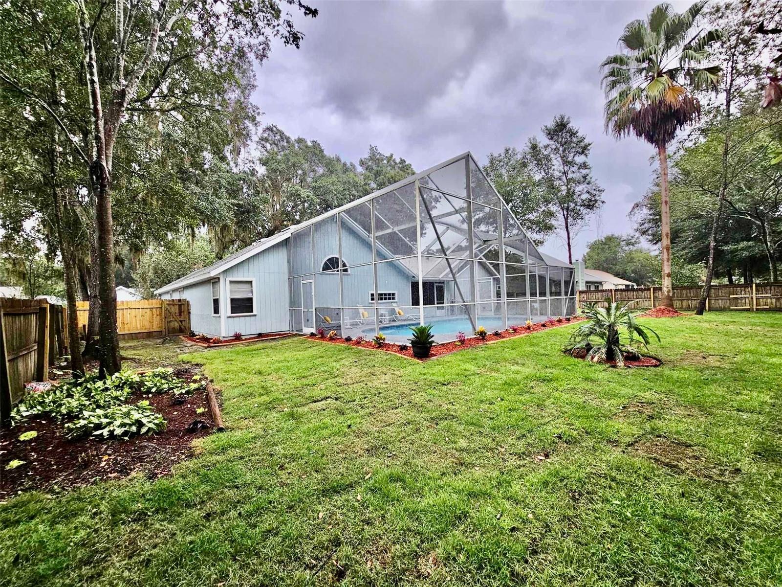 This beautifully remodeled pool home is located in a prime NW Gainesville neighborhood, offering an easy commute to UF/Shands. Now with a new roof!!! The home features brand-new updates throughout, including a completely remodeled kitchen with new stainless steel appliances, white shaker cabinets, a tile backsplash, and quartz countertops. The bathrooms have also been fully updated with new fixtures. The primary suite boasts a walk-in closet and a custom bathroom with backlit mirrors, luxury tile in the walk-in shower, and custom woodwork. The newly resurfaced pool, along with new pool equipment, complements the newly landscaped yard, which includes fresh sod, mulch, and tree trimming. Additional highlights include a spacious two-car garage and a charming breezeway with unique custom woodwork. This move-in-ready home provides the perfect blend of convenience and modern living.