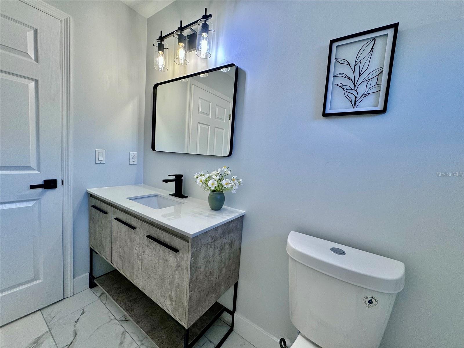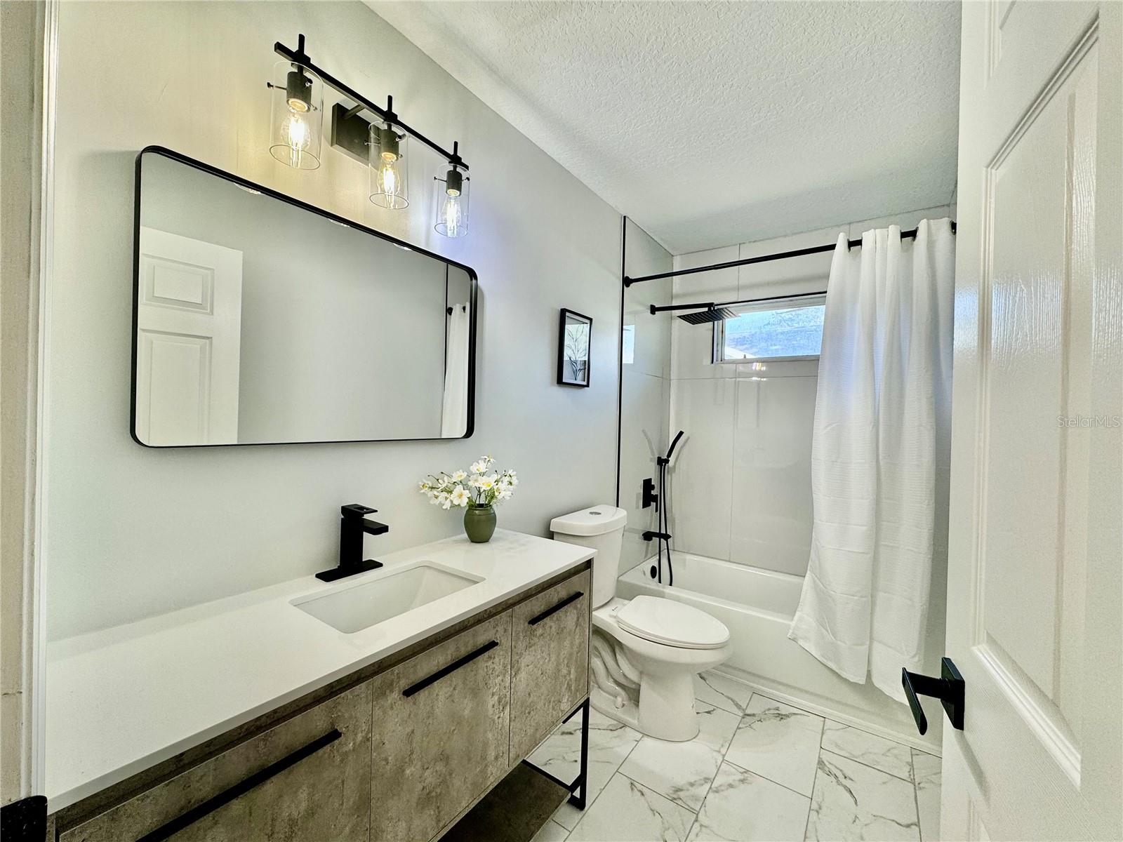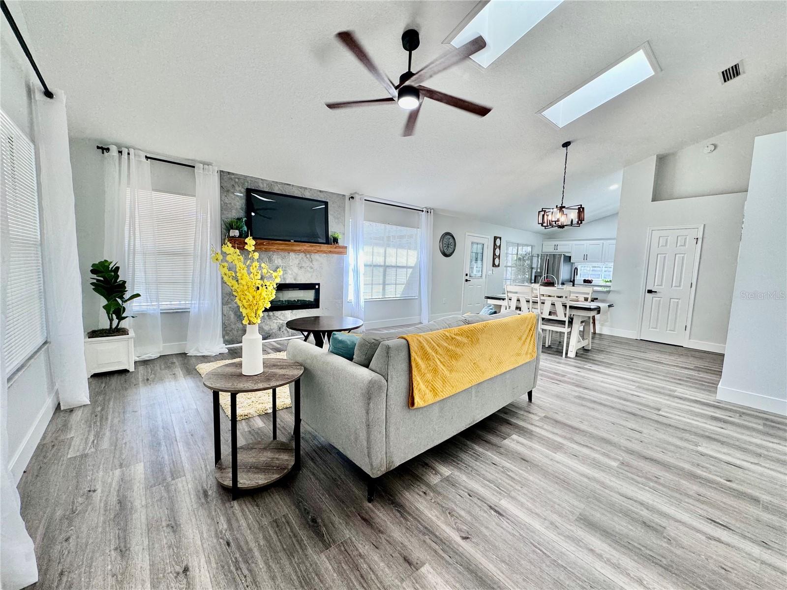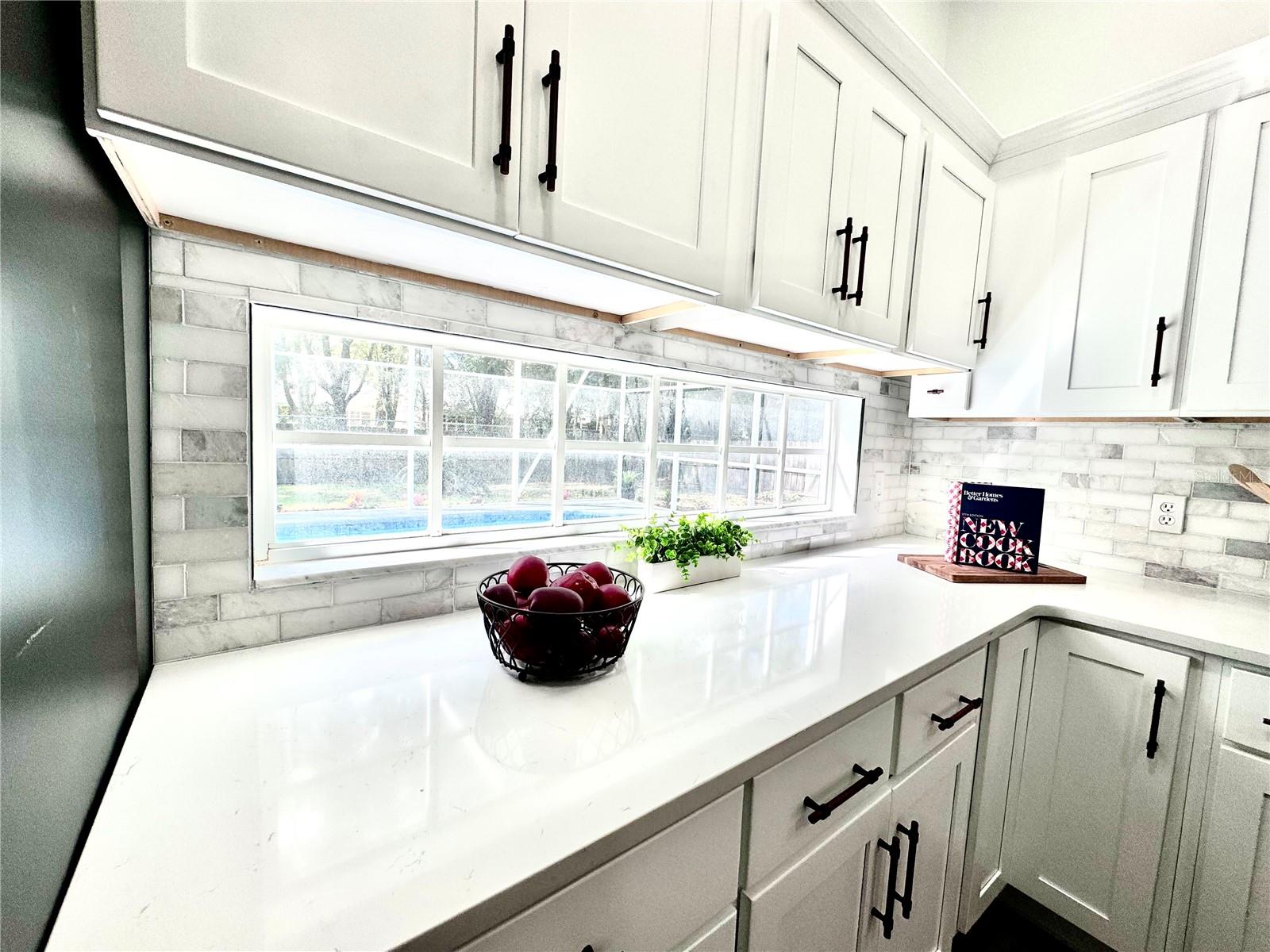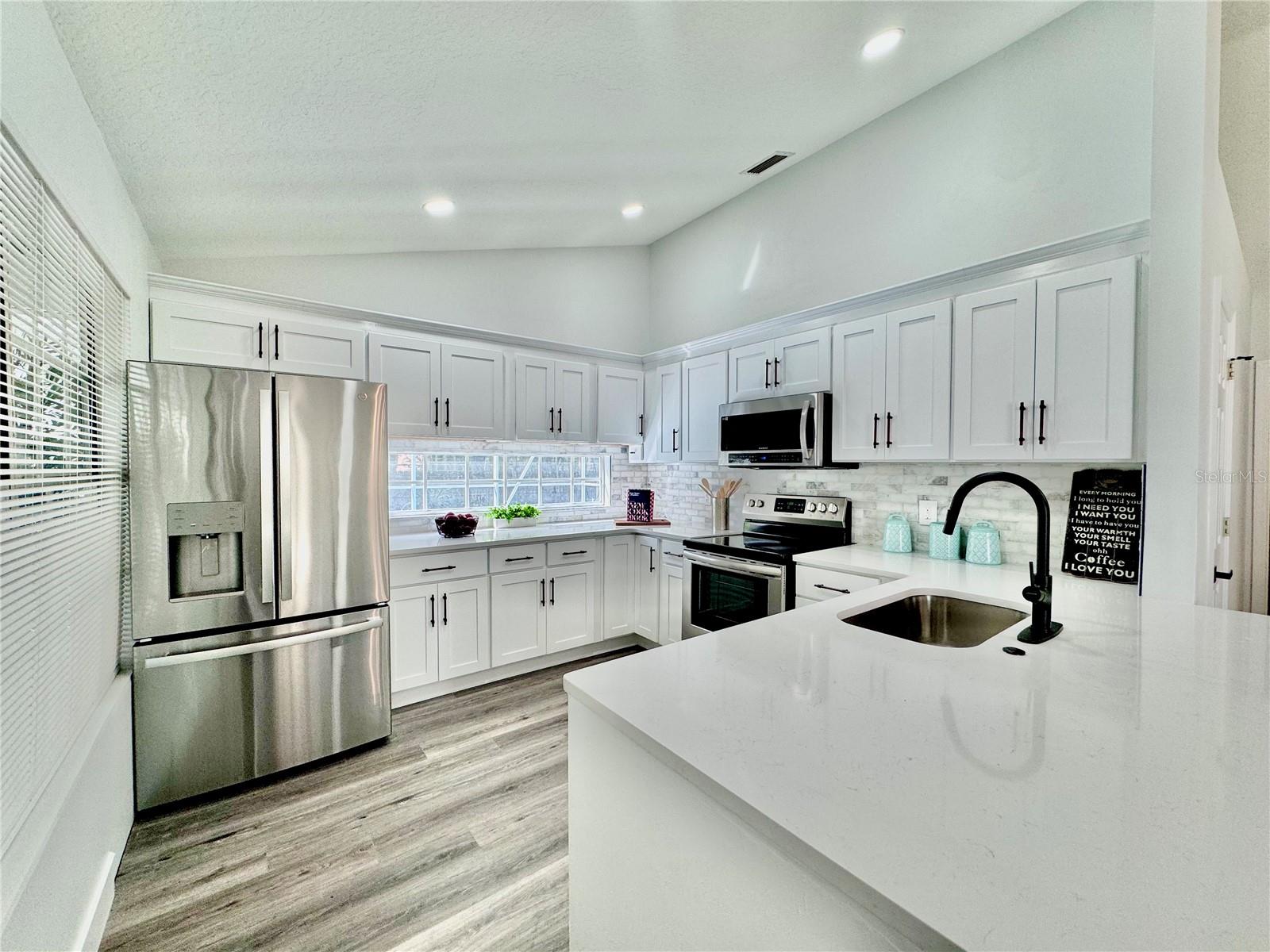 This beautifully remodeled pool home is located in a prime NW Gainesville neighborhood, offering an easy commute to UF/Shands. Now with a new roof!!! The home features brand-new updates throughout, including a completely remodeled kitchen with new stainless steel appliances, white shaker cabinets, a tile backsplash, and quartz countertops. The bathrooms have also been fully updated with new fixtures. The primary suite boasts a walk-in closet and a custom bathroom with backlit mirrors, luxury tile in the walk-in shower, and custom woodwork. The newly resurfaced pool, along with new pool equipment, complements the newly landscaped yard, which includes fresh sod, mulch, and tree trimming. Additional highlights include a spacious two-car garage and a charming breezeway with unique custom woodwork. This move-in-ready home provides the perfect blend of convenience and modern living.