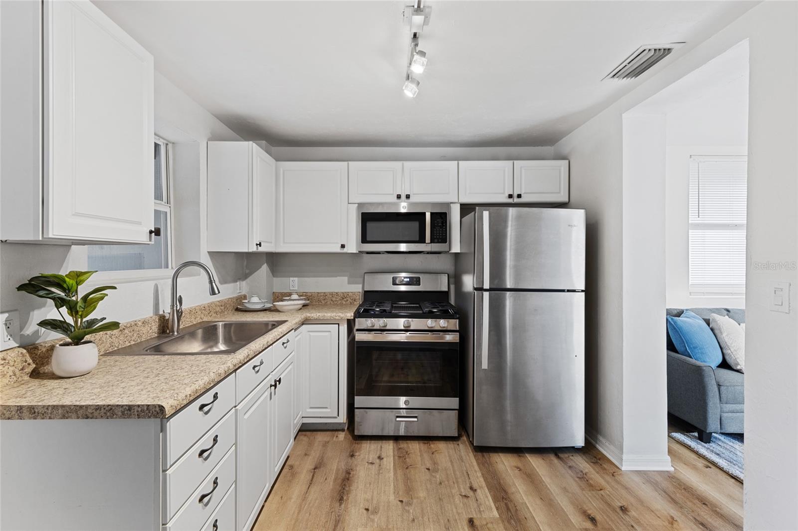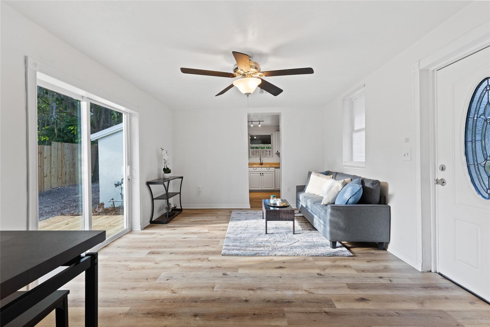Cozy up in this move-in-ready perfect little starter home situated on a corner lot, walking distance to Aldi, Publix, and other local amenities. Have peace of mind with a brand new roof, HVAC, and fresh paint inside and out. A bright living room serves as the heart of this home, and leads you outside to a fresh deck to enjoy your morning coffee. Enjoy a fully fenced expansive yard with endless possibilities. Inside, you’ll find 2 bedrooms with fresh carpet, new flooring in the living room and kitchen, and a fully renovated bathroom. These versatile spaces can be easily personalized to suit your individual needs, whether it be transforming one to a home office or setting up a relaxing guest room. If you’re looking for easy maintenance at an affordable price in a great location, this is it!
