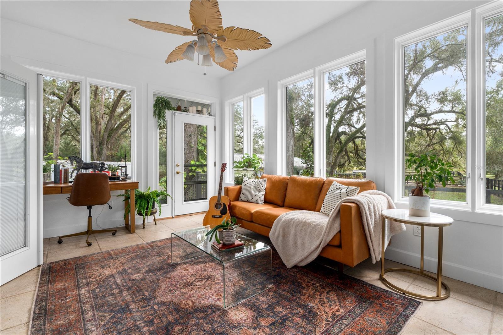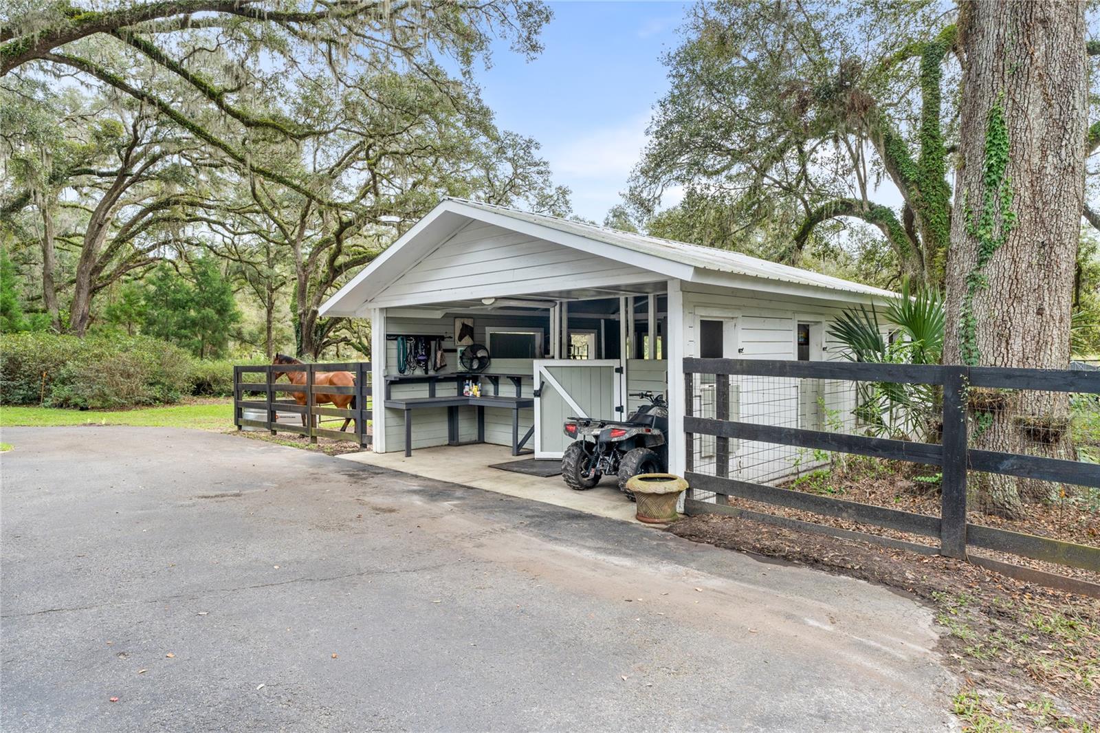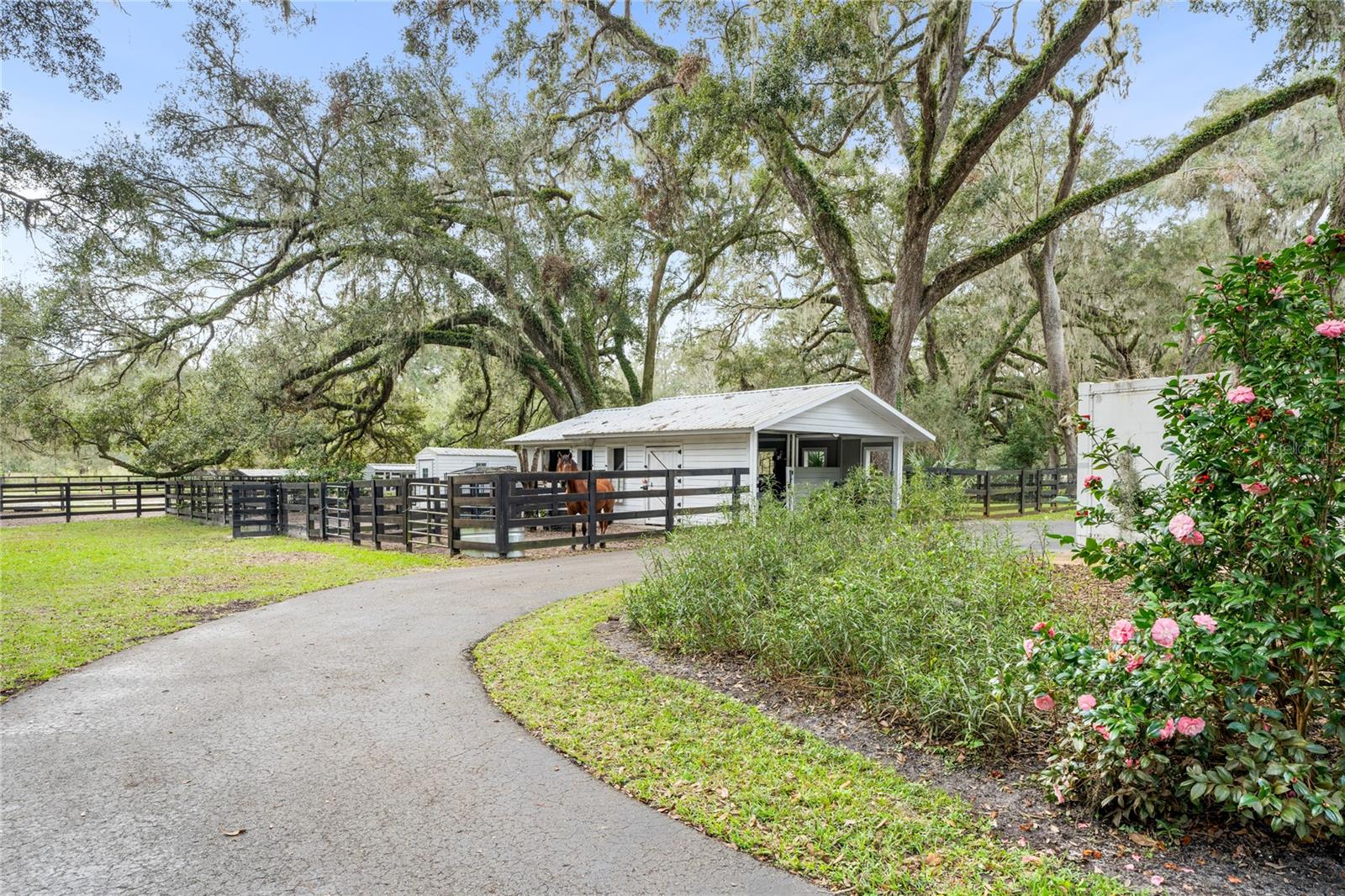 Presenting Azalea Equine House, a remarkable 5.98-acre equestrian estate just 35.8 miles from the world-renowned World Equestrian Center. Blending Old Florida charm with top-notch equine amenities, this property offers a luxurious lifestyle for horse enthusiasts while remaining close to Gainesville’s vibrant attractions. Over 4600 SQFT broken between the main house and a detached “cottage”. Main house offers 3 bedrooms two and 1/2 baths- 3,263 SQFT. Nestled among grand-daddy oaks with breathtaking views of the Kanapaha Prairie, Azalea Equine House is thoughtfully designed with premier equestrian facilities, including a barn with two spacious stalls, three well-maintained paddocks, and expansive grounds ideal for riding and training. The lush landscape also features azaleas, a gazebo, and serene gardens, creating a picturesque backdrop for both horses and their owners. The main residence spans 3,263 H&C SF and features three bedrooms, two and a half baths, and stunning architectural details like soaring ceilings, expansive windows, and heart-of-pine floors that add warmth and charm. The gourmet kitchen boasts maple cabinets, granite countertops, stainless steel appliances, and a cozy stone fireplace, ideal for both everyday living and entertaining. The luxurious master suite opens into an intimate sunroom, while the spa-inspired master bath includes dual granite vanities, a soaking tub, and a walk-in rain shower for ultimate relaxation. Additional features include a spacious Florida screened room, geothermal heating and cooling, three wells (with a newly installed hand pump on one), and a three-car garage. A workshop, chicken coop, and freshly painted interior and exterior add further value to the property’s thoughtful design and functionality. An expansive 1,332 H&C SF guest cottage offers versatile space as an in-law suite or guest quarters, complete with a living room, game room, full bathroom, kitchen, large bedroom, and a flex room with unique hand-painted murals. Conveniently located just minutes from I-75, Shands, and the University of Florida, Azalea Equine House offers the perfect blend of equestrian luxury and easy access to Gainesville’s conveniences. Schedule your showing today to experience this exceptional equestrian retreat!