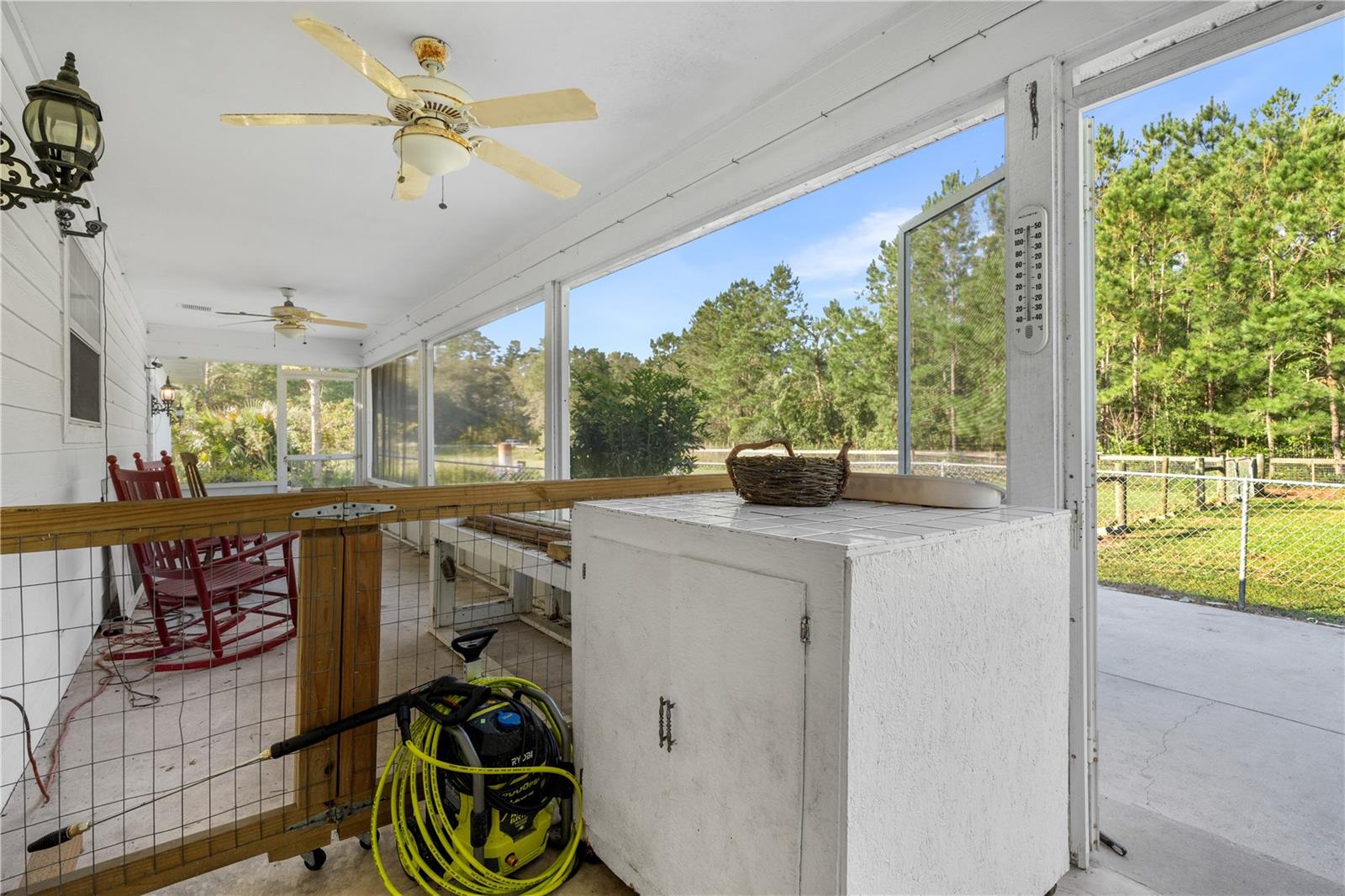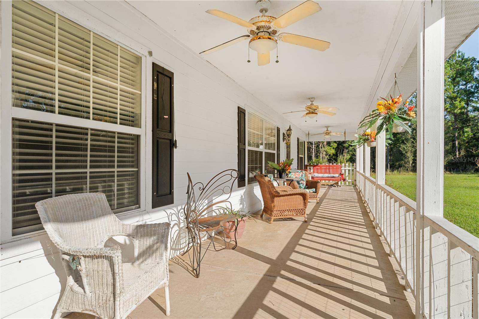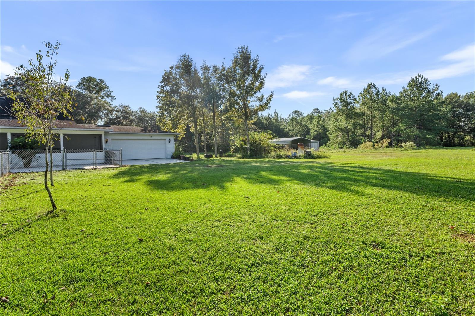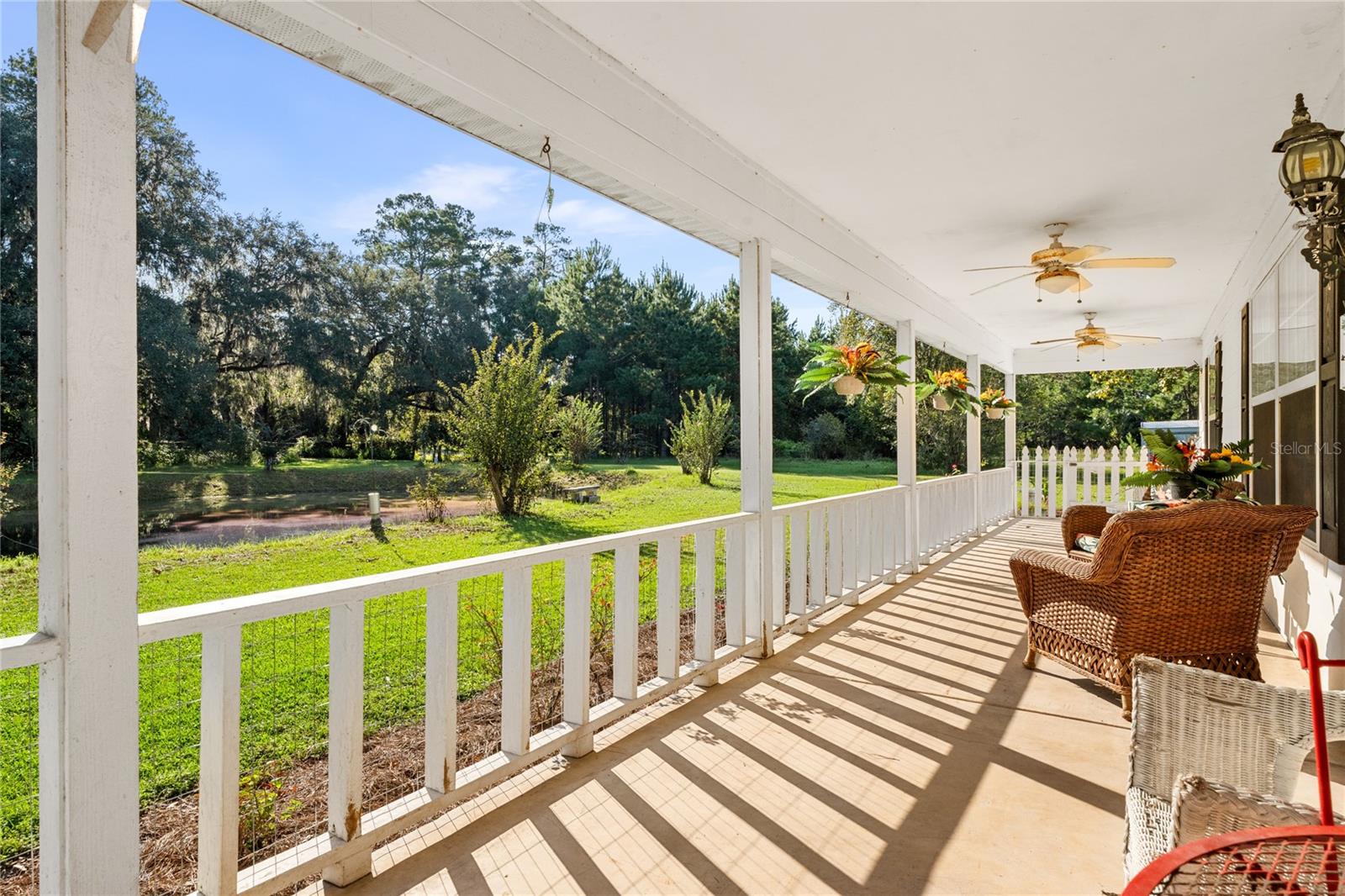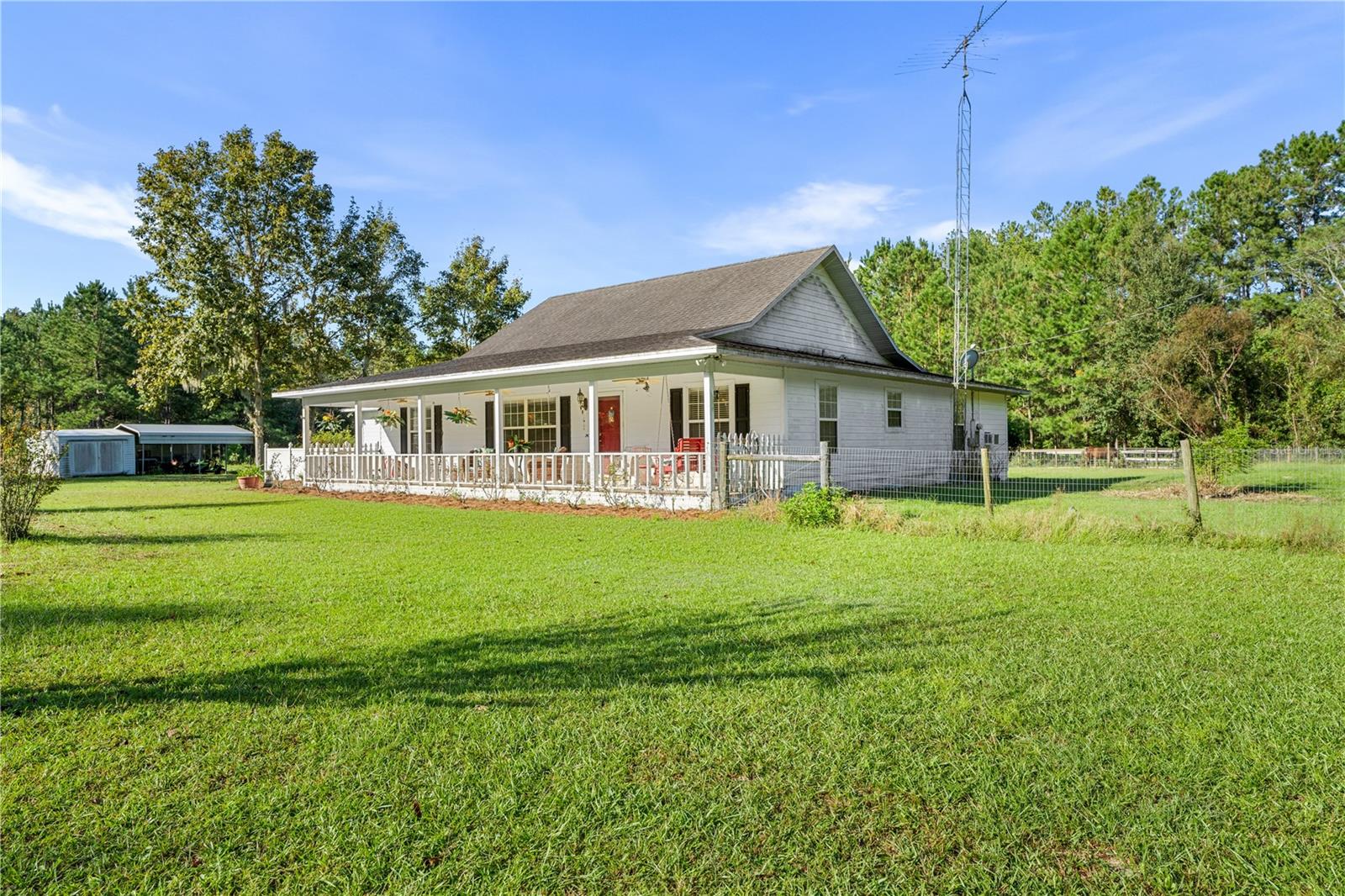Welcome to your peaceful retreat on 5 acres, where a charming pond and scenic countryside views greet you on arrival. The private drive leads to a home that blends relaxation and rural charm, offering the perfect haven for those seeking a relaxed lifestyle while still being close to the conveniences of the city. Inside, the home features an open-concept split floor plan. The great room, with its double-sided fireplace and high ceilings, flows seamlessly into the kitchen with wood cabinets and black stainless steel appliances, and a breakfast bar—ideal for casual meals or entertaining. The primary bedroom, complete with a walk-in closet, also shares the double-sided fireplace and provides an en-suite bathroom with a jacuzzi tub, perfect for unwinding after a long day. The property includes a two-car garage and two spacious workshops for your vehicles and storage needs. The rocking chair front porch and screened back porch provide the perfect outdoor living spaces to enjoy the serene landscape and fresh country air. Part of the property is shaded by beautiful pine trees, adding both character, privacy and future potential for timber revenue. Located just minutes from Gainesville, this property provides the best of both worlds: the peaceful rural lifestyle you desire, with easy access to shopping, dining, healthcare, and the University of Florida.