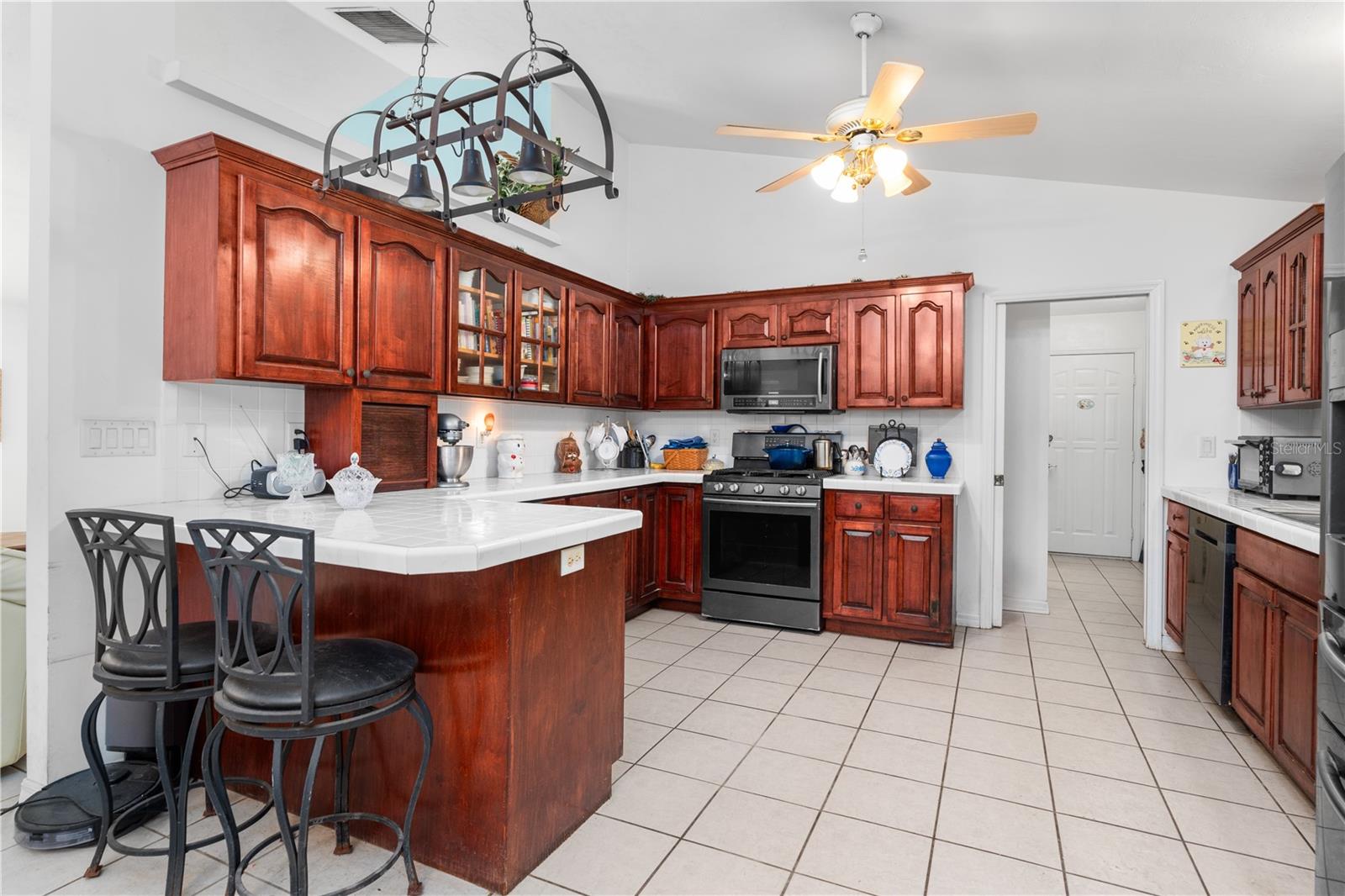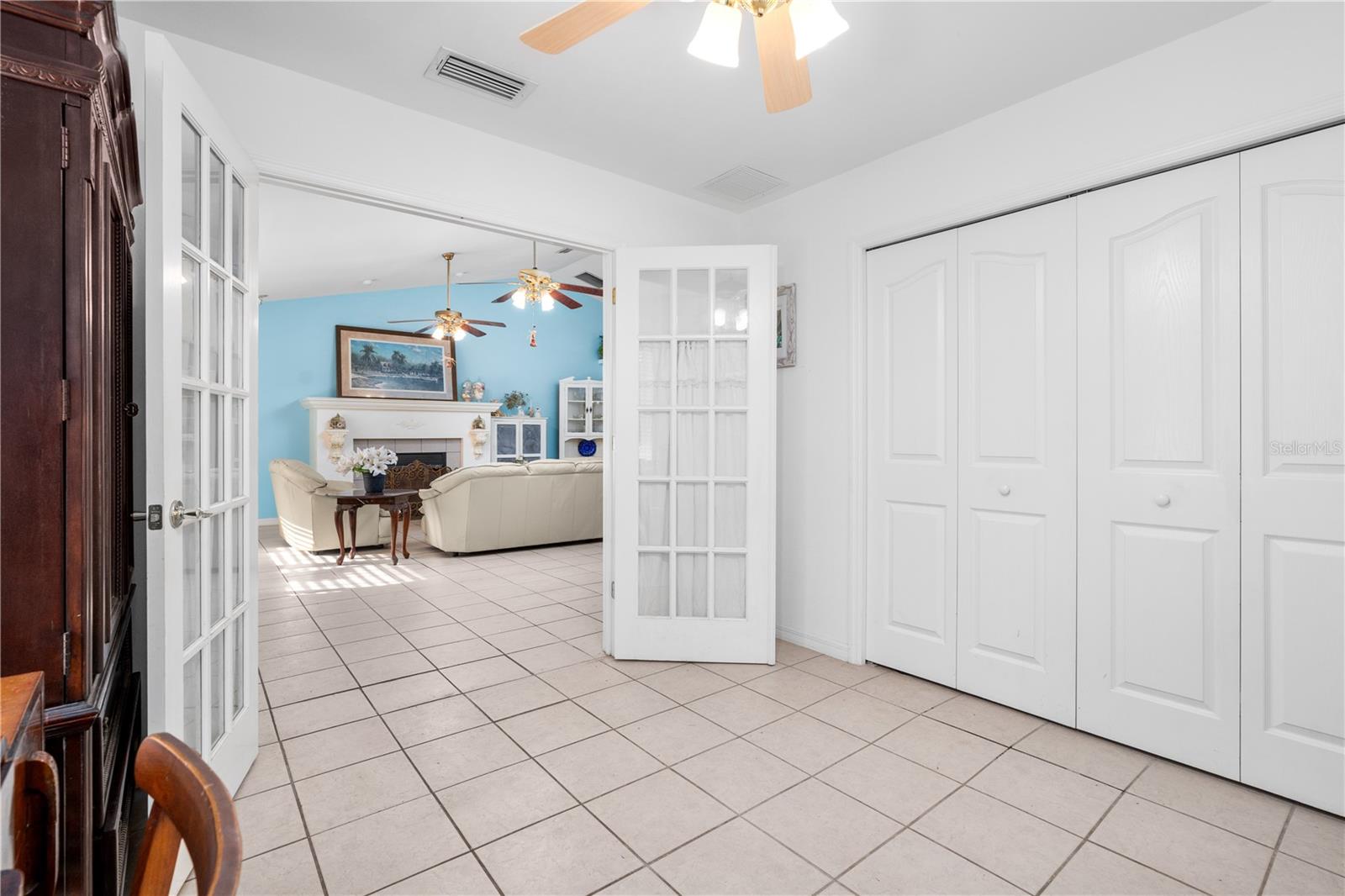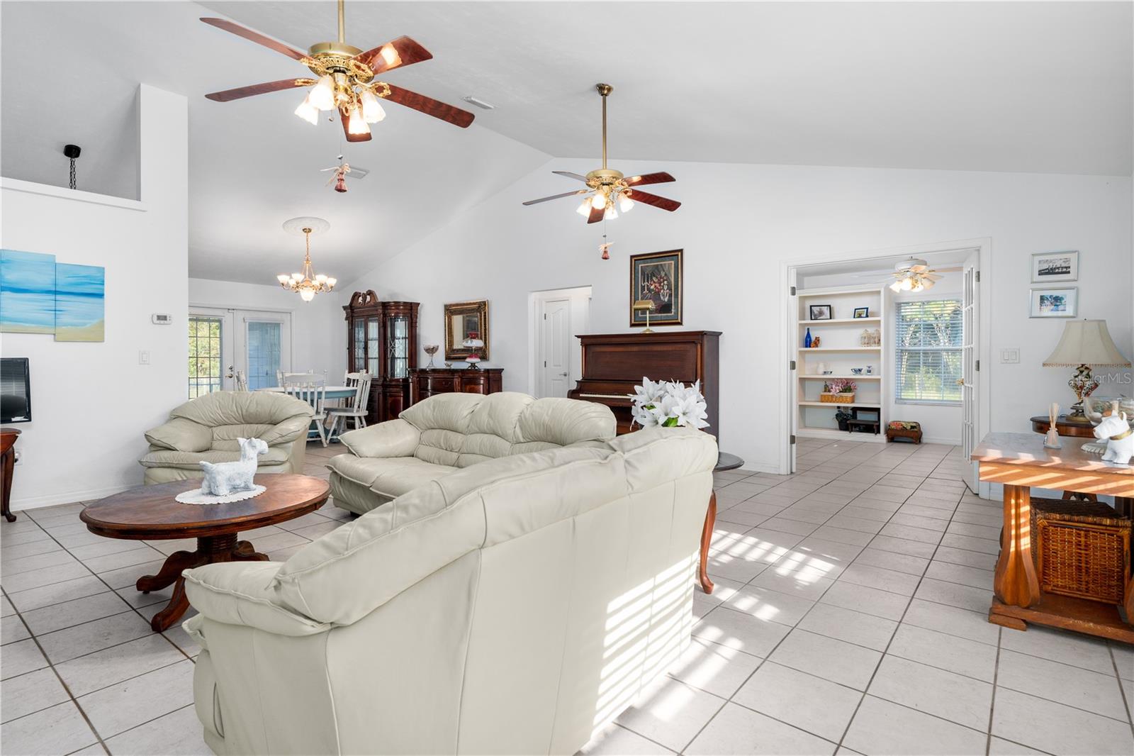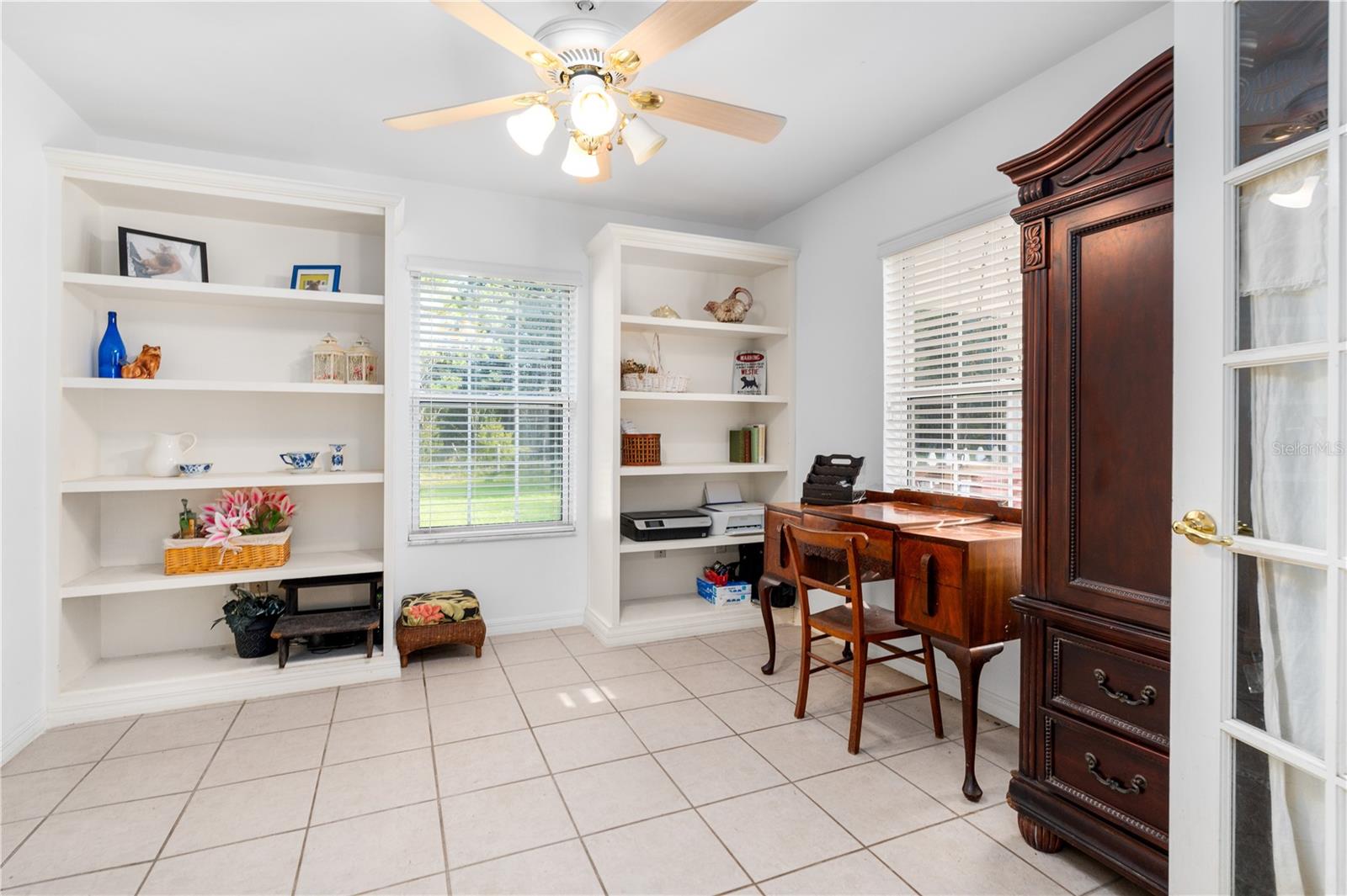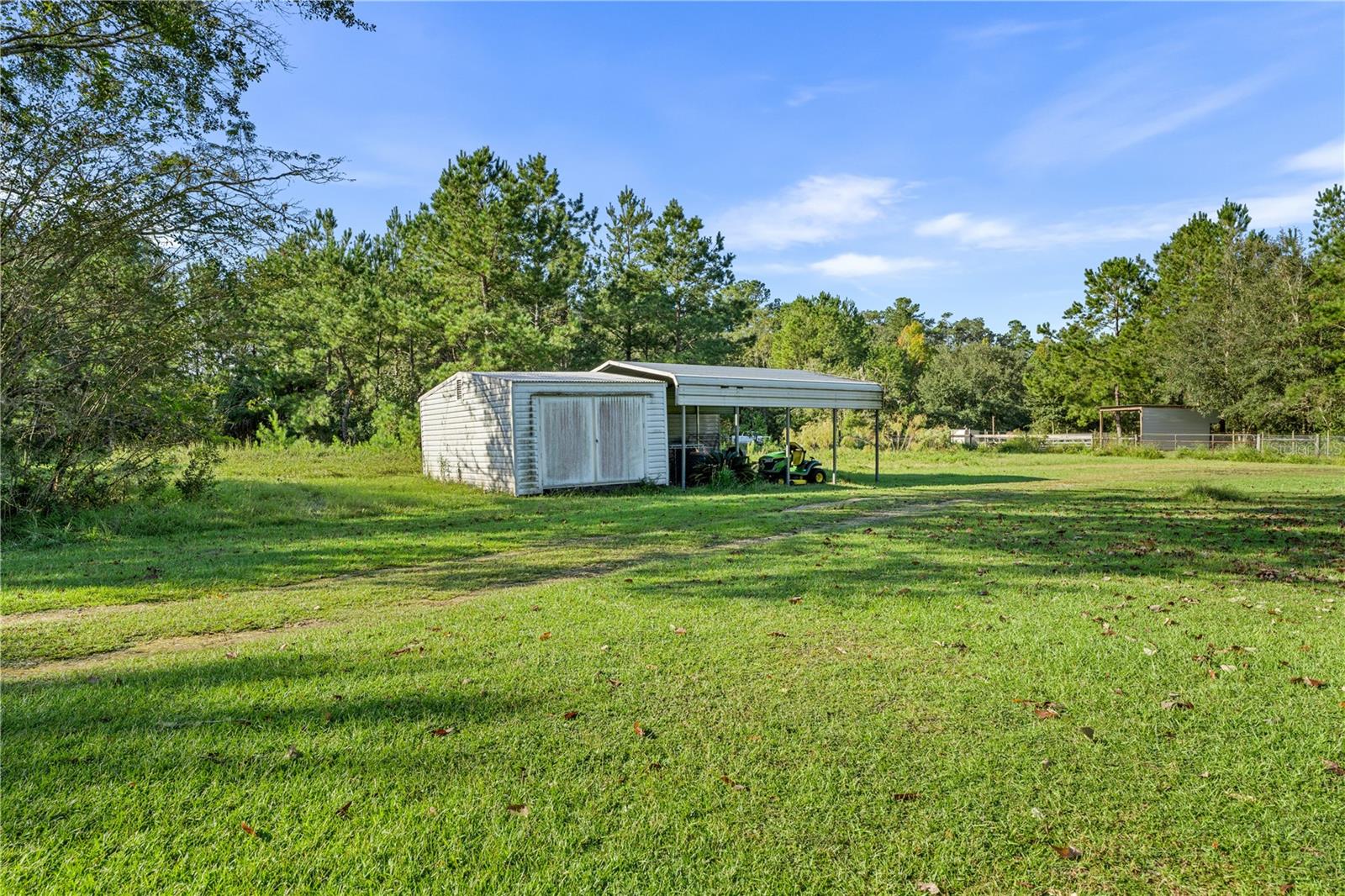 Welcome to your peaceful retreat on 5 acres, where a charming pond and scenic countryside views greet you on arrival. The private drive leads to a home that blends relaxation and rural charm, offering the perfect haven for those seeking a relaxed lifestyle while still being close to the conveniences of the city. Inside, the home features an open-concept split floor plan. The great room, with its double-sided fireplace and high ceilings, flows seamlessly into the kitchen with wood cabinets and black stainless steel appliances, and a breakfast bar—ideal for casual meals or entertaining. The primary bedroom, complete with a walk-in closet, also shares the double-sided fireplace and provides an en-suite bathroom with a jacuzzi tub, perfect for unwinding after a long day. The property includes a two-car garage and two spacious workshops for your vehicles and storage needs. The rocking chair front porch and screened back porch provide the perfect outdoor living spaces to enjoy the serene landscape and fresh country air. Part of the property is shaded by beautiful pine trees, adding both character, privacy and future potential for timber revenue. Located just minutes from Gainesville, this property provides the best of both worlds: the peaceful rural lifestyle you desire, with easy access to shopping, dining, healthcare, and the University of Florida.