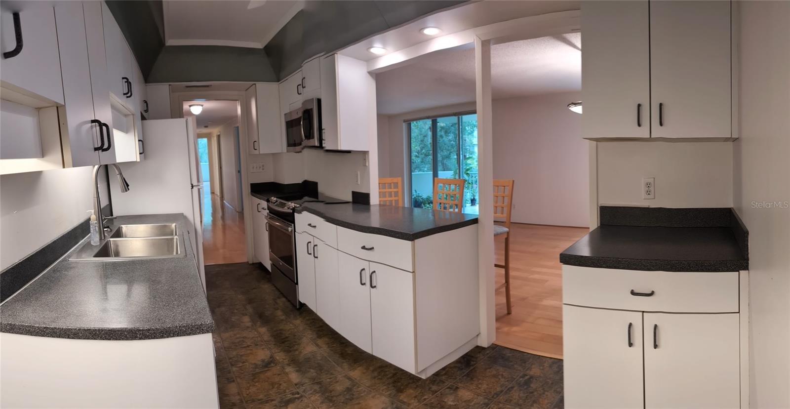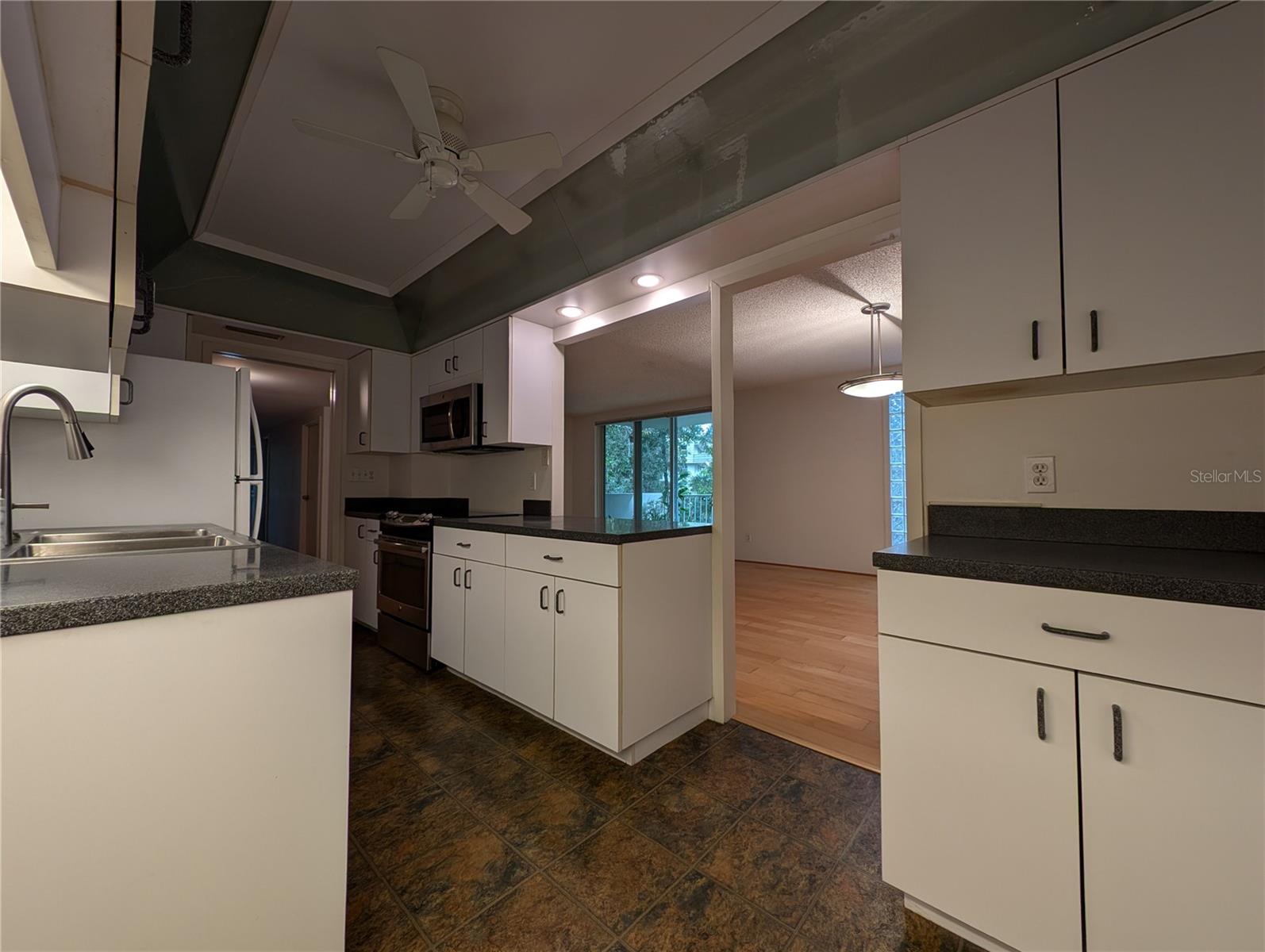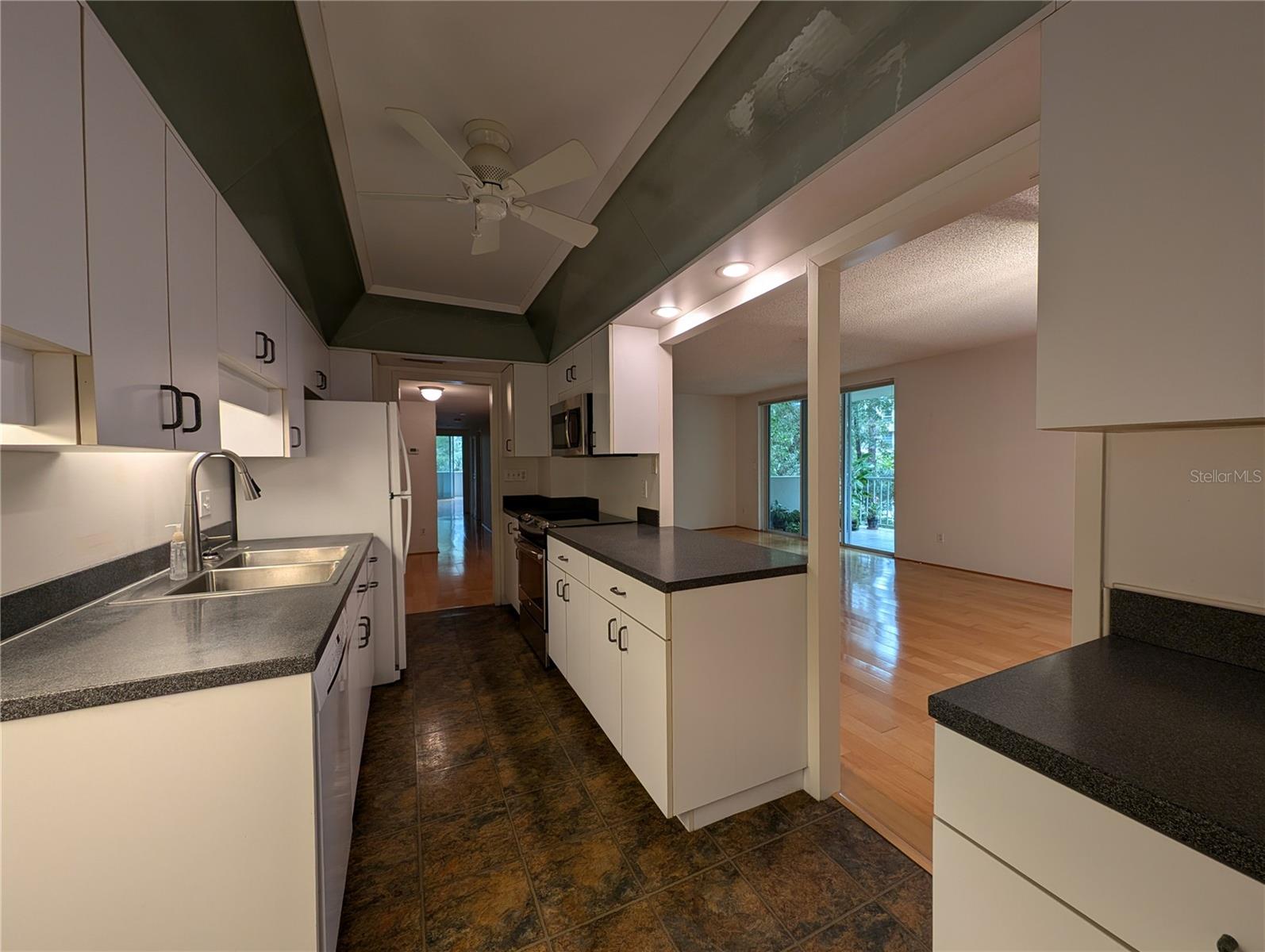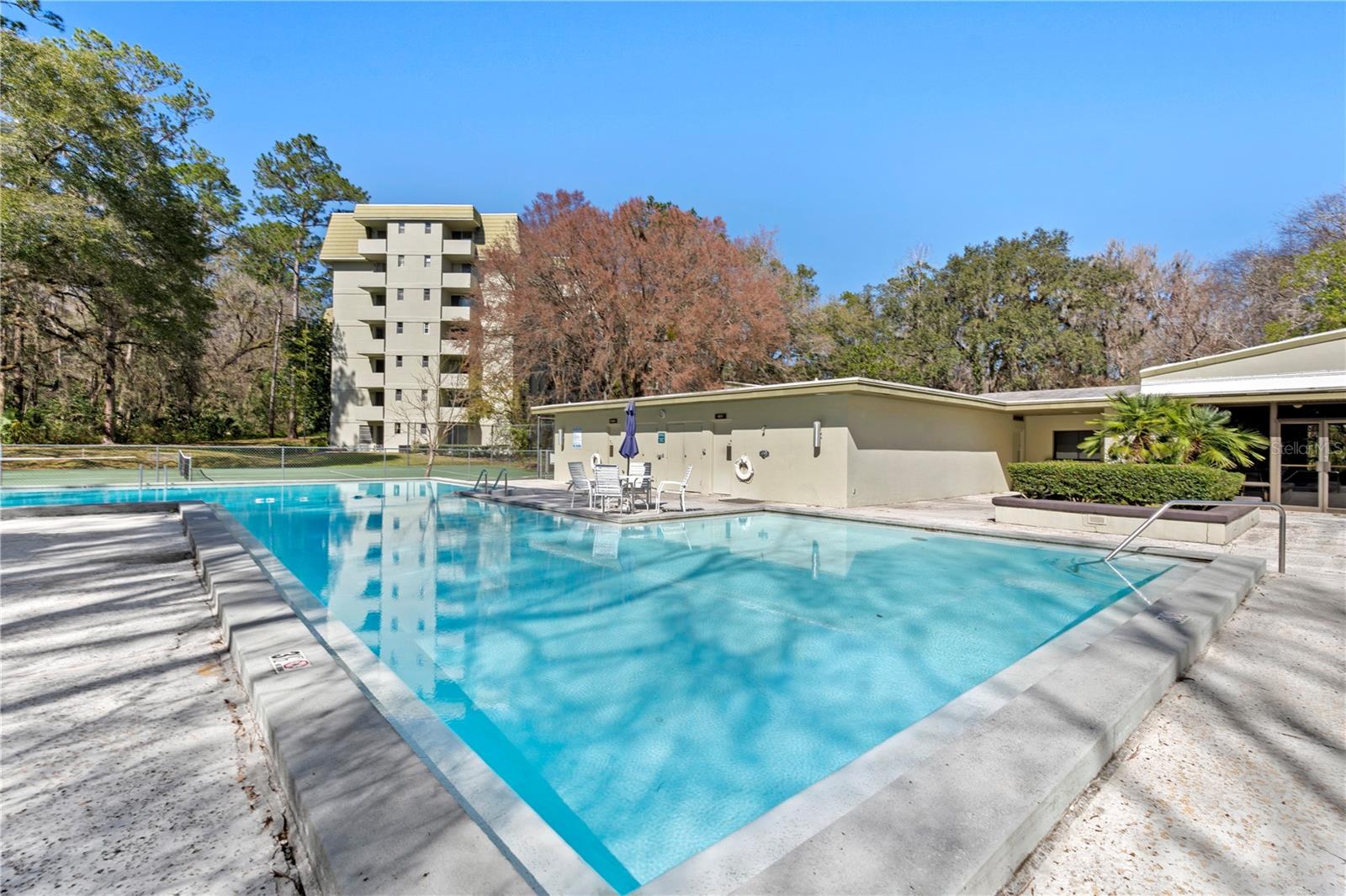 This beautiful Gaineswood condo faces the forest canopy with southern exposure, and features numerous amenities. Upgrades in this 1558 sq ft 3 bedroom/2 bath condo include hardwood maple flooring, new insulated tempered glass windows and doors throughout, recent HVAC improvements, and a new water heater. The purchaser has the option of purchasing a coveted garage (one of only 20 for a 70-unit complex), for the additional price of $32,000. The garage is located in the most desirable covered area of the building. Gaineswood is a must-see Mid-century modern gated community. This condo is conveniently located on the 3rd floor, allowing easy access by stairs or elevator, with treetop views from two private balconies. Gaineswood amenities include atriums with koi ponds; clubhouse with swimming pool and tennis court; an art studio and workshop. Monthly HOA fee includes water, sewer, trash pick-up, pest control, reserve funds, maintenance and insurance. Gaineswood features all-concrete construction and has completed all required structural inspections and reserves studies. Gaineswood is located close to shops, UF, downtown, walking trails, Ring Park and bus lines. Please note the monthly fee foe the condo is $719/mo, and the fee for the garage is $43/mo.