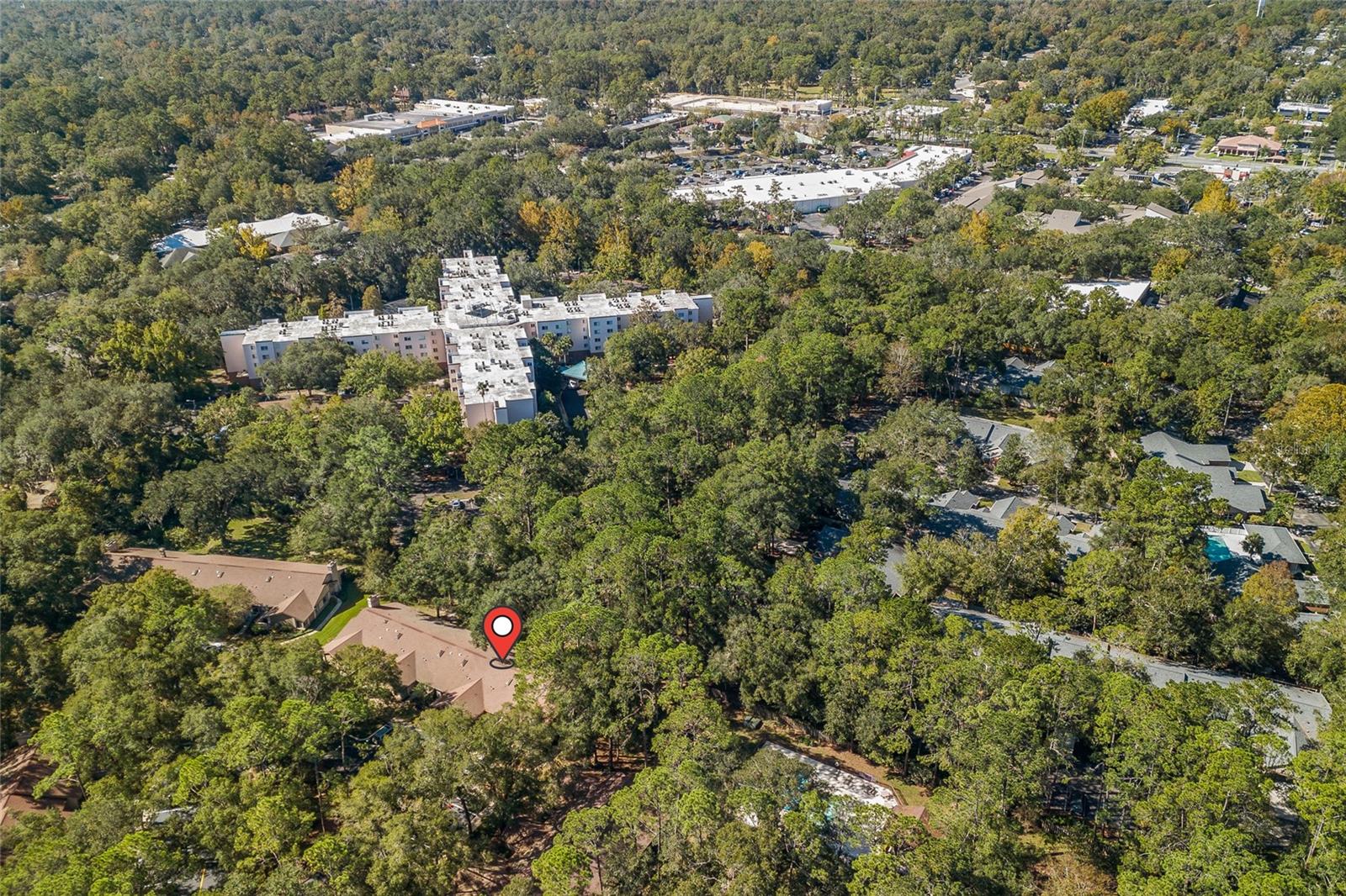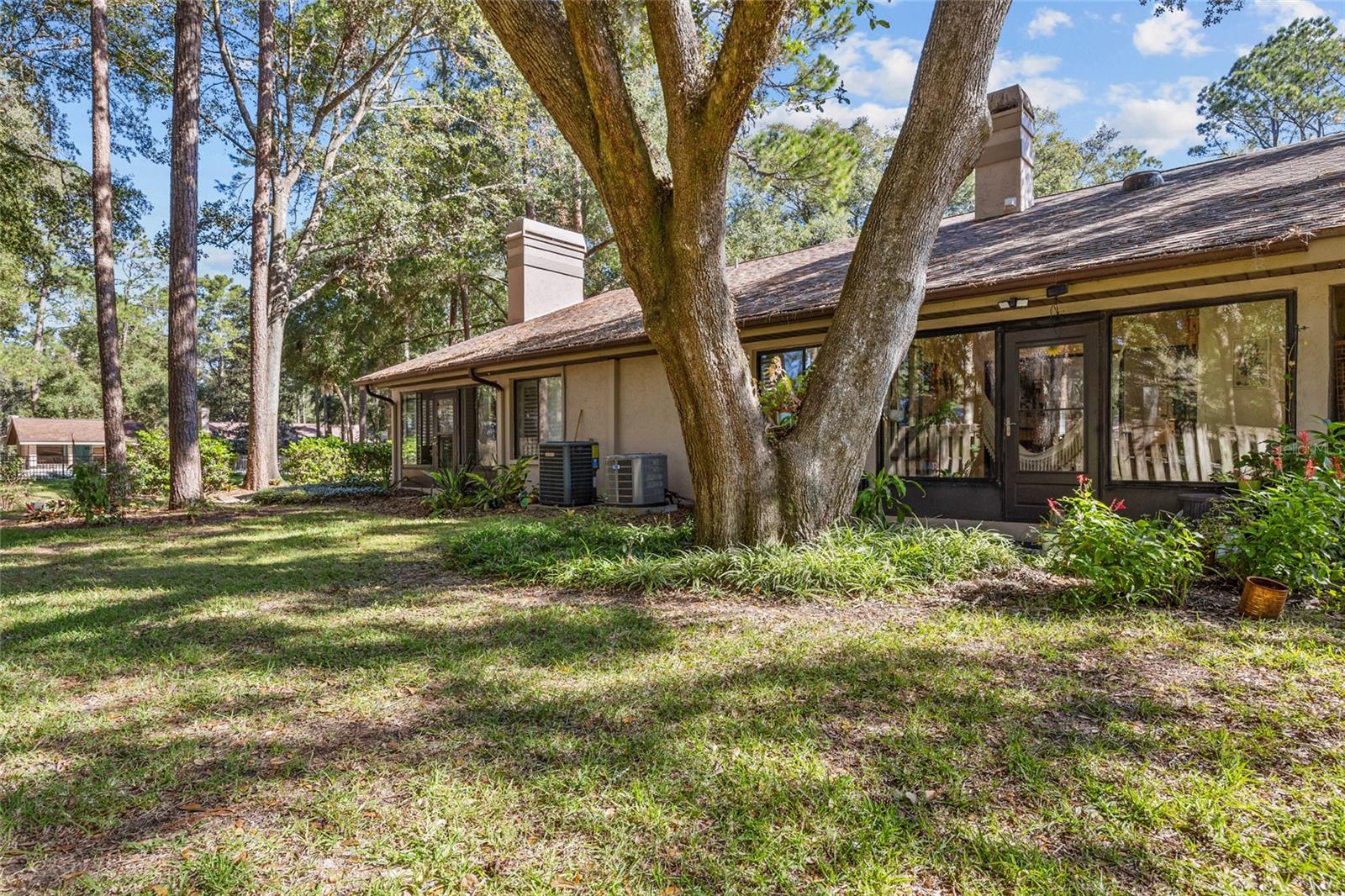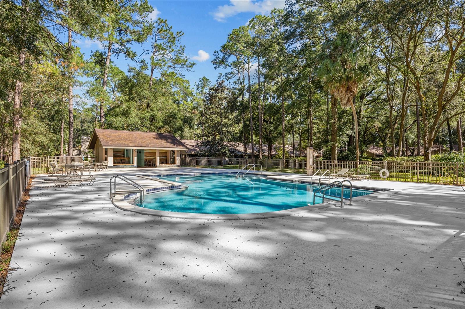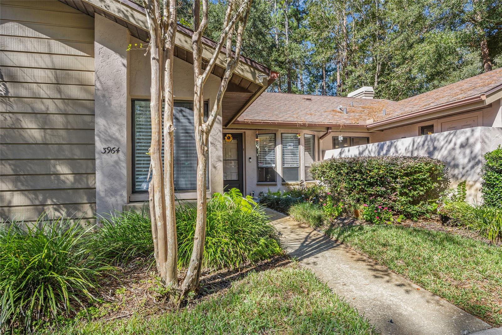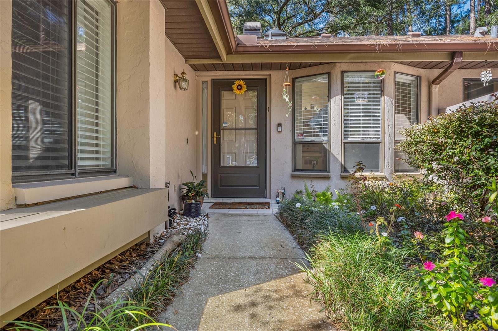 Located in the Wood Creek Village. Walk to the Millhopper shopping Center. This beautiful 2-bedroom 2 bath flat Villa no carpet, tile & Pergo flooring, dining area & Living room, indoors laundry room with washer & Dryer. Kitchen has built in Microwave (2024), dishwasher, refrigerator, breakfast nook, & plenty of cupboard space. Master bedroom has a walk-in closet, new ceiling fan with remote control. Master bather has walk-in shower. 2nd bedroom has mirror closet doors. 2nd bath has a tub. There is a wood burning fireplace in living room, 2 Skylights with high ceilings. & new ceiling fan with remote. A/C 2017, new blinds on windows. Enclosed porch with a utility closet. HOA covers roof, outside repairs, common areas & Pool. Move in ready. Call for an appointment today.