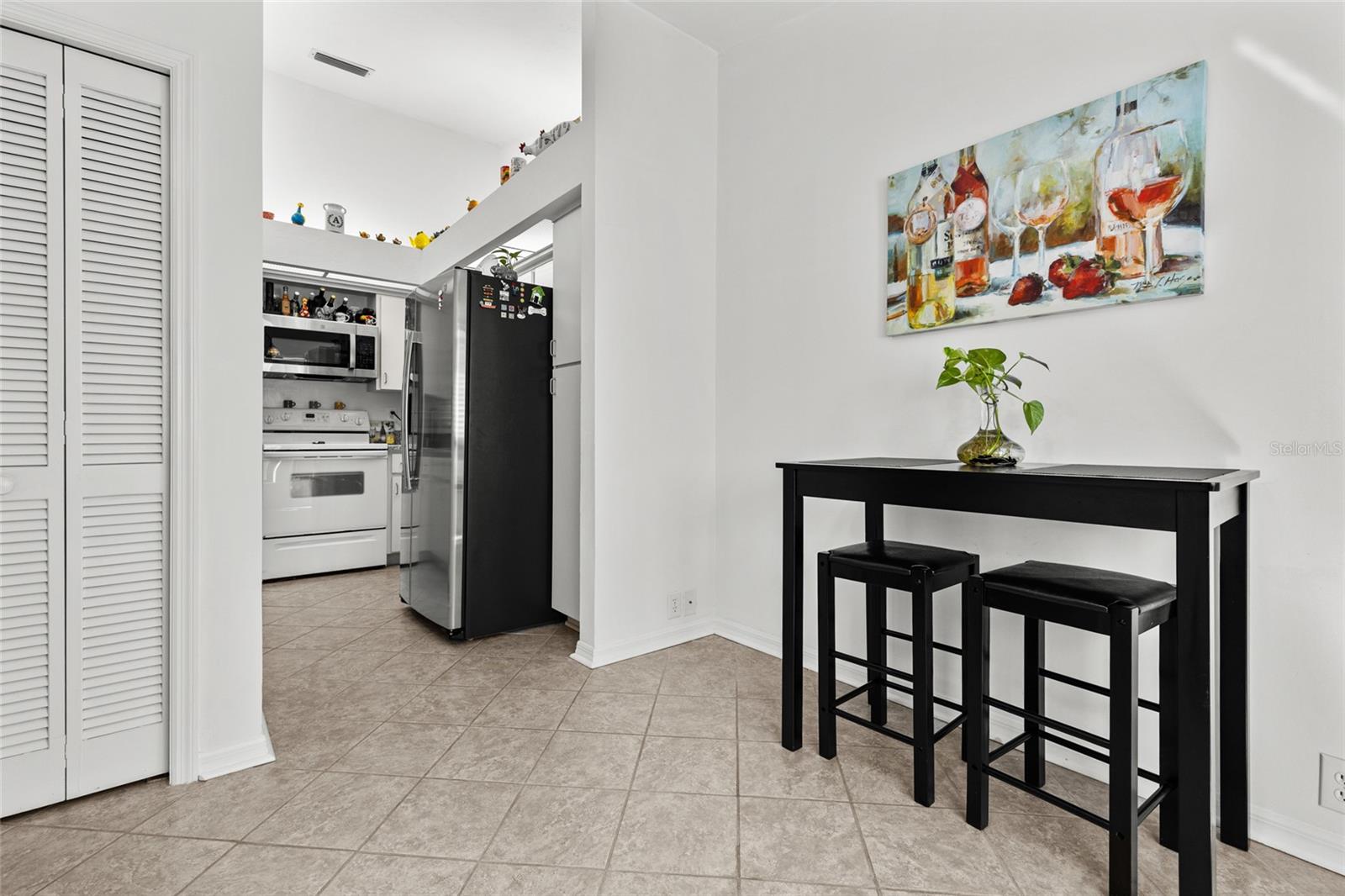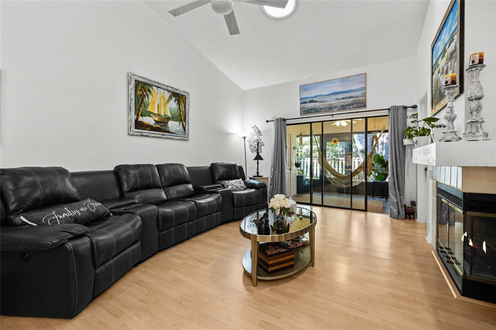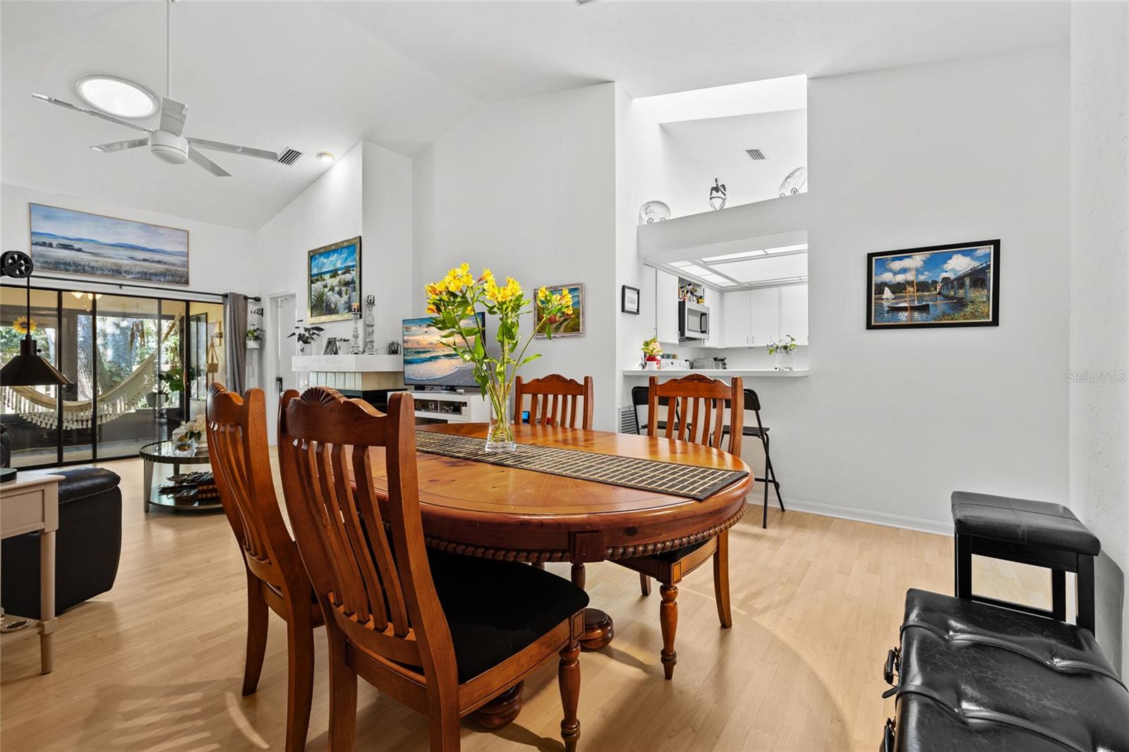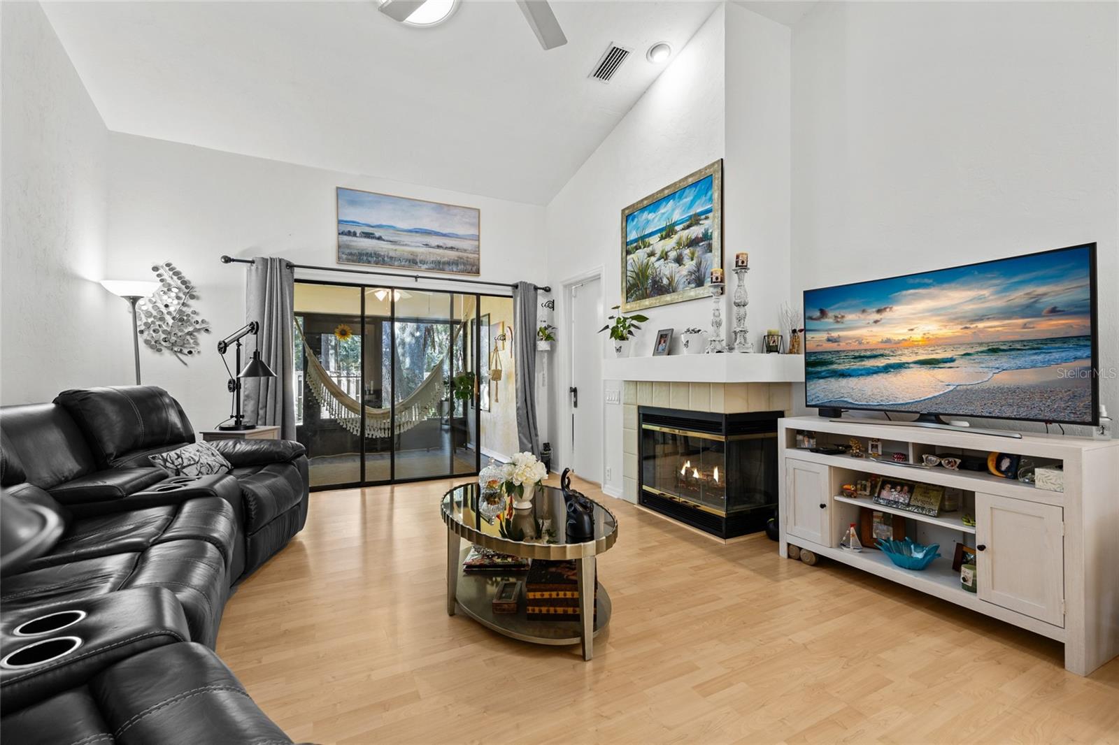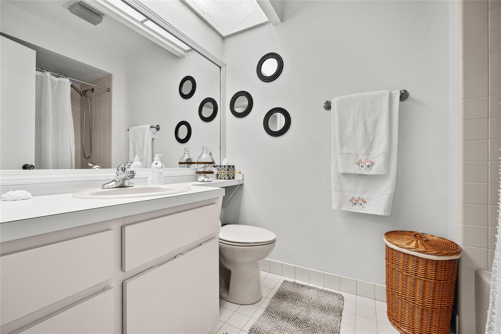 Located in the Wood Creek Village. Walk to the Millhopper shopping Center. This beautiful 2-bedroom 2 bath flat Villa no carpet, tile & Pergo flooring, dining area & Living room, indoors laundry room with washer & Dryer. Kitchen has built in Microwave (2024), dishwasher, refrigerator, breakfast nook, & plenty of cupboard space. Master bedroom has a walk-in closet, new ceiling fan with remote control. Master bather has walk-in shower. 2nd bedroom has mirror closet doors. 2nd bath has a tub. There is a wood burning fireplace in living room, 2 Skylights with high ceilings. & new ceiling fan with remote. A/C 2017, new blinds on windows. Enclosed porch with a utility closet. HOA covers roof, outside repairs, common areas & Pool. Move in ready. Call for an appointment today.