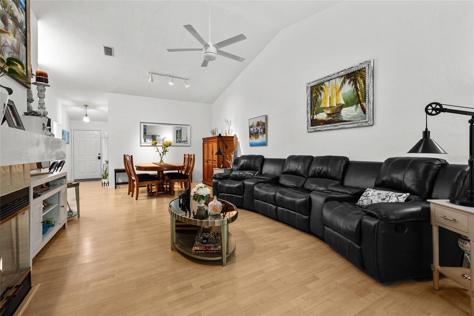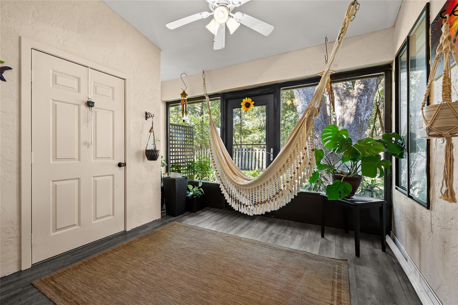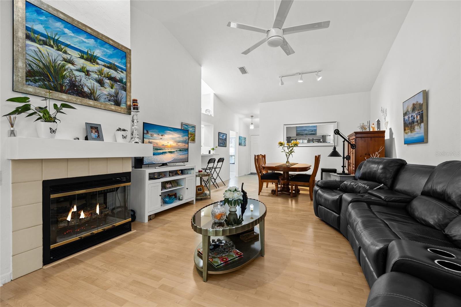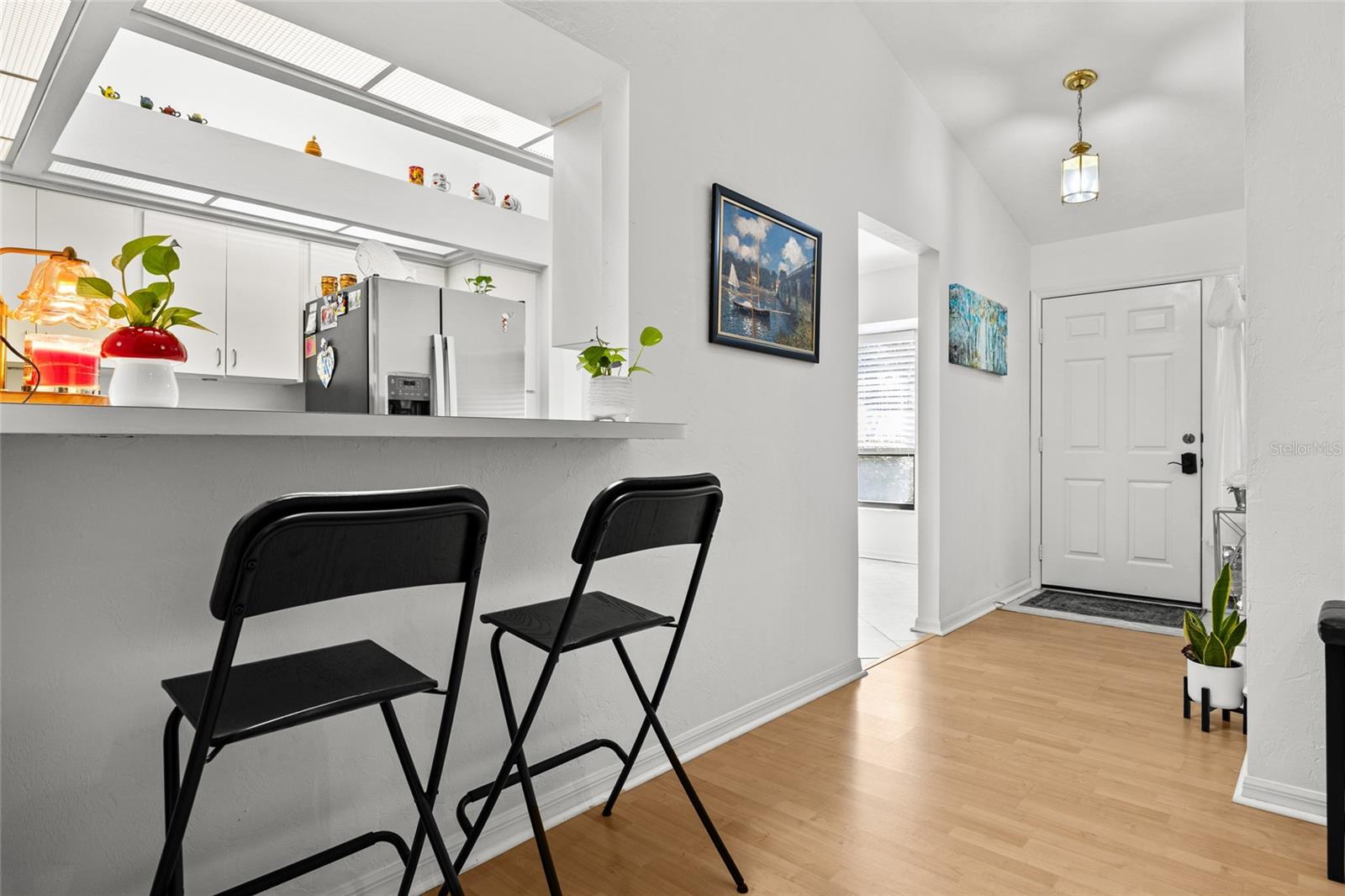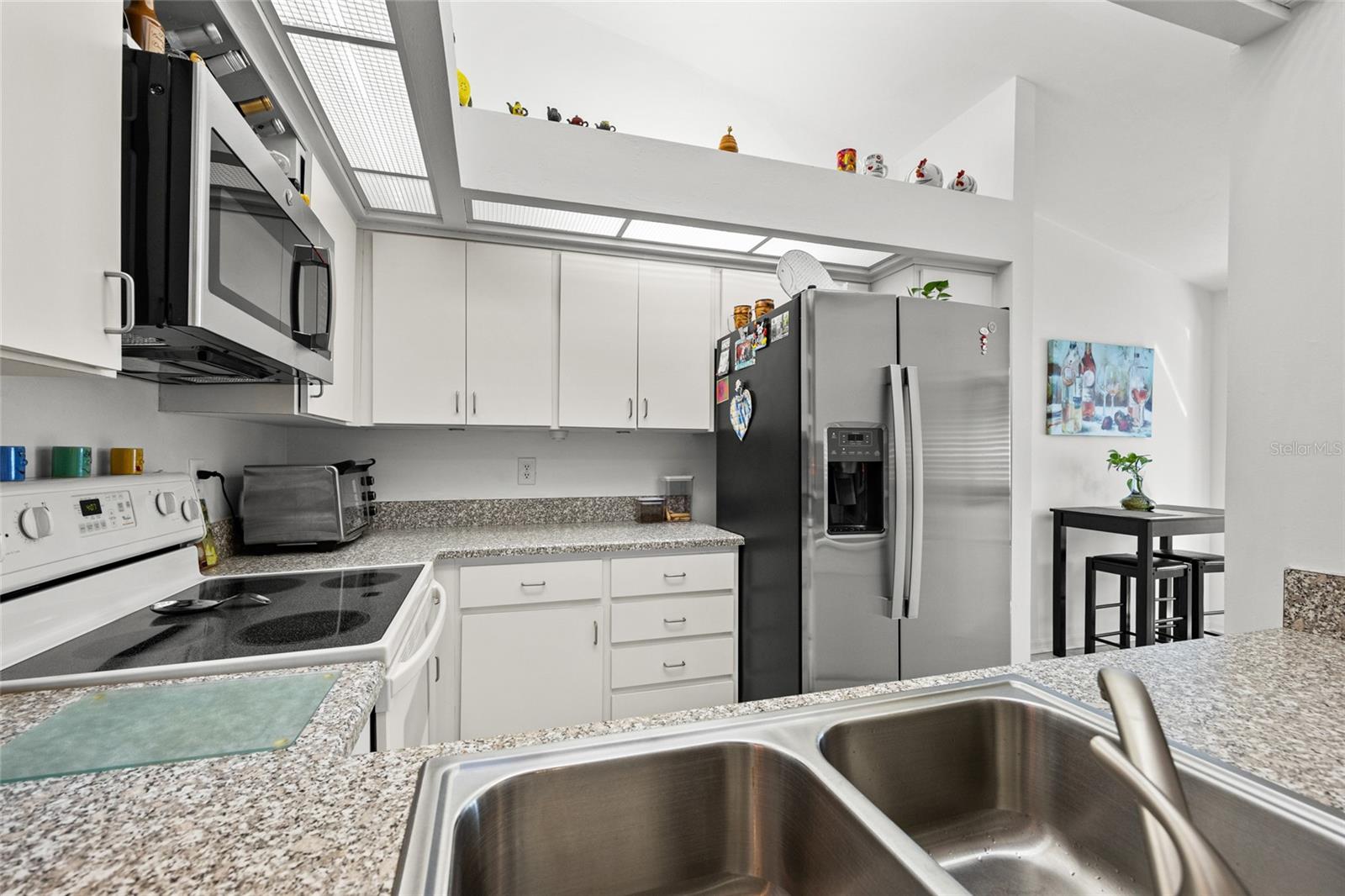 Located in the Wood Creek Village. Walk to the Millhopper shopping Center. This beautiful 2-bedroom 2 bath flat Villa no carpet, tile & Pergo flooring, dining area & Living room, indoors laundry room with washer & Dryer. Kitchen has built in Microwave (2024), dishwasher, refrigerator, breakfast nook, & plenty of cupboard space. Master bedroom has a walk-in closet, new ceiling fan with remote control. Master bather has walk-in shower. 2nd bedroom has mirror closet doors. 2nd bath has a tub. There is a wood burning fireplace in living room, 2 Skylights with high ceilings. & new ceiling fan with remote. A/C 2017, new blinds on windows. Enclosed porch with a utility closet. HOA covers roof, outside repairs, common areas & Pool. Move in ready. Call for an appointment today.