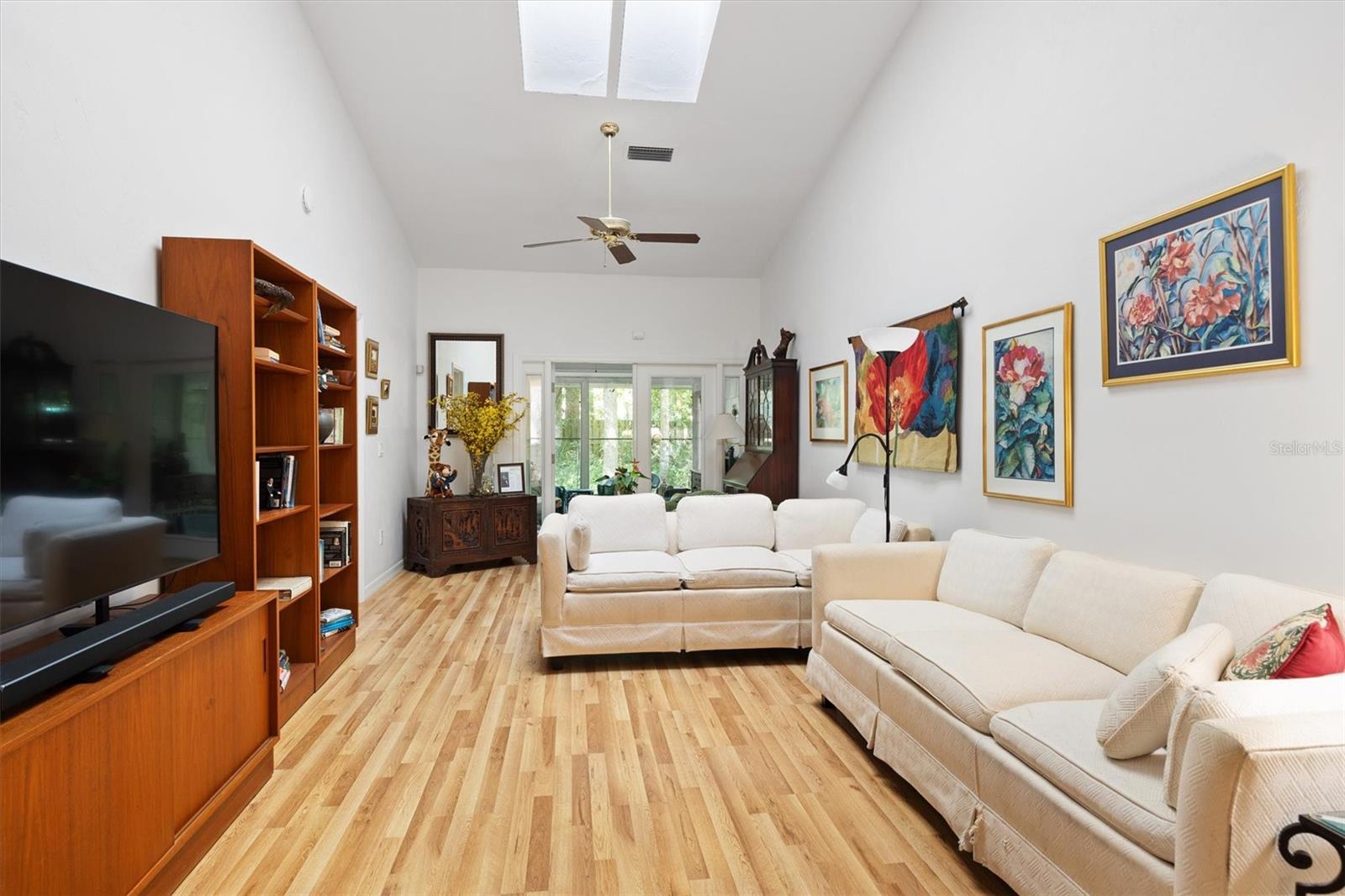 Experience care-free living in this chic 3-bedroom 2-bathroom END unit townhome. Nestled in the back of the community, it is an oasis in the very heart of Gainesville for convenient living! This home has tasteful finishes, including the wood finish flooring, updated fixtures and lighting, soaring ceilings, a new dishwasher, and stainless steel appliances. This 2-way split floorplan features three bedrooms and 2 full bathrooms; and the beautiful enclosed porch that feels like an extension of the large living room! The primary suite is separate from the rest of the rooms, and features a closet spacious enough to delight the serious fashion-forward owner! The home is equipped with the most advanced internet access to facilitate even the most discerning Remote employment options. Don't stress about exterior maintenance, the HOA covers roof replacement and siding replacement! INVESTORS: The attached garage and parking in the driveway make this a wonderful option for roommates! In addition to the exterior maintenance, the Vintage View community also offers a pool and green space! Vintage View is close to Target, Butler North, and conveniently next to all major shopping (The Oaks Mall) and a wide array of dining options. Looking to be close to the University of Florida, Shands/UF Health, the VA, vet school, or even UF Health? This location is unbeatable! Don't wait to schedule your showing today!