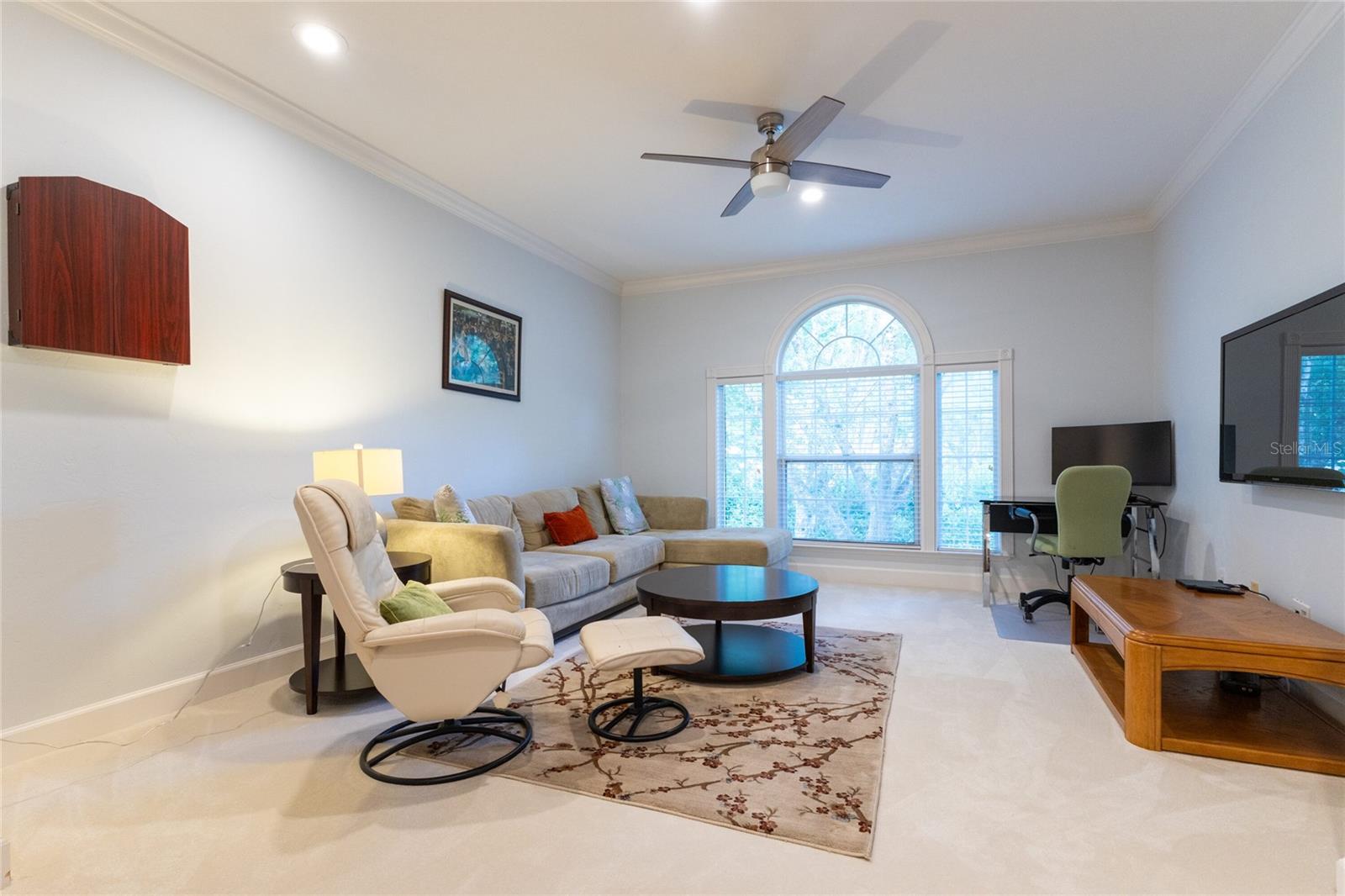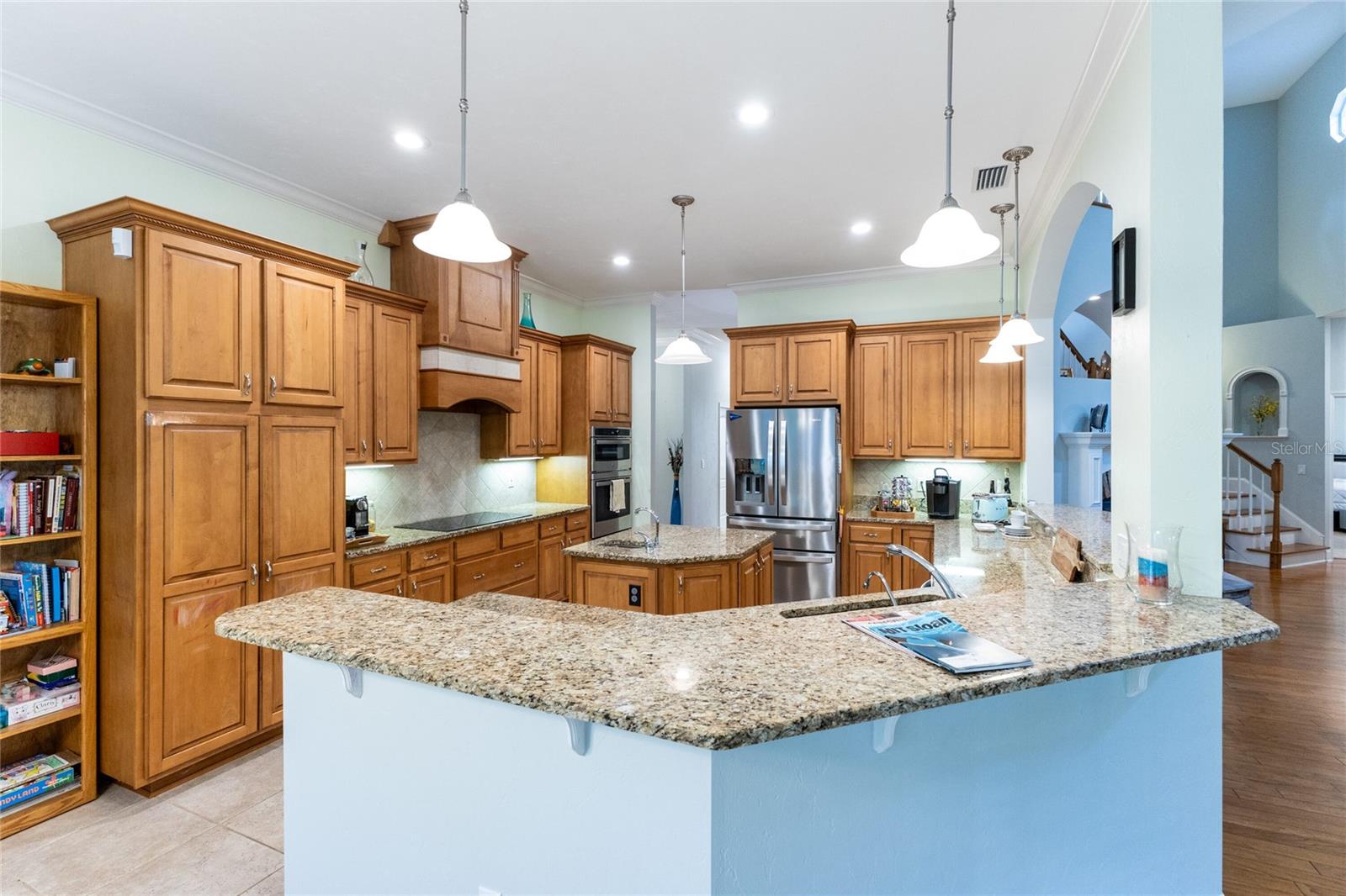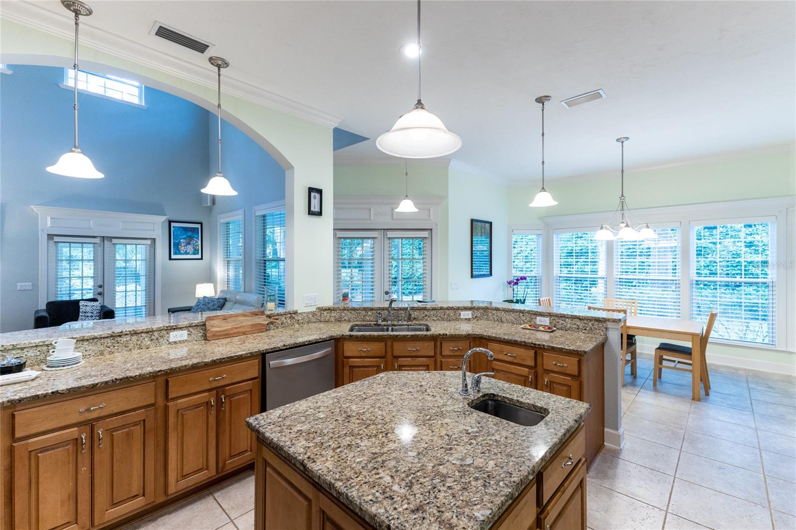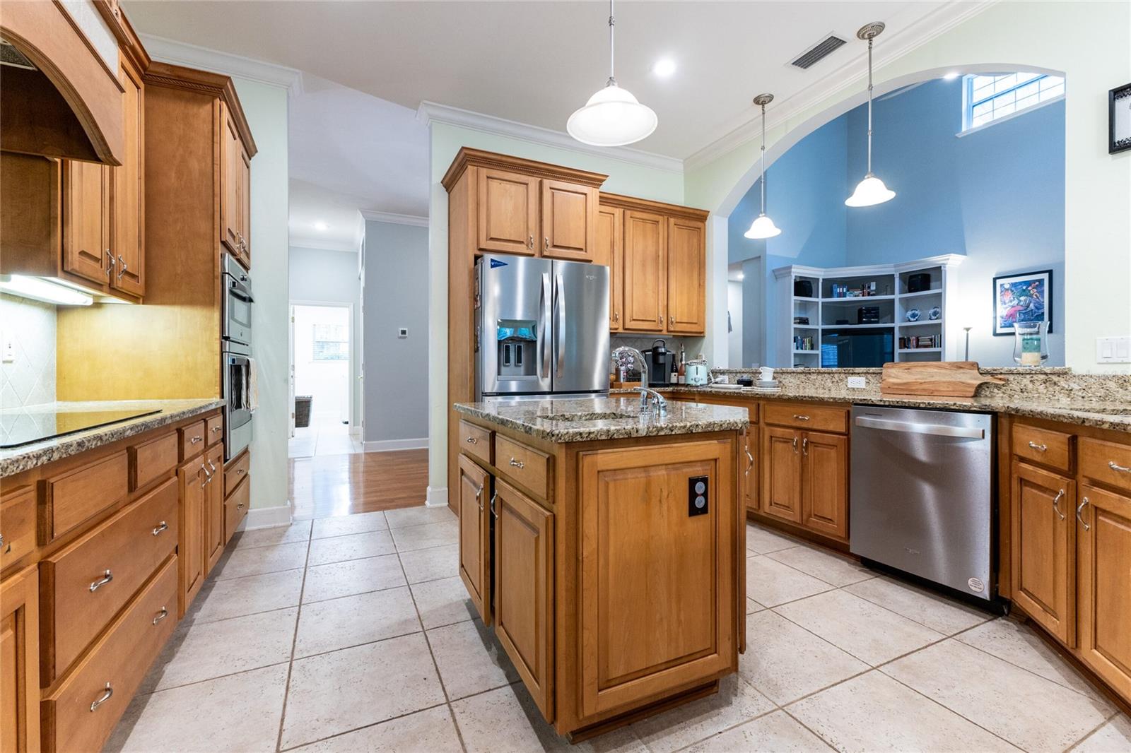 Come experience this unique blend of luxury and lifestyle re-defined. This beautiful residence features soaring 20' ceilings, wood floors, granite counters, abundant moldings and outstanding natural light. Prepare meals in comfort in your spacious open kitchen with wood cabinets, 2023 stainless appliances and an open interface with the stunning great room and its 20' high ceiling, built-in shelves and cozy gas fireplace with decorative stone surround. Relax at the end of a long day in the soothing, downstairs primary showcasing his and her walk-ins, a charming sitting area, jetted tub, walk in shower and dual vanities. The sensational upstairs features an outstanding family room that would make a great entertainment space or playroom as well as two oversized guest bedrooms each with their own walk-in closet and a large Jack & Jill bath. Additional highlights include a downstairs guest bedroom with walk-in closet and private en-suite bath, a stylish formal dining room with crown and wainscoting, 2024 roof, 2020 main HVAC and an irrigation system using efficient, reclaimed water. Enjoy peace and serenity from your picturesque back porch or sit on your open patio and appreciate the azaleas and abundant greenery of your private back yard on the lush, 1/2 acre lot. All of this comes in an extraordinary location with great schools, walking distance from the award winning Haile Village Center, Hawkstone Golf and Country Club, Haile Market Square Publix and an easy commute to UF and Shands and the VA.