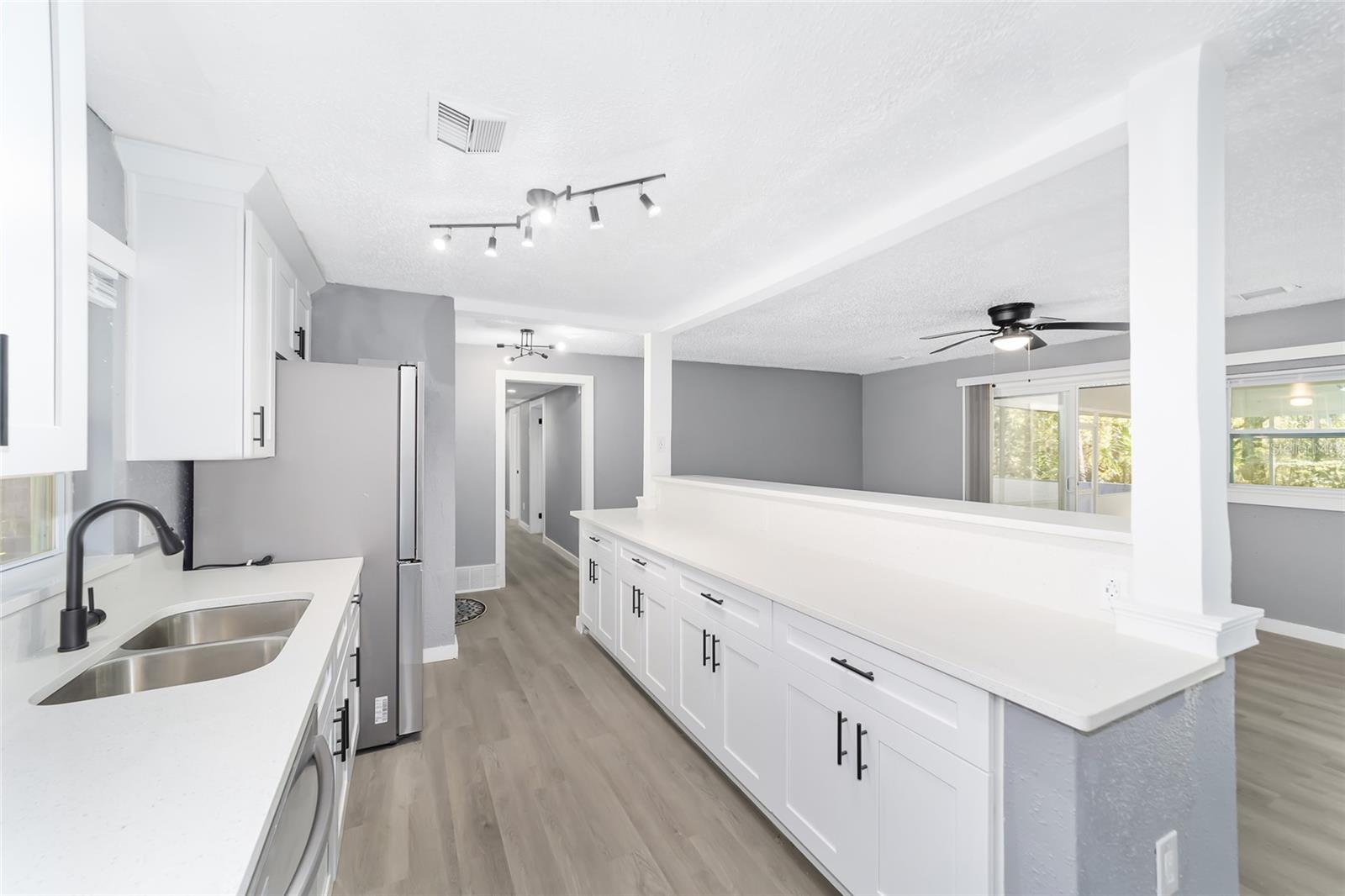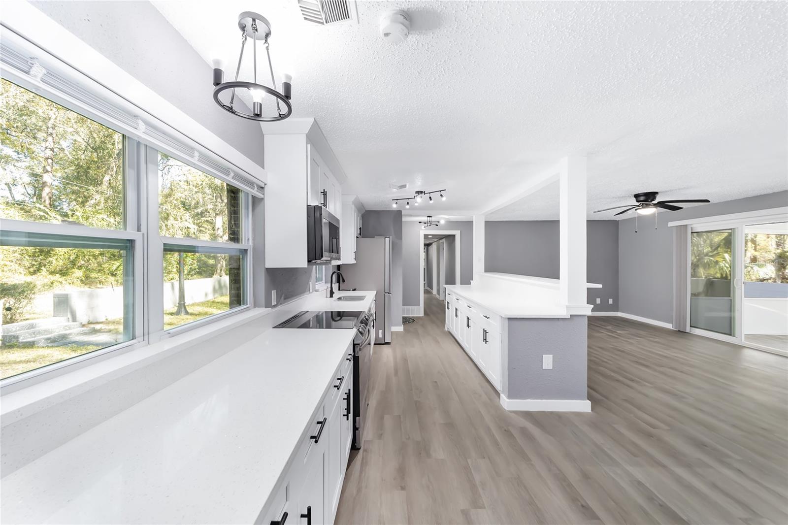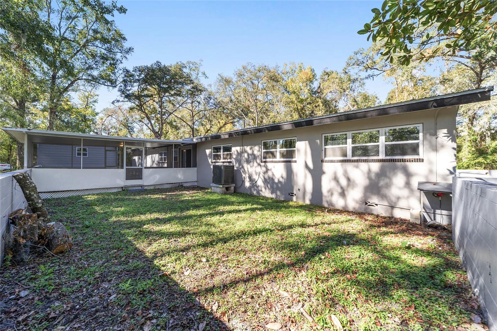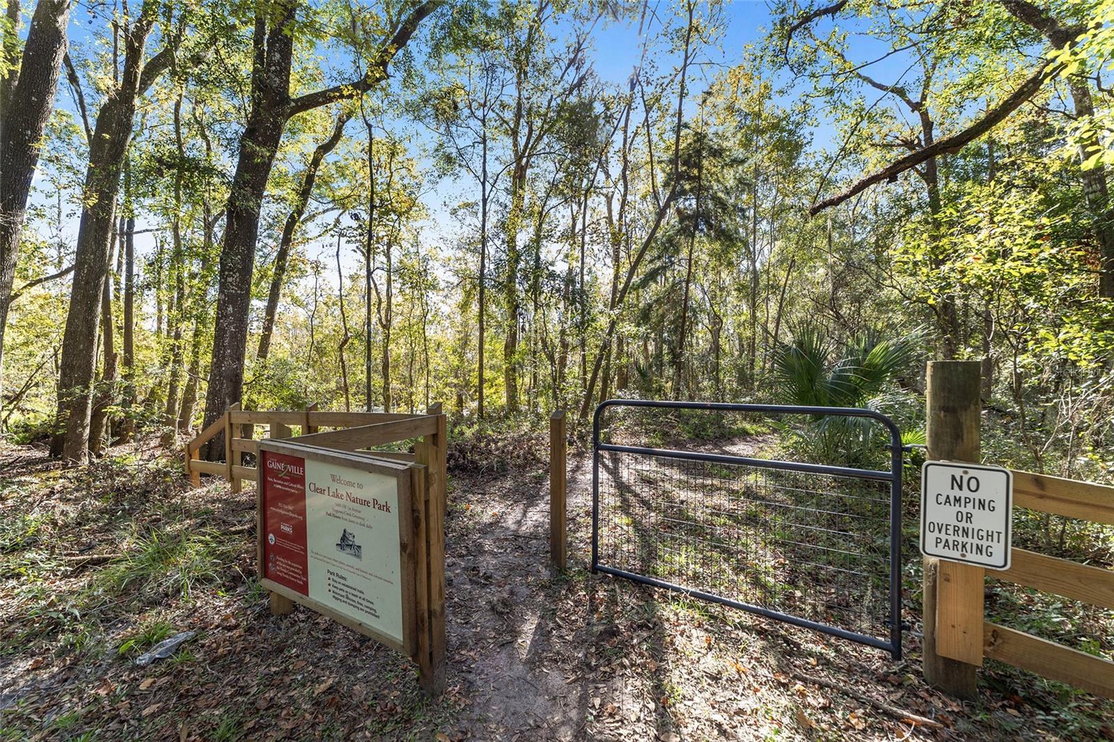 One or more photo(s) has been virtually staged. Welcome to this stunningly updated 3-bedroom, 2-bathroom, concrete block home, offering 1,457 square feet of contemporary living space on a secluded 1.35-acre lot at the end of Clear Lake Road. NO HOA. New Roof, HVAC & Water Heater. Nestled in the heart of Gainesville, this residence combines privacy with convenience. Featuring brand-new stainless-steel appliances, durable vinyl plank flooring, and modern fixtures throughout, this home is fully upgraded and move-in ready. The inviting floor plan includes a spacious living area, a chic new kitchen w/quartz countertops and new cabinetry, and beautifully remodeled bathrooms. Step outside to the expansive screened back patio, where you can unwind while taking in views of the serene nature preserve, complete with deer, birds, and fruit trees. Surrounded by city conservation land, and Clear Lake Nature Park access at the back of this property ensures a full nature surrounding. Additionally, there’s a detached garage/workshop, equipped with electrical for your boat or camper. Conveniently located to I-75, Newberry Rd, UF, Shands, SFCC, shopping, restaurants and more, this home offers the best of both worlds—seclusion and easy access to everything you need. Schedule your showing today!
