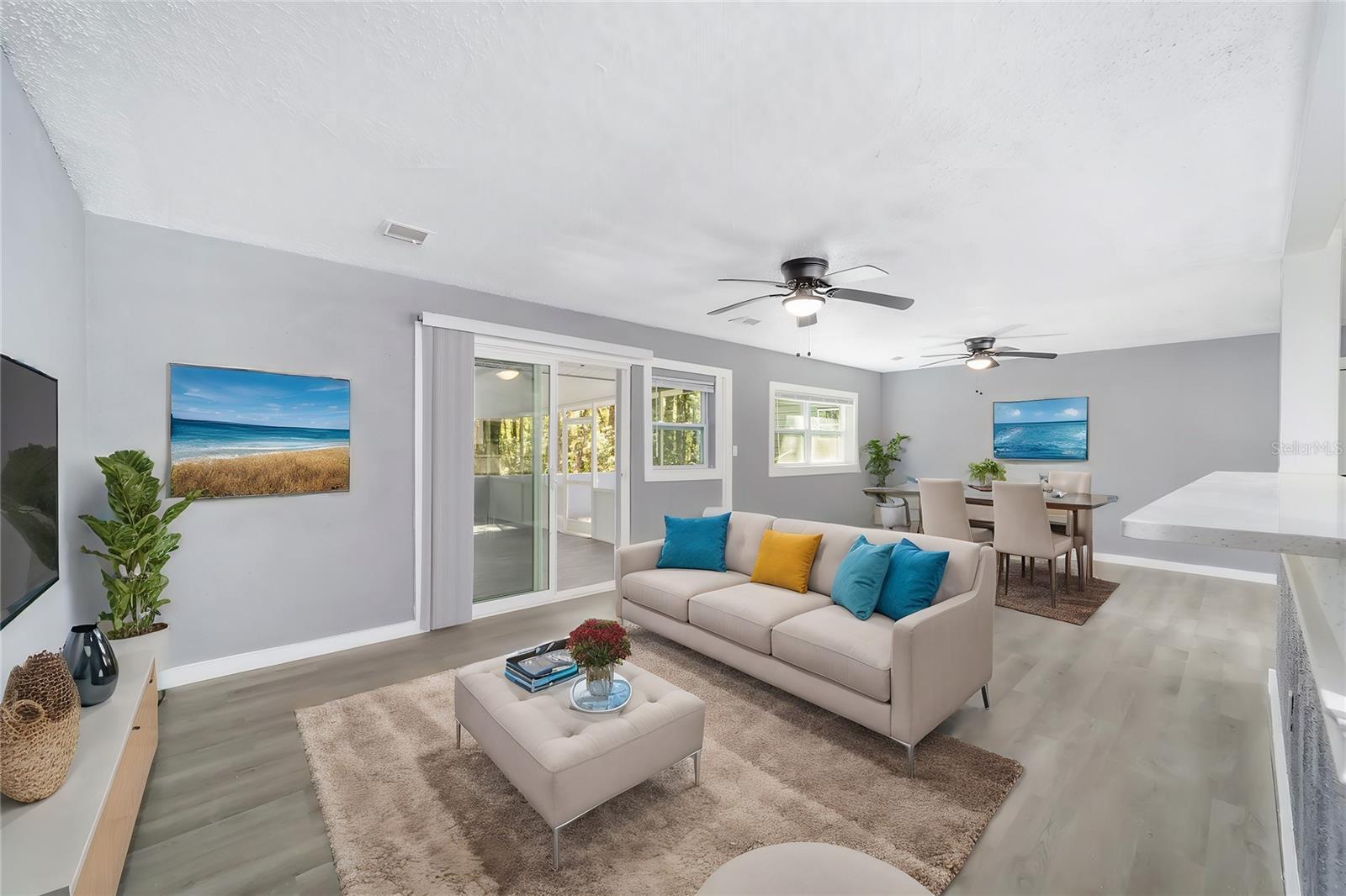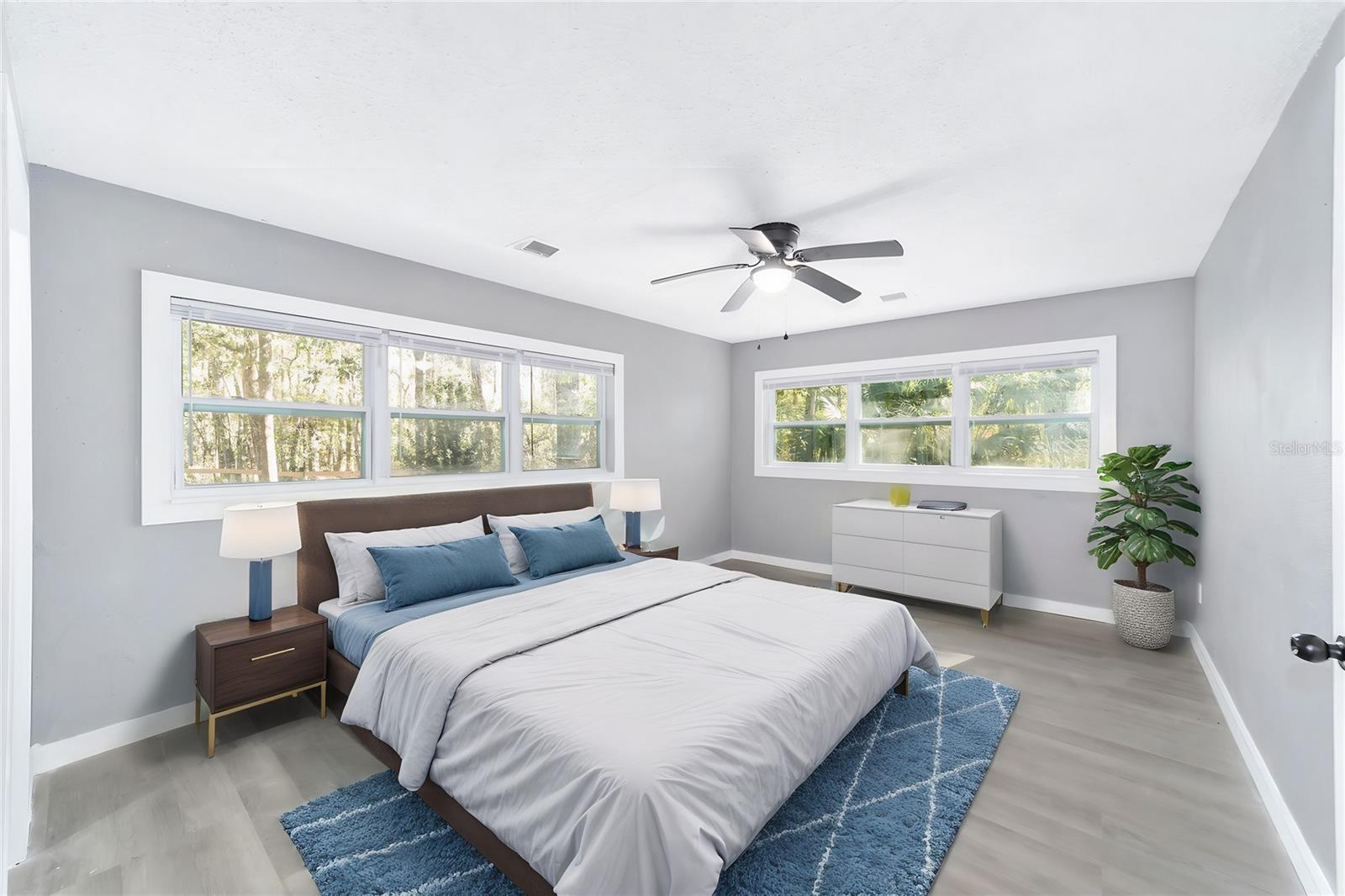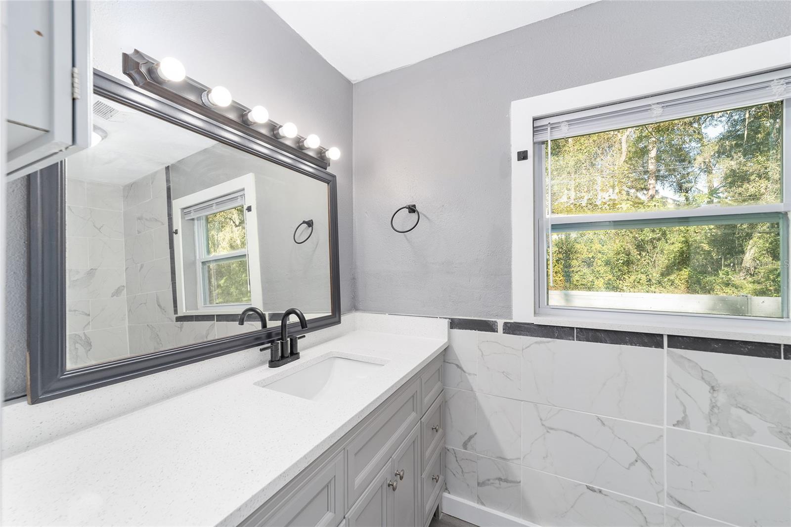 One or more photo(s) has been virtually staged. Welcome to this stunningly updated 3-bedroom, 2-bathroom, concrete block home, offering 1,457 square feet of contemporary living space on a secluded 1.35-acre lot at the end of Clear Lake Road. NO HOA. New Roof, HVAC & Water Heater. Nestled in the heart of Gainesville, this residence combines privacy with convenience. Featuring brand-new stainless-steel appliances, durable vinyl plank flooring, and modern fixtures throughout, this home is fully upgraded and move-in ready. The inviting floor plan includes a spacious living area, a chic new kitchen w/quartz countertops and new cabinetry, and beautifully remodeled bathrooms. Step outside to the expansive screened back patio, where you can unwind while taking in views of the serene nature preserve, complete with deer, birds, and fruit trees. Surrounded by city conservation land, and Clear Lake Nature Park access at the back of this property ensures a full nature surrounding. Additionally, there’s a detached garage/workshop, equipped with electrical for your boat or camper. Conveniently located to I-75, Newberry Rd, UF, Shands, SFCC, shopping, restaurants and more, this home offers the best of both worlds—seclusion and easy access to everything you need. Schedule your showing today!