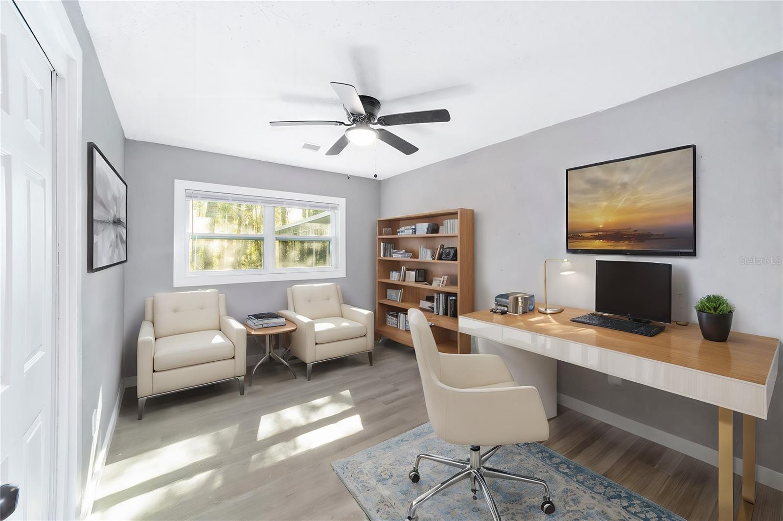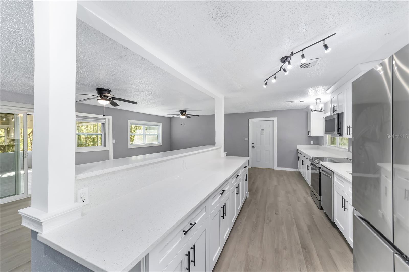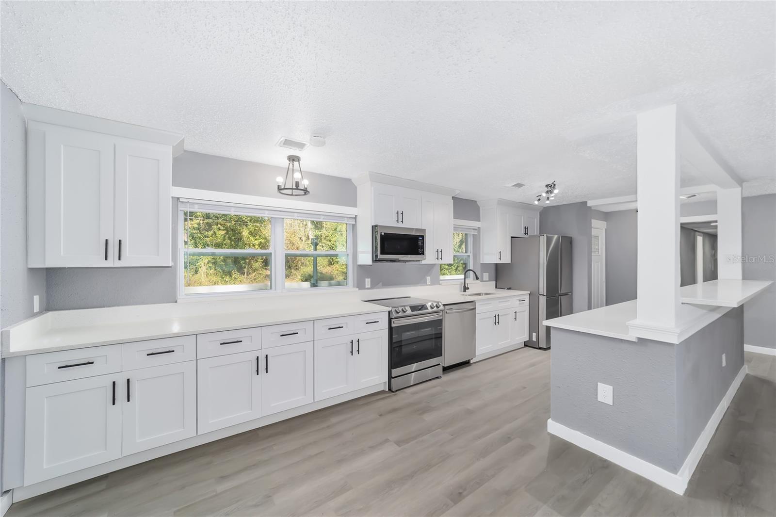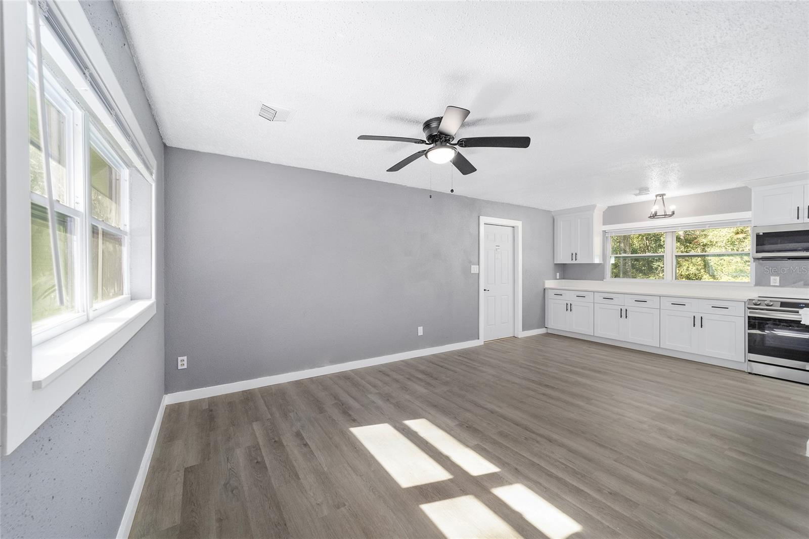 One or more photo(s) has been virtually staged. Welcome to this stunningly updated 3-bedroom, 2-bathroom, concrete block home, offering 1,457 square feet of contemporary living space on a secluded 1.35-acre lot at the end of Clear Lake Road. NO HOA. New Roof, HVAC & Water Heater. Nestled in the heart of Gainesville, this residence combines privacy with convenience. Featuring brand-new stainless-steel appliances, durable vinyl plank flooring, and modern fixtures throughout, this home is fully upgraded and move-in ready. The inviting floor plan includes a spacious living area, a chic new kitchen w/quartz countertops and new cabinetry, and beautifully remodeled bathrooms. Step outside to the expansive screened back patio, where you can unwind while taking in views of the serene nature preserve, complete with deer, birds, and fruit trees. Surrounded by city conservation land, and Clear Lake Nature Park access at the back of this property ensures a full nature surrounding. Additionally, there’s a detached garage/workshop, equipped with electrical for your boat or camper. Conveniently located to I-75, Newberry Rd, UF, Shands, SFCC, shopping, restaurants and more, this home offers the best of both worlds—seclusion and easy access to everything you need. Schedule your showing today!
