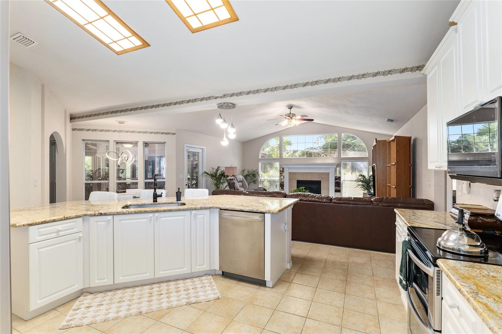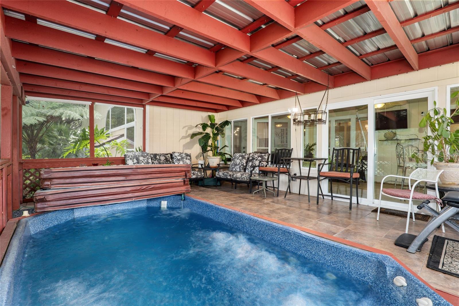 Discover your slice of paradise in this beautifully maintained 4-bedroom, 3-bathroom home in Stillwind! Lush landscaping leads to a welcoming front porch, and inside, you'll find a bright, open living and dining area flowing into a sunroom. The kitchen features new granite countertops, stainless steel appliances, and a breakfast bar overlooking the cozy family room with a gas fireplace. Step into the screened lanai to enjoy the heated, cooled Swim Spa—perfect for swimming laps or relaxing in the jetted hot tub. The split floor plan offers privacy, with a spacious primary suite boasting double sinks, a soaking tub, and two walk-in closets. Recent updates include a 2022 roof, 2015 HVAC, 2020 washer/dryer, and 2024 screen doors. With a serene backyard view and move-in-ready condition, this home has it all! Schedule your tour today!