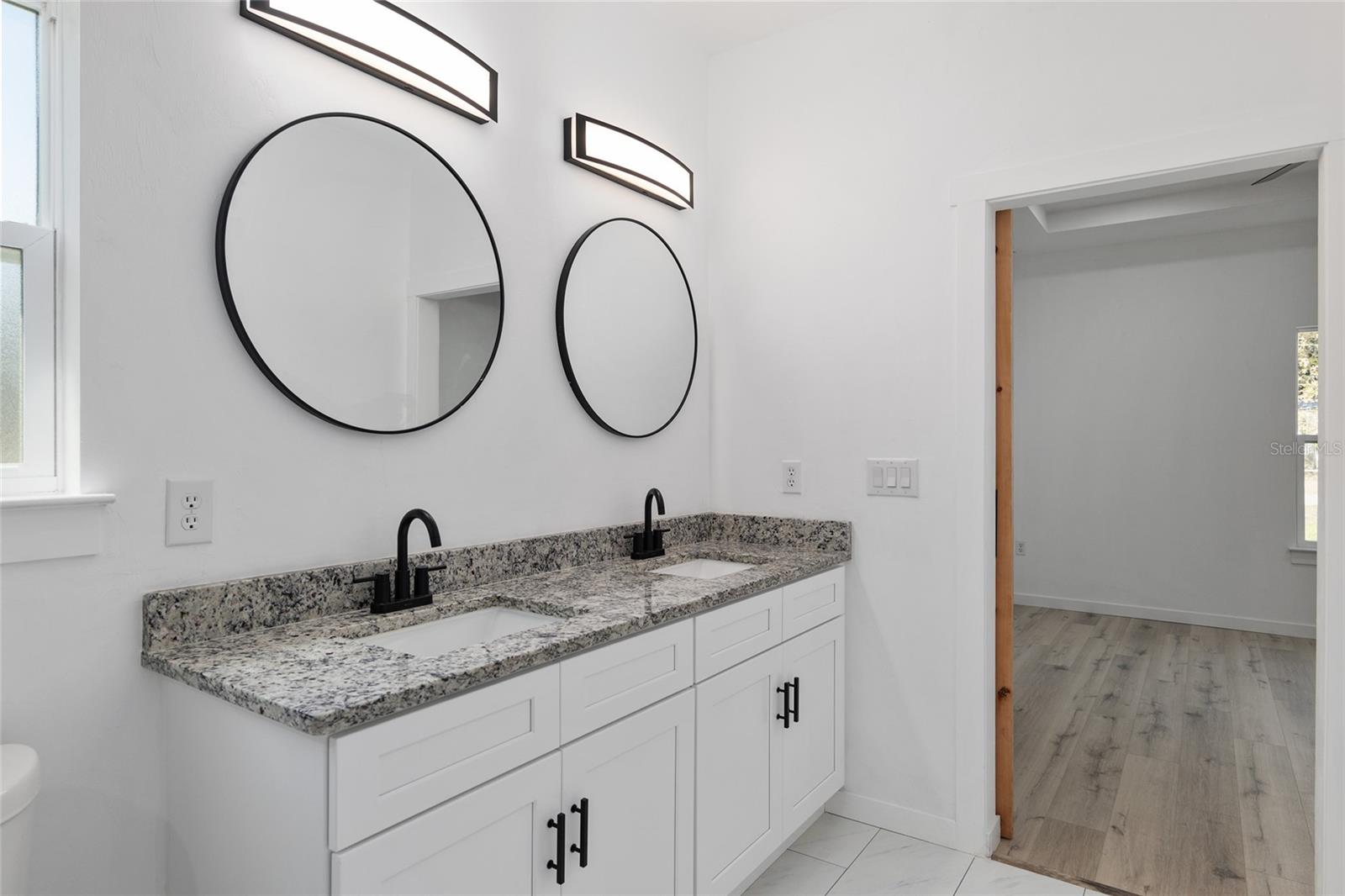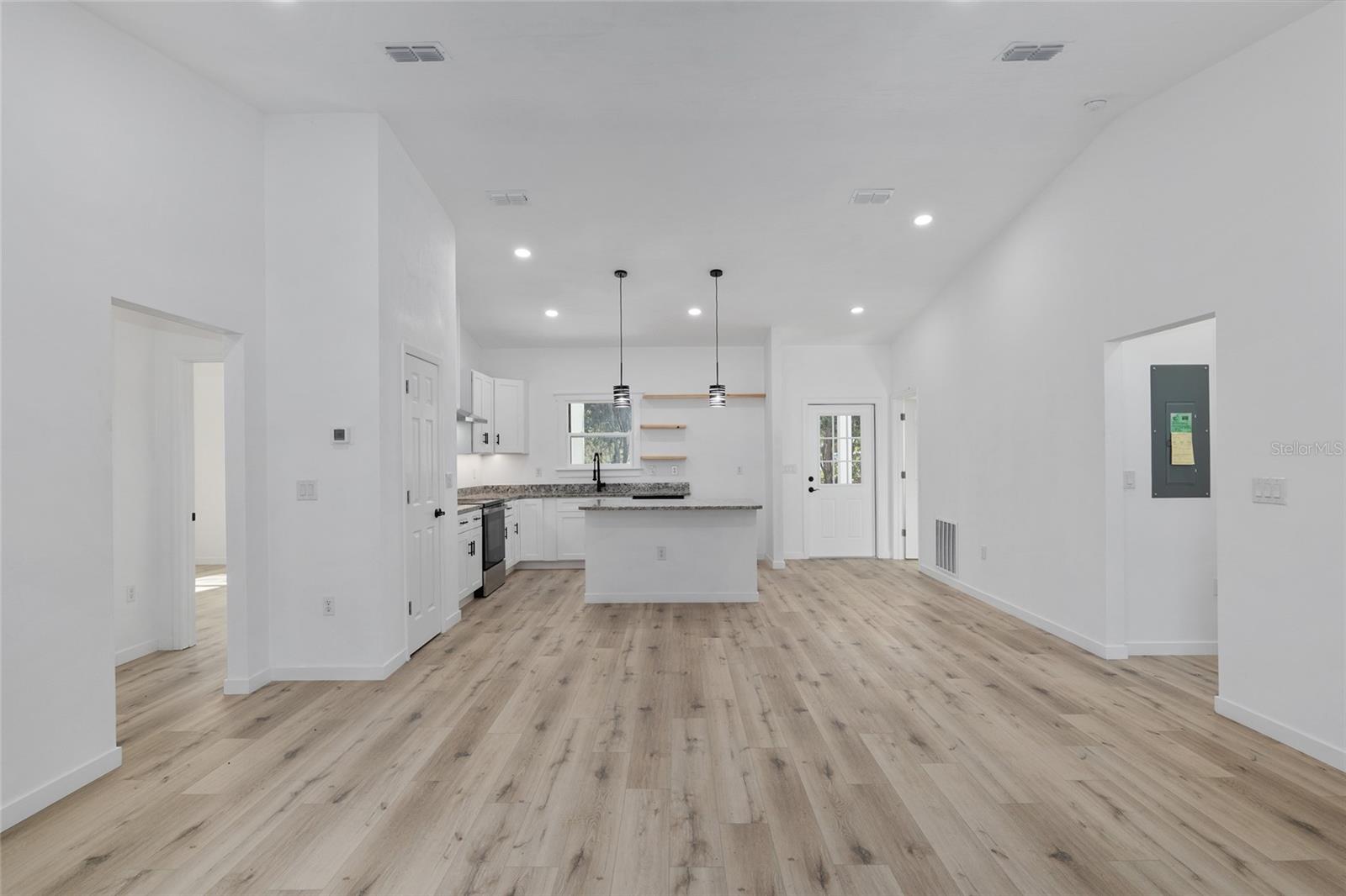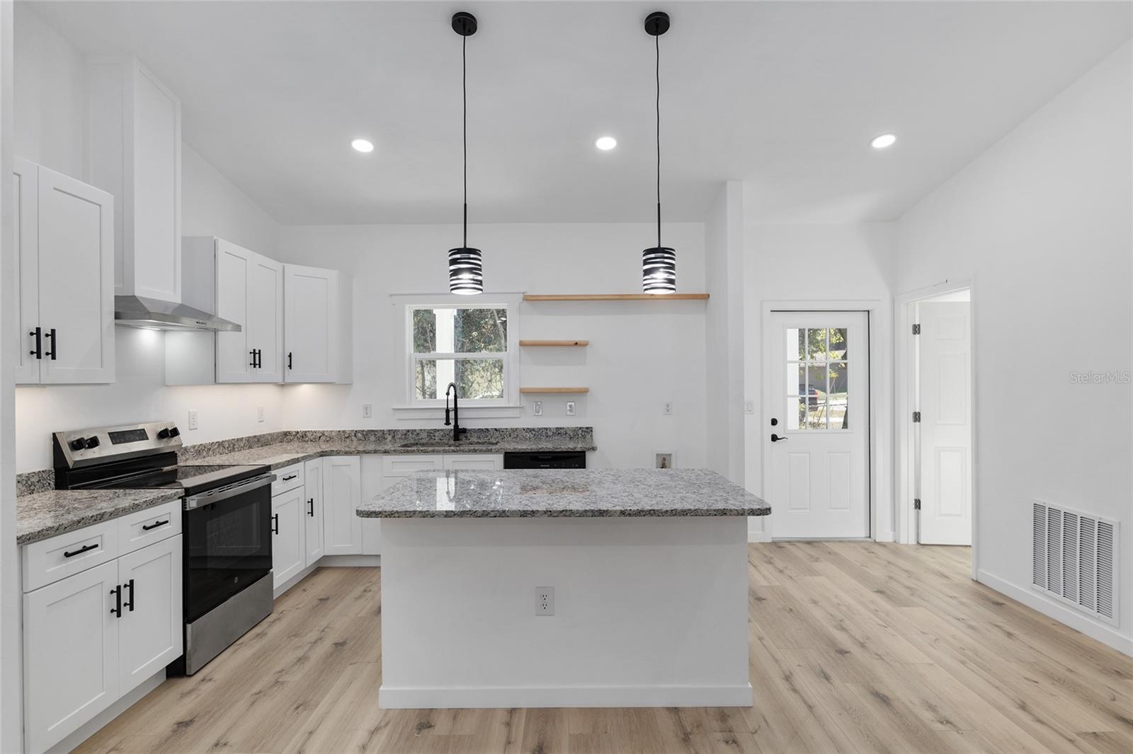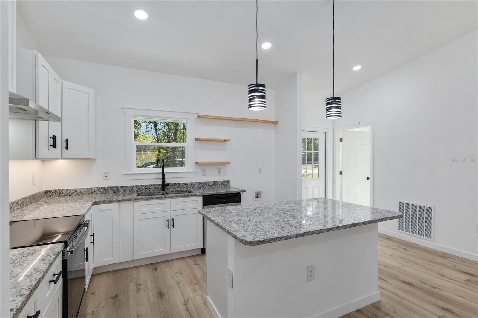 Great opportunity to get into this JUST COMPLETED 3 bedroom 2 bath home located in Gainesville. Set on a corner lot, this new construction dwelling will be the perfect place to come home and unwind. A contemporary design that features an open living space with wood-look flooring and soaring ceilings. The kitchen offers plenty of storage with solid wood shaker cabinets, gorgeous granite counters and spacious eat in kitchen island that can double as a food prep area. Your well appointed primary bedroom features tray ceilings, a large walk-in closet and luxurious private bath with a HUGE open shower area. Both guest bedrooms are light and bright with 9 foot ceilings and share their own luxurious bathroom with designer fixtures. Right of off Archer Rd and I-75, you'll be in one of the most convenient locations in Gainesville! Call for a private tour today!