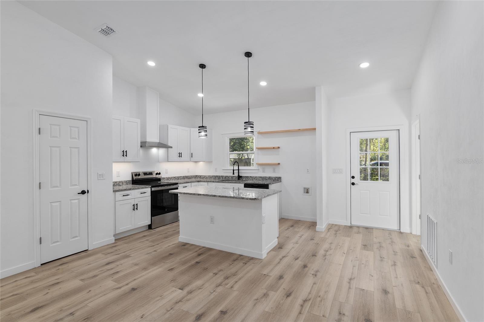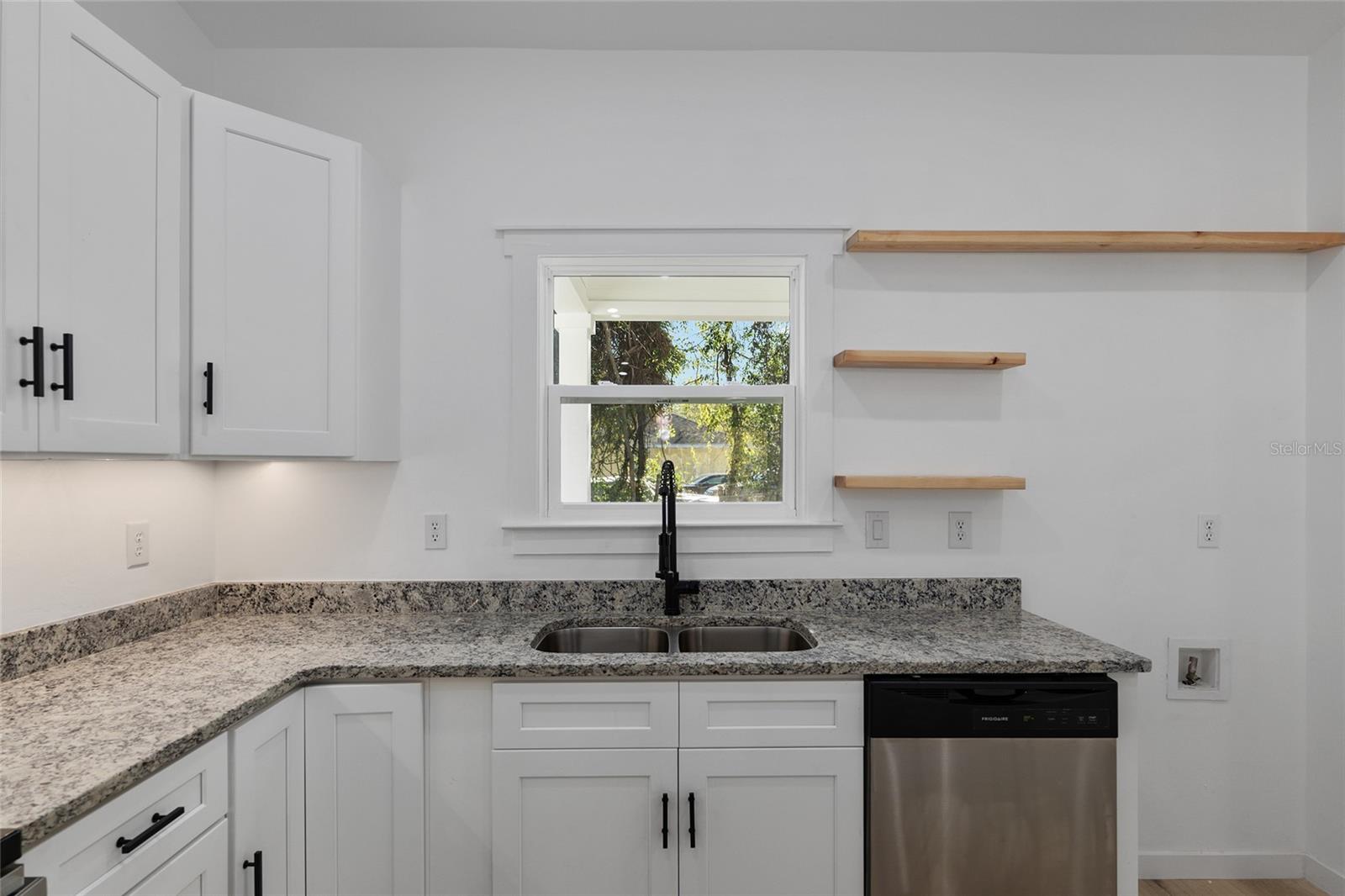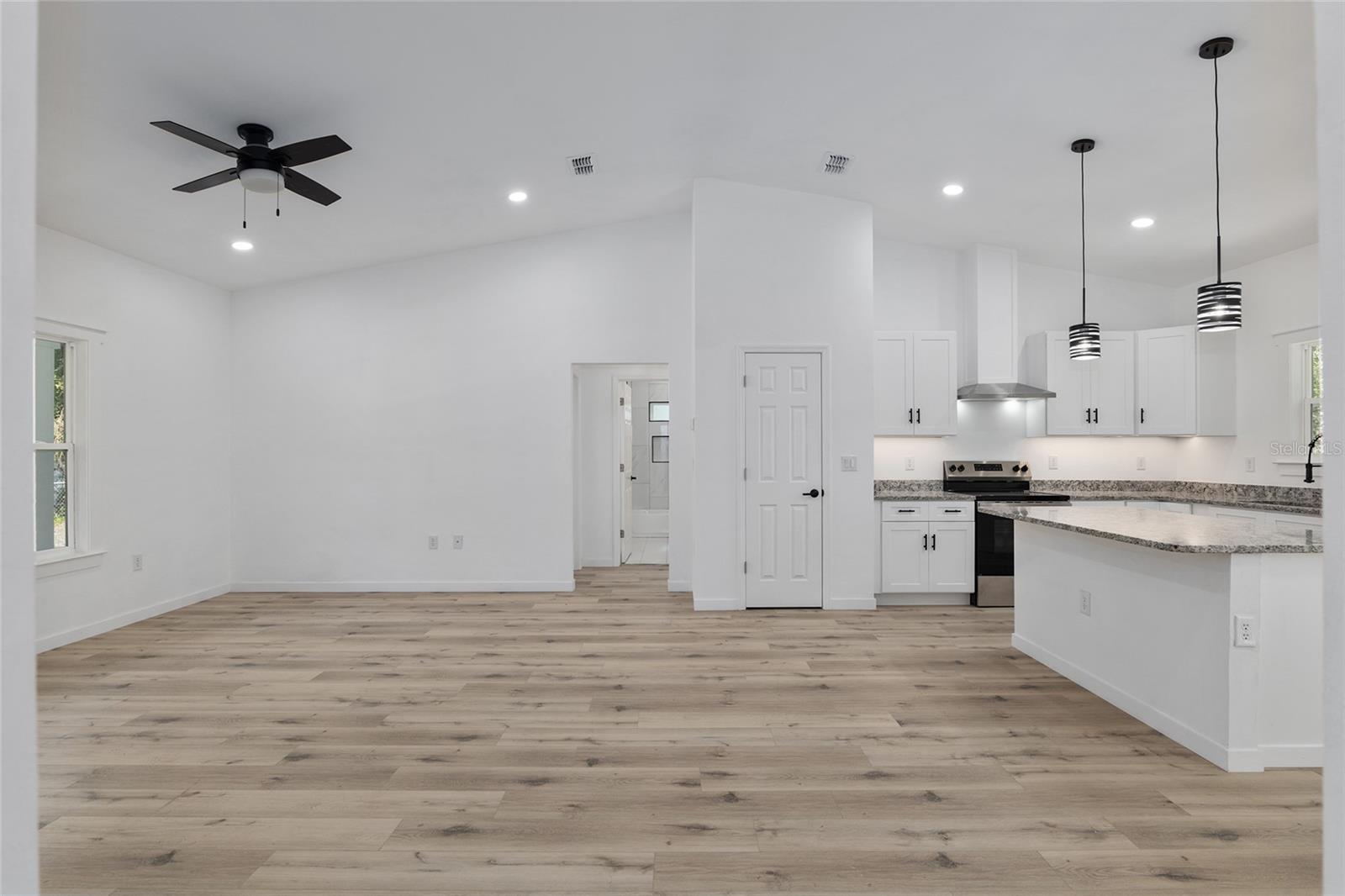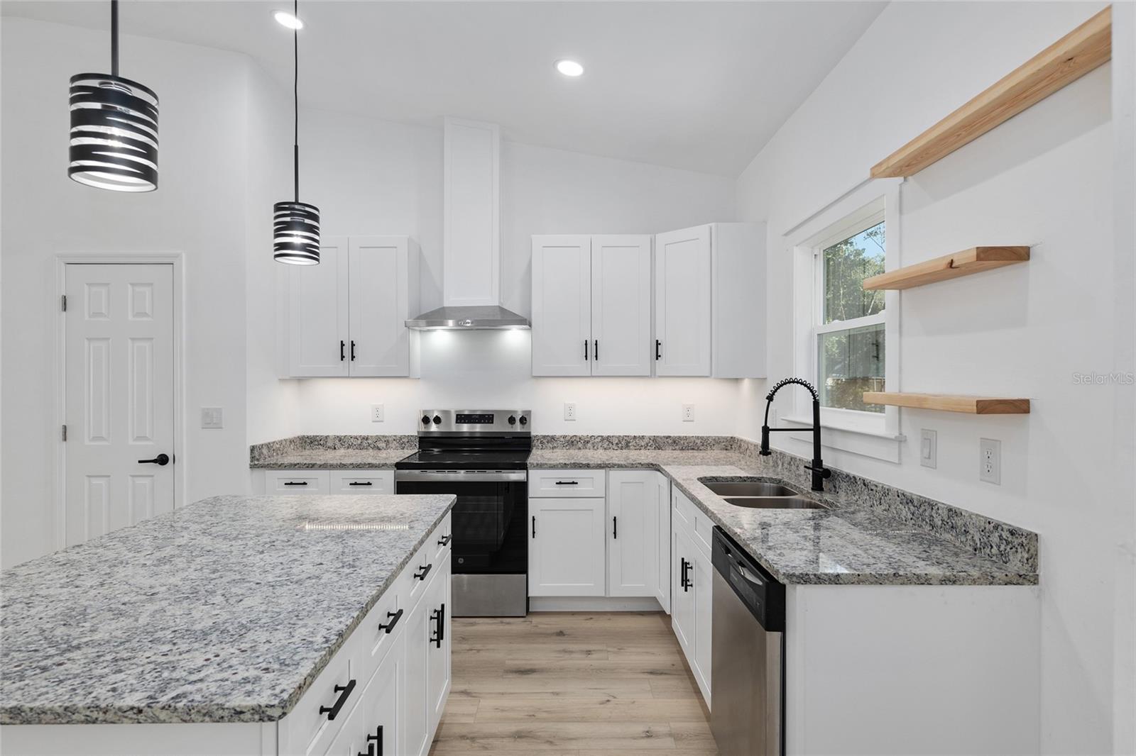 Great opportunity to get into this JUST COMPLETED 3 bedroom 2 bath home located in Gainesville. Set on a corner lot, this new construction dwelling will be the perfect place to come home and unwind. A contemporary design that features an open living space with wood-look flooring and soaring ceilings. The kitchen offers plenty of storage with solid wood shaker cabinets, gorgeous granite counters and spacious eat in kitchen island that can double as a food prep area. Your well appointed primary bedroom features tray ceilings, a large walk-in closet and luxurious private bath with a HUGE open shower area. Both guest bedrooms are light and bright with 9 foot ceilings and share their own luxurious bathroom with designer fixtures. Right of off Archer Rd and I-75, you'll be in one of the most convenient locations in Gainesville! Call for a private tour today!