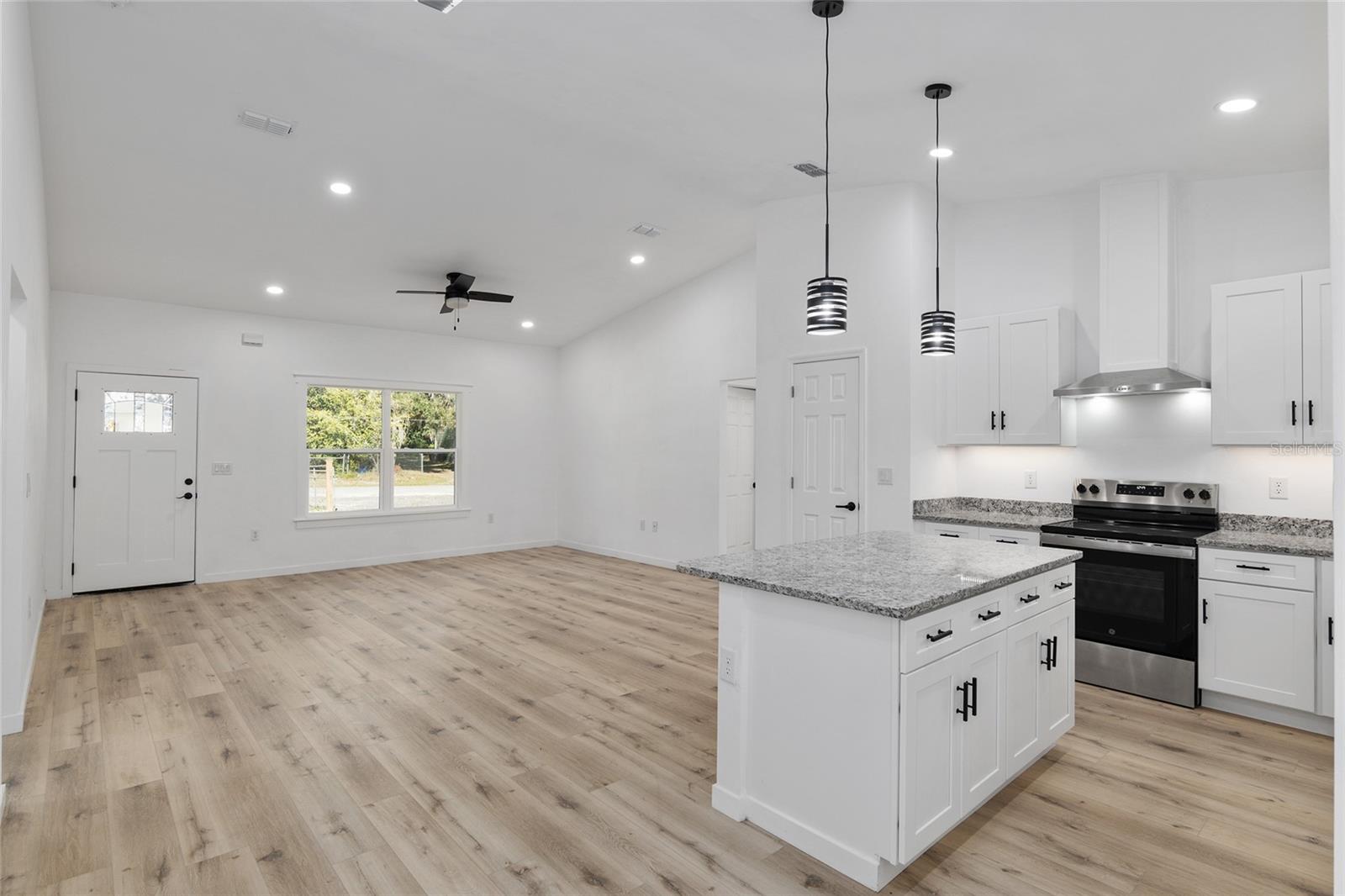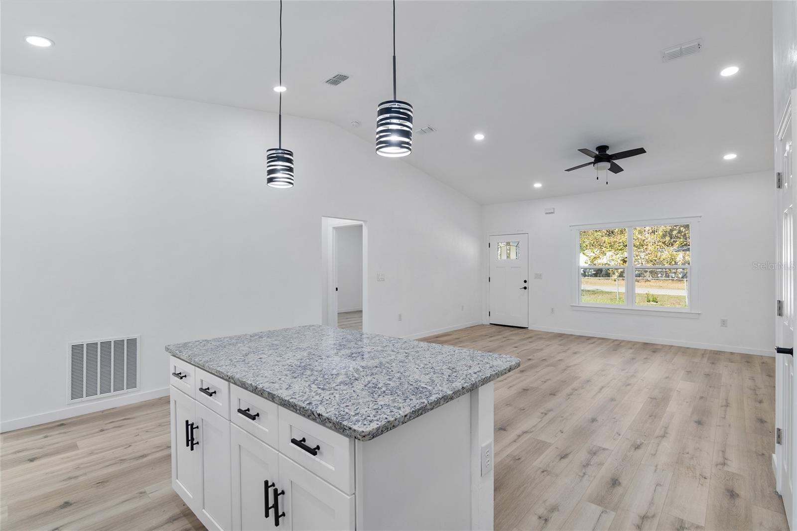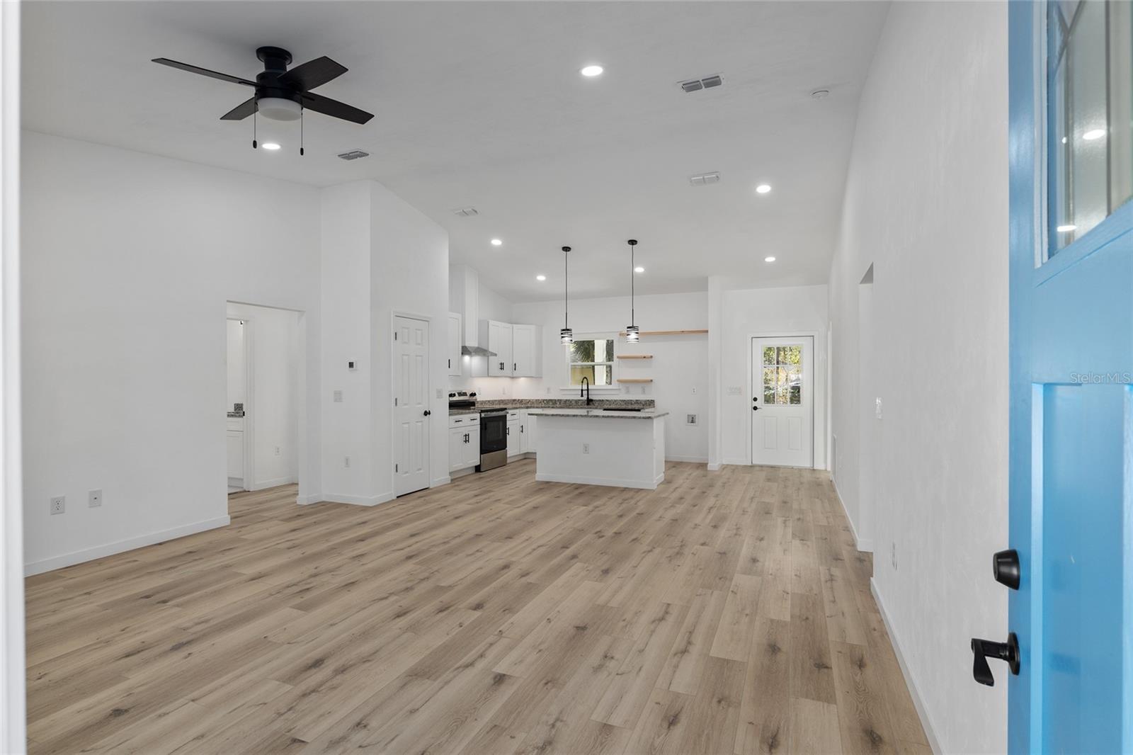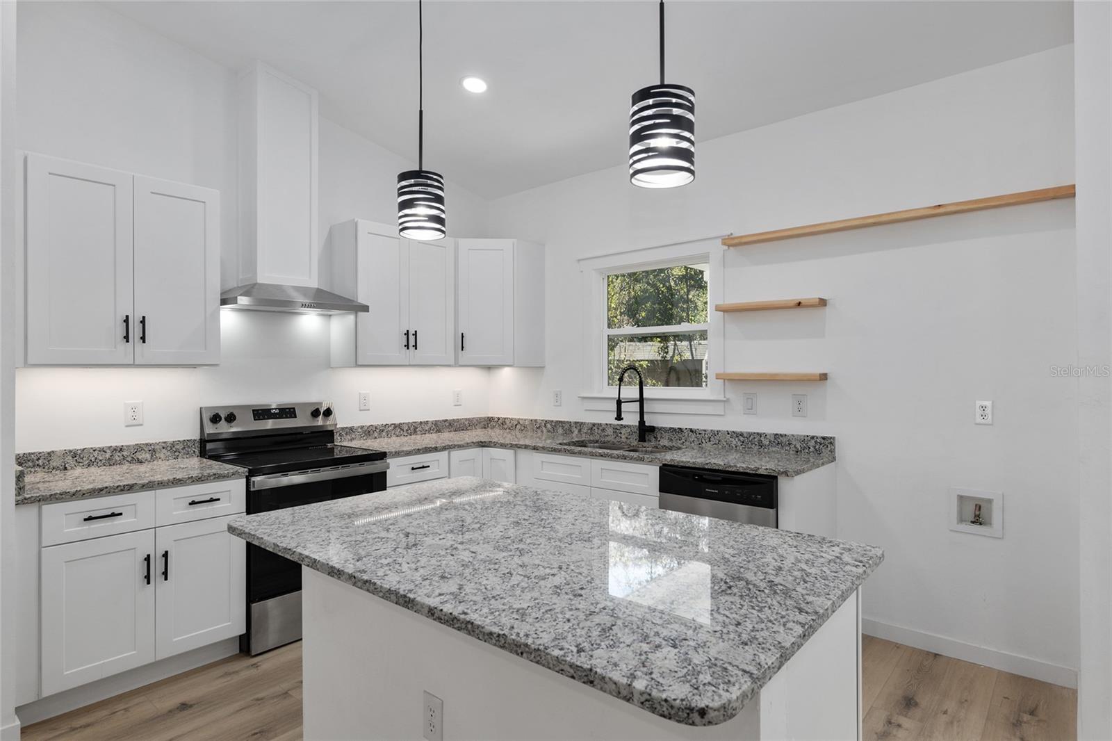 Great opportunity to get into this JUST COMPLETED 3 bedroom 2 bath home located in Gainesville. Set on a corner lot, this new construction dwelling will be the perfect place to come home and unwind. A contemporary design that features an open living space with wood-look flooring and soaring ceilings. The kitchen offers plenty of storage with solid wood shaker cabinets, gorgeous granite counters and spacious eat in kitchen island that can double as a food prep area. Your well appointed primary bedroom features tray ceilings, a large walk-in closet and luxurious private bath with a HUGE open shower area. Both guest bedrooms are light and bright with 9 foot ceilings and share their own luxurious bathroom with designer fixtures. Right of off Archer Rd and I-75, you'll be in one of the most convenient locations in Gainesville! Call for a private tour today!