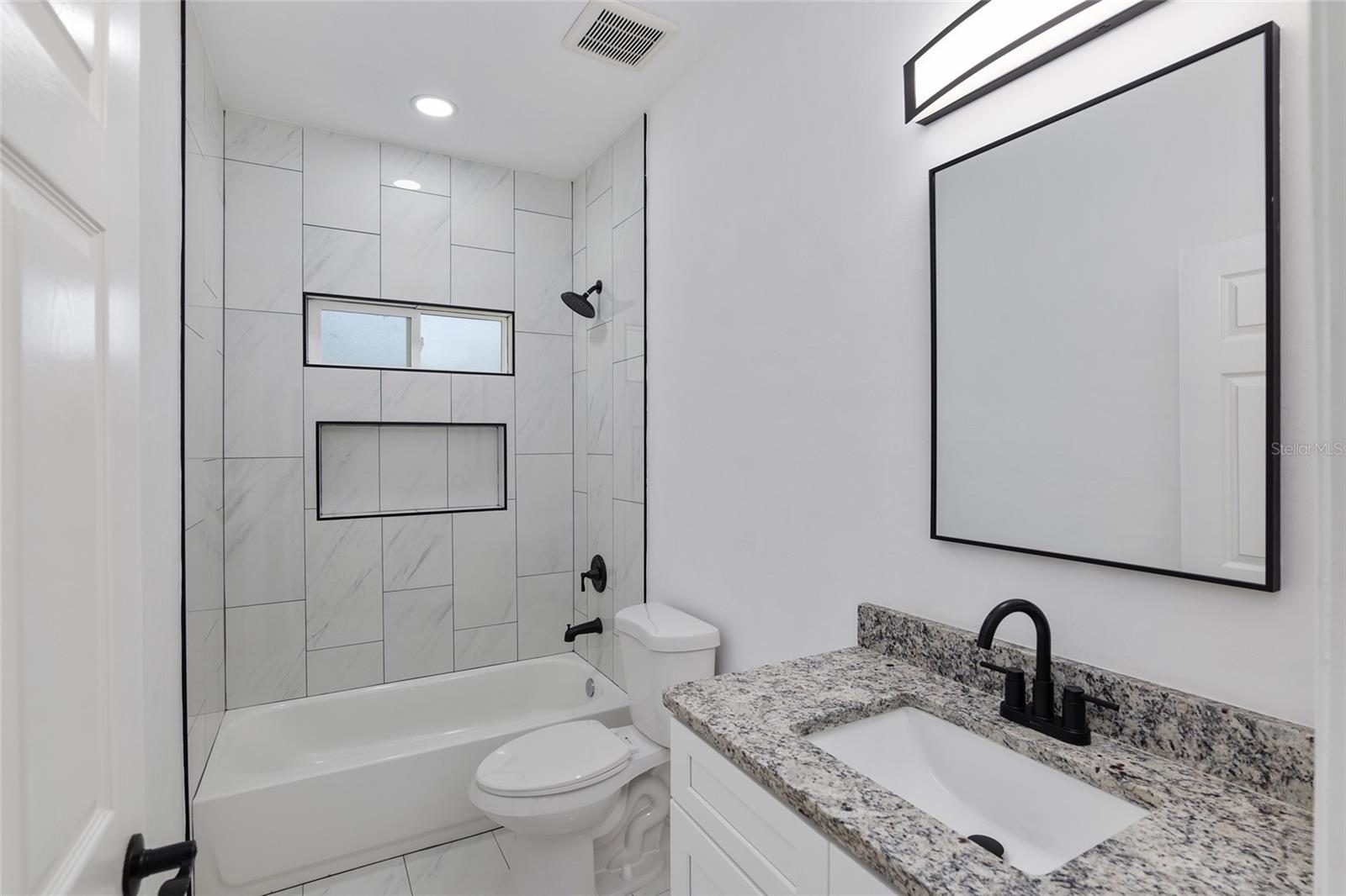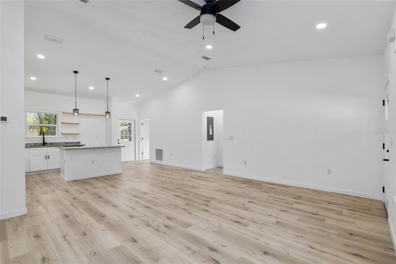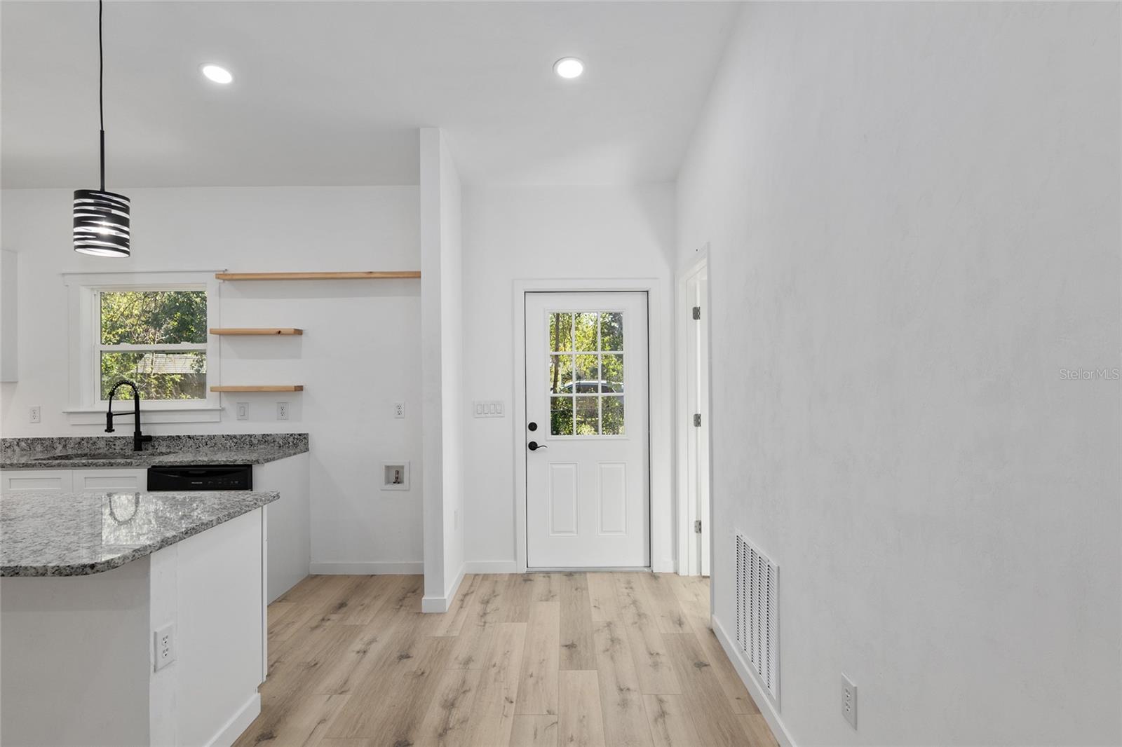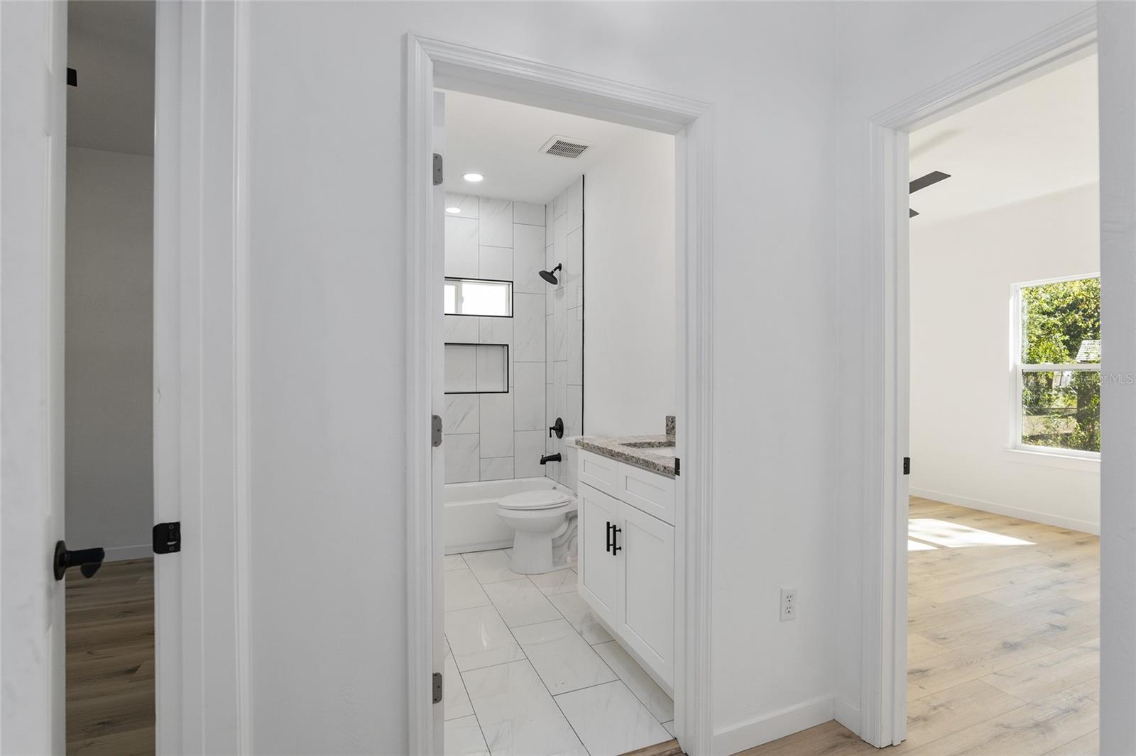 Great opportunity to get into this JUST COMPLETED 3 bedroom 2 bath home located in Gainesville. Set on a corner lot, this new construction dwelling will be the perfect place to come home and unwind. A contemporary design that features an open living space with wood-look flooring and soaring ceilings. The kitchen offers plenty of storage with solid wood shaker cabinets, gorgeous granite counters and spacious eat in kitchen island that can double as a food prep area. Your well appointed primary bedroom features tray ceilings, a large walk-in closet and luxurious private bath with a HUGE open shower area. Both guest bedrooms are light and bright with 9 foot ceilings and share their own luxurious bathroom with designer fixtures. Right of off Archer Rd and I-75, you'll be in one of the most convenient locations in Gainesville! Call for a private tour today!