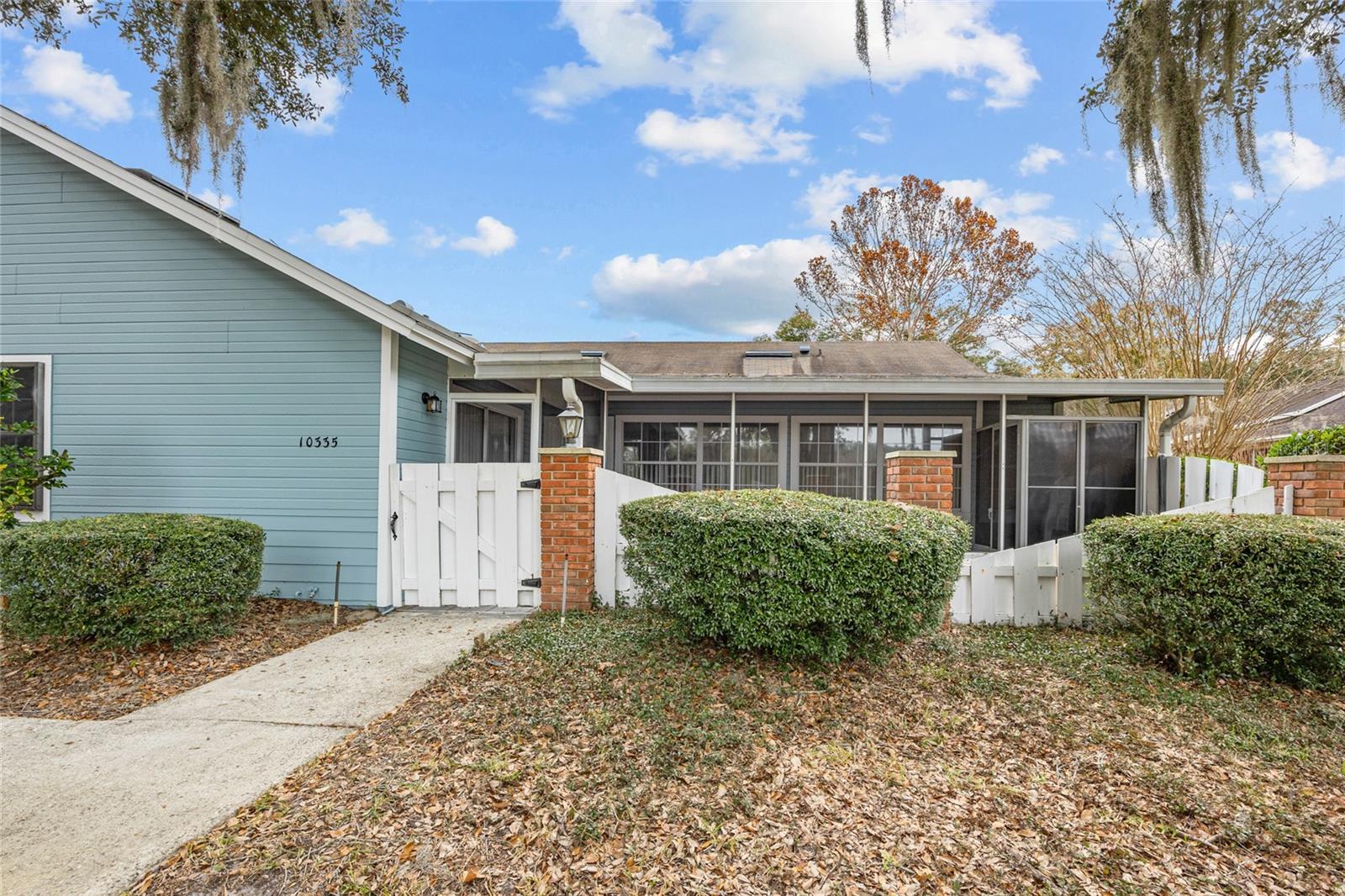 Resort-style living in an elegant, updated 2-bed, 2-bath villa in the coveted gated community of Meadowbrook! This highly desirable end unit evokes a sense of luxury and comfort with its fenced courtyard and front screened porch. Additional functional elements designed to enhance everyday living include vaulted ceilings, beautiful wood laminate flooring, newer quartz countertops (2022), new faucets in the kitchen and bathrooms, and a newer hot water heater. Entering the home, you will find a living room with an abundance of natural light, creating a welcoming ambience. The spacious open concept family room and dining room flow into the galley kitchen that boasts a large pantry and breakfast bar. The expansive primary suite is a haven for calming the busyness of the day. The soothing ensuite bath is equipped with double vanities and a new glass shower door. Another sizable bedroom has easy access to the guest bath with a tub/shower combo. An added highlight is the HVAC system maintenance contract, which is in place until spring. Meadowbrook’s amenities are first-rate. Residents get to enjoy an active clubhouse, community swimming pool, fitness center, tennis, basketball and shuffleboard courts, and much more. Offering carefree living at its finest, the association takes care of things like roof replacement, exterior painting, pressure washing, lawn maintenance, and pest control. Location is key and Meadowbrook is zoned for some of the top public schools, which are close by. Situated at NW 39th Avenue and NW 98th Street, the neighborhood provides easy access to I-75, Publix, Santa Fe College, HCA Florida North Florida Hospital, an emergency care facility, pharmacies, restaurants, shops, and downtown. If you have been longing for a relaxed, upscale lifestyle in a lovely, secure community, call us today for an exclusive tour!