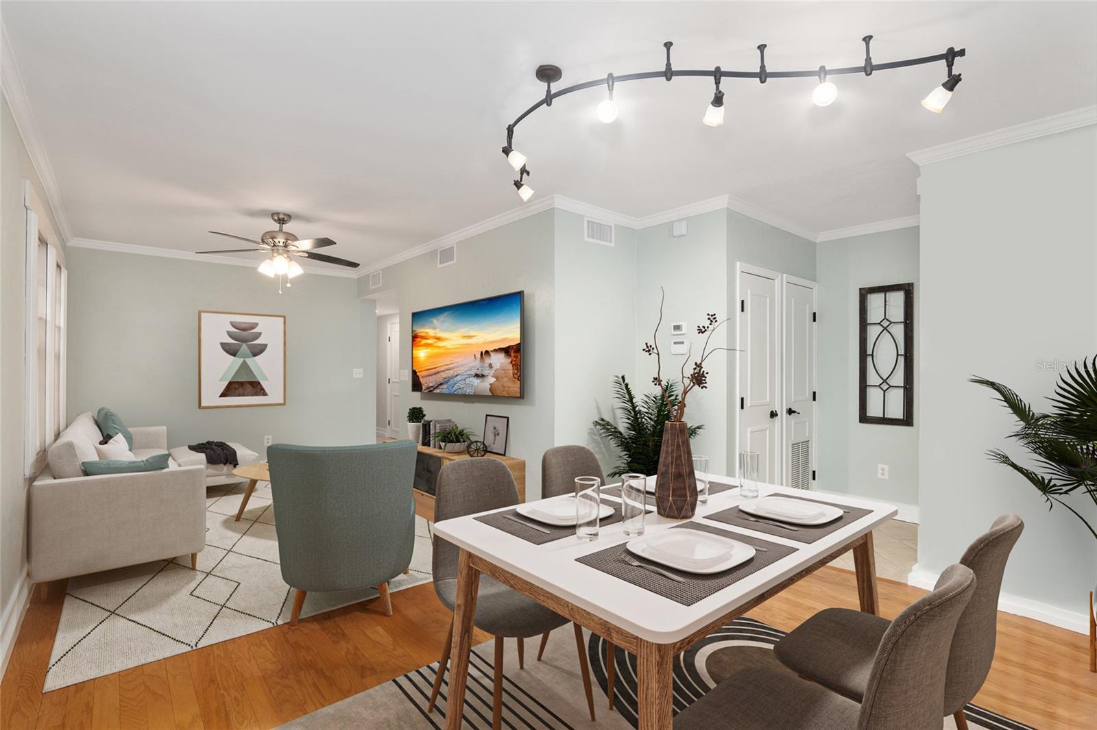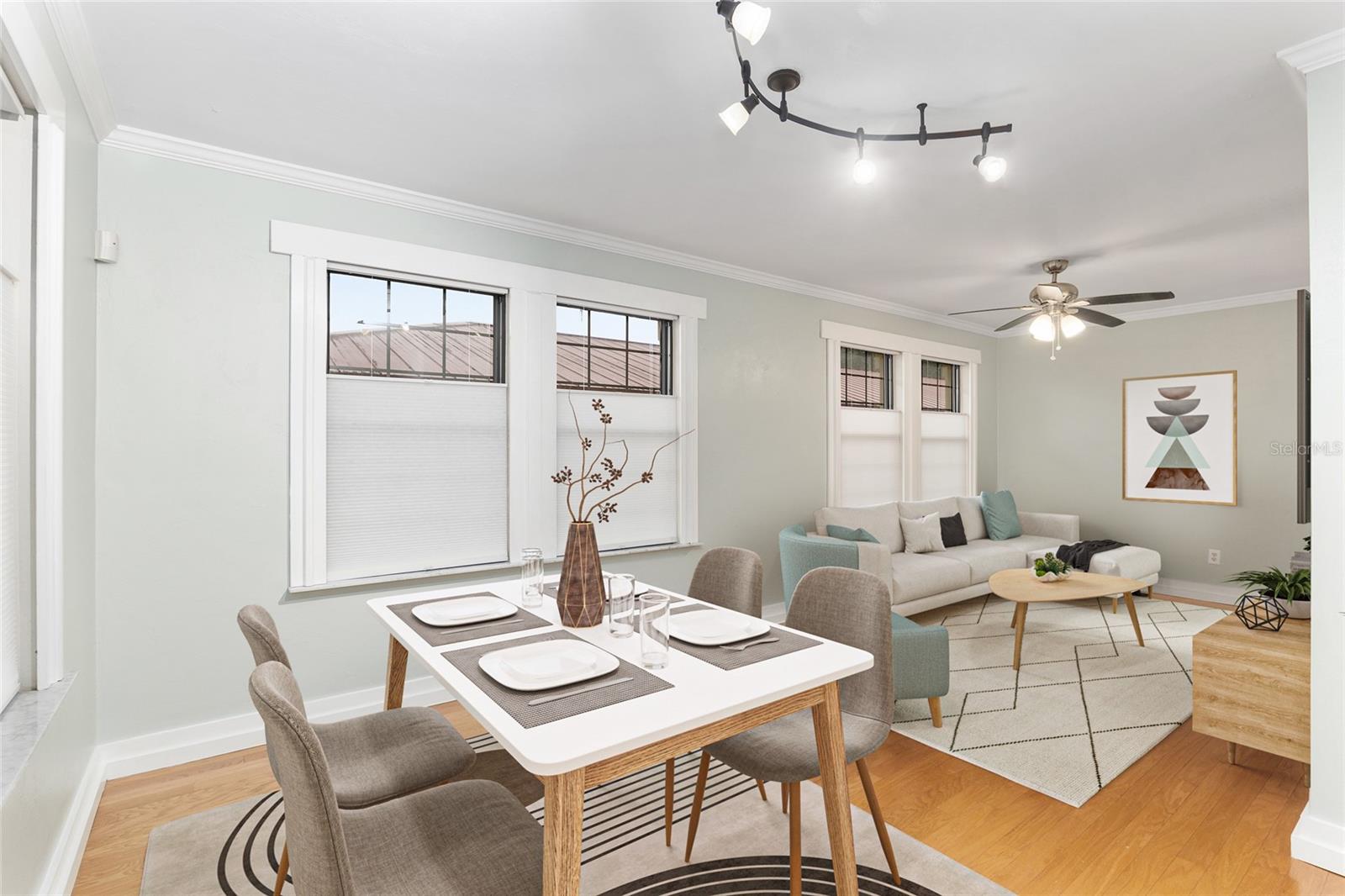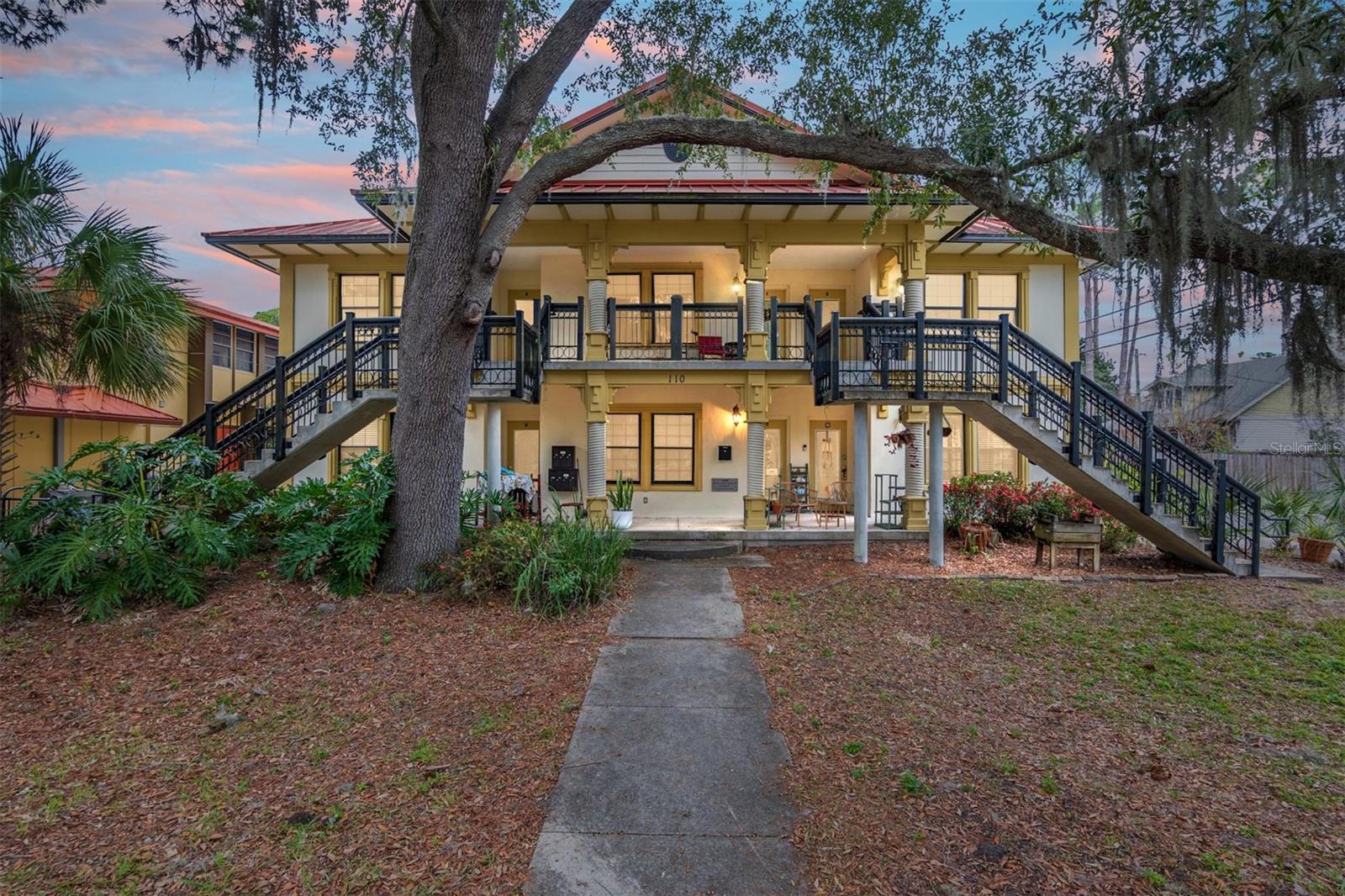 One or more photo(s) has been virtually staged. Charming 2BR/1BA Duckpond Condo – Timeless Elegance Meets Modern Updates! Nestled in the heart of Gainesville’s historic Duckpond neighborhood, this stunning second-floor 1,000 sq. ft. condo seamlessly blends classic craftsmanship with contemporary upgrades. Featuring 2 spacious bedrooms and a beautifully remodeled bathroom with modern tile work and a luxurious glass shower enclosure. The recently updated kitchen boasts granite countertops, stainless steel appliances, and sleek hardware, offering both style and functionality. Gorgeous wood floors highlight the entry and living/dining areas, while ceramic tile enhances the kitchen, hallway, and bathroom. The bright, open living and dining space is bathed in natural light, creating an inviting atmosphere for relaxation or entertaining. Updated doors and hardware add a polished touch throughout the home and a complete laundry room adds space for storage and functionality. Situated in a quaint six-unit building, this condo offers off-street parking and a prime location just steps from the Thomas Center. Enjoy the convenience of being within biking distance of Downtown Gainesville, the University of Florida, and local parks. Move-in ready and meticulously maintained, this home is your opportunity to enjoy the charm, character, and vibrant community of the Duckpond neighborhood. Buyer to verify all measurements and school zones with ACSB.