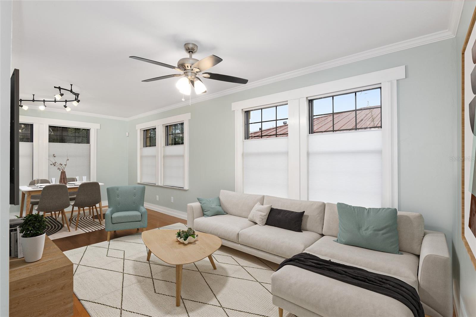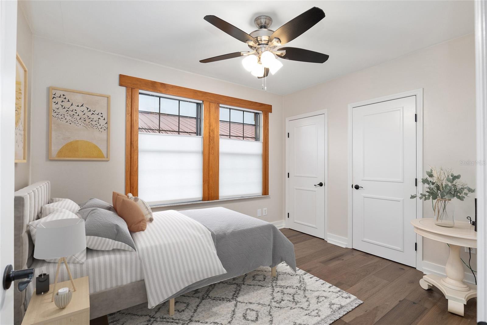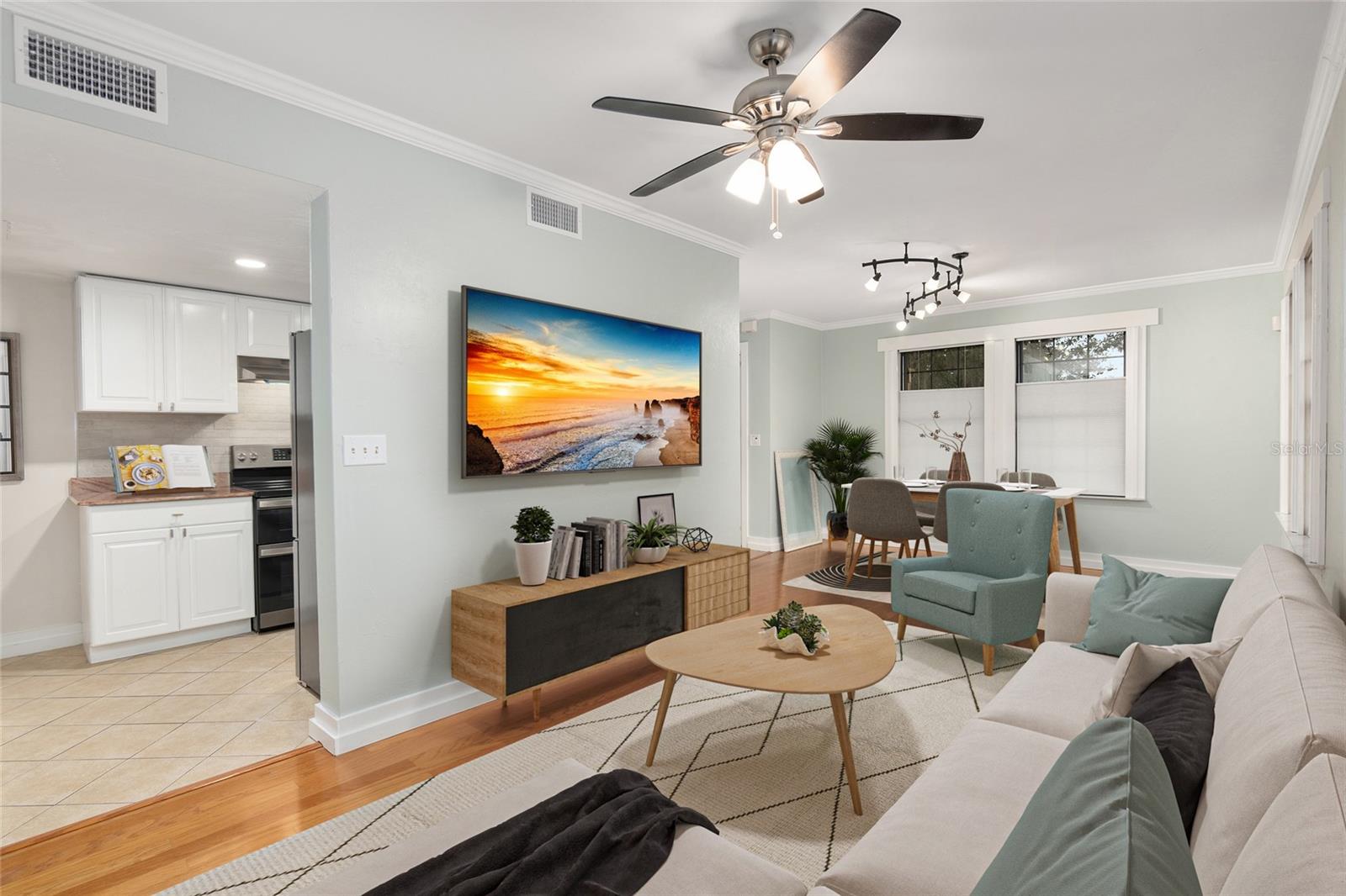 One or more photo(s) has been virtually staged. Charming 2BR/1BA Duckpond Condo – Timeless Elegance Meets Modern Updates! Nestled in the heart of Gainesville’s historic Duckpond neighborhood, this stunning second-floor 1,000 sq. ft. condo seamlessly blends classic craftsmanship with contemporary upgrades. Featuring 2 spacious bedrooms and a beautifully remodeled bathroom with modern tile work and a luxurious glass shower enclosure. The recently updated kitchen boasts granite countertops, stainless steel appliances, and sleek hardware, offering both style and functionality. Gorgeous wood floors highlight the entry and living/dining areas, while ceramic tile enhances the kitchen, hallway, and bathroom. The bright, open living and dining space is bathed in natural light, creating an inviting atmosphere for relaxation or entertaining. Updated doors and hardware add a polished touch throughout the home and a complete laundry room adds space for storage and functionality. Situated in a quaint six-unit building, this condo offers off-street parking and a prime location just steps from the Thomas Center. Enjoy the convenience of being within biking distance of Downtown Gainesville, the University of Florida, and local parks. Move-in ready and meticulously maintained, this home is your opportunity to enjoy the charm, character, and vibrant community of the Duckpond neighborhood. Buyer to verify all measurements and school zones with ACSB.