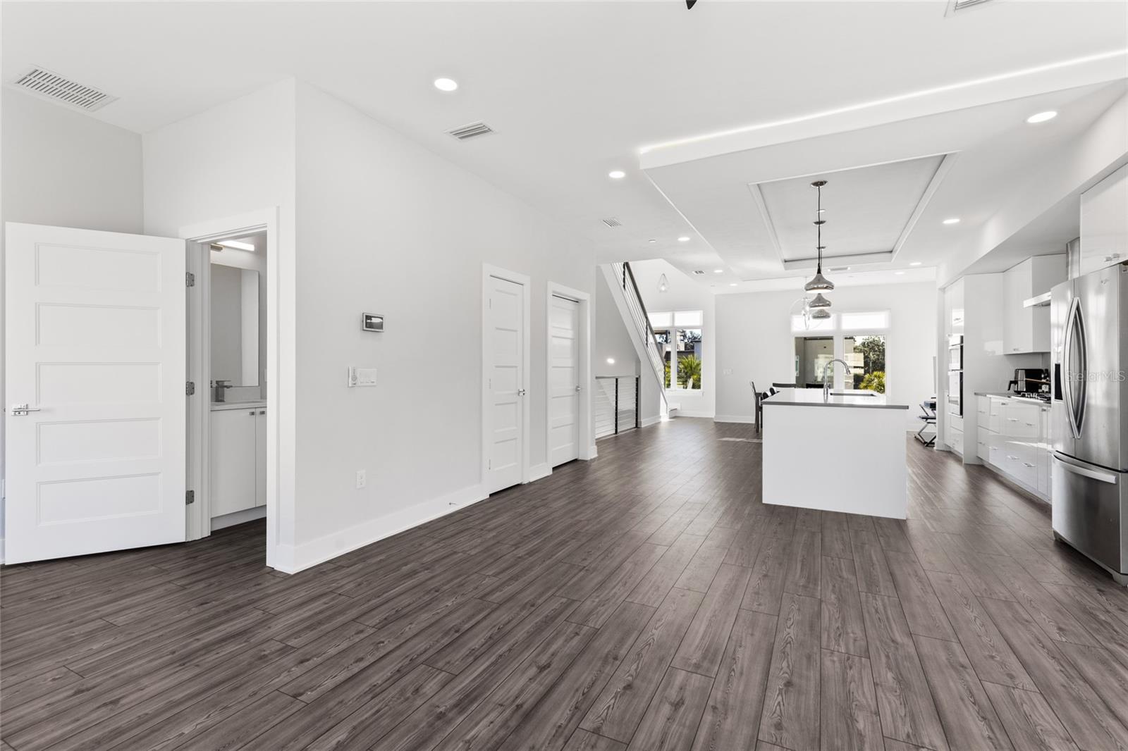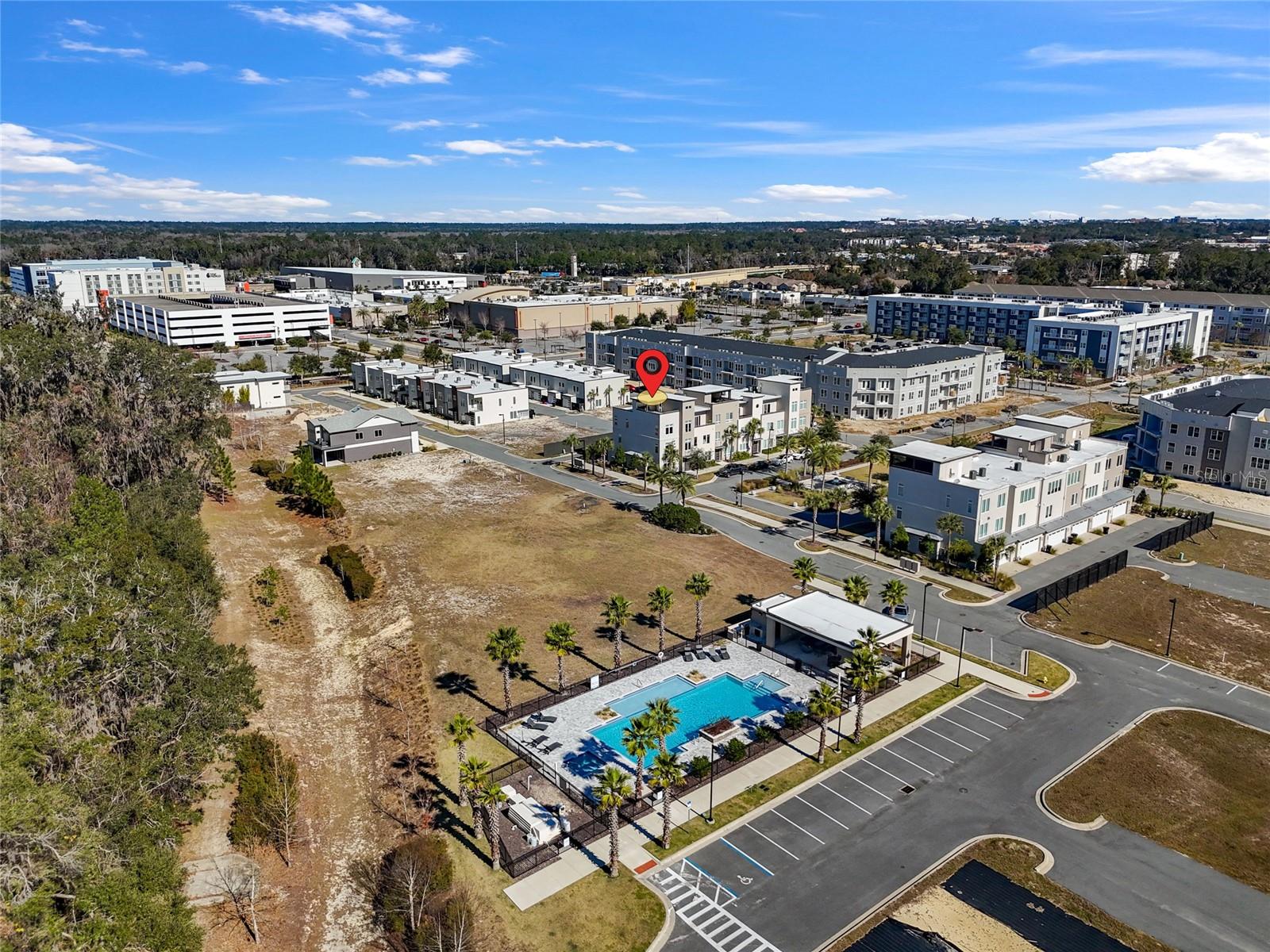 Luxurious 3 bedrooms and 3.5 bathrooms with 2980 sq ft townhome in The Vue at Celebration Pointe neighborhood.This three story custom built townhome with the downstairs bedroom and large walk in laundry room with upgraded Quartz countertop,wrought iron stair railings, luxury vinyl floors throughout . The master bedroom is on the second floor with a custom built walk-in closet,upgraded walking in large shower and the second guest room with ensuite is located towards the front of the second floor.,boasts high ceilings, plenty of storage, built in shelving and storage and more. Large master suite with luxury bath, walk-in shower, dual vanities and large walk-in closets. The kitchen and living room is on the third floor,hosts the stunning waterfall island, quartz countertops, enlarged pantry, upgraded appliances with induction stove and convection oven. An amazing large window with abundant natural light,looking out towards the main center of Celebration Pointe and sophisticated ambiance. The half bath is on this floor as well. Showcasing remarkable design features and modern conveniences that cater to your every desire.Expansive balcony with open and covered areas,offers stylish, resort style living with a resort style community pool , experiencing the perfect blend of luxury and nature in this exceptional home.Enjoy a variety of leisurely activities at Celebration Pointe within walking distance are restaurants ,stores ,bars and a movie theatre. It is also conveniently located near UF/Shands, NFRHospital, I-75 and shopping.