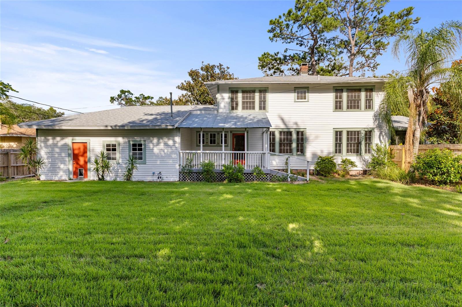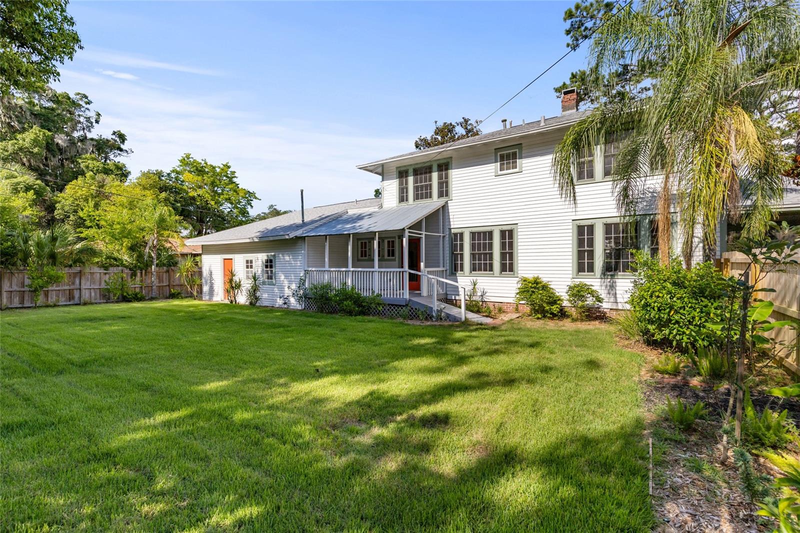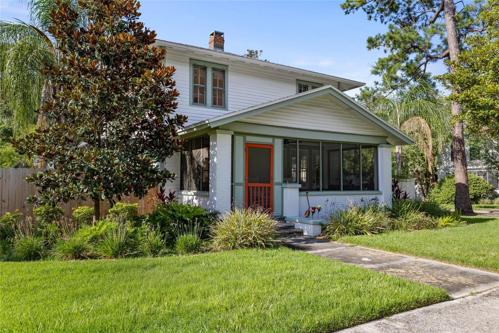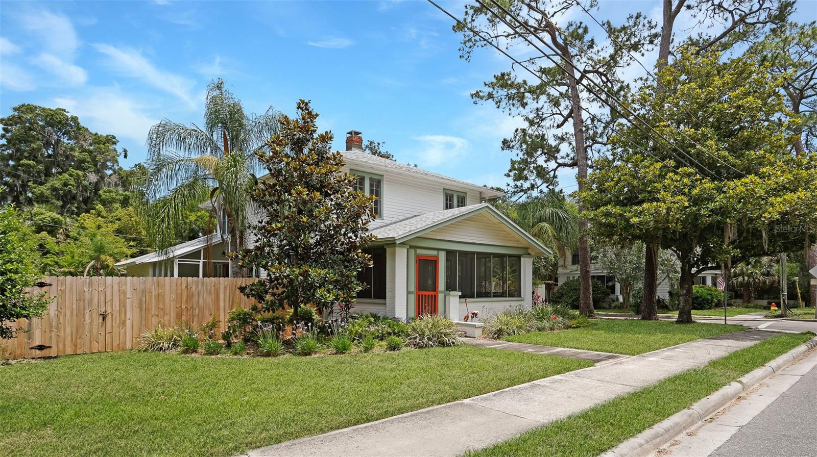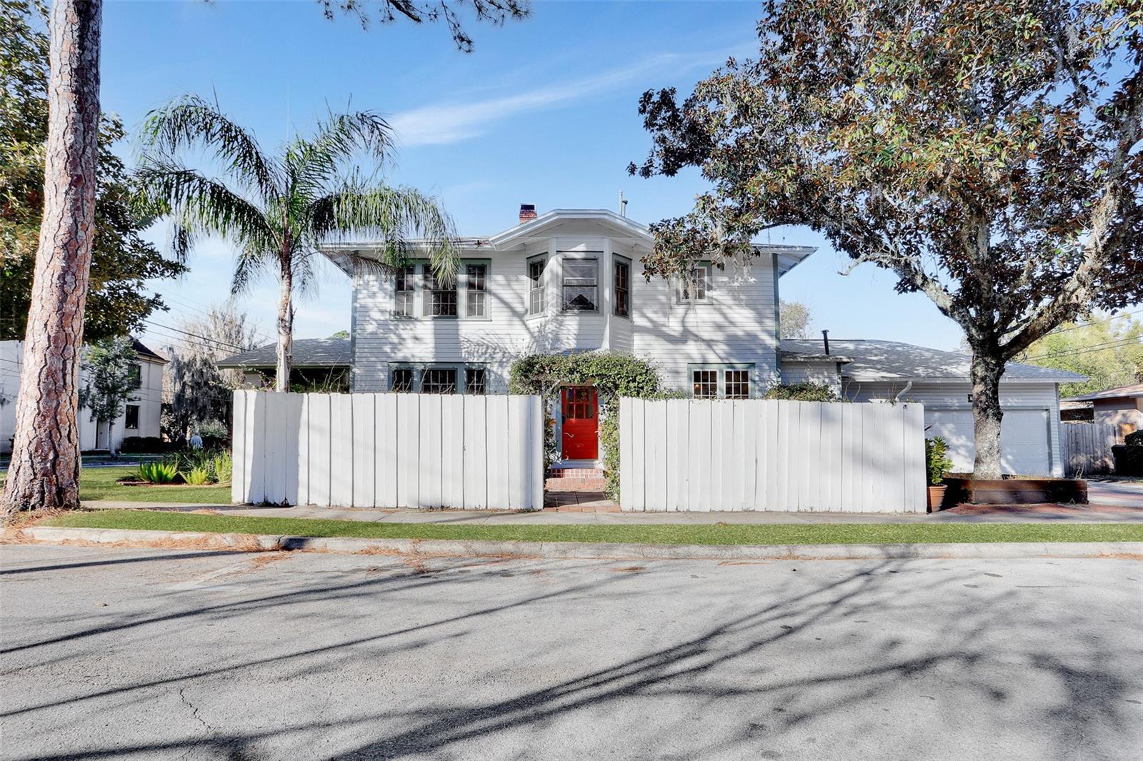 Fully-restored gem in the heart of the Duckpond neighborhood. This special home has been transformed with major renovations that include two new HVAC units in 2022, new roof in 2021, fully updated plumbing in 2023, updated electrical, and interior and exterior painting. Built in 1935, historic charm abounds with beautiful windows that allow light to flow into every room, high ceilings and refinished oak floors. The first story includes a living room with an updated fireplace, a renovated kitchen and attached dining area, a bonus room for an office and a half bath. The kitchen includes updated cabinetry, granite countertops, a subway tile backsplash and stainless steel appliances. The fenced backyard has a covered porch and plenty of room for gardening or a pool! The second story has three bedrooms and two bathrooms. The primary bedroom includes two good-sized closets and an updated bathroom from 2023 with custom cabinetry, a double vanity, tiled shower and solid surface countertops. The hall bathroom was updated in 2019 with a tile surround and vanity. The exterior was completely repainted in 2022 with meticulous attention to details like the restoration of every screen with a three-color palate. The large, double lot is stunning with a variety of native plantings, palms, fruit trees, a rose and herb garden, flowering camellias, azaleas and an irrigation system. Only steps away from the Thomas Center, you have access to the well-loved public gardens that host yoga and meditation workshops under gracious live oak trees. The south-facing entry is screened and includes a porch swing. The east side of the home includes an owners' entry through a private courtyard and a spacious two-car garage with plenty of space for two vehicles, storage and a workspace for projects. Walking distance to art galleries, farmers' markets, restaurants and all that downtown Gainesville has to offer and only a short bike ride to the University of Florida. Rare opportunity to purchase a completely restored and move-in ready historic home!