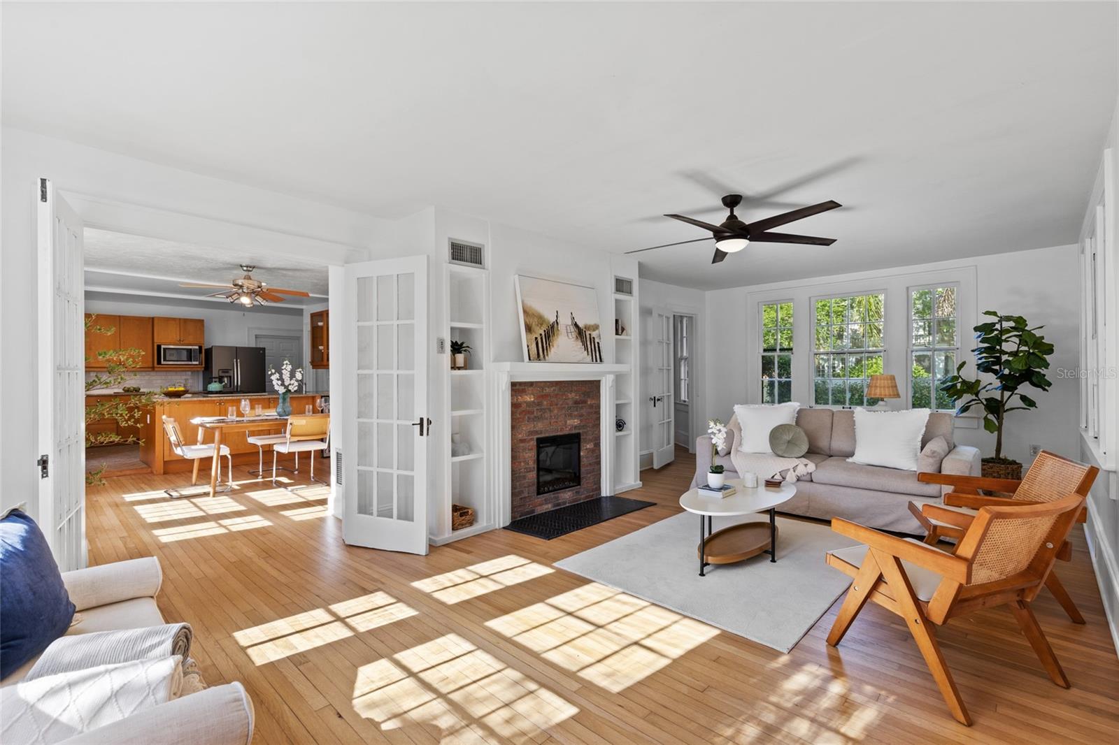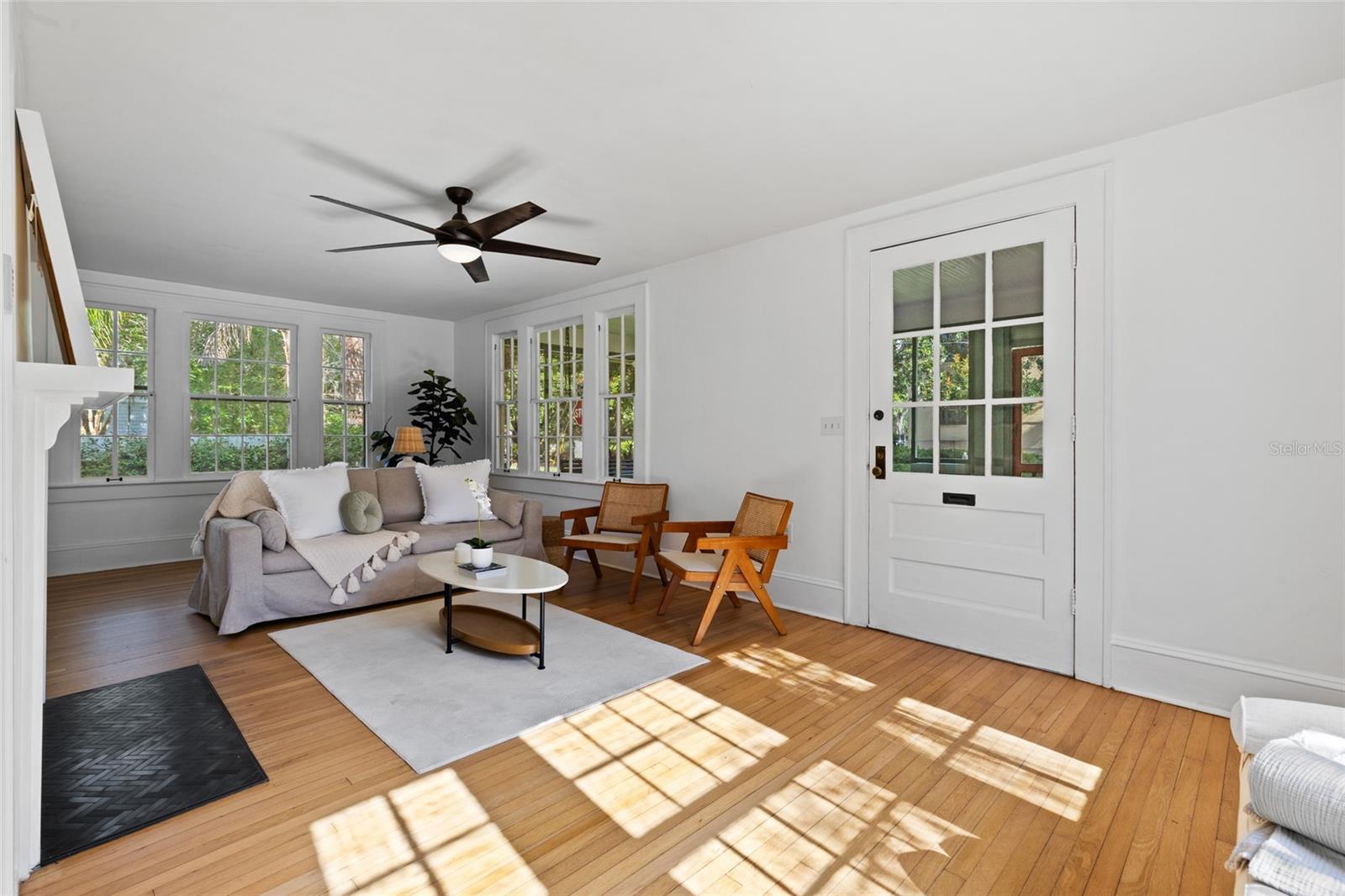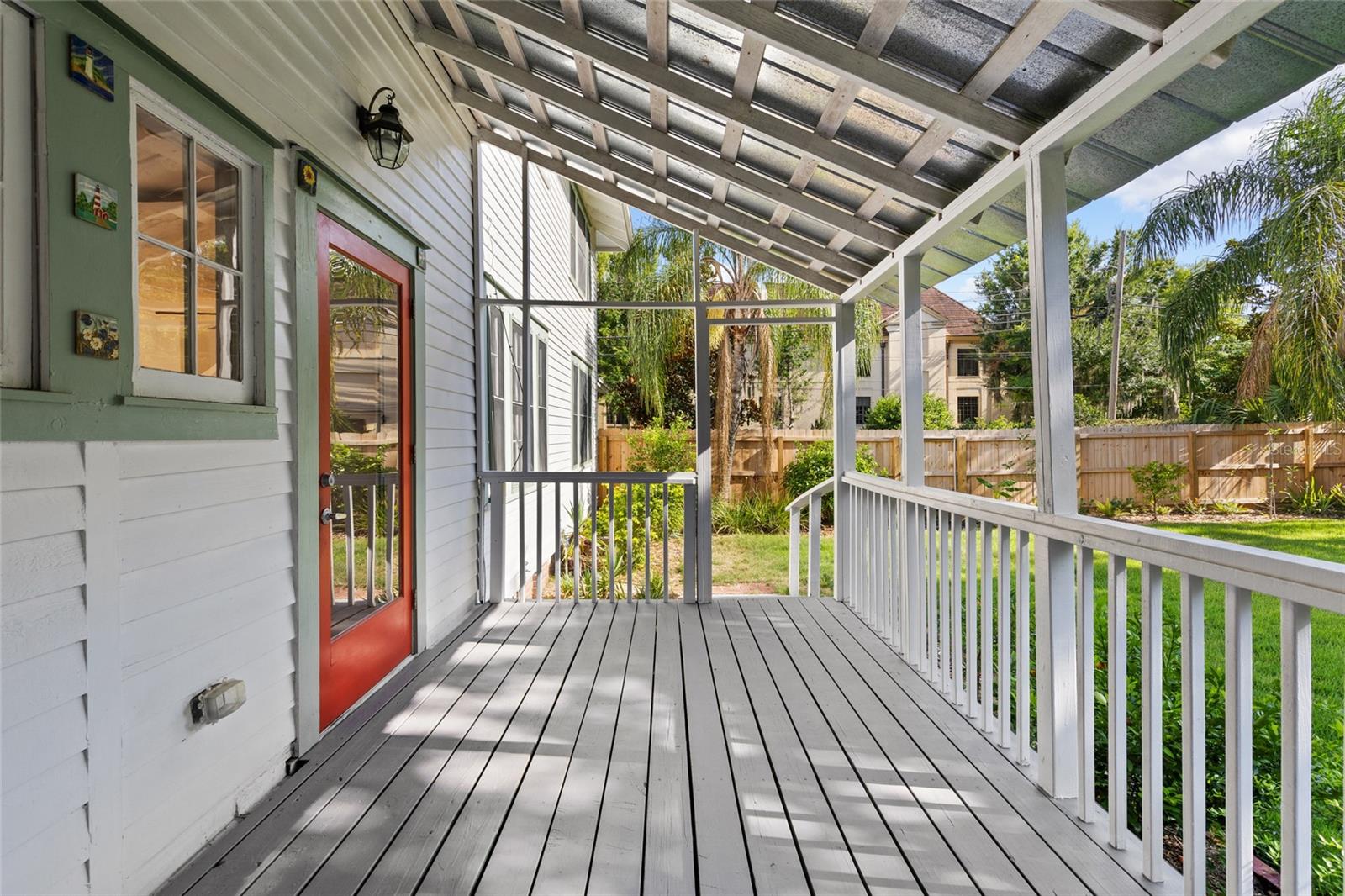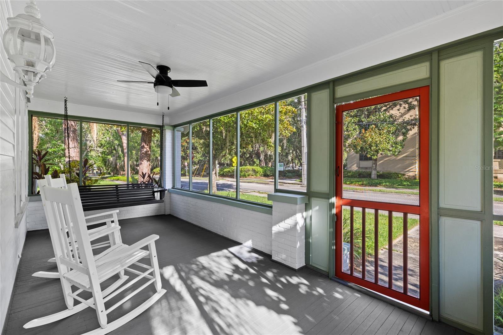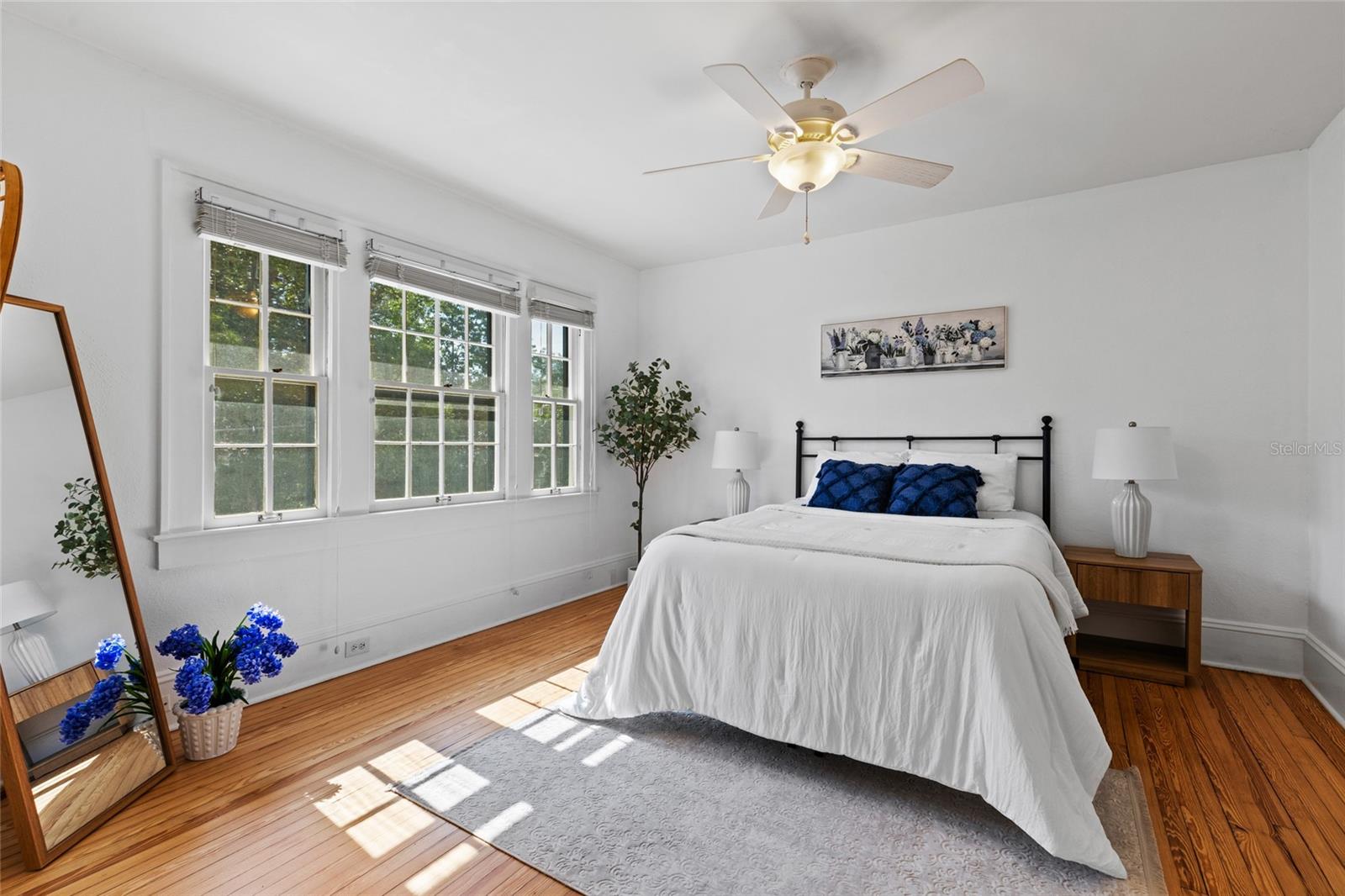 Fully-restored gem in the heart of the Duckpond neighborhood. This special home has been transformed with major renovations that include two new HVAC units in 2022, new roof in 2021, fully updated plumbing in 2023, updated electrical, and interior and exterior painting. Built in 1935, historic charm abounds with beautiful windows that allow light to flow into every room, high ceilings and refinished oak floors. The first story includes a living room with an updated fireplace, a renovated kitchen and attached dining area, a bonus room for an office and a half bath. The kitchen includes updated cabinetry, granite countertops, a subway tile backsplash and stainless steel appliances. The fenced backyard has a covered porch and plenty of room for gardening or a pool! The second story has three bedrooms and two bathrooms. The primary bedroom includes two good-sized closets and an updated bathroom from 2023 with custom cabinetry, a double vanity, tiled shower and solid surface countertops. The hall bathroom was updated in 2019 with a tile surround and vanity. The exterior was completely repainted in 2022 with meticulous attention to details like the restoration of every screen with a three-color palate. The large, double lot is stunning with a variety of native plantings, palms, fruit trees, a rose and herb garden, flowering camellias, azaleas and an irrigation system. Only steps away from the Thomas Center, you have access to the well-loved public gardens that host yoga and meditation workshops under gracious live oak trees. The south-facing entry is screened and includes a porch swing. The east side of the home includes an owners' entry through a private courtyard and a spacious two-car garage with plenty of space for two vehicles, storage and a workspace for projects. Walking distance to art galleries, farmers' markets, restaurants and all that downtown Gainesville has to offer and only a short bike ride to the University of Florida. Rare opportunity to purchase a completely restored and move-in ready historic home!