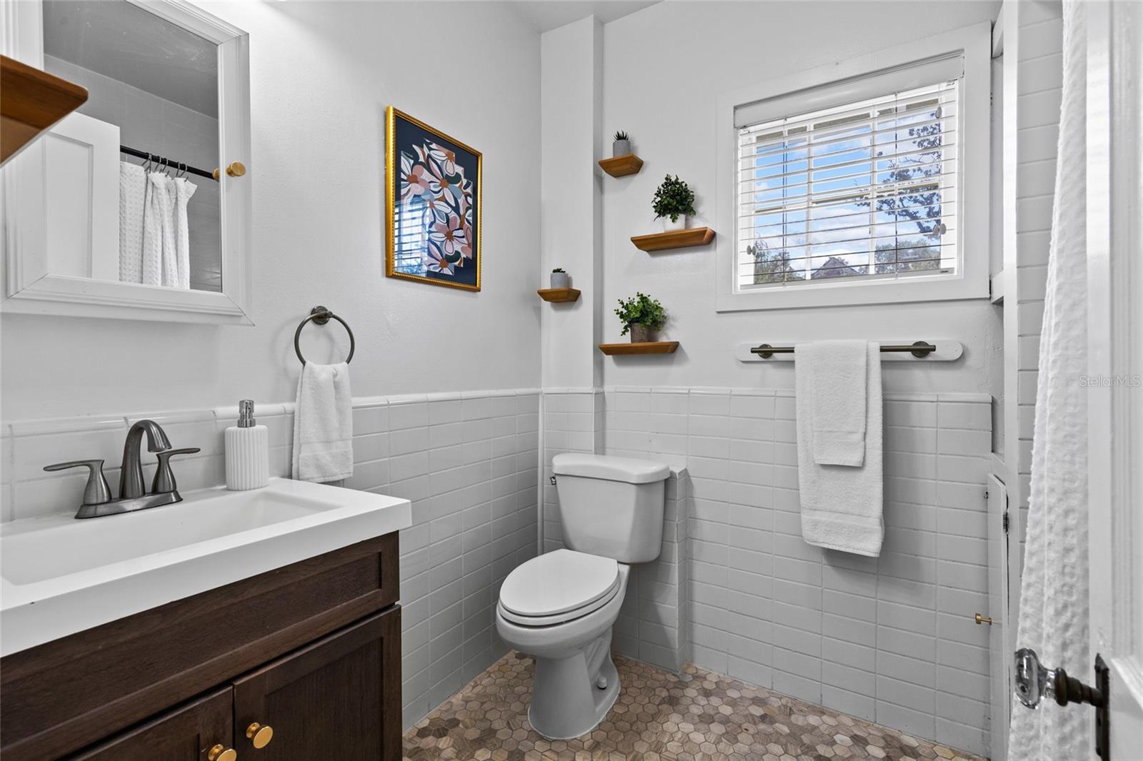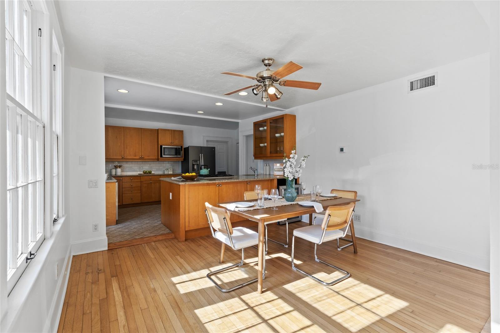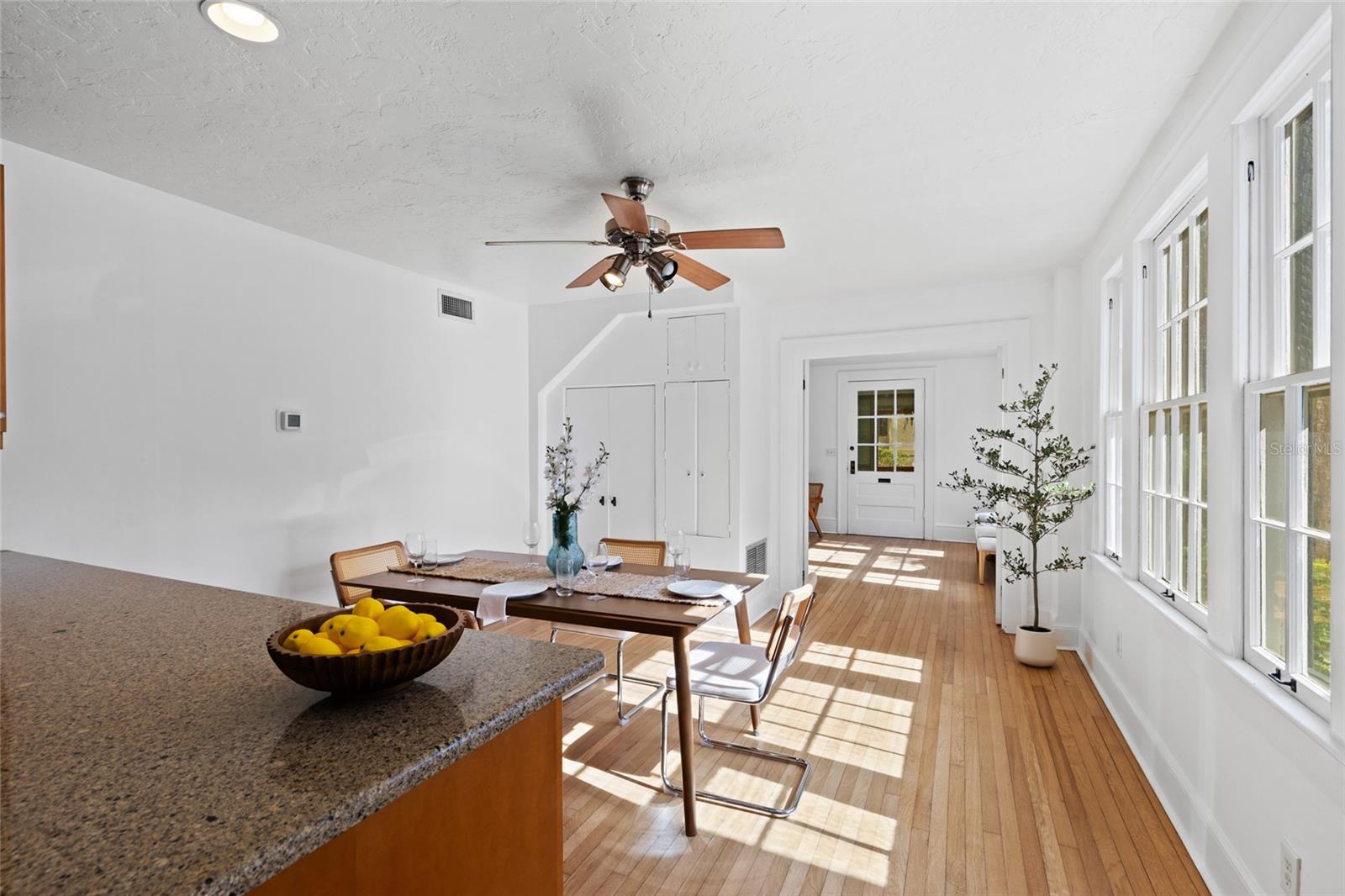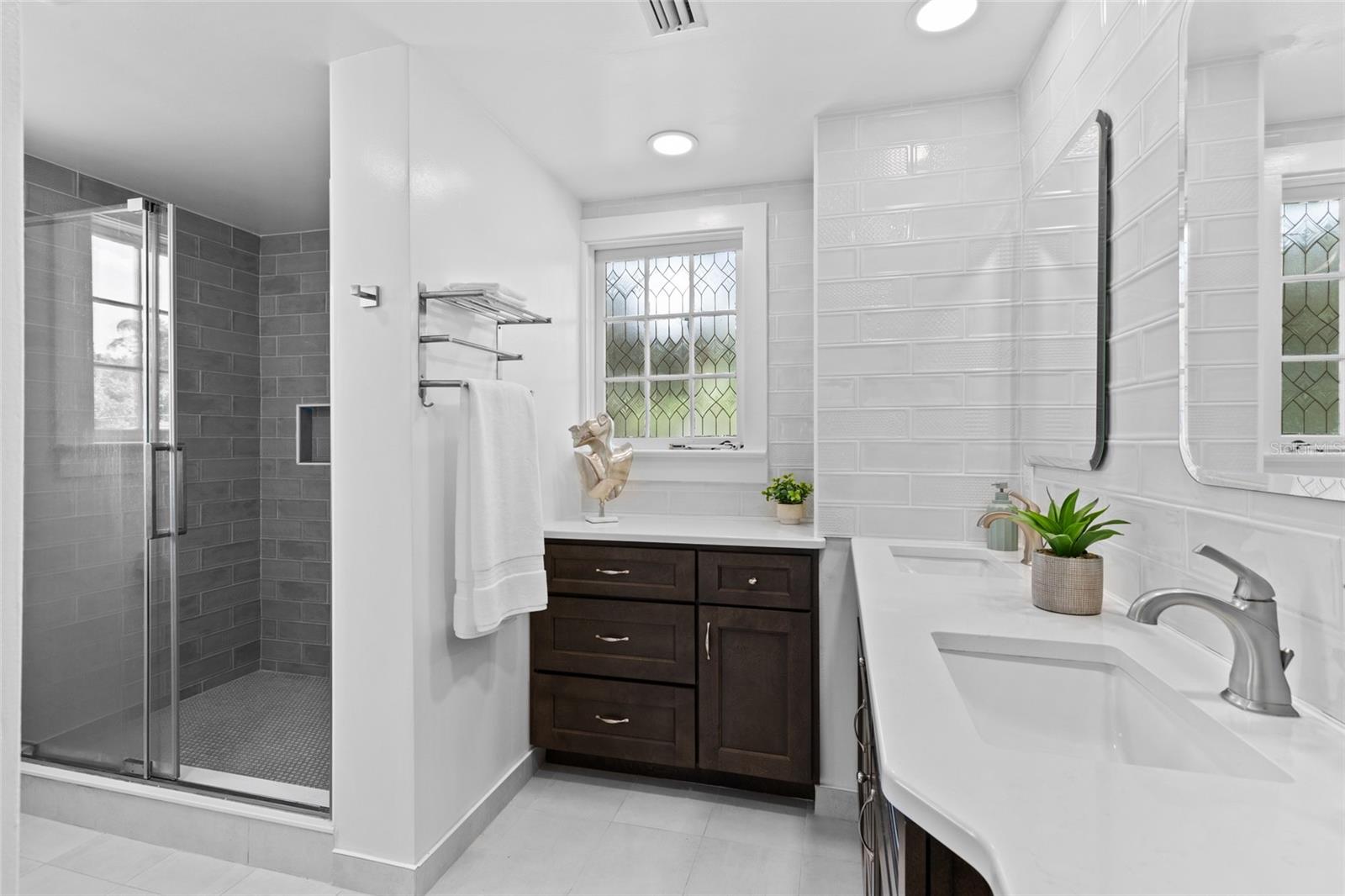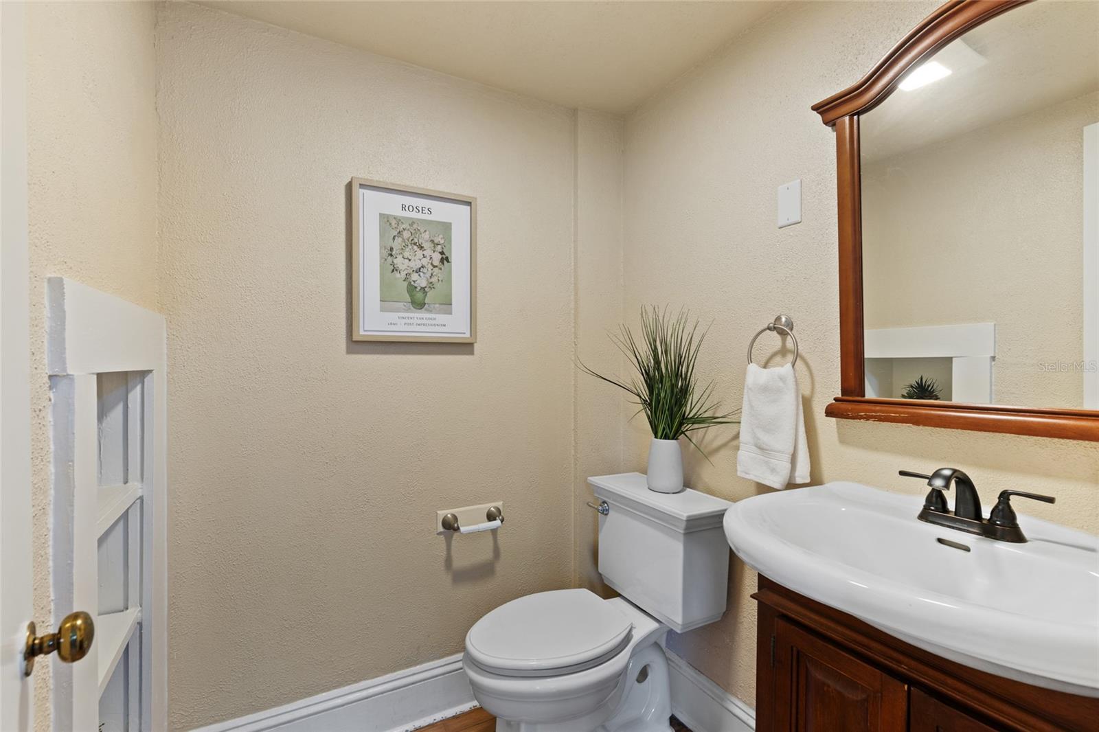 Fully-restored gem in the heart of the Duckpond neighborhood. This special home has been transformed with major renovations that include two new HVAC units in 2022, new roof in 2021, fully updated plumbing in 2023, updated electrical, and interior and exterior painting. Built in 1935, historic charm abounds with beautiful windows that allow light to flow into every room, high ceilings and refinished oak floors. The first story includes a living room with an updated fireplace, a renovated kitchen and attached dining area, a bonus room for an office and a half bath. The kitchen includes updated cabinetry, granite countertops, a subway tile backsplash and stainless steel appliances. The fenced backyard has a covered porch and plenty of room for gardening or a pool! The second story has three bedrooms and two bathrooms. The primary bedroom includes two good-sized closets and an updated bathroom from 2023 with custom cabinetry, a double vanity, tiled shower and solid surface countertops. The hall bathroom was updated in 2019 with a tile surround and vanity. The exterior was completely repainted in 2022 with meticulous attention to details like the restoration of every screen with a three-color palate. The large, double lot is stunning with a variety of native plantings, palms, fruit trees, a rose and herb garden, flowering camellias, azaleas and an irrigation system. Only steps away from the Thomas Center, you have access to the well-loved public gardens that host yoga and meditation workshops under gracious live oak trees. The south-facing entry is screened and includes a porch swing. The east side of the home includes an owners' entry through a private courtyard and a spacious two-car garage with plenty of space for two vehicles, storage and a workspace for projects. Walking distance to art galleries, farmers' markets, restaurants and all that downtown Gainesville has to offer and only a short bike ride to the University of Florida. Rare opportunity to purchase a completely restored and move-in ready historic home!