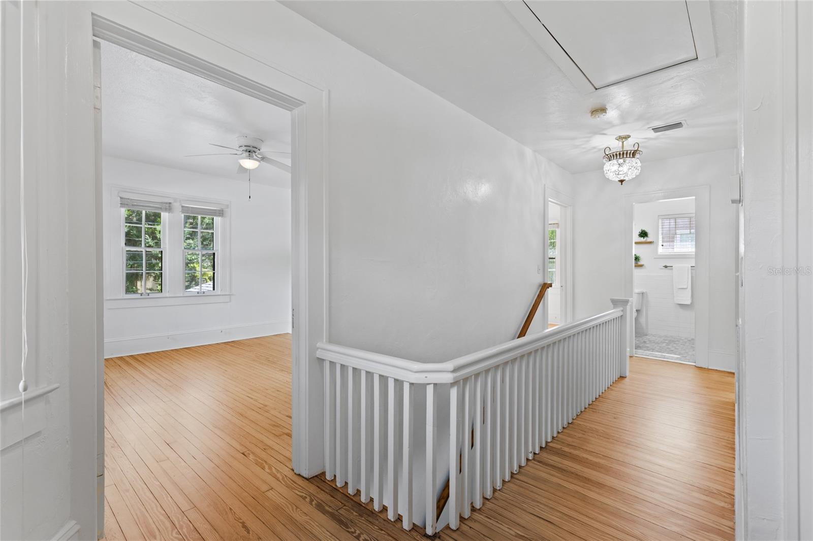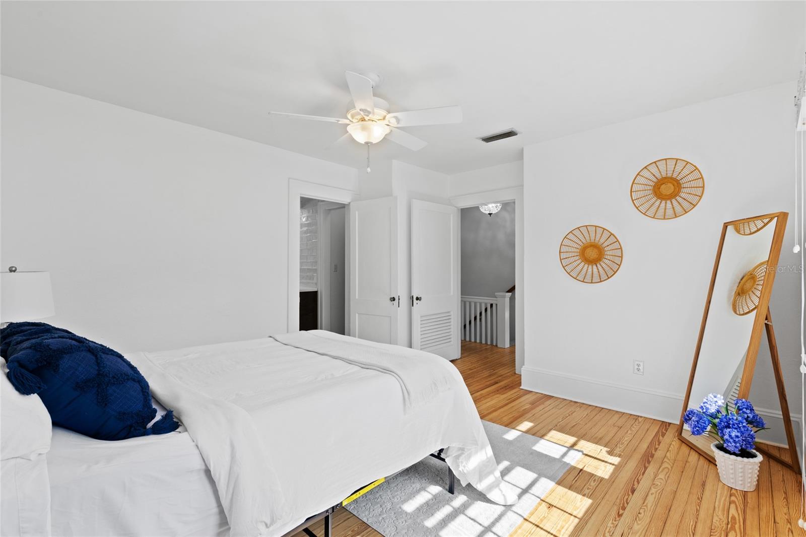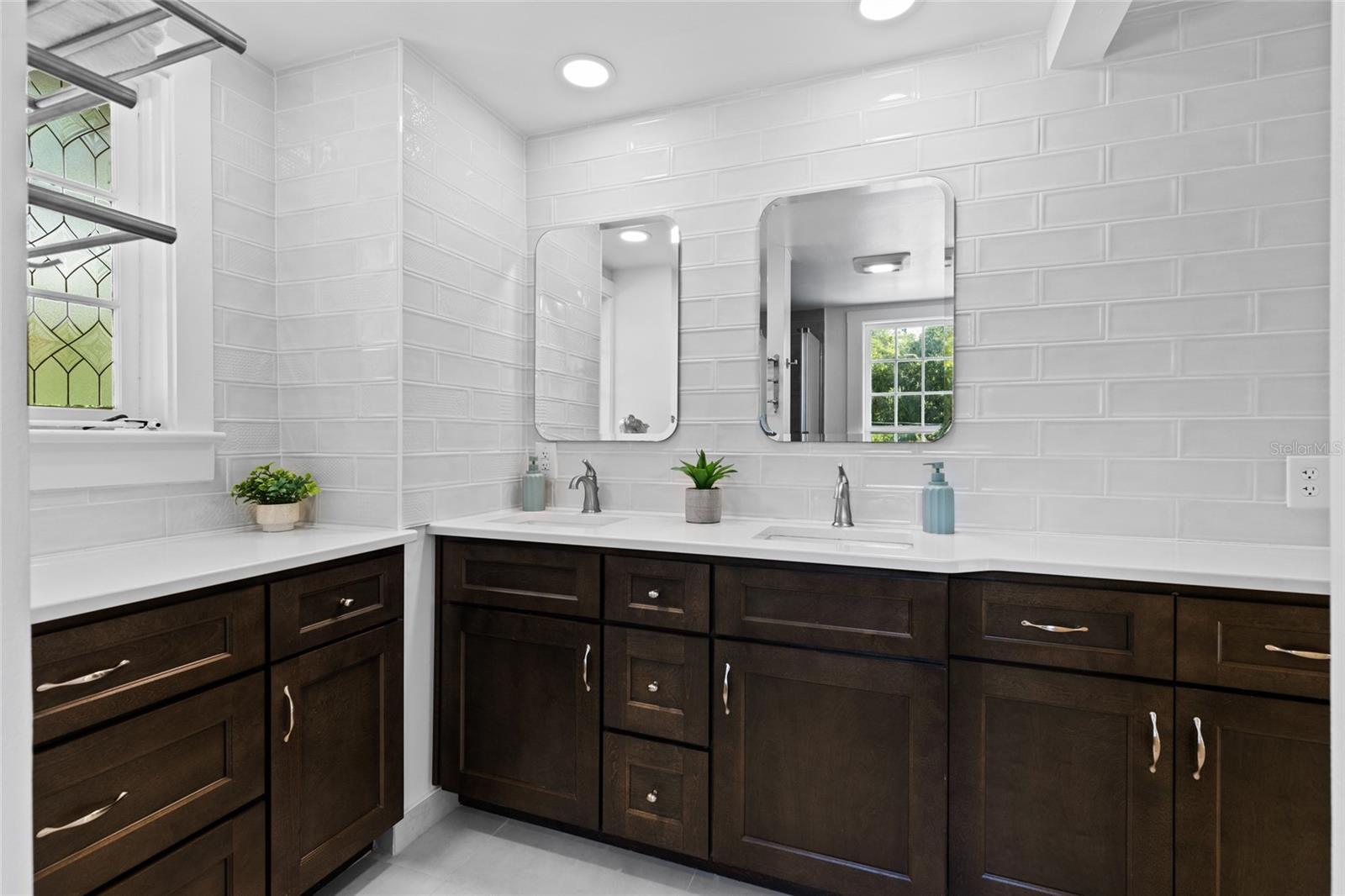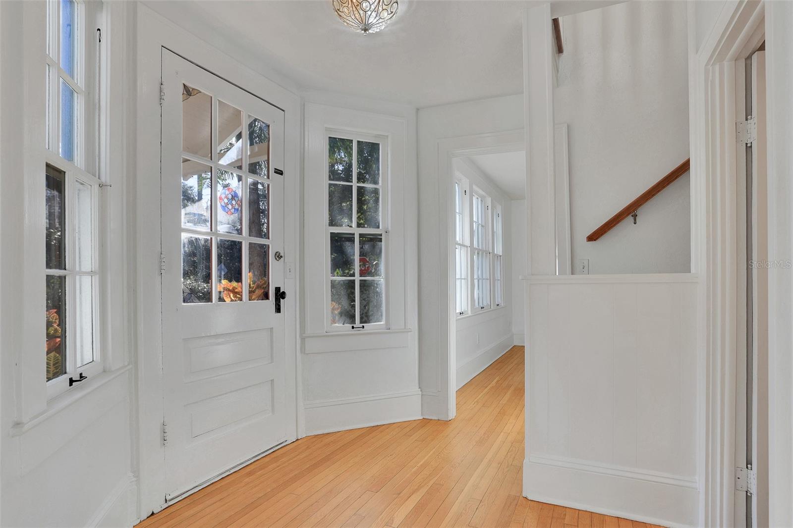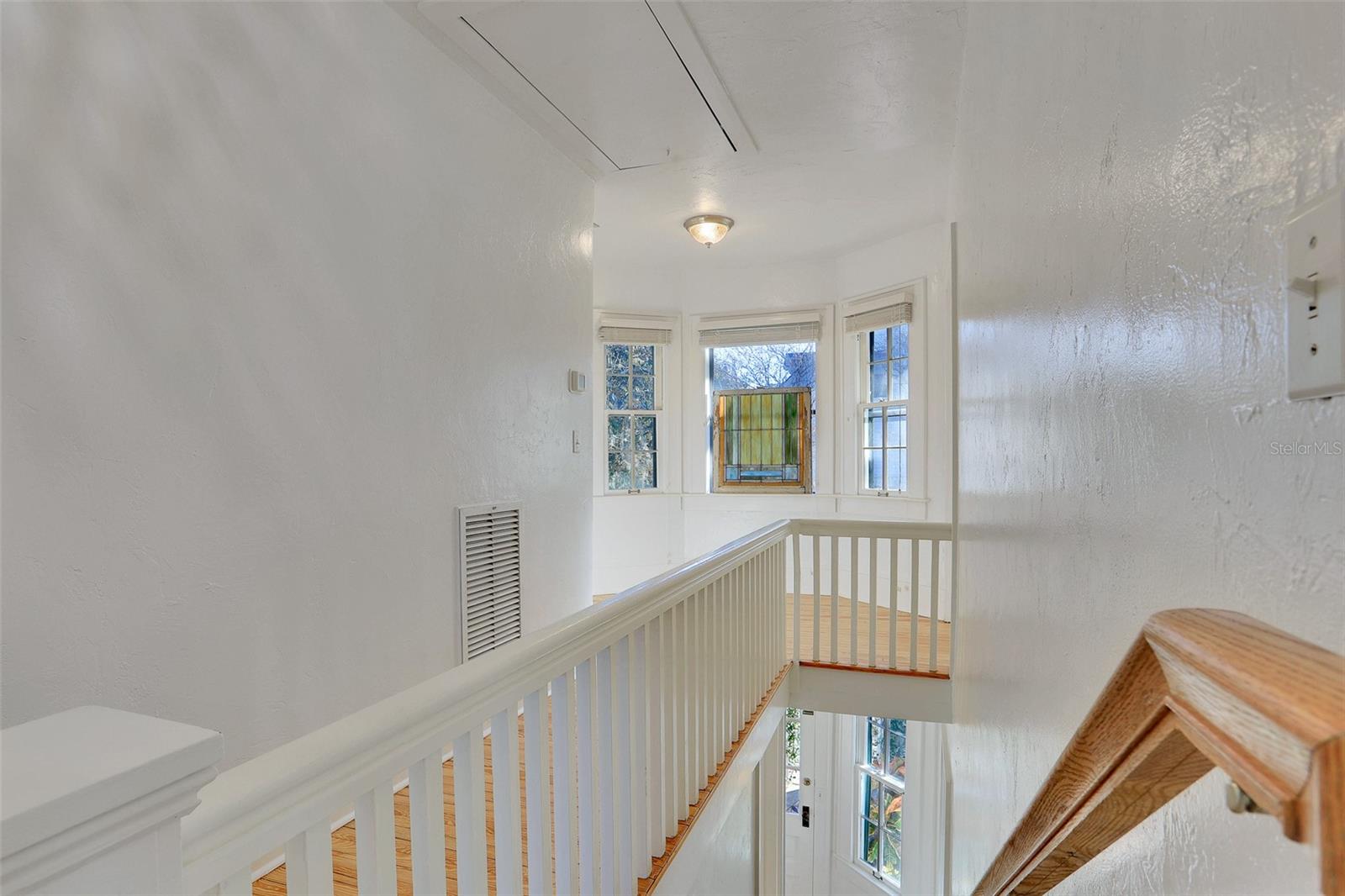 Fully-restored gem in the heart of the Duckpond neighborhood. This special home has been transformed with major renovations that include two new HVAC units in 2022, new roof in 2021, fully updated plumbing in 2023, updated electrical, and interior and exterior painting. Built in 1935, historic charm abounds with beautiful windows that allow light to flow into every room, high ceilings and refinished oak floors. The first story includes a living room with an updated fireplace, a renovated kitchen and attached dining area, a bonus room for an office and a half bath. The kitchen includes updated cabinetry, granite countertops, a subway tile backsplash and stainless steel appliances. The fenced backyard has a covered porch and plenty of room for gardening or a pool! The second story has three bedrooms and two bathrooms. The primary bedroom includes two good-sized closets and an updated bathroom from 2023 with custom cabinetry, a double vanity, tiled shower and solid surface countertops. The hall bathroom was updated in 2019 with a tile surround and vanity. The exterior was completely repainted in 2022 with meticulous attention to details like the restoration of every screen with a three-color palate. The large, double lot is stunning with a variety of native plantings, palms, fruit trees, a rose and herb garden, flowering camellias, azaleas and an irrigation system. Only steps away from the Thomas Center, you have access to the well-loved public gardens that host yoga and meditation workshops under gracious live oak trees. The south-facing entry is screened and includes a porch swing. The east side of the home includes an owners' entry through a private courtyard and a spacious two-car garage with plenty of space for two vehicles, storage and a workspace for projects. Walking distance to art galleries, farmers' markets, restaurants and all that downtown Gainesville has to offer and only a short bike ride to the University of Florida. Rare opportunity to purchase a completely restored and move-in ready historic home!