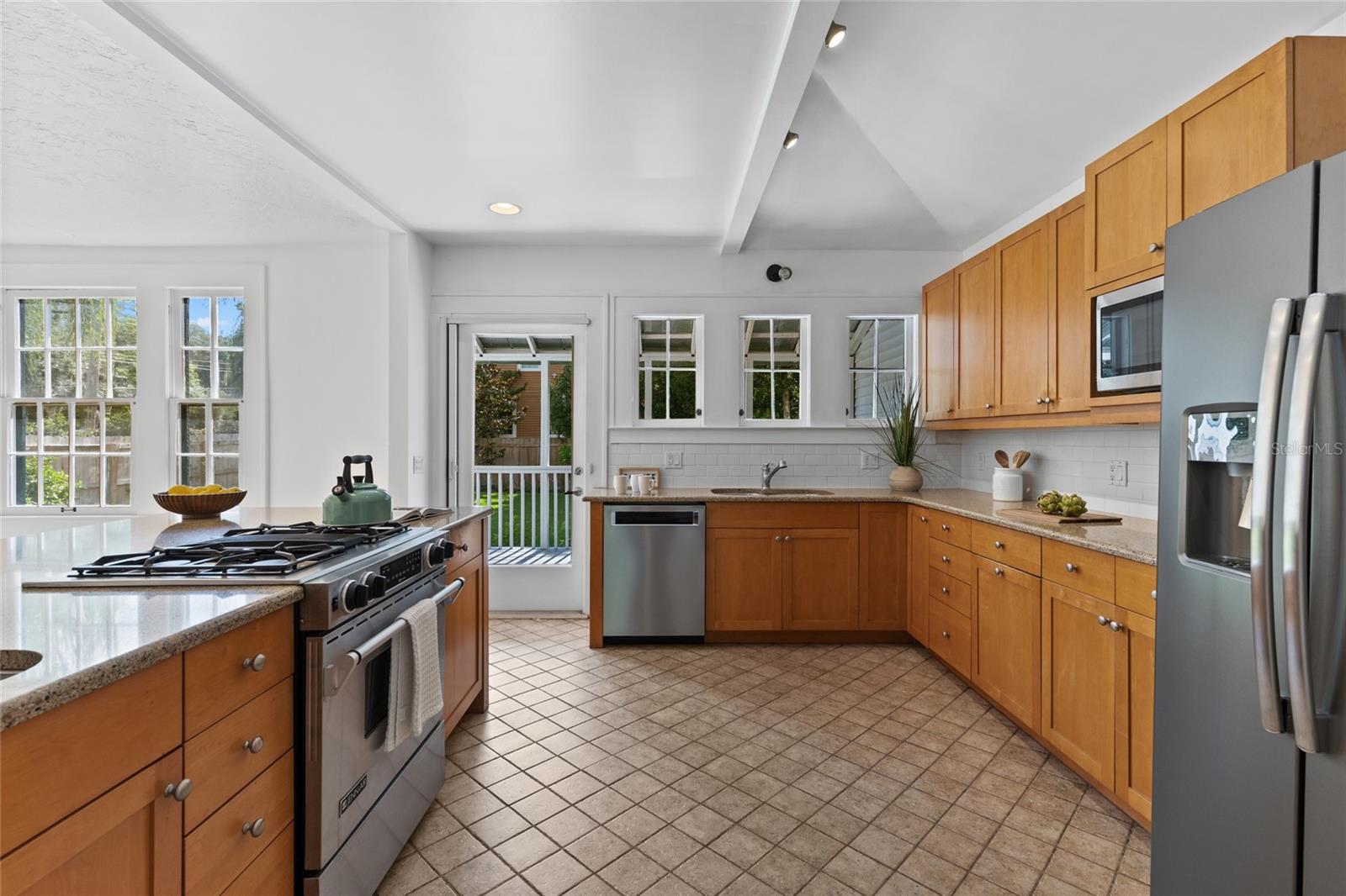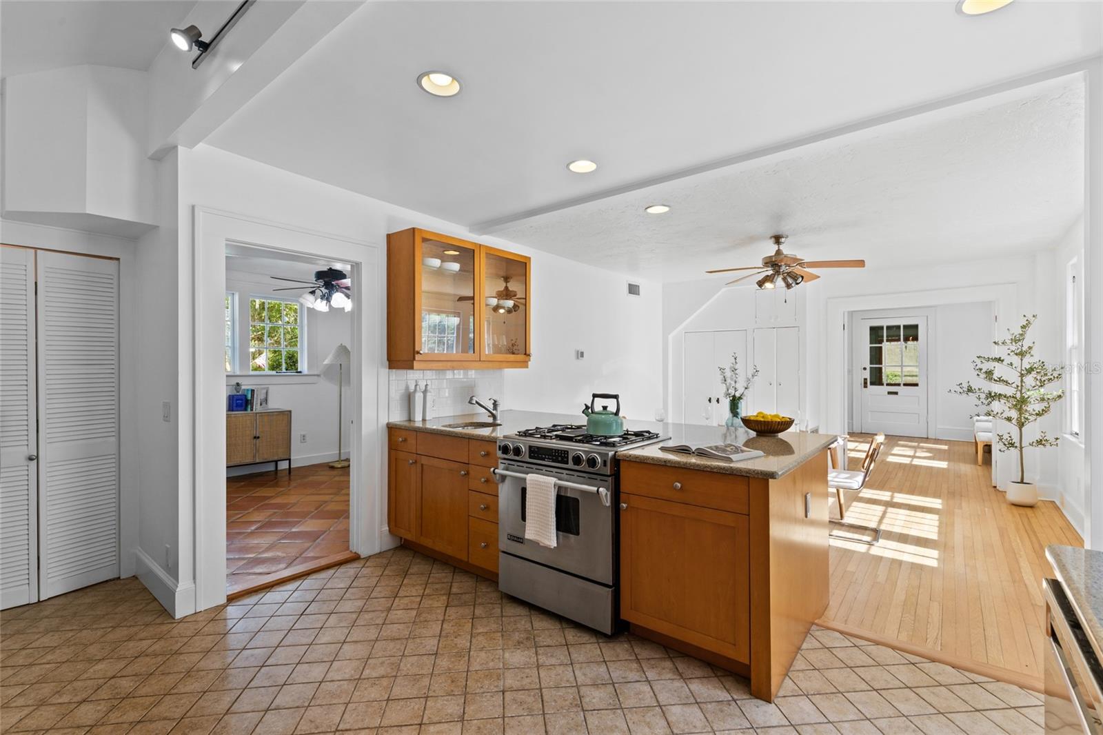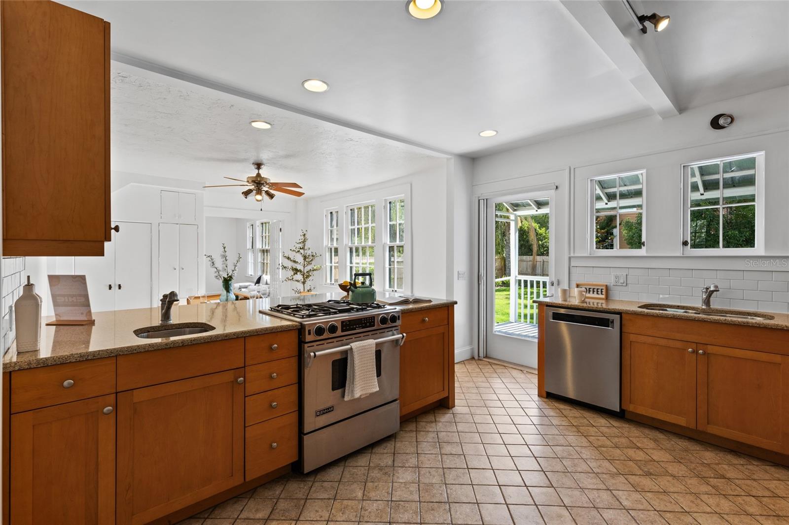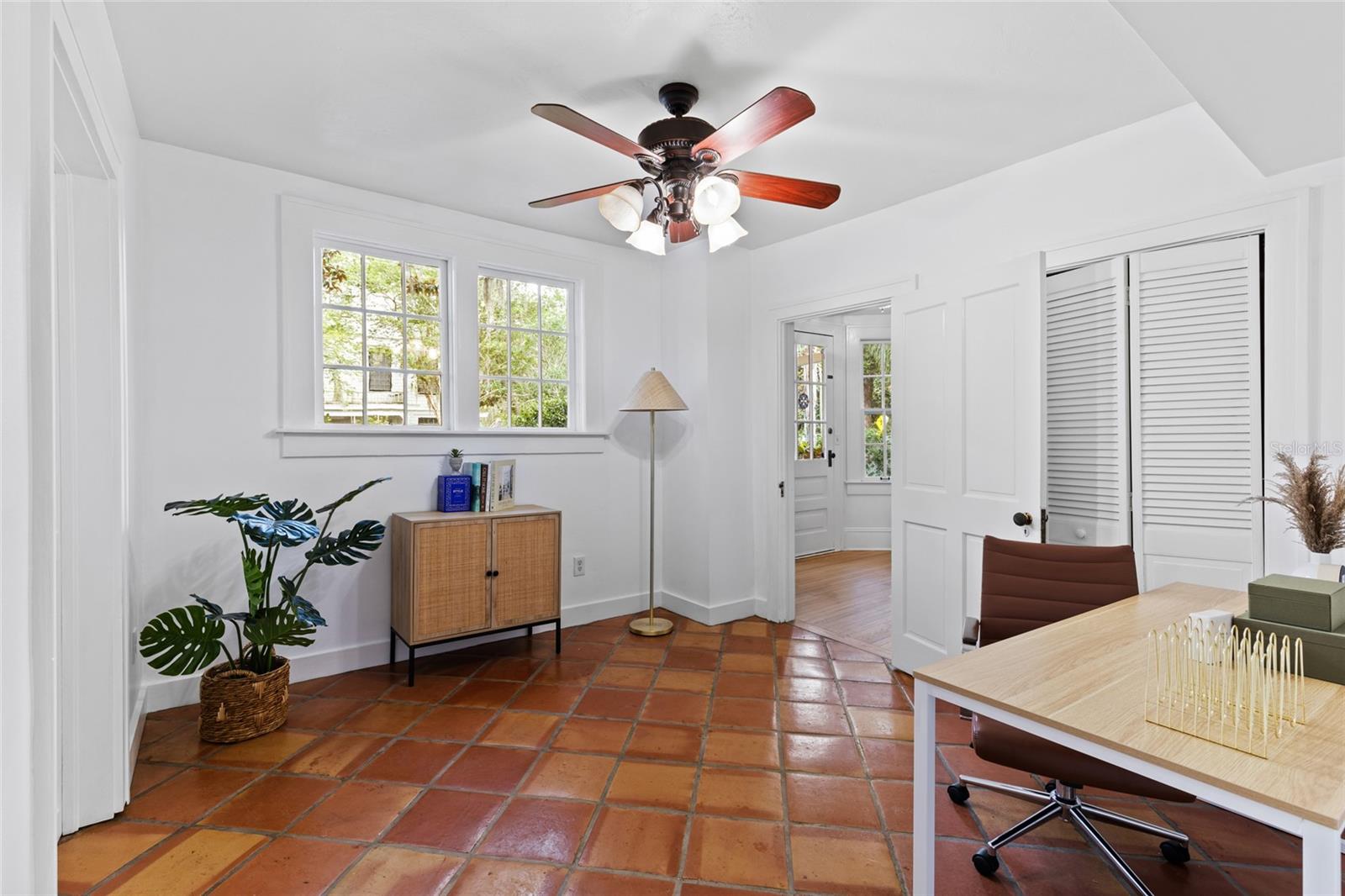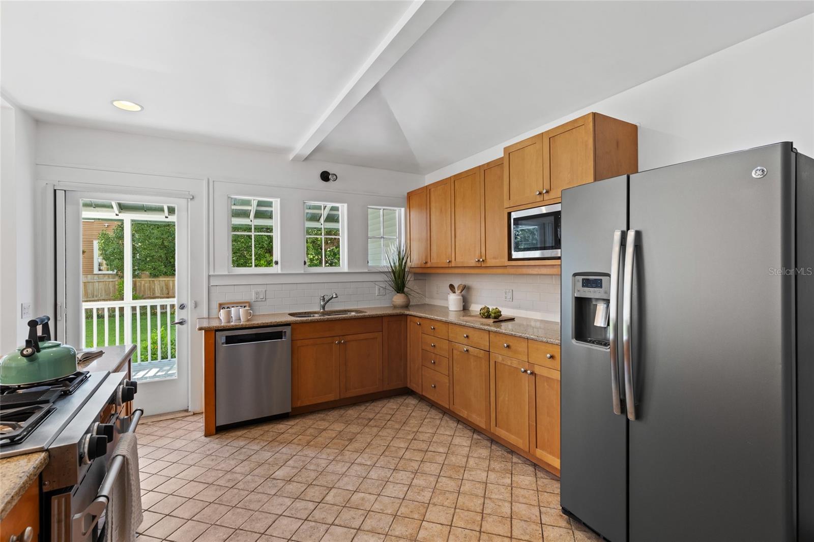 Fully-restored gem in the heart of the Duckpond neighborhood. This special home has been transformed with major renovations that include two new HVAC units in 2022, new roof in 2021, fully updated plumbing in 2023, updated electrical, and interior and exterior painting. Built in 1935, historic charm abounds with beautiful windows that allow light to flow into every room, high ceilings and refinished oak floors. The first story includes a living room with an updated fireplace, a renovated kitchen and attached dining area, a bonus room for an office and a half bath. The kitchen includes updated cabinetry, granite countertops, a subway tile backsplash and stainless steel appliances. The fenced backyard has a covered porch and plenty of room for gardening or a pool! The second story has three bedrooms and two bathrooms. The primary bedroom includes two good-sized closets and an updated bathroom from 2023 with custom cabinetry, a double vanity, tiled shower and solid surface countertops. The hall bathroom was updated in 2019 with a tile surround and vanity. The exterior was completely repainted in 2022 with meticulous attention to details like the restoration of every screen with a three-color palate. The large, double lot is stunning with a variety of native plantings, palms, fruit trees, a rose and herb garden, flowering camellias, azaleas and an irrigation system. Only steps away from the Thomas Center, you have access to the well-loved public gardens that host yoga and meditation workshops under gracious live oak trees. The south-facing entry is screened and includes a porch swing. The east side of the home includes an owners' entry through a private courtyard and a spacious two-car garage with plenty of space for two vehicles, storage and a workspace for projects. Walking distance to art galleries, farmers' markets, restaurants and all that downtown Gainesville has to offer and only a short bike ride to the University of Florida. Rare opportunity to purchase a completely restored and move-in ready historic home!