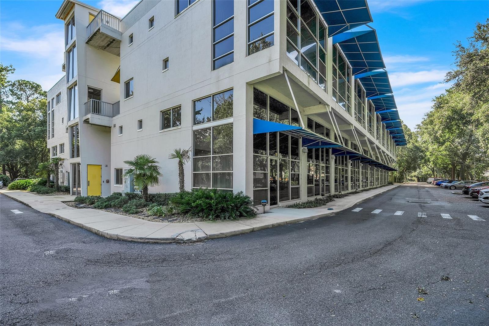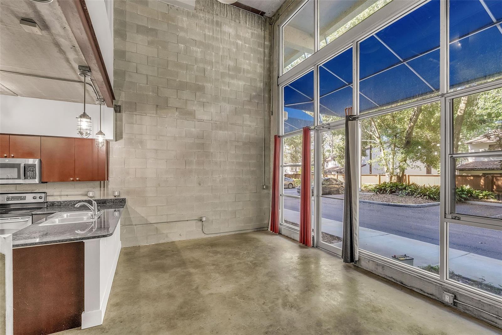 Move-in ready! Introducing a standout industrial loft-style condo in the heart of Gainesville, reminiscent of the chic aesthetic of New York. Located just 1.5 miles from the University of Florida and Shands Hospital/UF Health, this property offers unmatched convenience, with Butler Plaza, Celebration Point, and I-75 all just a 10-minute drive away. A convenient bus stop right outside the community makes getting to Shands Hospital or campus a breeze! This spacious, two-story, ground-floor unit features THREE generously sized bedrooms, each with its own ensuite bathroom, plus an additional half-bathroom downstairs for guests. The living room captivates with stunning floor-to-ceiling windows and sleek concrete flooring—no carpet—enhanced by exposed industrial ductwork that adds modern appeal. The bright and spacious kitchen is both functional and stylish, showcasing granite countertops, contemporary cabinetry, and a spacious breakfast bar—perfect for entertaining, studying, or relaxing after a long day. Additionally, the property enjoys frequent bus services to UF undergraduate classes and Shands Hospital. A standout feature of this condo is the rare ground-floor bedroom, which includes an ensuite bathroom and walk-in closet, making it a great option for intergenerational living. This thoughtful layout prioritizes comfort and accessibility for all residents. Don’t miss your chance to make this exceptional condo your new home!